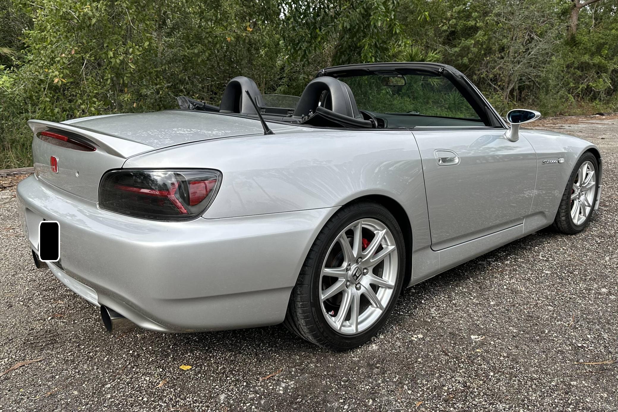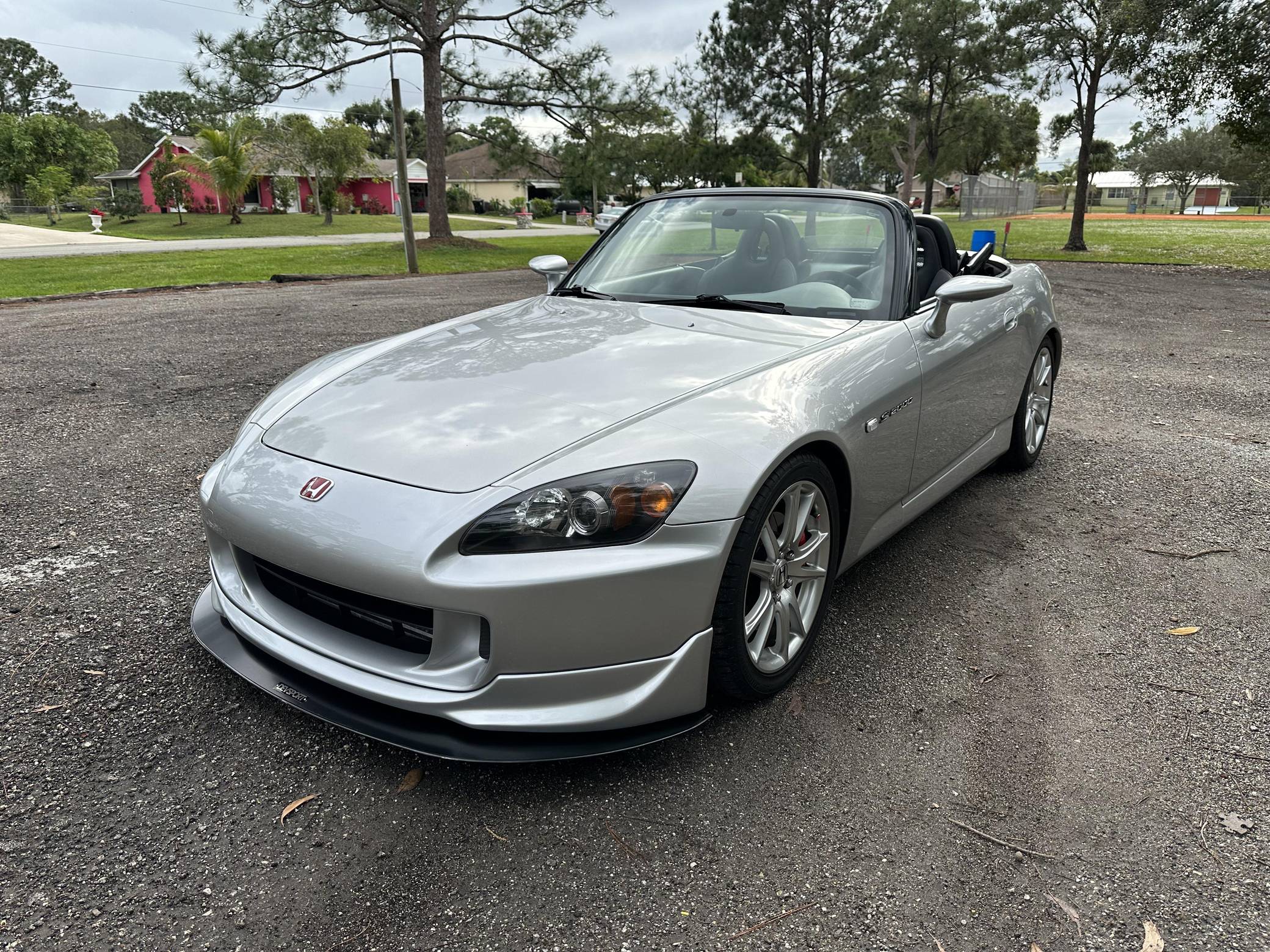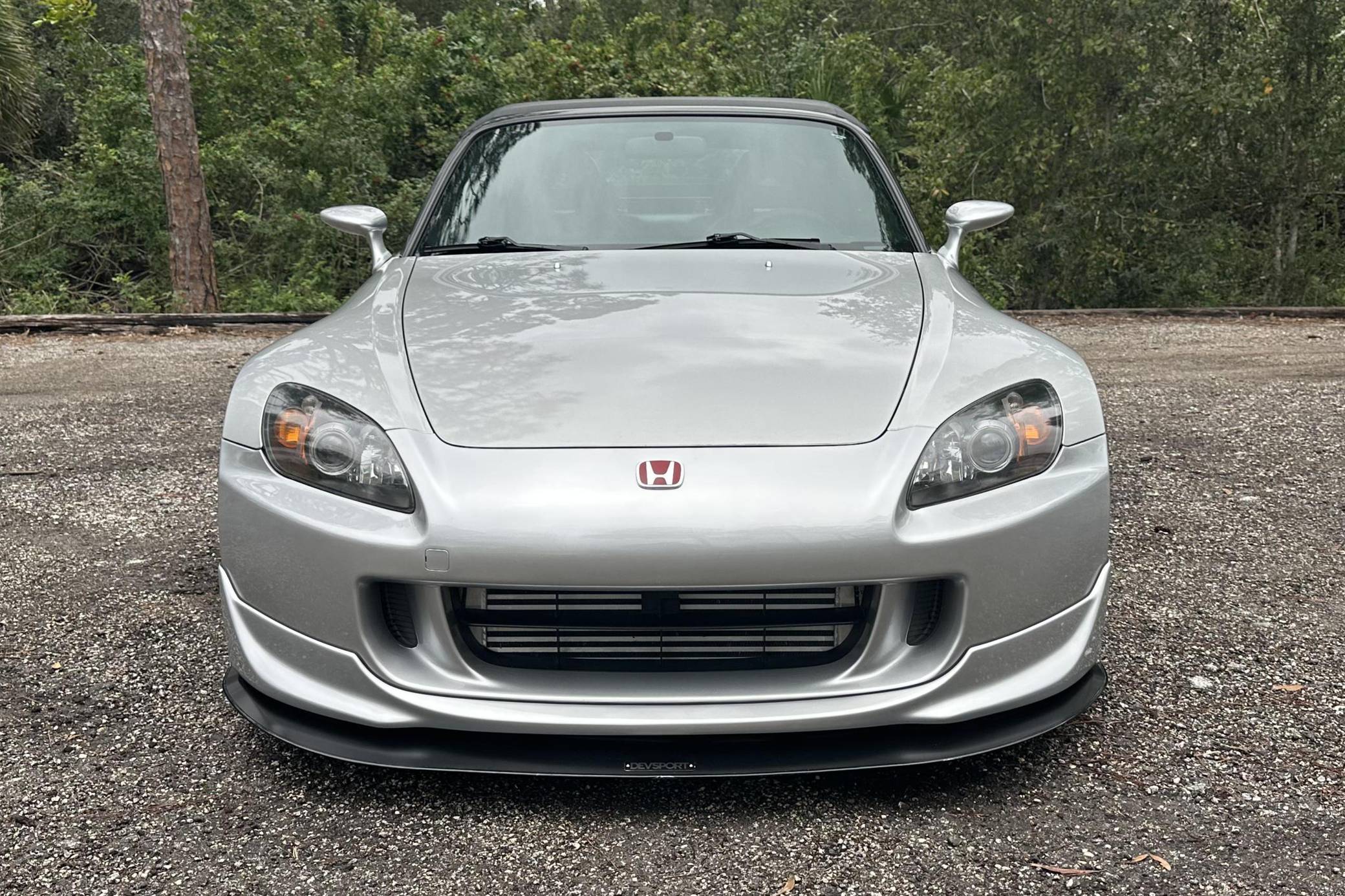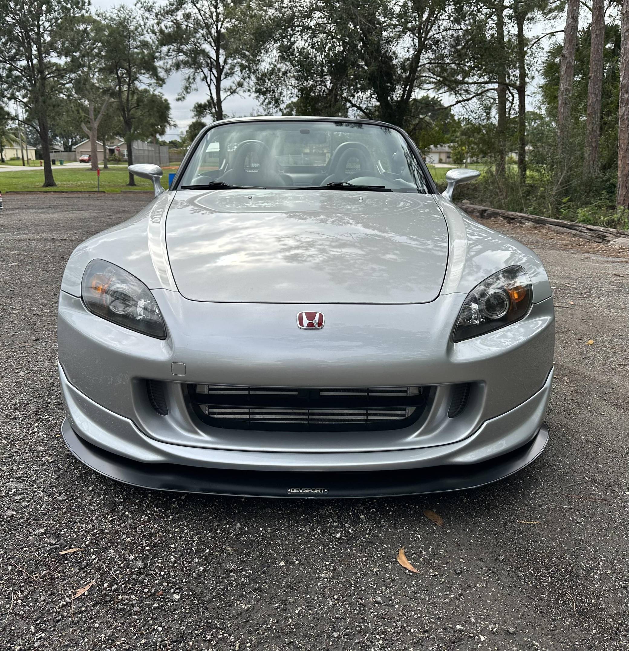 THIS. . . is a 2004 Honda S2000, finished in Sebring Silver Metallic with a black soft top and a black interior. This S2000 is equipped with the desirable 6-speed manual transmission. Equipment includes 17-inch alloy wheels, a limited-slip differential, a power-operated soft top, leather upholstery, a digital instrument cluster, air conditioning, power windows, mirrors, and locks, and more as detailed below. A partial list of modifications reported by the seller includes a Paxton 1200 supercharger, a Medallion exhaust system with high-flow catalytic converter, Hondata-modified ECU, a Devsport front lip, aftermarket shift knob and steering wheel, and a Kenwood Bluetooth-capable stereo. The Honda S2000 is beloved for its driver-focused interior, taught handling, 50:50 weight distribution, and high-revving engine. The refreshed AP2 model was introduced in 2004 with changes to the exterior cosmetics, lighting, exhaust pipes, increased-diameter alloy wheels, a revised interior, and raising the "F22" motor displacement from 2. 0 to 2. 2-liters. Production ended in 2009. Power comes from a 2. 2-liter "F22C" inline-4, rated at 240 horsepower and 162 lb-ft of torque in stock form. As a result of the modifications, this engine is now making 426 horsepower and 265 lb-ft of torque at the rear wheels, according to an included dyno sheet shown in the gallery. Output is sent to the rear wheels through a 6-speed manual transmission.