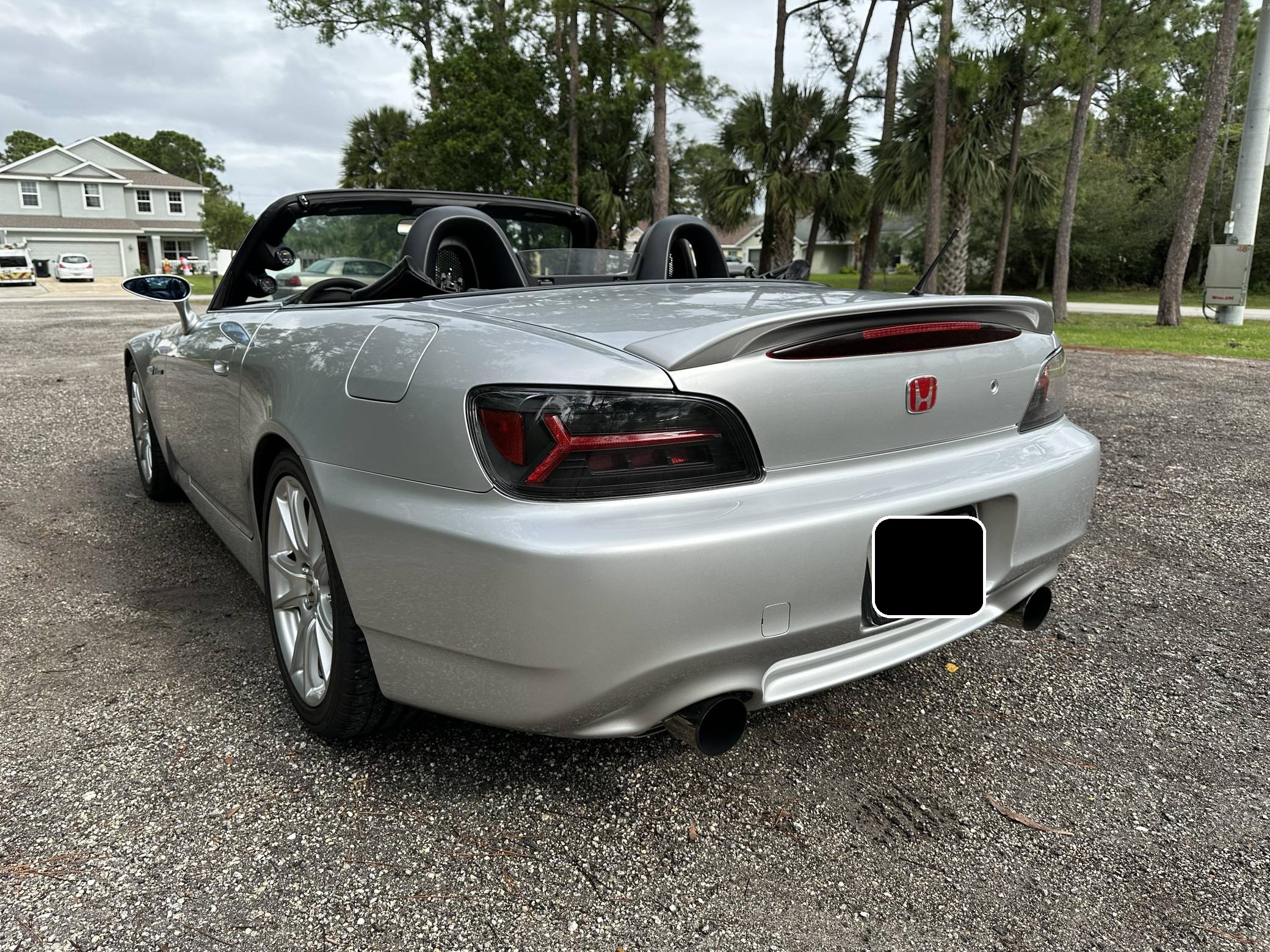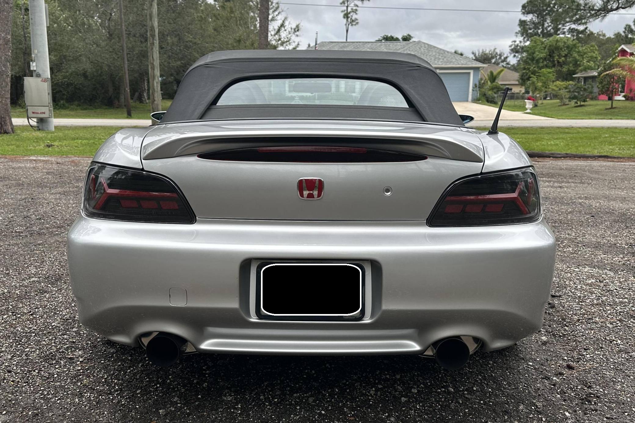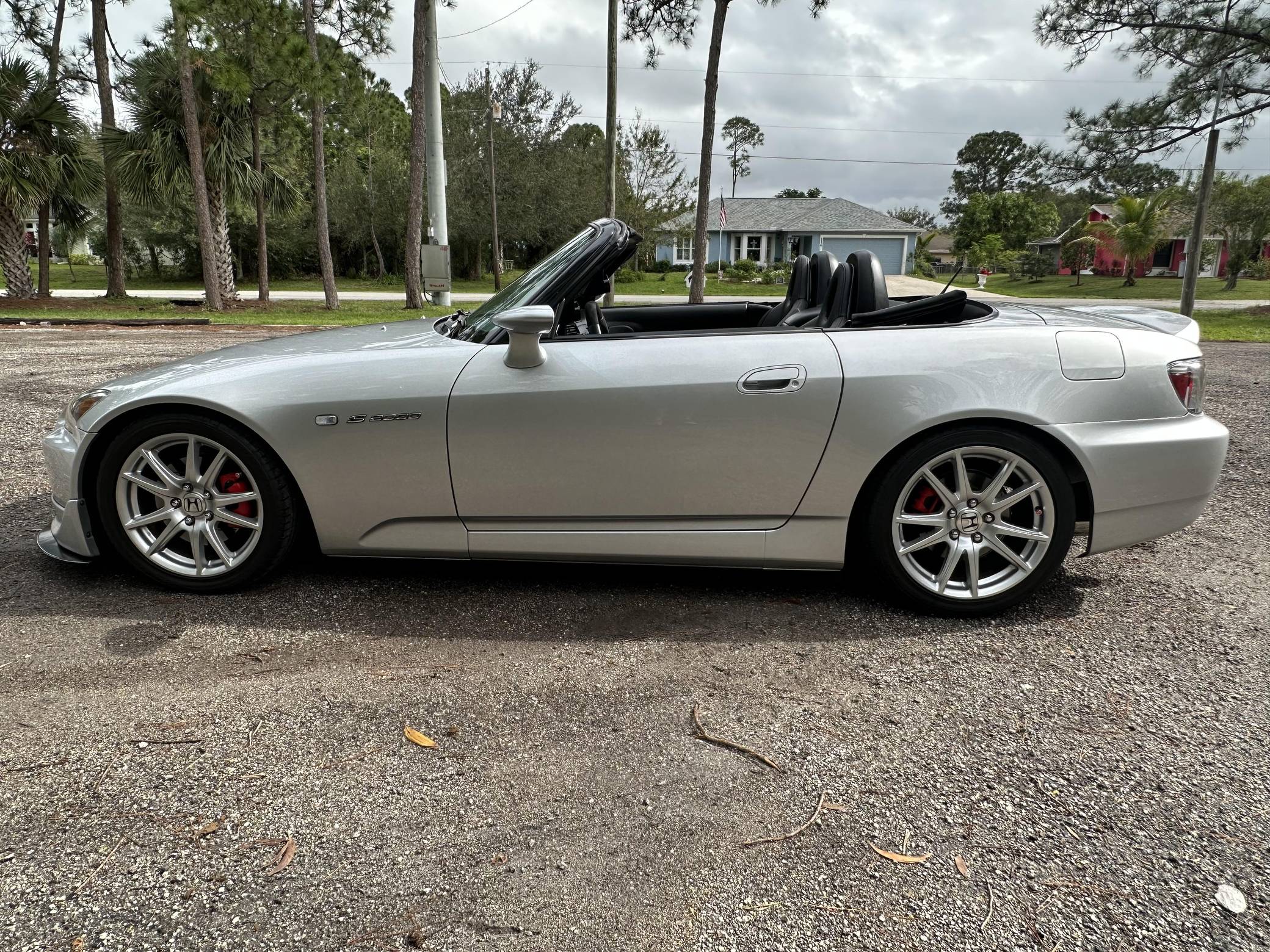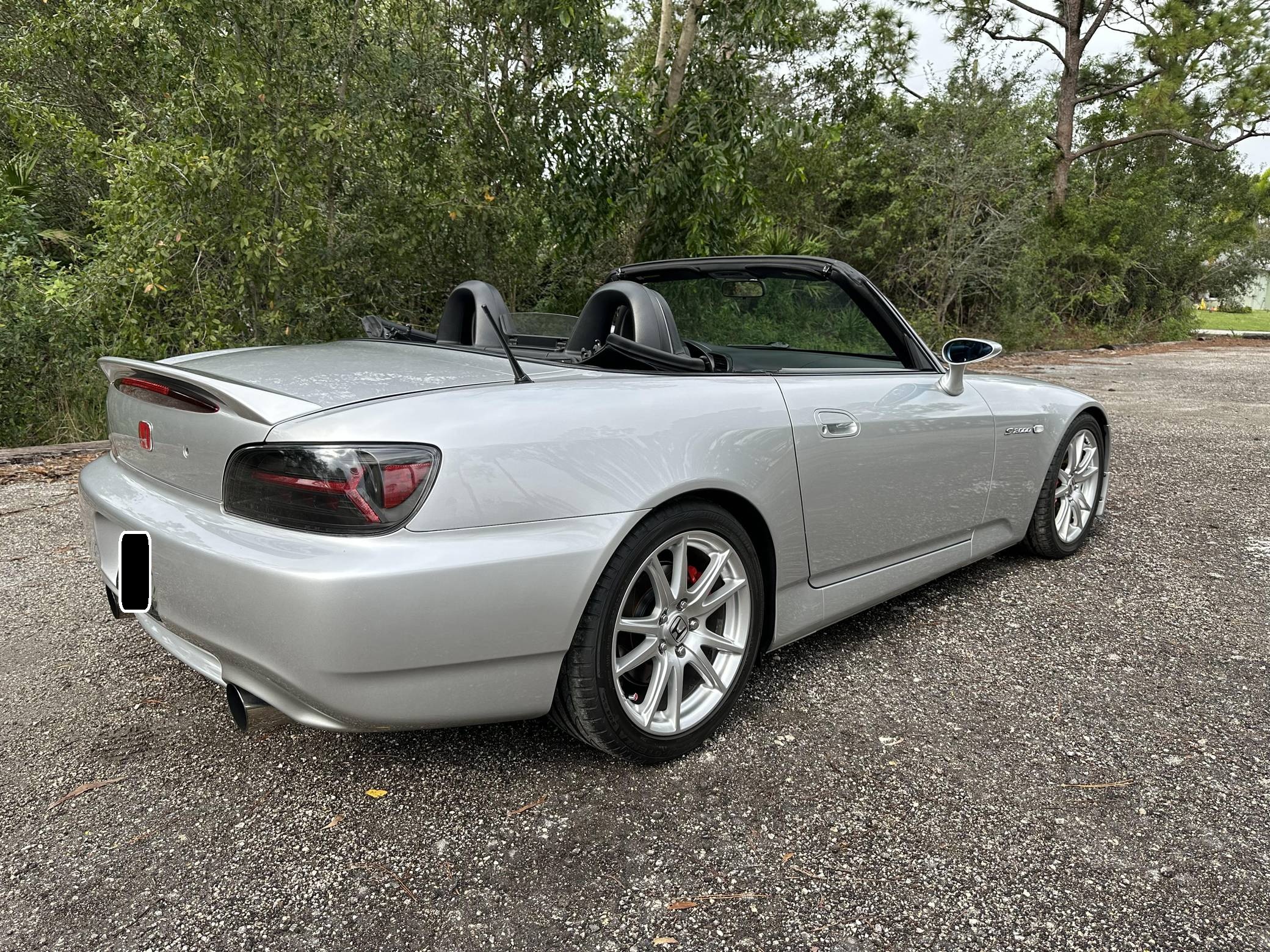 THIS. . . is a 2004 Honda S2000, finished in Sebring Silver Metallic with a black soft top and a black interior. This S2000 is equipped with the desirable 6-speed manual transmission. Equipment includes 17-inch alloy wheels, a limited-slip differential, a power-operated soft top, leather upholstery, a digital instrument cluster, air conditioning, power windows, mirrors, and locks, and more as detailed below. A partial list of modifications reported by the seller includes a Paxton 1200 supercharger, a Medallion exhaust system with high-flow catalytic converter, Hondata-modified ECU, a Devsport front lip, aftermarket shift knob and steering wheel, and a Kenwood Bluetooth-capable stereo. The Honda S2000 is beloved for its driver-focused interior, taught handling, 50:50 weight distribution, and high-revving engine. The refreshed AP2 model was introduced in 2004 with changes to the exterior cosmetics, lighting, exhaust pipes, increased-diameter alloy wheels, a revised interior, and raising the "F22" motor displacement from 2. 0 to 2. 2-liters. Production ended in 2009. Power comes from a 2. 2-liter "F22C" inline-4, rated at 240 horsepower and 162 lb-ft of torque in stock form. As a result of the modifications, this engine is now making 426 horsepower and 265 lb-ft of torque at the rear wheels, according to an included dyno sheet shown in the gallery. Output is sent to the rear wheels through a 6-speed manual transmission.