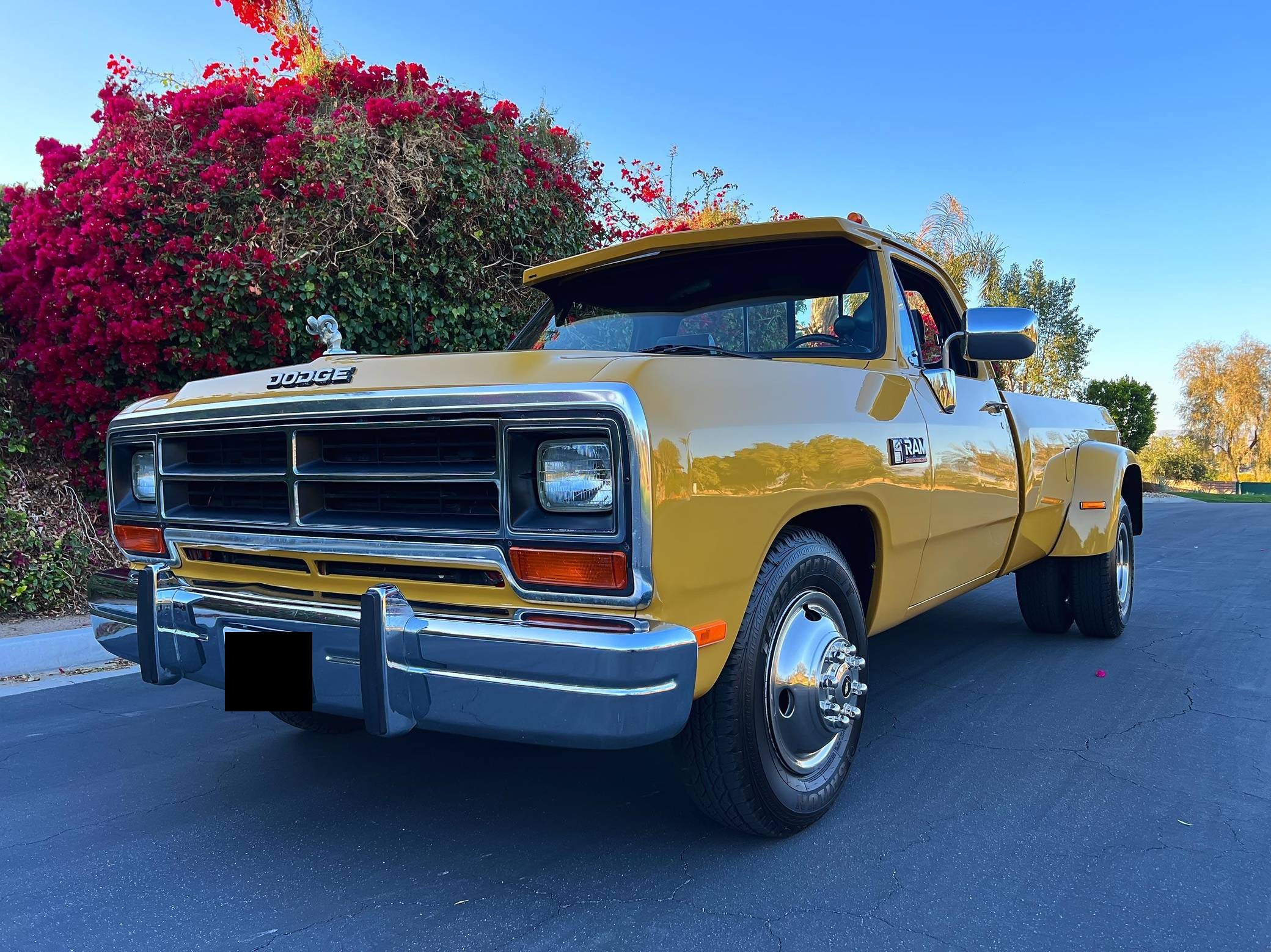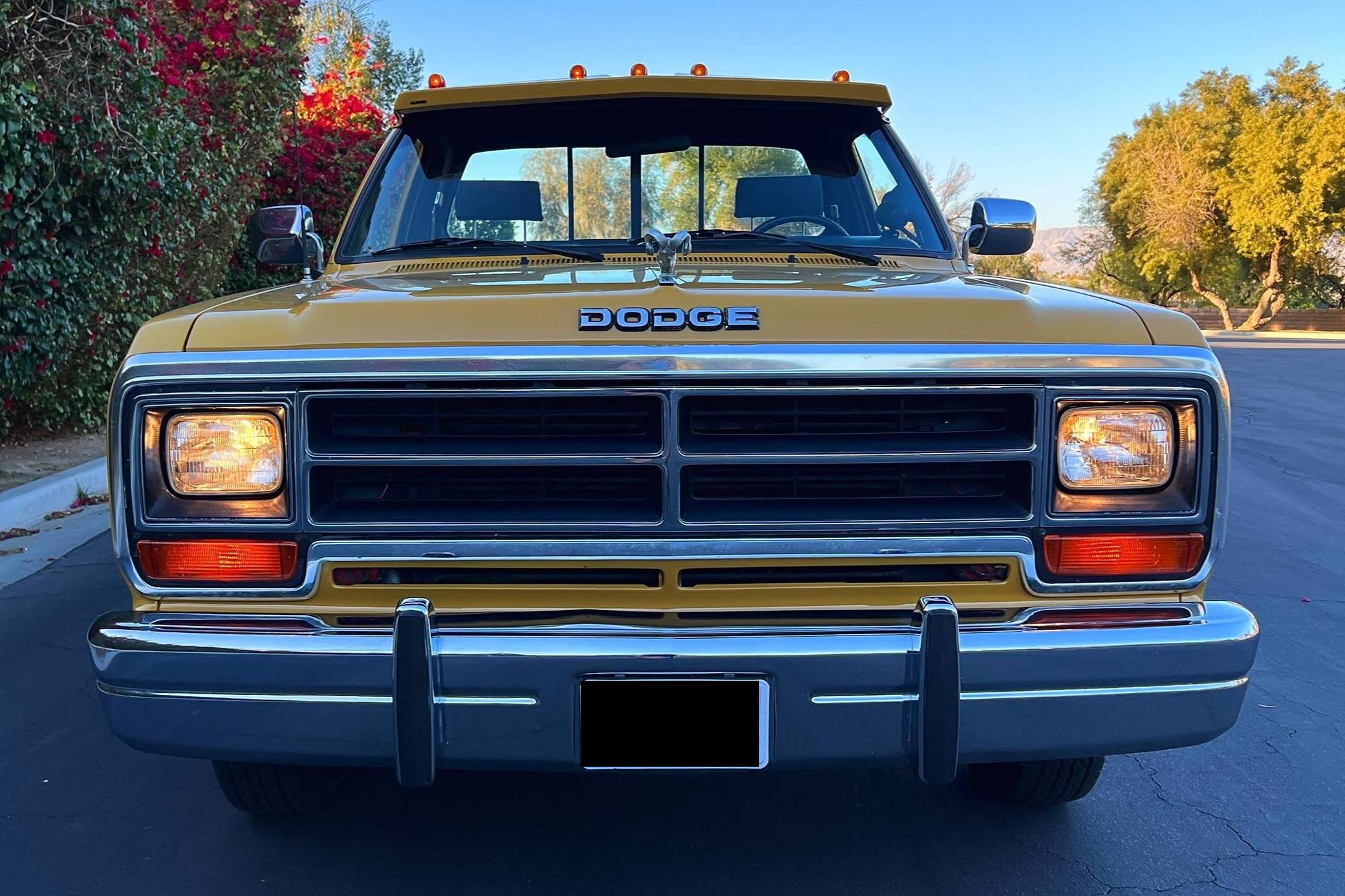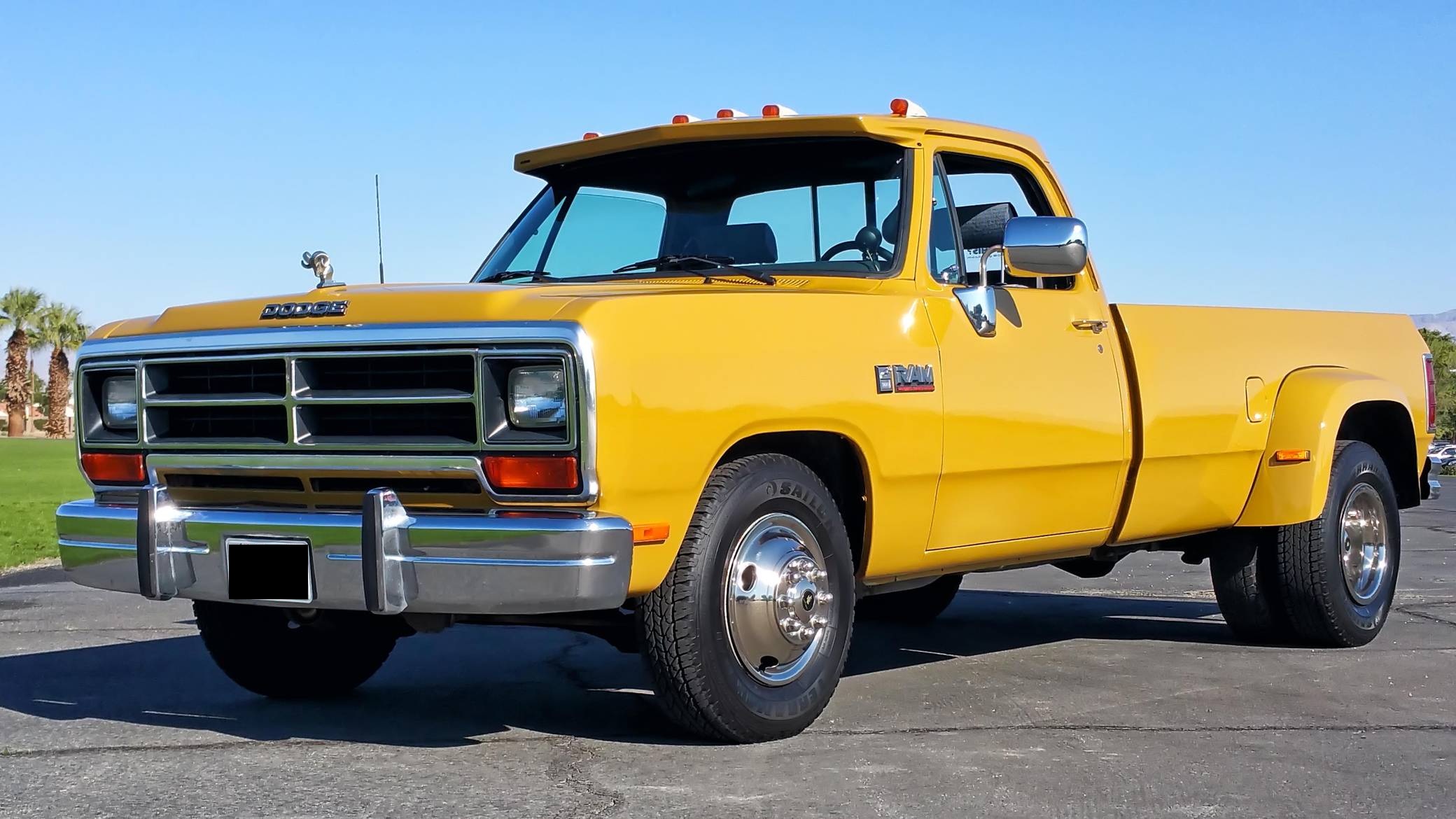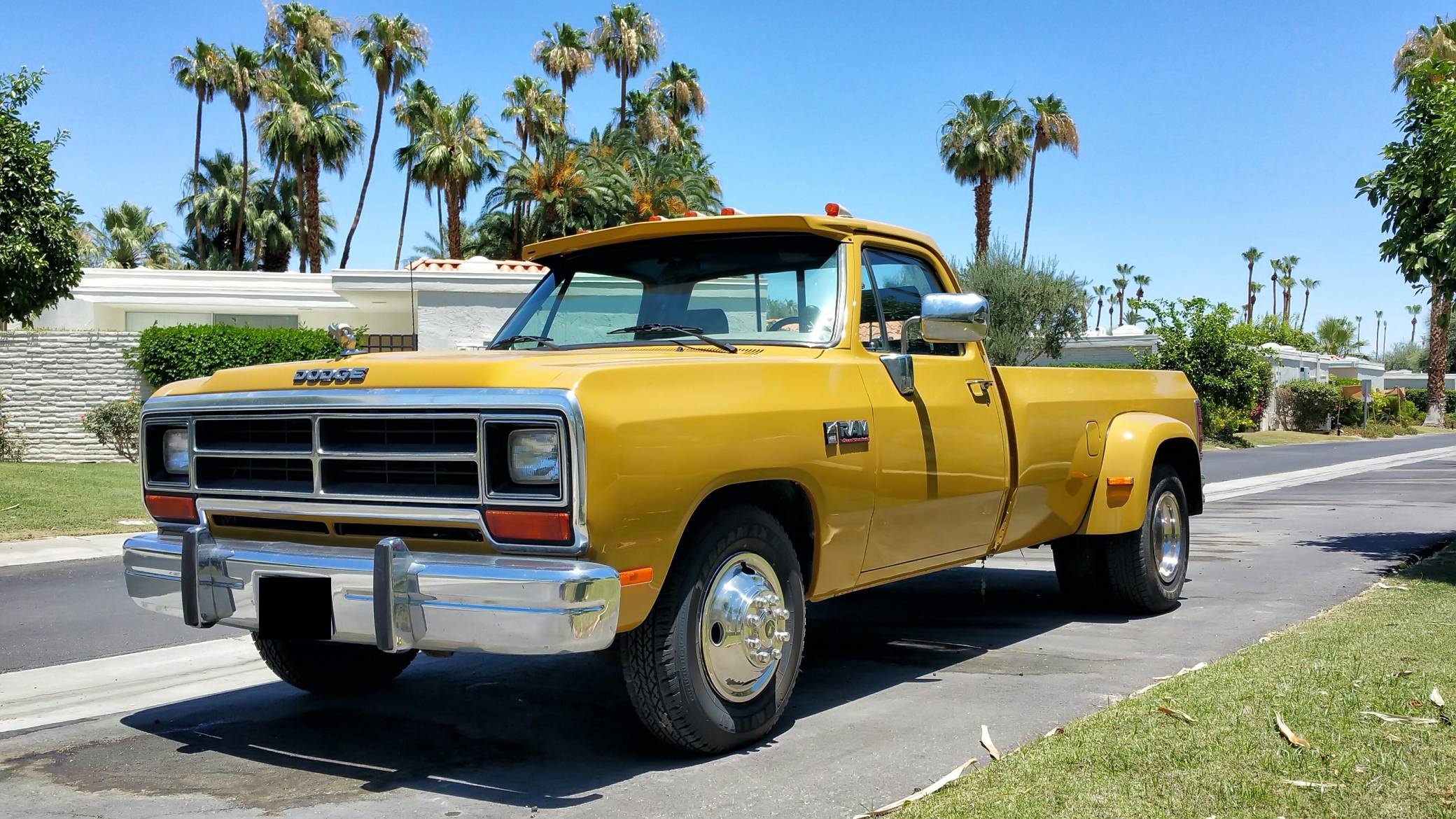 THIS. . . is a 1990 Dodge Ram D350, finished in Mustard Yellow with a blue interior. Factory equipment includes 16-inch wheels, an engine block heater, bright front and rear bumpers, cab clearance lights, a trailer hitch, cloth upholstery, a bench seat, power-operated windows, a sliding rear window, and air conditioning, according to a build sheet pictured in the gallery. Modifications reported by the seller include a Gear Vendors under/overdrive system, Mustard Yellow exterior paint, a spray-in bedliner, aftermarket hubcaps, and a custom-made center console. Dodge released the third-generation D-Series trucks for 1972. Offered in numerous configurations, the pickups featured a more modern-looking exterior design, several mechanical improvements, and a longer list of creature comforts (including a larger windshield to improve visibility). 1981 brought a new-look exterior design and the Ram designation, and production ended in 1993. Power comes from a 5. 9-liter "Cummins" turbodiesel straight-6, rated at 160 horsepower and 400 lb-ft of torque. It spins the rear wheels via a 3-speed automatic transmission.