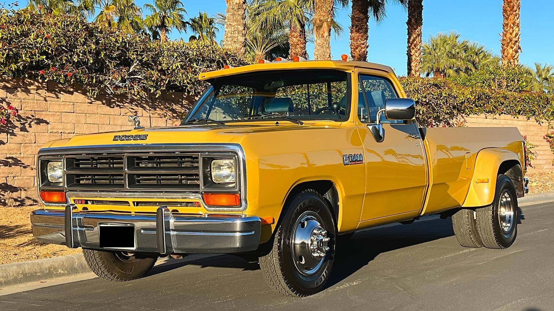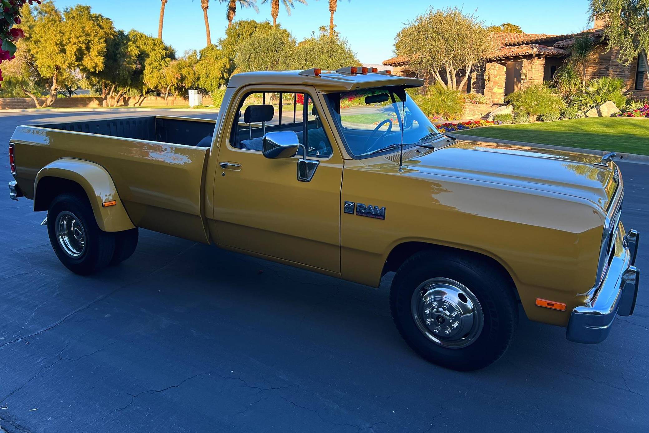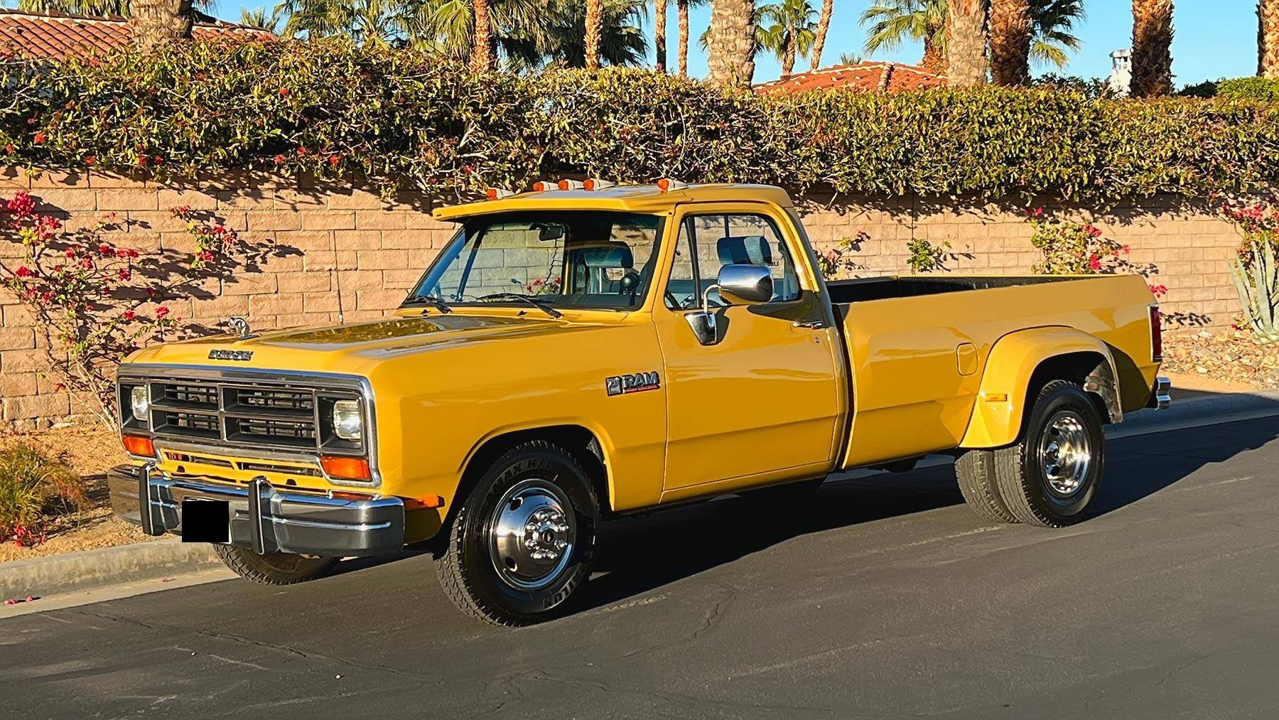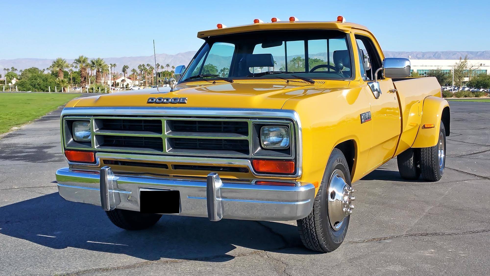 THIS. . . is a 1990 Dodge Ram D350, finished in Mustard Yellow with a blue interior. Factory equipment includes 16-inch wheels, an engine block heater, bright front and rear bumpers, cab clearance lights, a trailer hitch, cloth upholstery, a bench seat, power-operated windows, a sliding rear window, and air conditioning, according to a build sheet pictured in the gallery. Modifications reported by the seller include a Gear Vendors under/overdrive system, Mustard Yellow exterior paint, a spray-in bedliner, aftermarket hubcaps, and a custom-made center console. Dodge released the third-generation D-Series trucks for 1972. Offered in numerous configurations, the pickups featured a more modern-looking exterior design, several mechanical improvements, and a longer list of creature comforts (including a larger windshield to improve visibility). 1981 brought a new-look exterior design and the Ram designation, and production ended in 1993. Power comes from a 5. 9-liter "Cummins" turbodiesel straight-6, rated at 160 horsepower and 400 lb-ft of torque. It spins the rear wheels via a 3-speed automatic transmission.