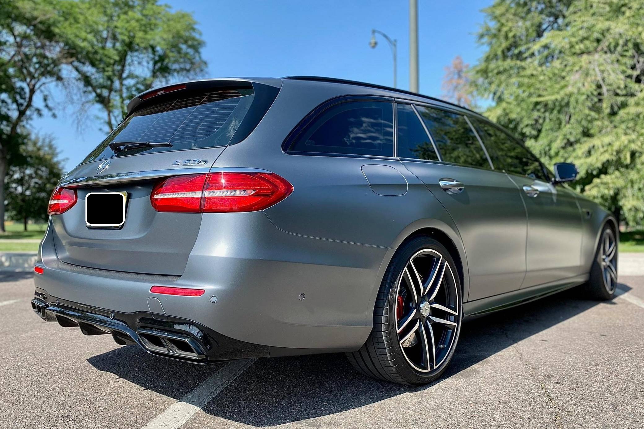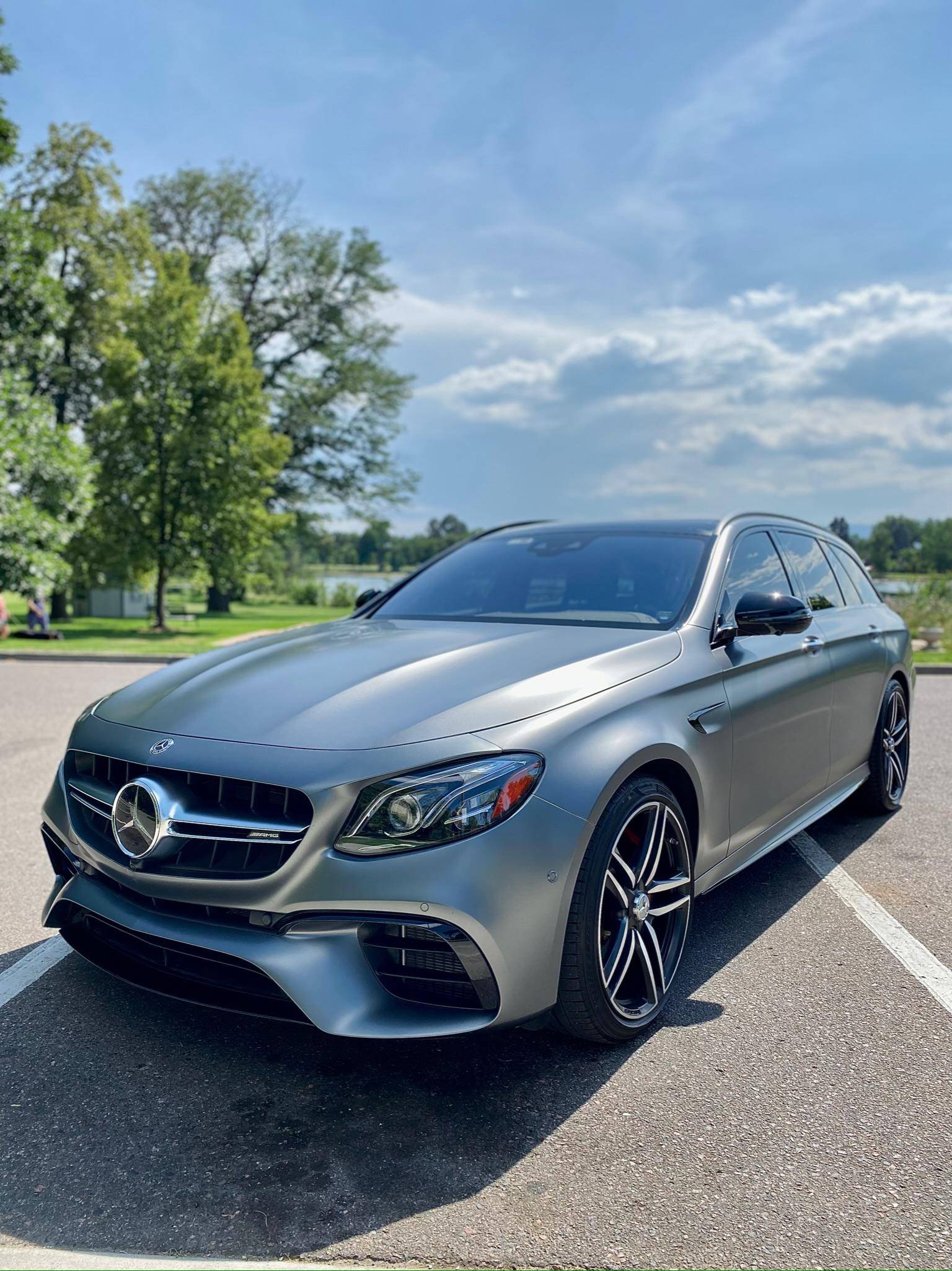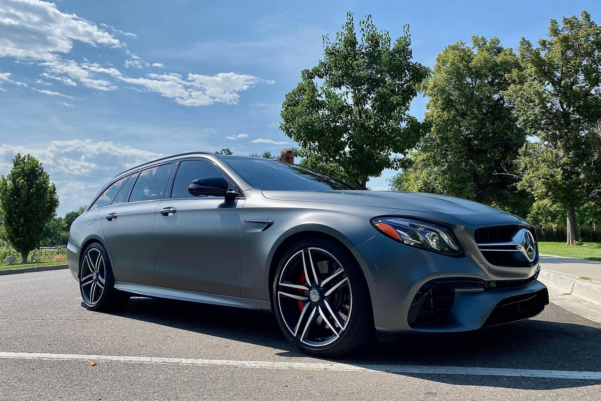 2019 Mercedes-AMG E63 S Wagon, finished in Designo Selenite Grey Magno with a black interior. The build sheet pictured in the gallery reveals that this wagon cost $120,325 when new. Highly optioned, it's equipped with Acoustic Comfort, Exterior lighting, Warmth and Comfort, AMG Night, and Driver Assistance Packages, 20-inch AMG Twin 5-Spoke wheels, remote start, red brake calipers, a sunroof, Nappa leather and Dinamica upholstery, power-operated heated and ventilated front seats, heated rear seats, Natural Grain Black Ash wood trim, and Apple CarPlay and Android Auto capabilities. Modifications reported by the seller include XPEL paint protection film, fender badges deleted, and window tint. Released for 2018, the "W213"-based E63 and E63 S arrived with a more fluid design, a smaller yet more powerful engine, and a drift mode that can send 100% of the engine's torque to the rear wheels. The wagon variant (called "S213" internally) was exclusively offered in S tune, so it landed as the most expensive member of the E-Class range. Power comes from a twin-turbocharged 4. 0-liter V8, rated at 603 horsepower and 627 lb-ft of torque. Hand-built, it spins the four wheels via a 9-speed automatic transmission and Mercedes-Benz's 4Matic+ permanent all-wheel-drive system.