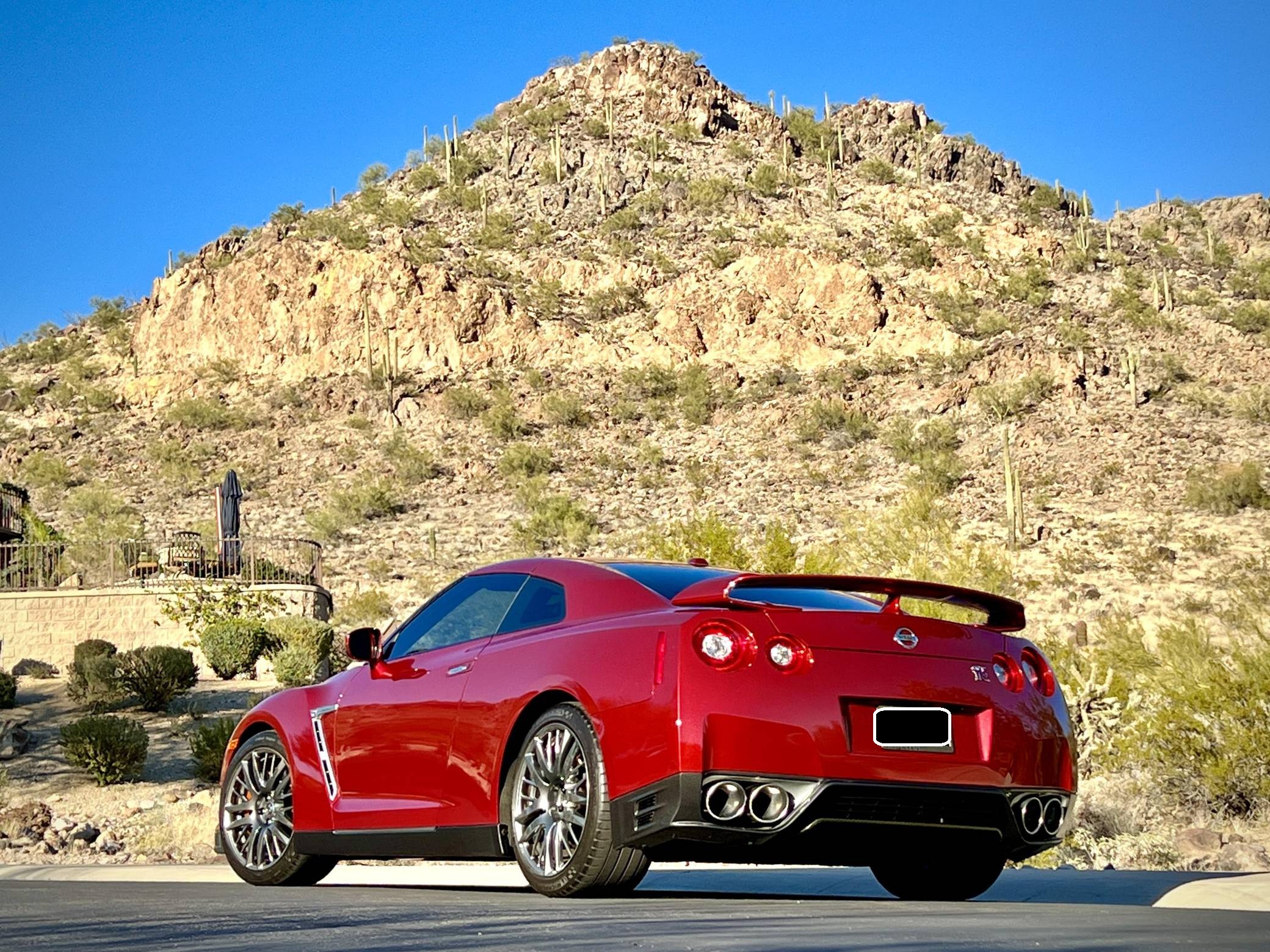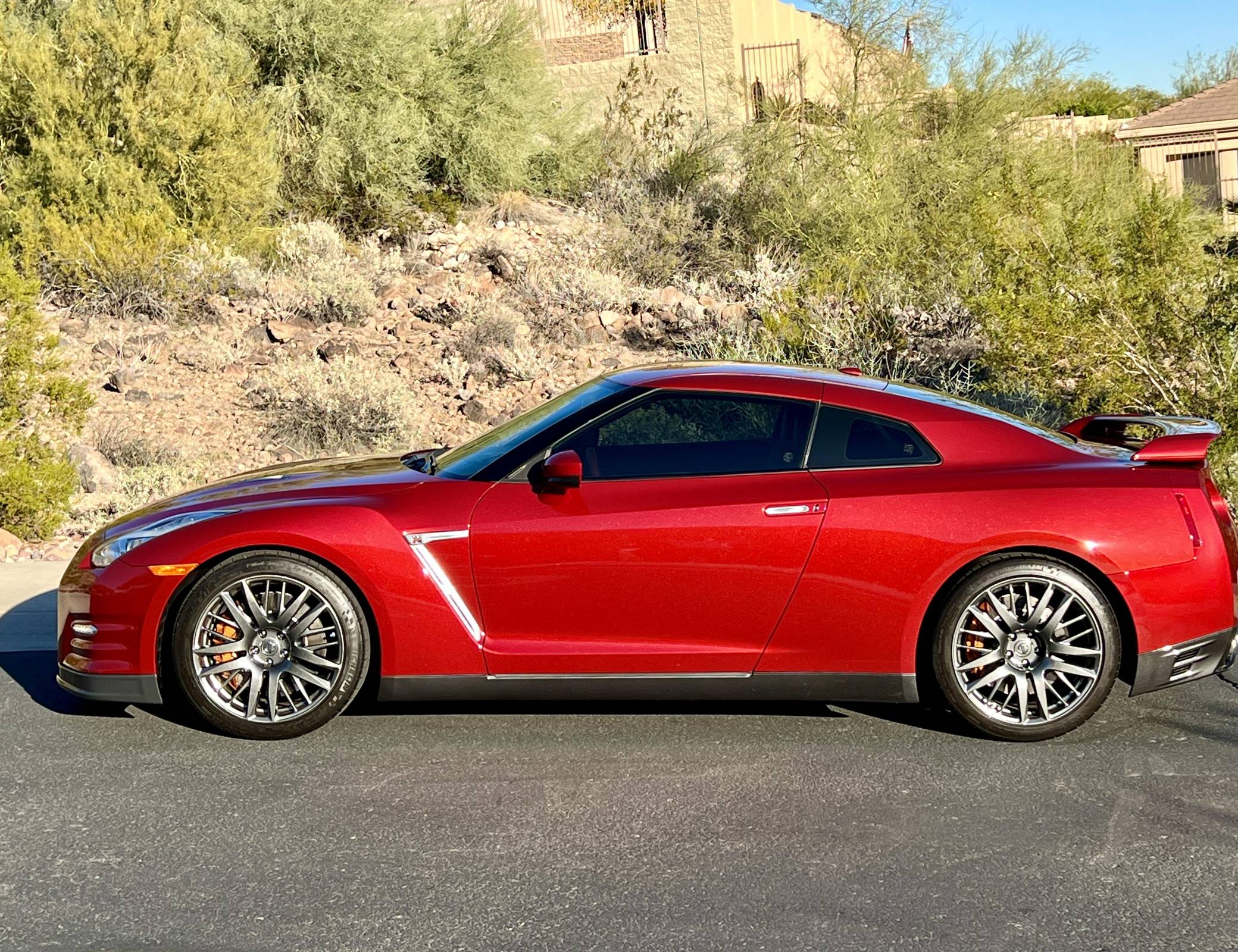 2016 Nissan GT-R Premium, finished in Regal Red with a Red Amber interior. This Premium model is equipped with 20-inch wheels, a Brembo braking system, carbon fiber interior trim, heated and power-adjustable front seats, a Bose sound system with 9 speakers and 2 subwoofers, and a navigation system, among other features. The seller reports no modifications. Called "R35" internally, and Godzilla by its legions of fans, the GT-R arrived for 2009 as the performance bargain of its decade. It's still sold new in 2022. Power comes from a 3. 8-liter twin-turbocharged V6, rated at 545 horsepower and 463 lb-ft of torque. It spins the four wheels via a 6-speed automatic transmission linked to a pair of shift paddles.