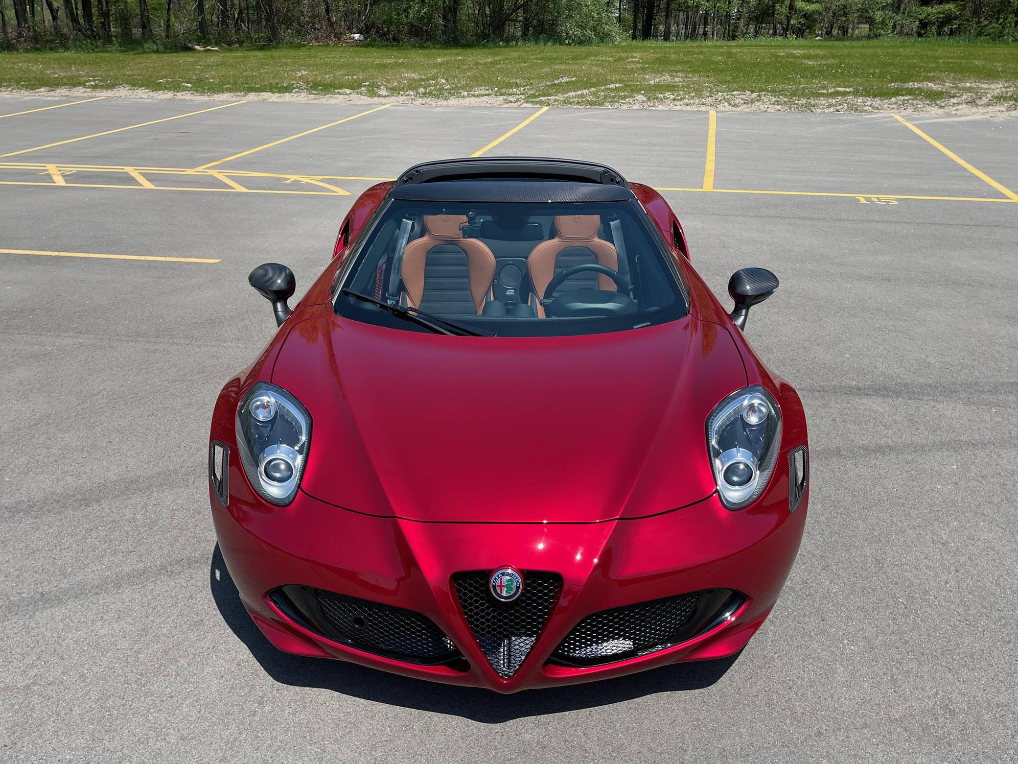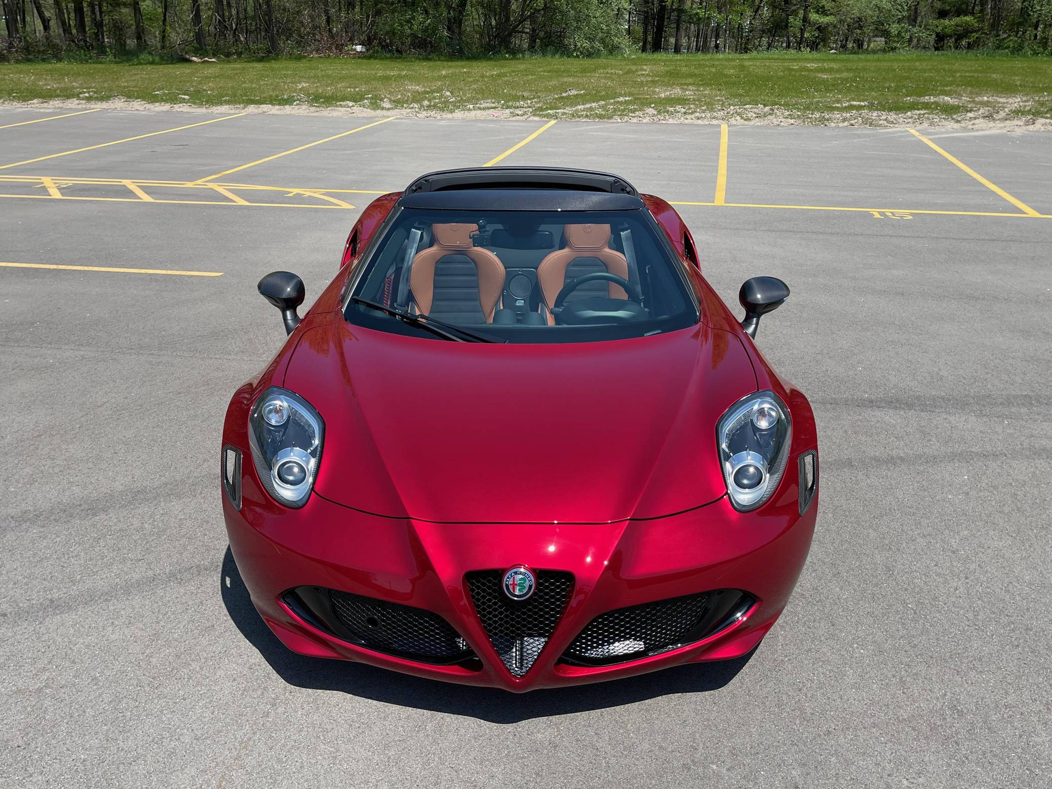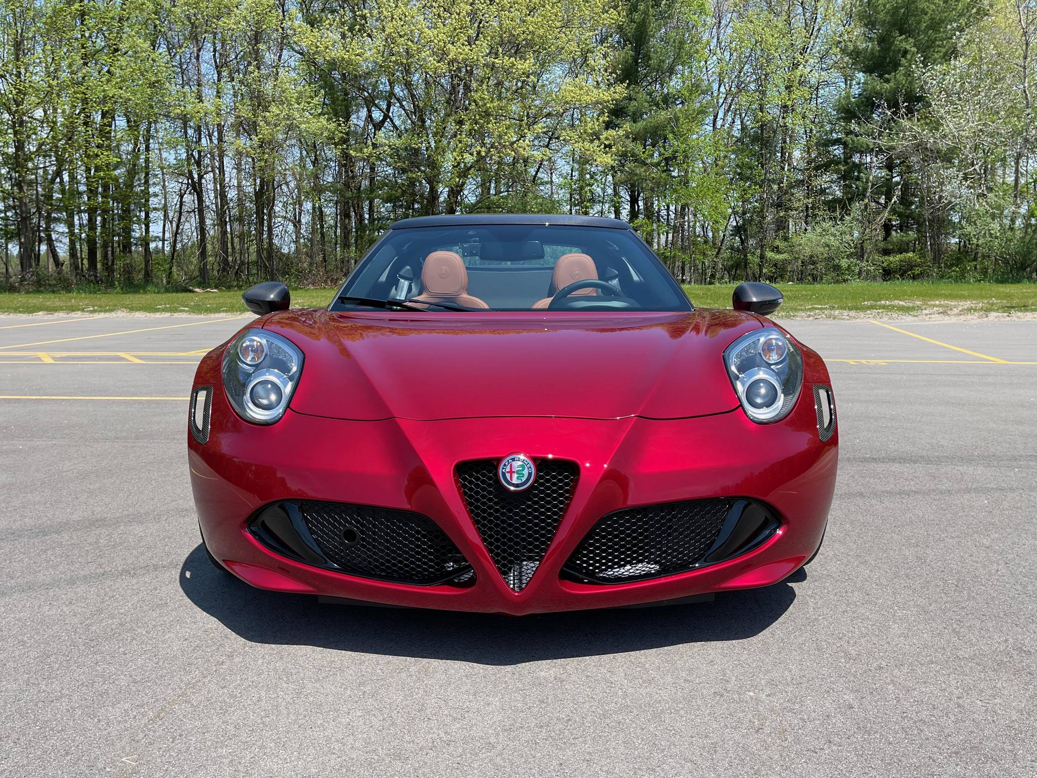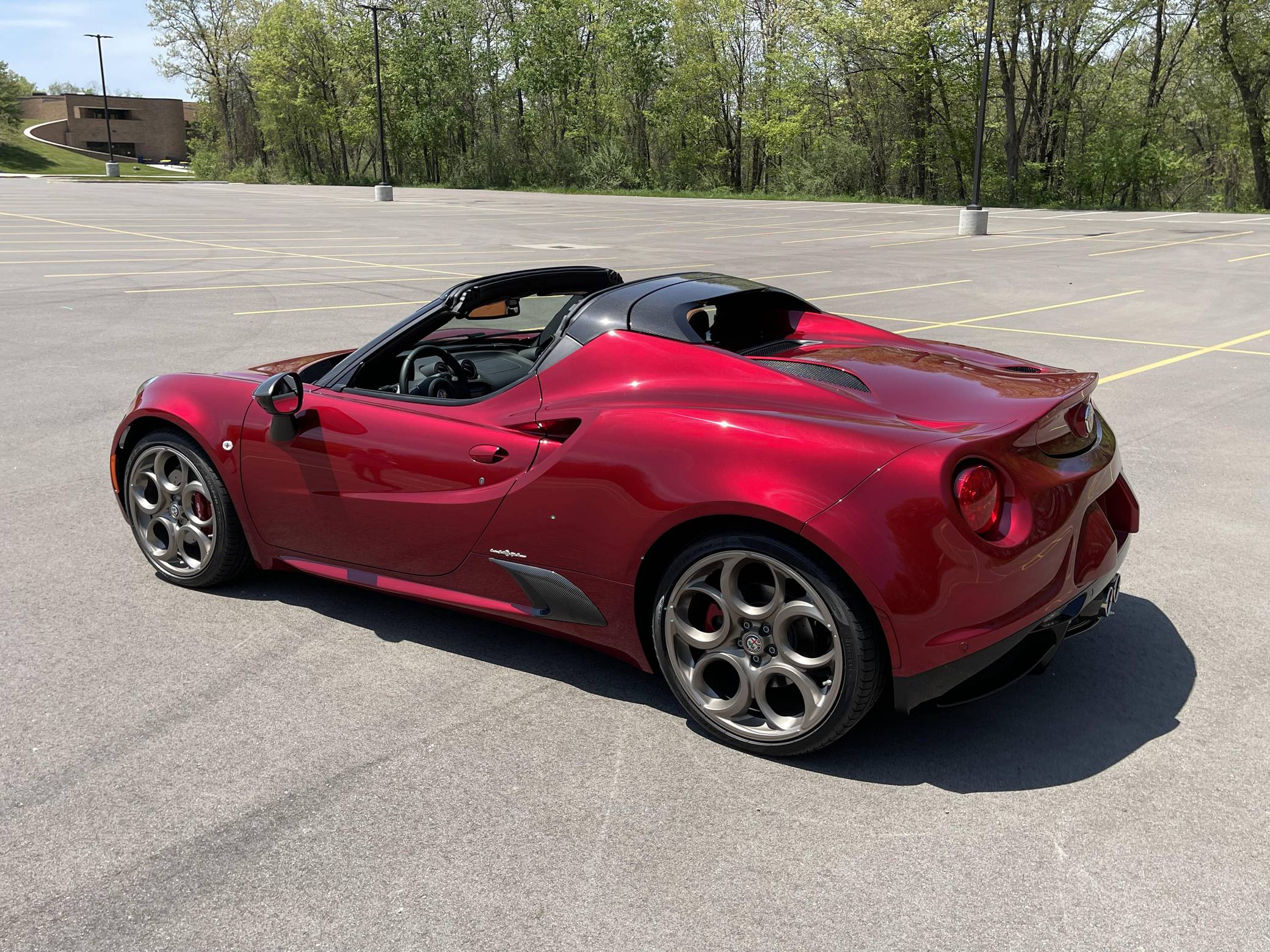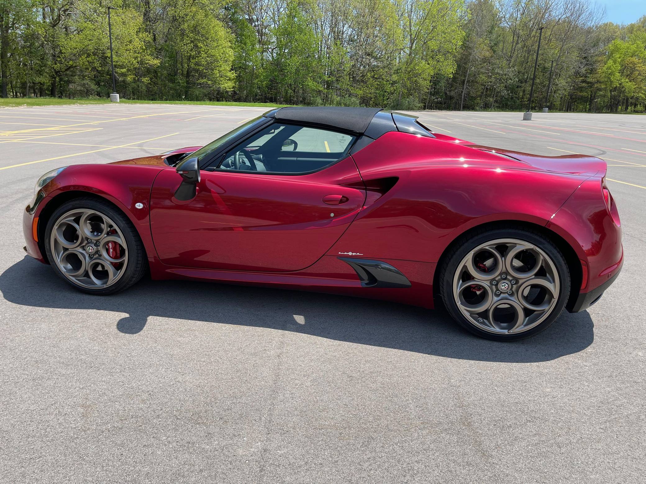 2020 Alfa Romeo 4C Spider 33 Stradale Tributo, finished in Rosso Villa D’Este with a black soft top and a black/tobacco interior. This 4C Spider is a limited 33 Stradale Tributo model, and is one of 33 numbered examples for North America. Its odometer currently displays about 450 miles. Modifications reported by the seller are limited to paint-protection film on the front fascia, hood, fenders, headlights, mirror caps, windshield surround, and halo. Alfa Romeo launched the 4C for the 2015 model year to spearhead its long-awaited return to the American market. Offered as a coupe and as a Spider, it arrived as a hand-assembled two-seater built around a carbon-fiber tub. Low weight was this car's design brief, and at under 2,500 pounds, it didn't even need power steering. The special 33 Stradale Tributo edition was launched as a final edition of the small Italian sports car, paying tribute at the same time to the iconic 33 Stradale of the 1960s. Each one of the 33 examples produced is finished in tri-coat Rosso Villa D’Este over a black/tobacco interior, and featured gray-gold 5-hole wheels. This limited edition is also the only 4C Spider ever to be offered with a red-finish carbon fiber tub. Power for this 4C comes from a turbocharged 1. 8-liter inline-4, rated at 237 horsepower and 258 lb-ft of torque. Output is sent to the rear wheels via a 6-speed automatic transmission.