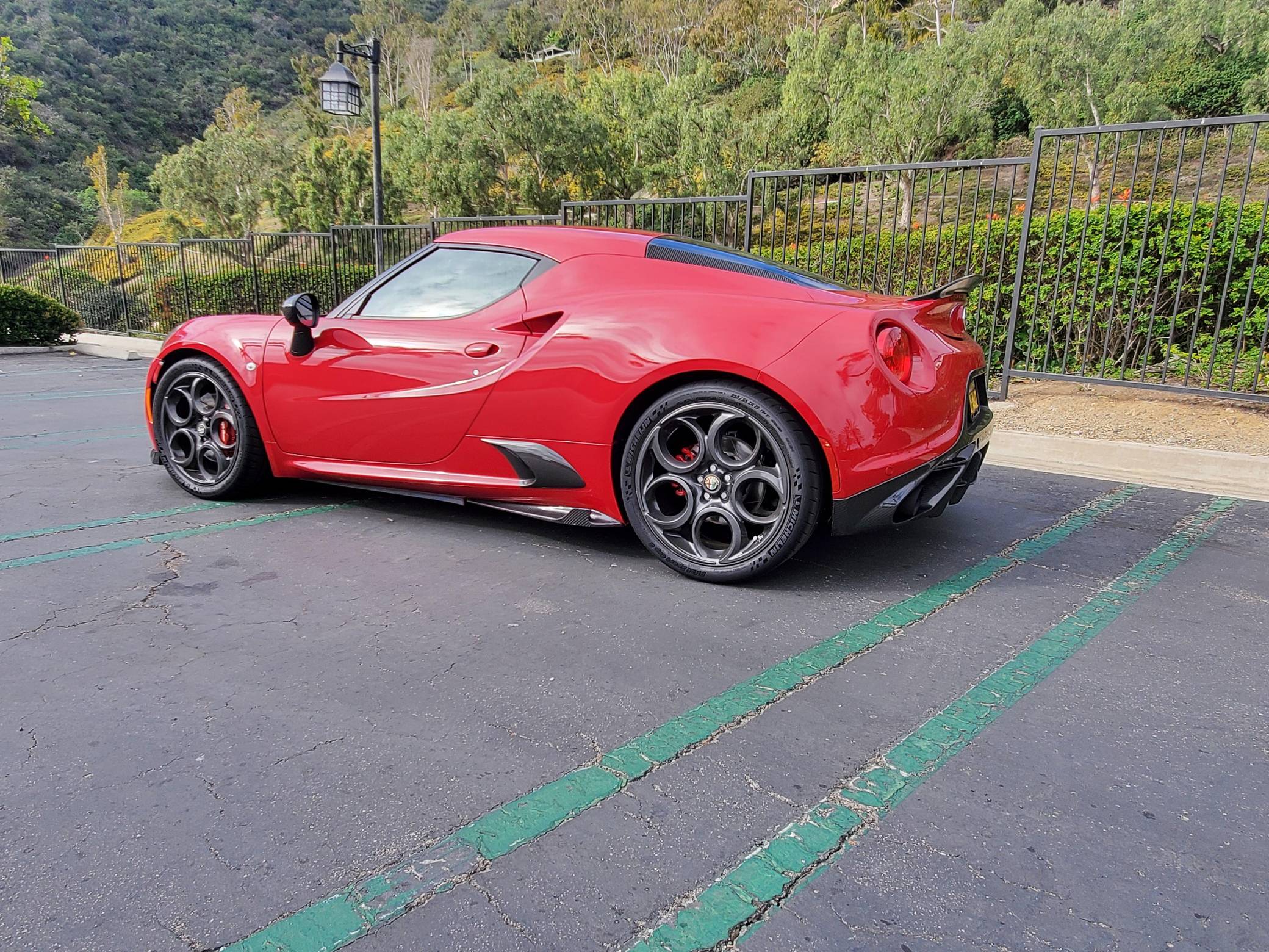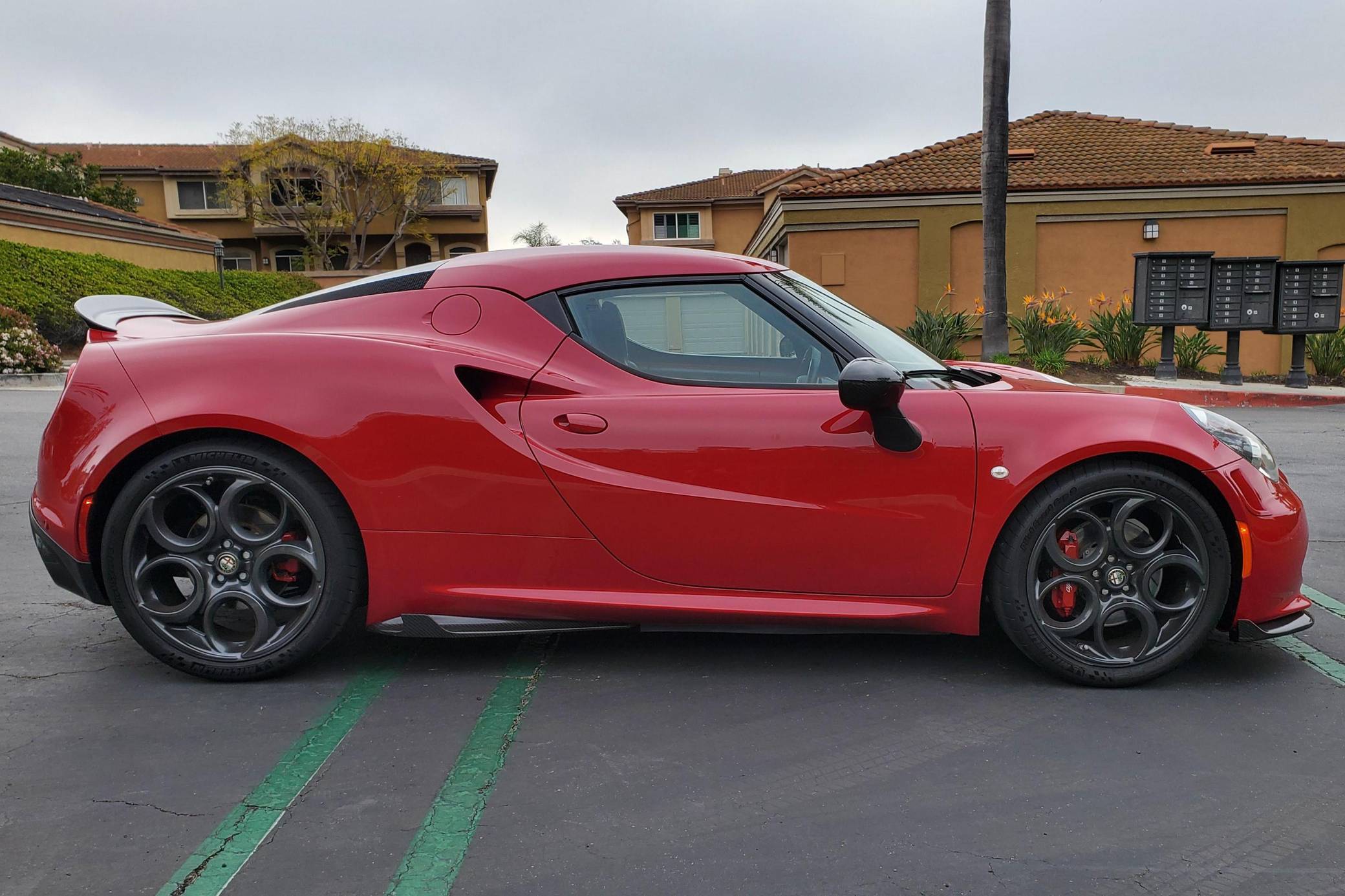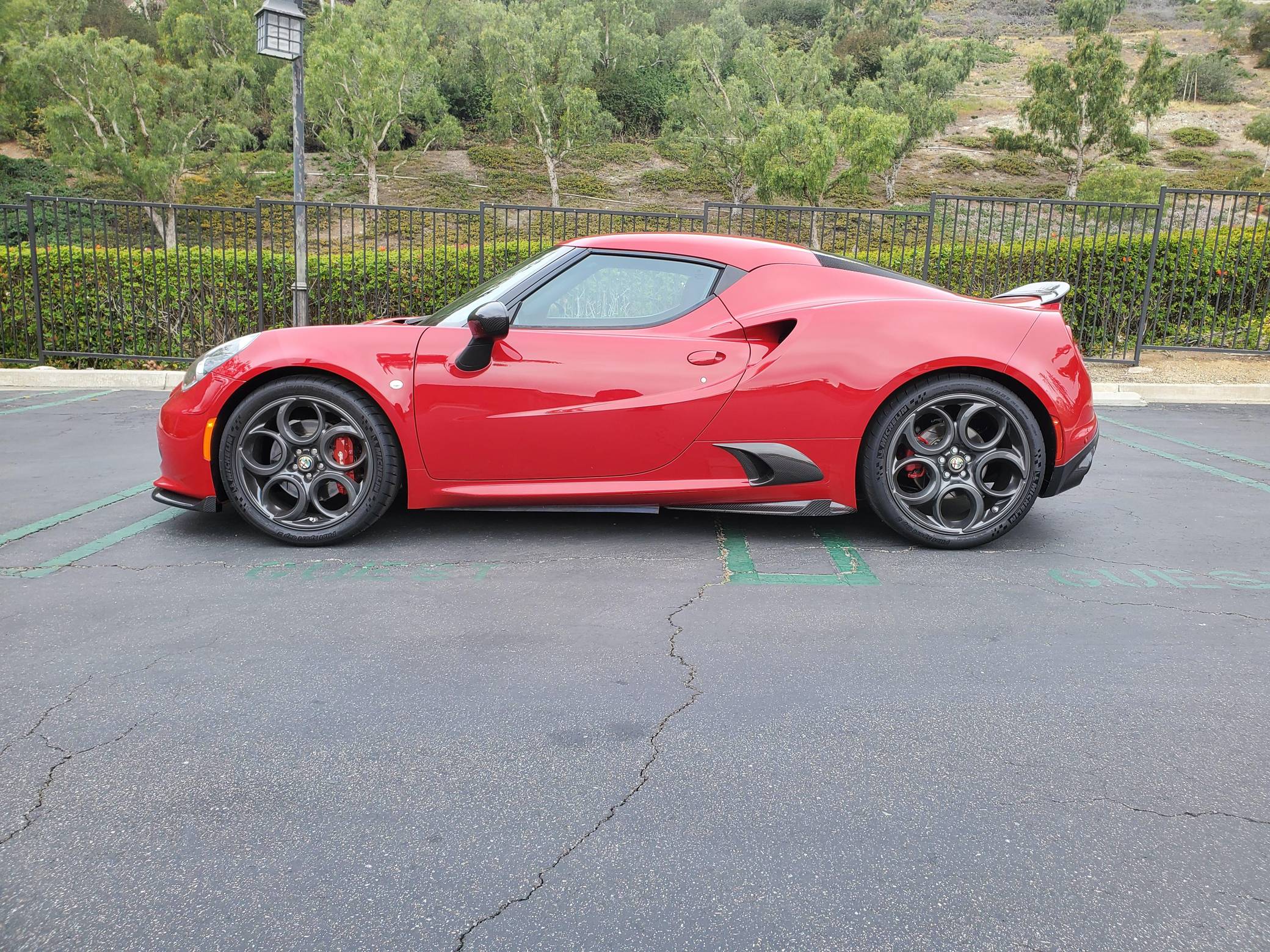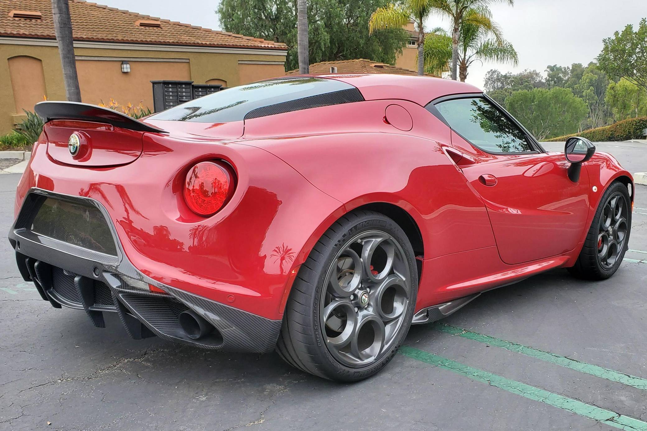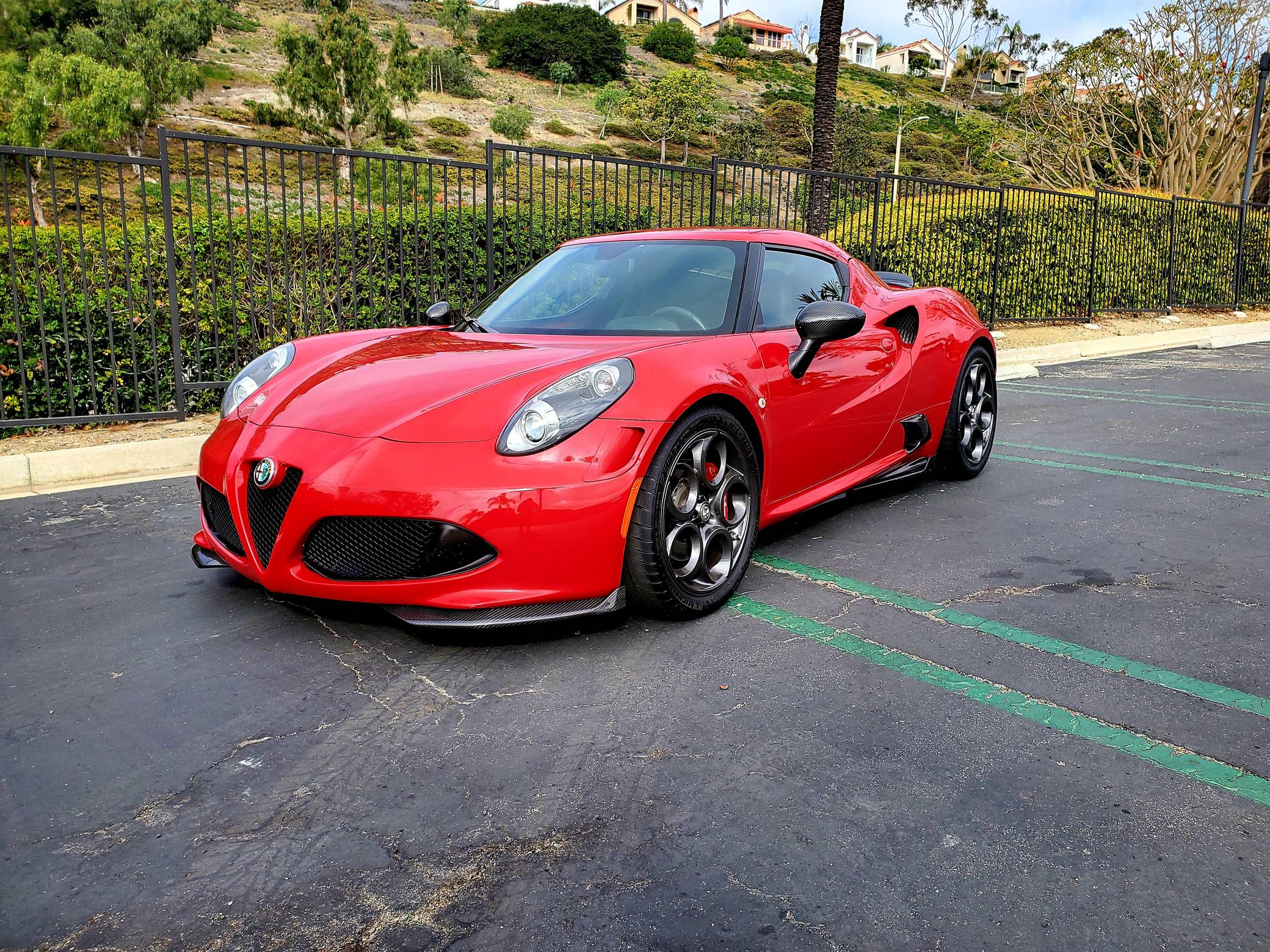 THIS… is a 2015 Alfa Romeo 4C Launch Edition, finished in Rosso Alfa with a black interior. The odometer currently displays approximately 25,200 miles. It also shows that it's been owned primarily in California. This Alfa Romeo 4C is #314 of the 500 Launch Edition models offered in North America. Modifications reported by the seller include a range of carbon fiber components from Koshi Group (front splitters, side skirt extensions, rear diffuser and flaps, extended paddle shifters), and more as detailed below. Alfa Romeo launched the 4C for the 2015 model year to spearhead its long-awaited return to the American market. Offered as a coupe and as a Spider, it arrived as a hand-assembled two-seater built around a carbon fiber tub. Low weight was this car's design brief, and at under 2,500 pounds, it didn't even need power steering. Power for this 4C comes from a 1. 75-liter turbocharged inline-4, rated at 237 horsepower and 258 lb-ft of torque. Output is sent to the rear wheels via a 6-speed automatic transmission linked to steering wheel-mounted paddle shifters.