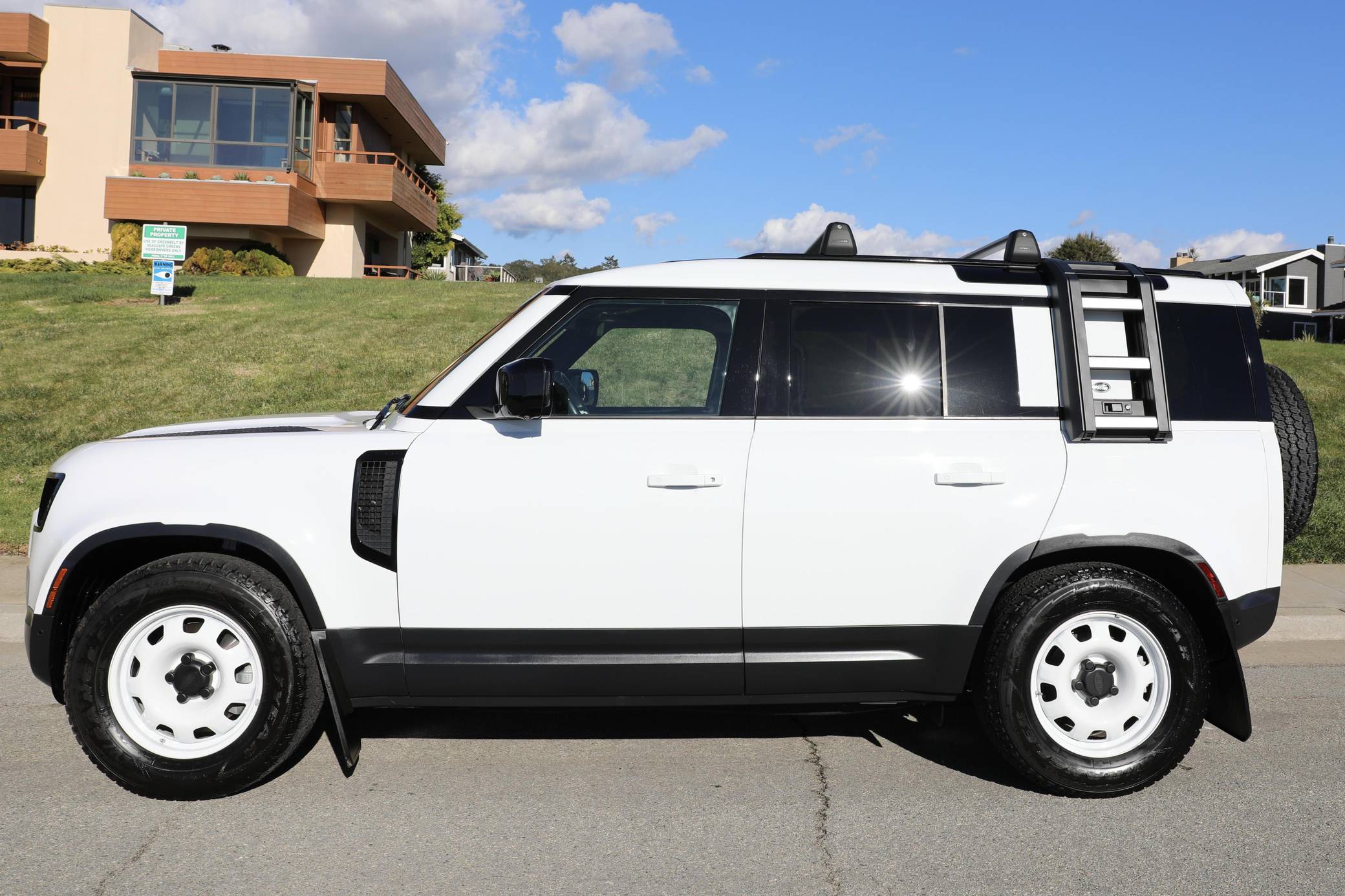 THIS… is a 2020 Land Rover Defender 110, finished in Fuji White with an Ebony interior. Modifications reported by the seller are limited to paint protection film on front fascia, hood, and side panels. Land Rover introduced the long-awaited second generation of the emblematic Defender for 2020, featuring the new “D7x” body structure packed with the latest off-road technologies and hardware. The range again includes short- and long-wheelbase models, but the latest Defender is far more upscale and high-tech than its beloved predecessor. Power comes from a 2. 0-liter turbocharged inline-4, rated at 296 horsepower and 295 lb-ft of torque. Output is sent to all 4 wheels via an 8-speed automatic transmission and a 2-speed transfer case.