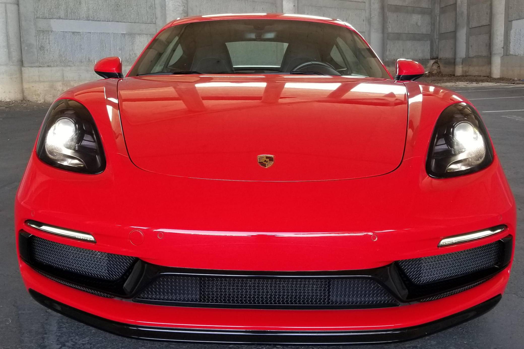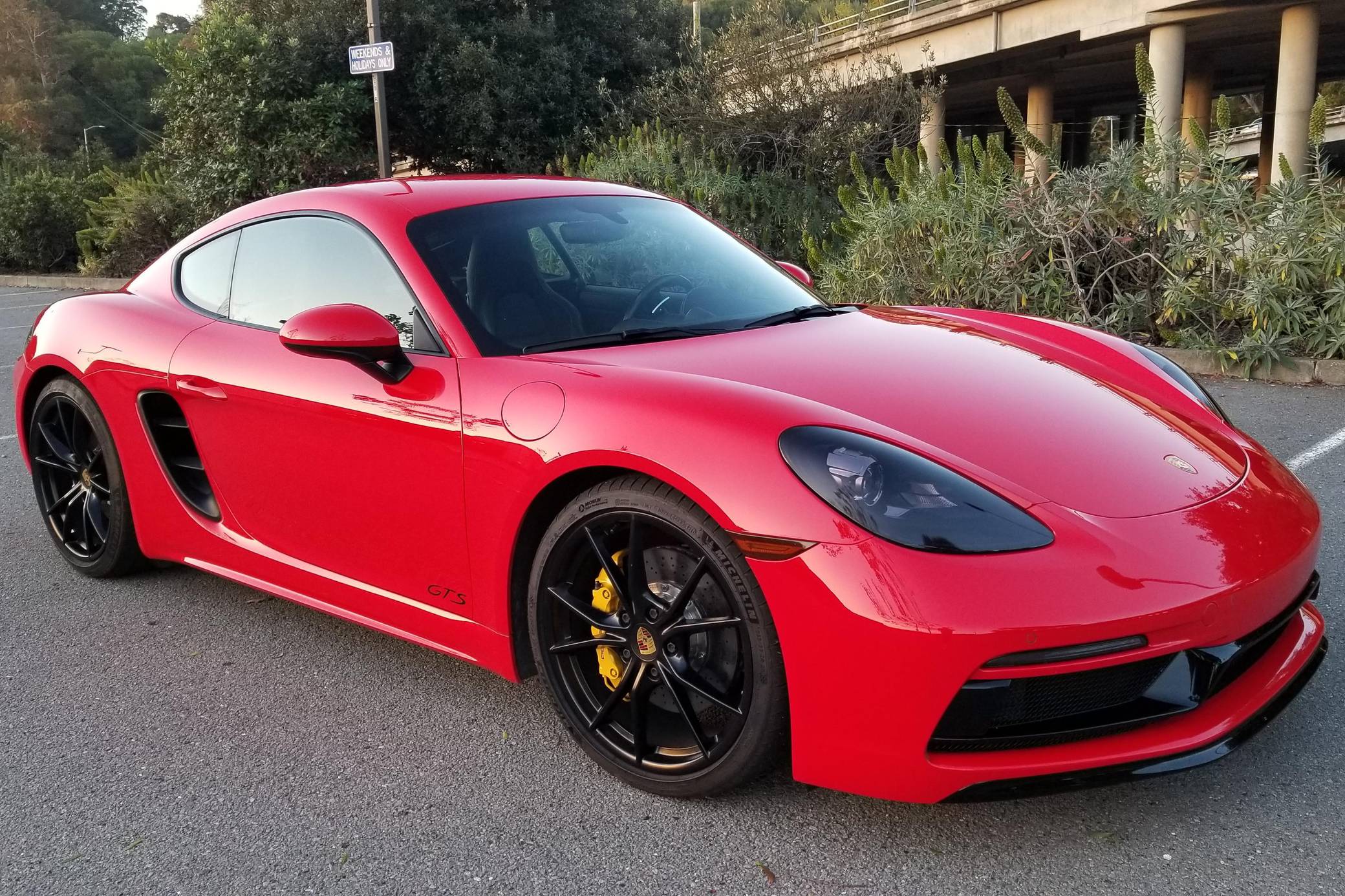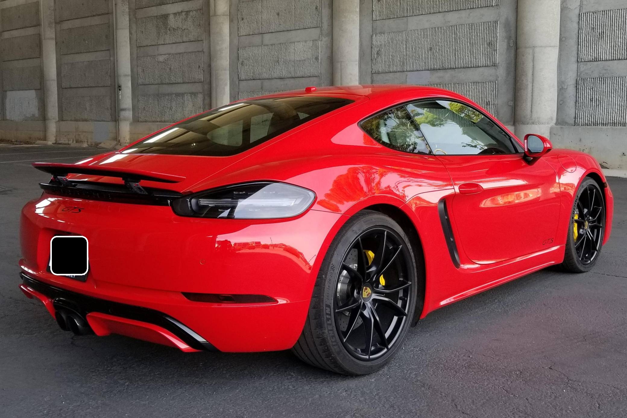 THIS. . . is a 2019 Porsche 718 Cayman GTS, finished in Guards Red with a black interior. It also shows California ownership from new. Modifications are limited to carbon fiber vinyl-wrapped interior trim, a "GTS" rear badge, and the application of paint protection film on the front bumper, hood, rocker panels, A-pillars, front and rear quarter panels, mirror caps, and roof. The "982" generation 718 Cayman debuted for the 2017 model year as an evolution on the Cayman nameplate, with the "718" designation paying homage to Porsche's 718 race cars from the 1950s. The model's powerplant was updated with a turbocharged 4-cylinder engine, and the result was a more powerful and more efficient car than its predecessor. The GTS model received a more powerful 2. 5-liter motor, as well as a Porsche Sport Exhaust and PASM adaptive suspension as standard equipment, among other upgrades over the S model. Power comes from a mid-mounted 2. 5-liter turbocharged flat-4, rated at 365 horsepower and 317 lb-ft of torque. Output is sent to the rear wheels via a 7-speed Porsche Doppelkupplung (PDK) transmission.