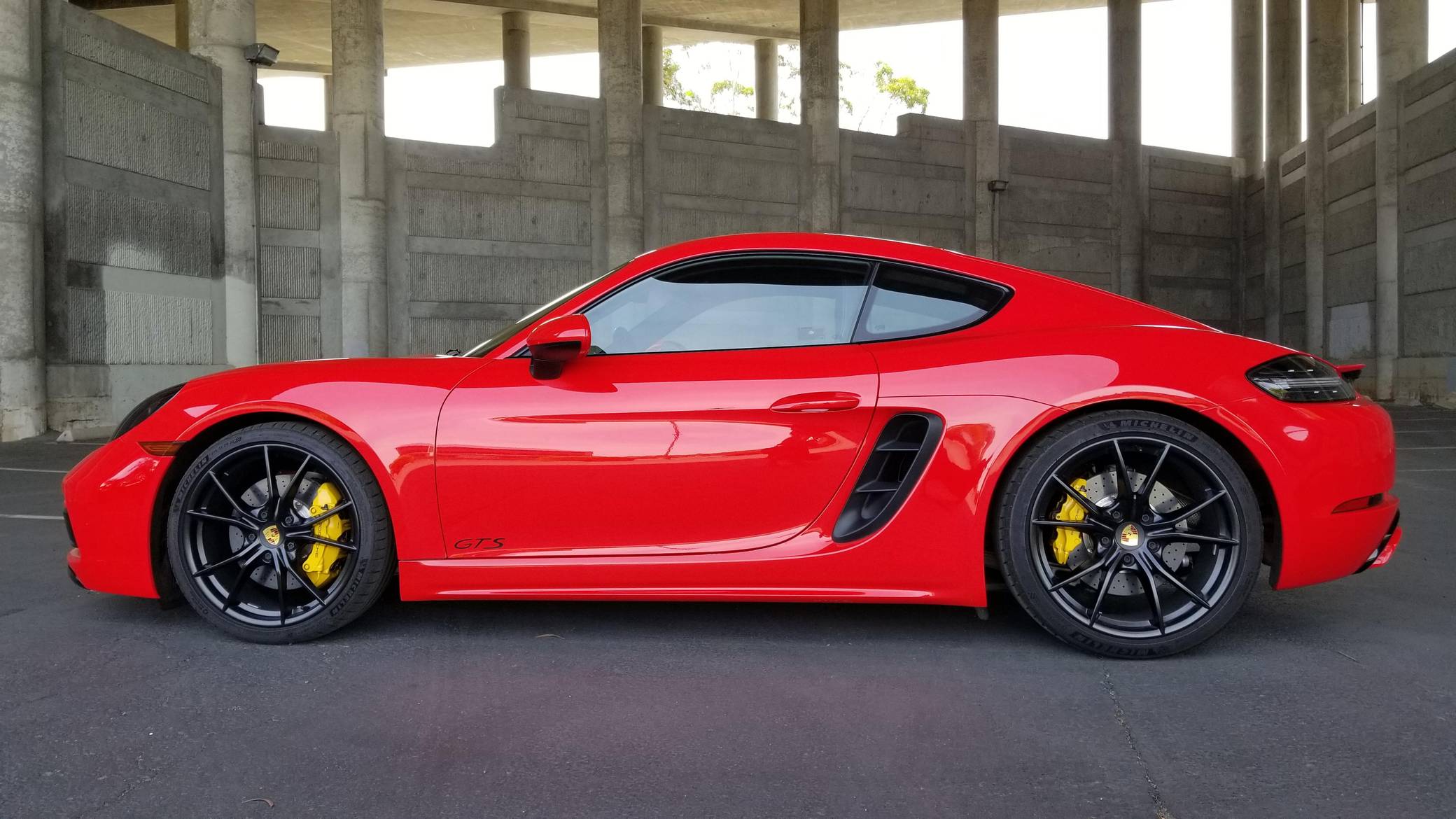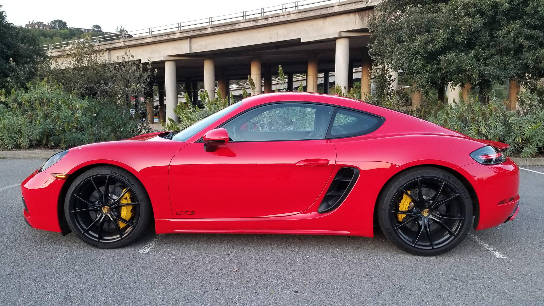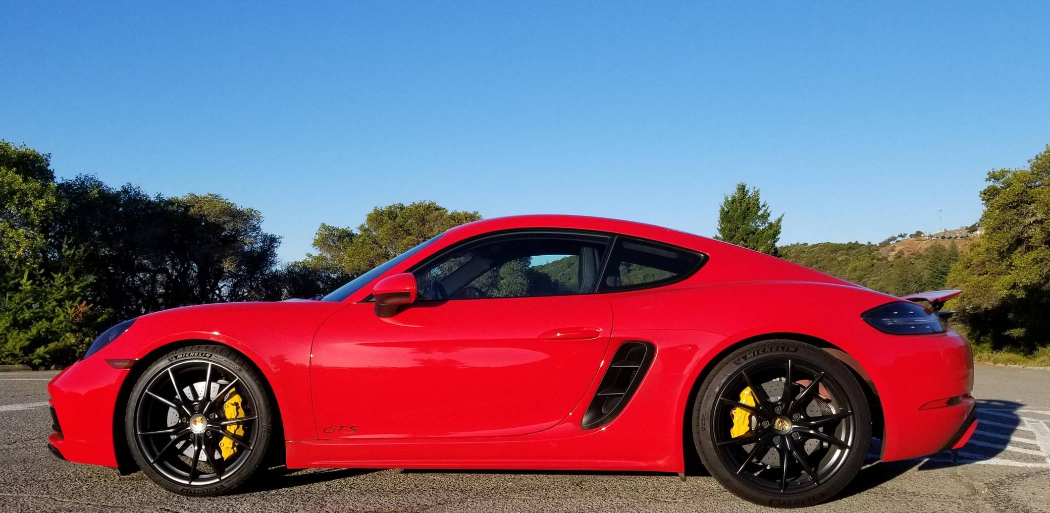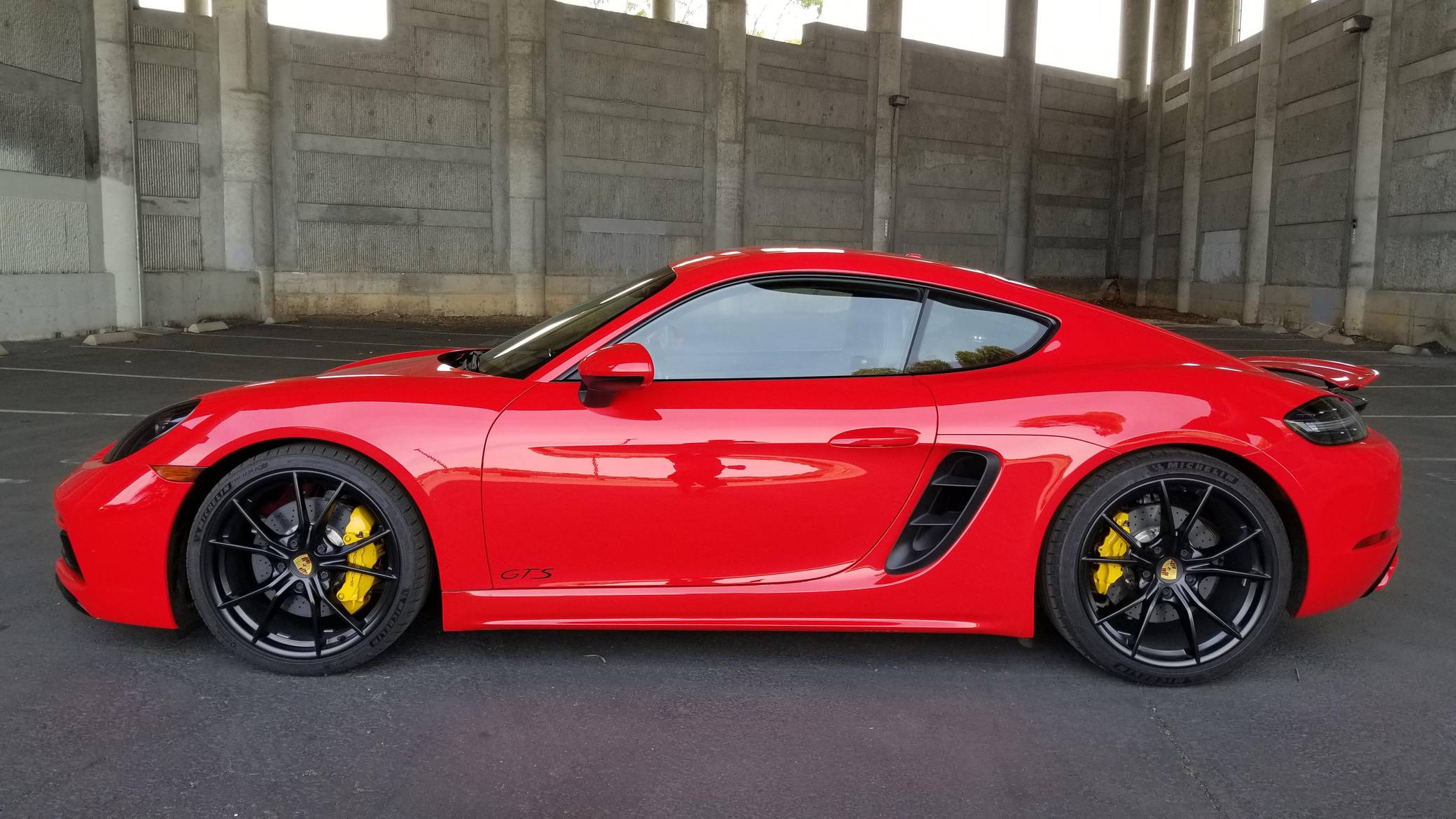 THIS. . . is a 2019 Porsche 718 Cayman GTS, finished in Guards Red with a black interior. It also shows California ownership from new. Modifications are limited to carbon fiber vinyl-wrapped interior trim, a "GTS" rear badge, and the application of paint protection film on the front bumper, hood, rocker panels, A-pillars, front and rear quarter panels, mirror caps, and roof. The "982" generation 718 Cayman debuted for the 2017 model year as an evolution on the Cayman nameplate, with the "718" designation paying homage to Porsche's 718 race cars from the 1950s. The model's powerplant was updated with a turbocharged 4-cylinder engine, and the result was a more powerful and more efficient car than its predecessor. The GTS model received a more powerful 2. 5-liter motor, as well as a Porsche Sport Exhaust and PASM adaptive suspension as standard equipment, among other upgrades over the S model. Power comes from a mid-mounted 2. 5-liter turbocharged flat-4, rated at 365 horsepower and 317 lb-ft of torque. Output is sent to the rear wheels via a 7-speed Porsche Doppelkupplung (PDK) transmission.