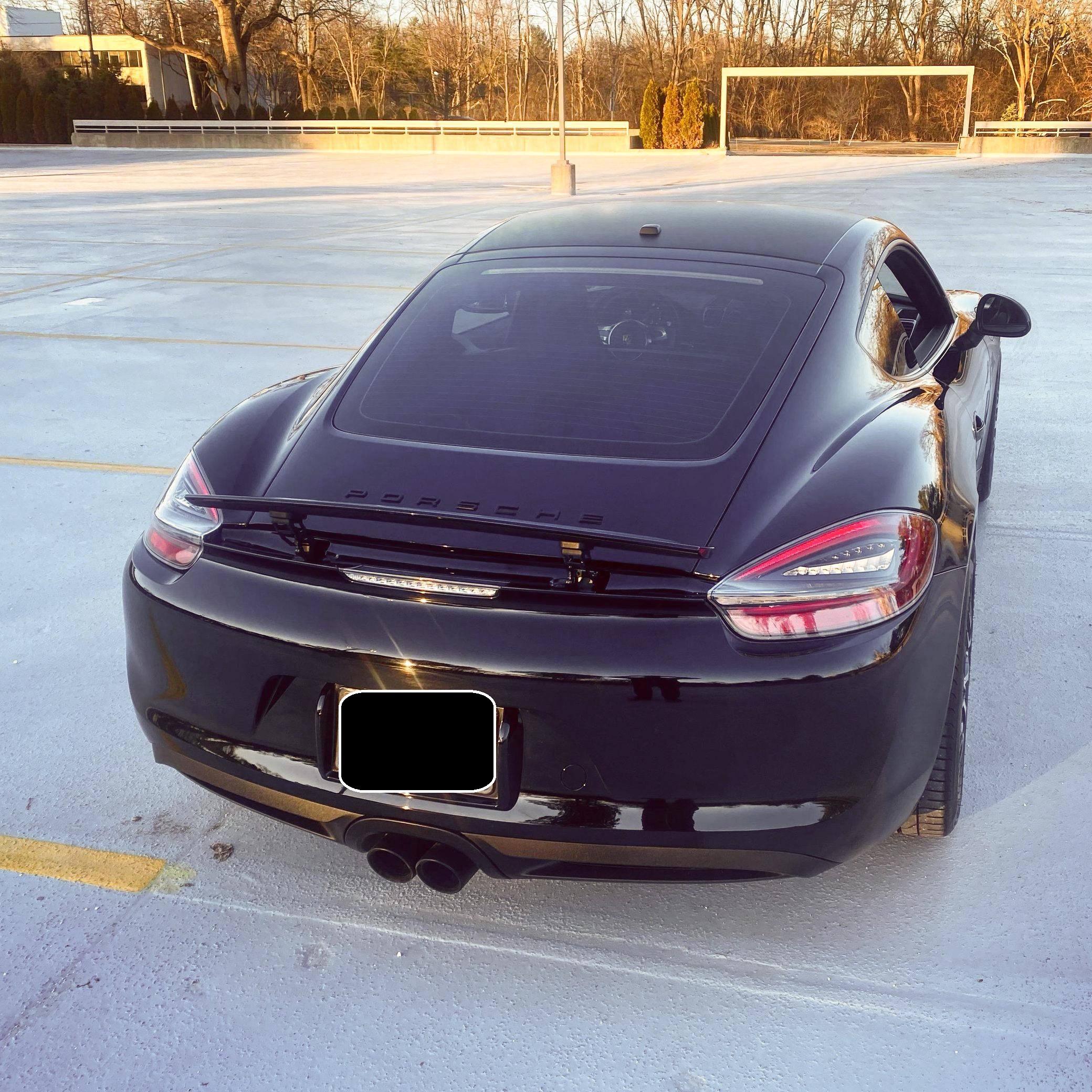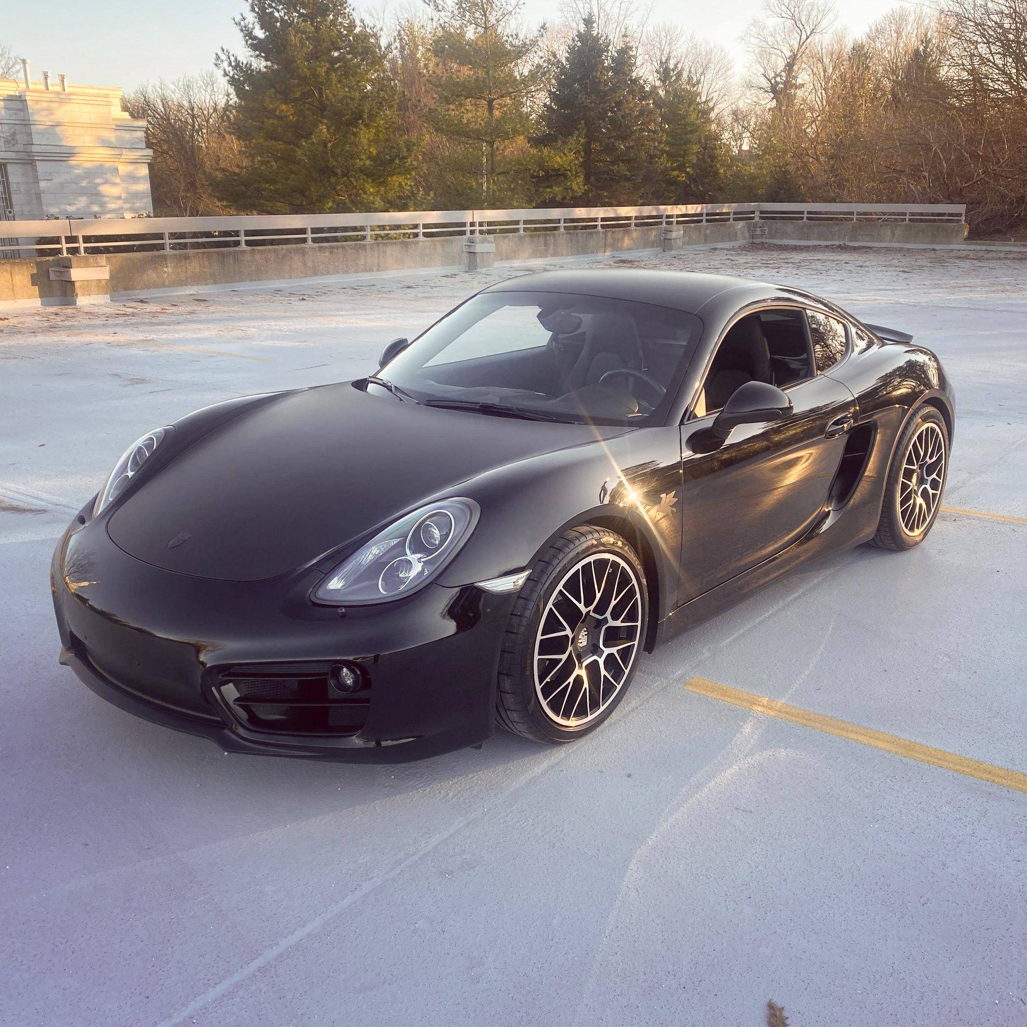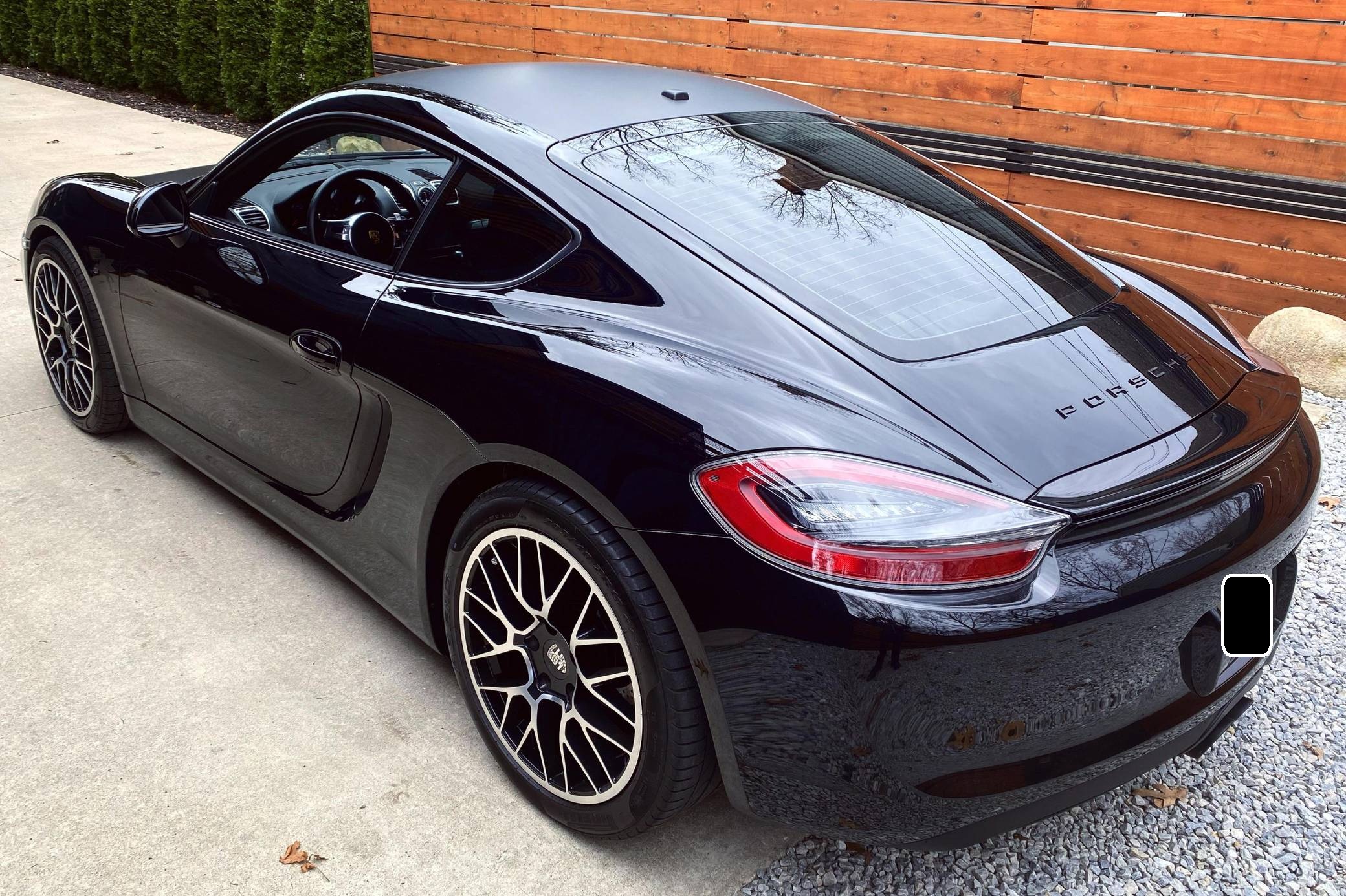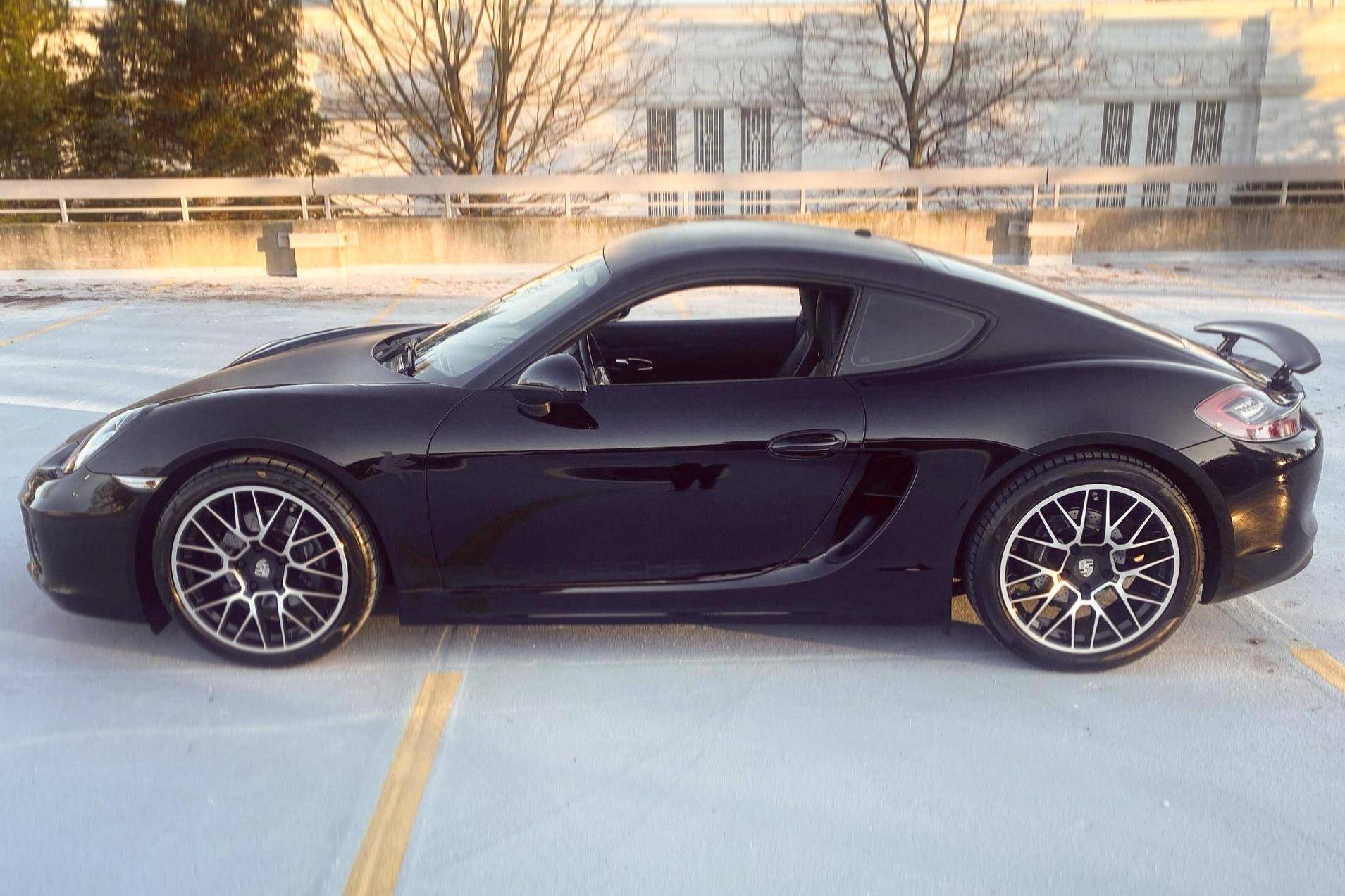 THIS… is a 2014 Porsche Cayman, finished in black with a black interior. According to the build sheet included in the photo gallery, this Cayman had an original MSRP of $74,760. Factory equipment includes the Sport Chrono, Premium, and Infotainment with Bose surround sound system packages, Porsche Active Suspension Management (PASM), a sport exhaust system, a SportDesign steering wheel, and more as detailed below. Modifications include aftermarket 19-inch Porsche RS Spyder-style wheels, Cayman GTS tail lights, and a matte black wrapped hood and roof. The full list of modifications can be seen below. Produced from 2012 to 2016, the second-generation "981" Cayman was the coupe alternative to the third-generation Boxster. The 981 was lauded as one of the best-handling sports cars available in its day, largely due to its mid-engine configuration. It was more rigid and lighter than the outgoing 987 Cayman, and it featured a new body, redesigned interior, a wider front track, and a longer wheelbase. Power comes from a 2. 7-liter flat-6, rated at 271 horsepower and 213 lb-ft of torque. The engine spins the rear wheels via a 7-speed PDK automatic transmission.