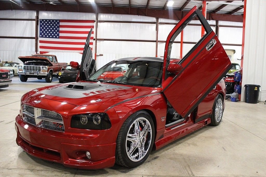 Dodge reintroduced their claim to fame Charger in glorious fashion in 2006 and all gearheads and Mopar junkies finally had a car to get excited about for its looks and performance. The price range was well thought after to allow people to get into one without the outrageous price tag of other performance vehicles such as the Viper. Dodge also did a great job keeping looks and styles from the earlier generations and available performance upgrades that were plentiful on the aftermarket circuit. Some like it stock, and then some like it custom to the point custom doesn't appear to be the appropriate word for it. This car started as an already powerful 2009 Dodge Charger R/T boasting a 5.7L HEMI V8 with optional Inferno Red Crystal Pearl Coat paint, remote start, sunroof, 6-disc CD player, heated power seats, and many cool options. However, the owner felt he should keep on going. He added a supercharger system from Pro Charger. The custom features are a long list that include Lamborghini doors, Brembo brakes (4-wheel disc), Dynatech headers, Mopar cat-back exhaust, Kenwood navigation (touchscreen & backup camera), 12” Orion subwoofers, Toyo high performance tires, MKW chrome wheels, functional Shaker hood, custom headlights & taillights, honey chrome grill, Eibach pro springs, carbon fiber accents, gauge pod, and Xenon body kit. This car is a blast to drive and also is a fantastic custom to show off! This car show winner is ready for its next home!
