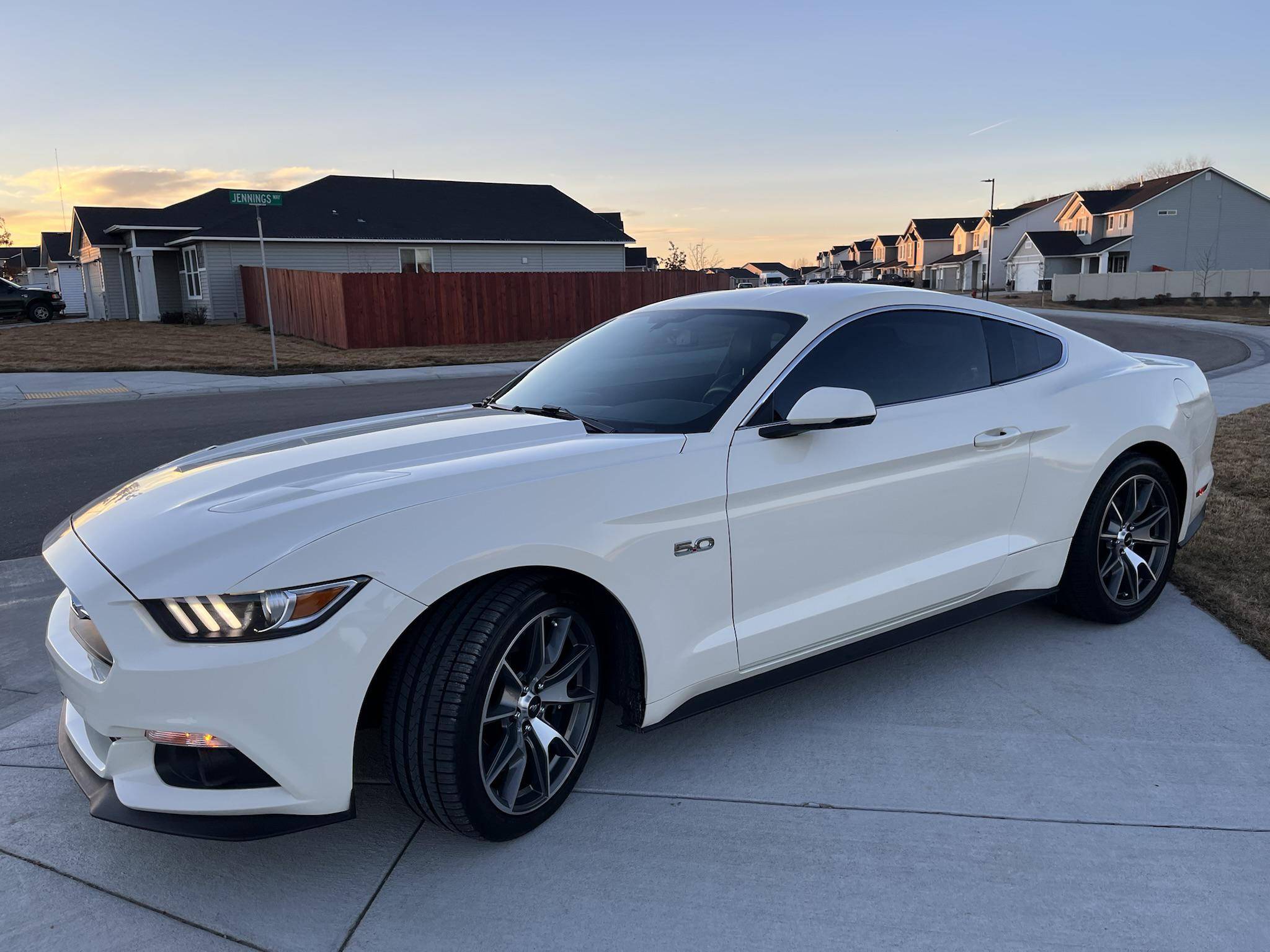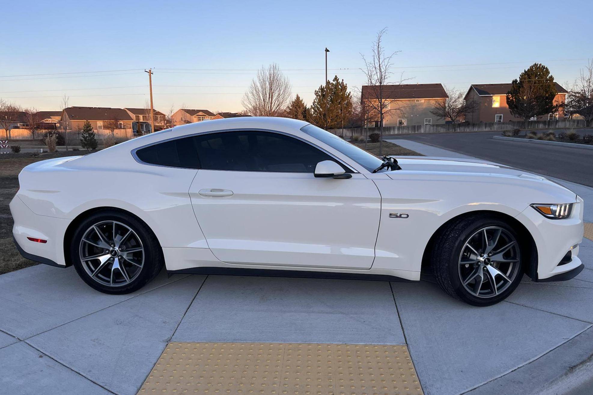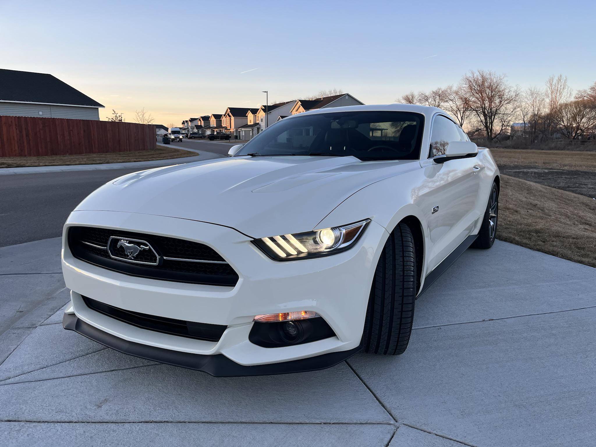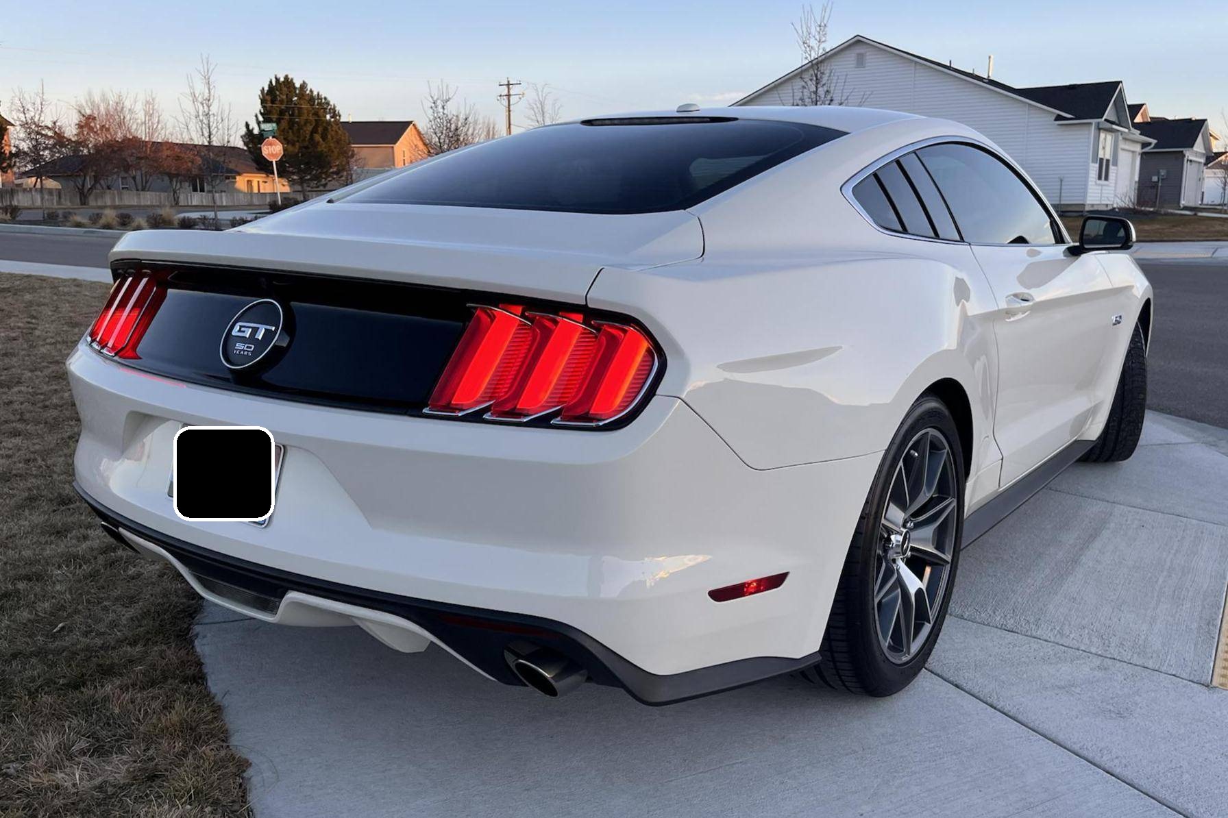 THIS. . . is a 2015 Ford Mustang GT, finished in Wimbledon White with a Cashmere and black interior. This rare 50 Years Edition coupe is equipped with the desirable 6-speed manual transmission, and its odometer displays about 24,800 miles. In addition to the 50 Years Limited Edition package, factory equipment includes the Performance Pack, leather upholstery, heated, ventilated, and power-adjustable front seats, and a Shaker 12-speaker sound system. The only modifications reported by the seller are a Ford Performance exhaust system and a window tint. Called "S550" internally, the sixth-generation Mustang was introduced for 2015 with a wider and lower body than its predecessor. More importantly, the S550 was the first Mustang to feature an independent rear suspension across the whole model range, which significantly improved the handling and dynamics of the iconic model. Production continues in 2022. Ford built 1,964 units of the 50 Years Limited Edition model for 2015 to celebrate the Mustang's 50th birthday. Highly equipped, the commemorative coupe stood out with bright exterior trim, an edition-specific grille, and louvers on the rear windows, among other heritage-laced styling cues inside and out. Ford also added the Performance Pack, which included 6-piston Brembo front brake calipers. Power comes from a 5. 0-liter "Coyote" V8 engine, which produces 435 horsepower and 400 lb-ft of torque. Power is sent to the rear wheels via a 6-speed manual transmission.