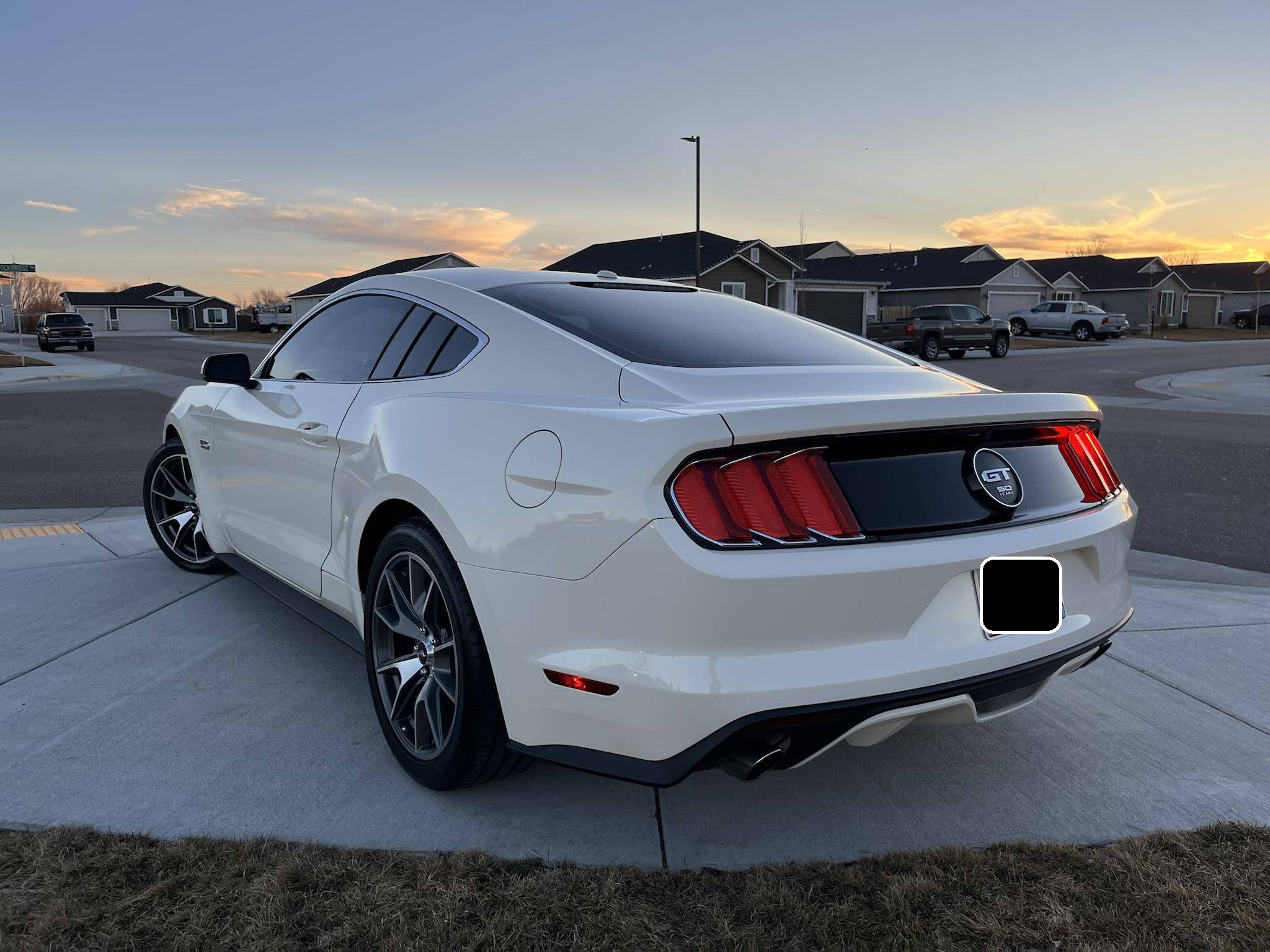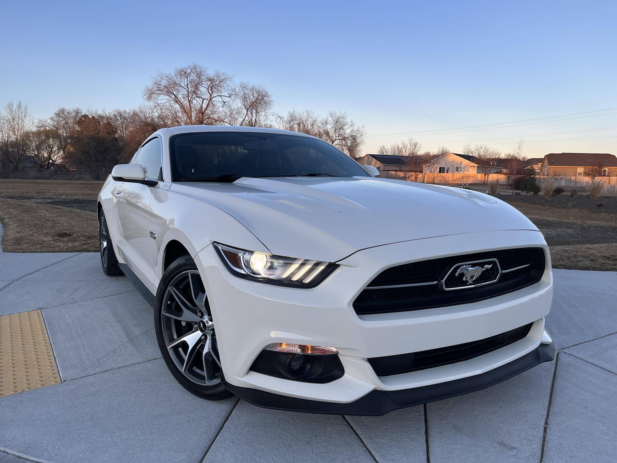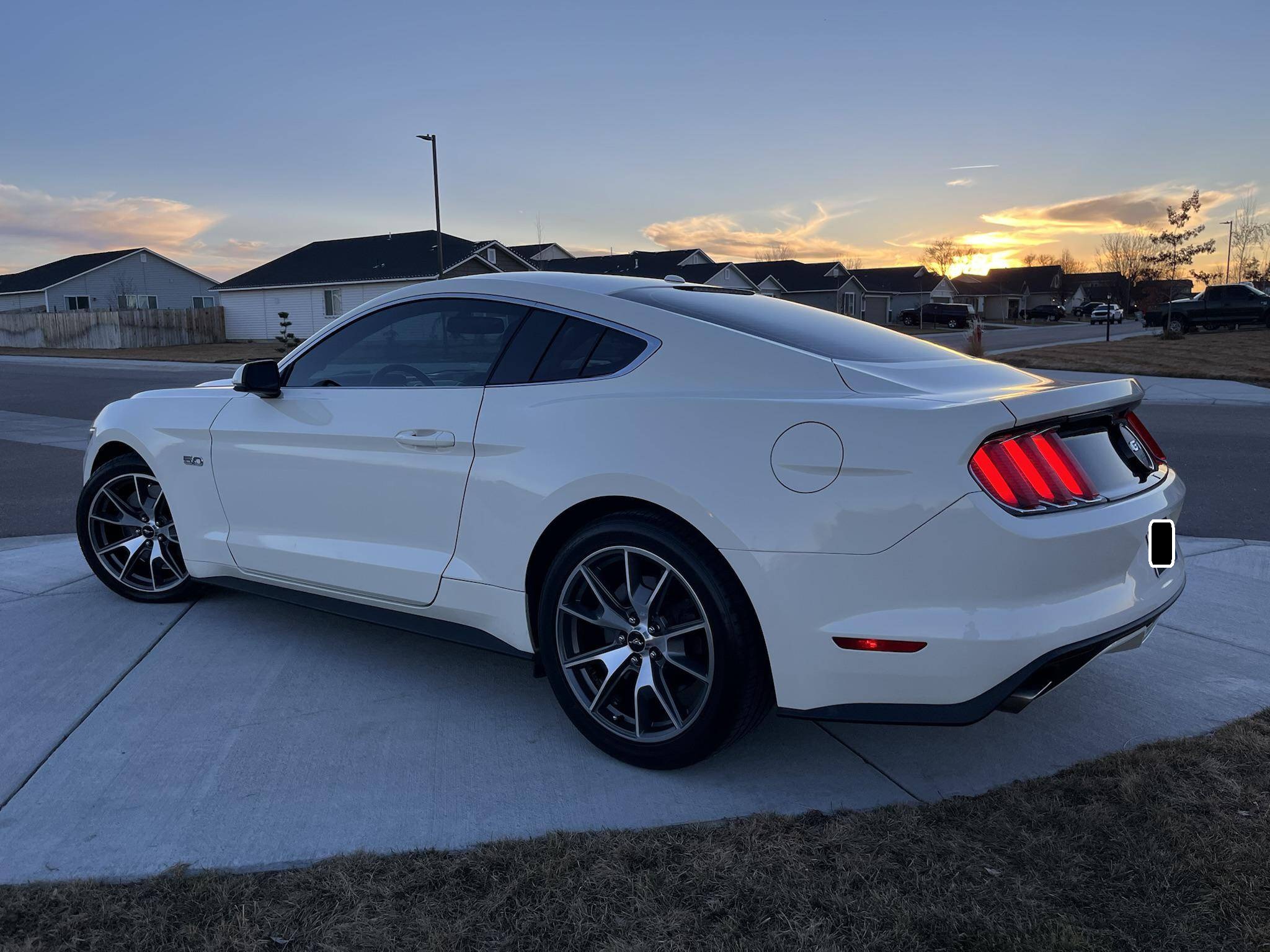 THIS. . . is a 2015 Ford Mustang GT, finished in Wimbledon White with a Cashmere and black interior. This rare 50 Years Edition coupe is equipped with the desirable 6-speed manual transmission, and its odometer displays about 24,800 miles. In addition to the 50 Years Limited Edition package, factory equipment includes the Performance Pack, leather upholstery, heated, ventilated, and power-adjustable front seats, and a Shaker 12-speaker sound system. The only modifications reported by the seller are a Ford Performance exhaust system and a window tint. Called "S550" internally, the sixth-generation Mustang was introduced for 2015 with a wider and lower body than its predecessor. More importantly, the S550 was the first Mustang to feature an independent rear suspension across the whole model range, which significantly improved the handling and dynamics of the iconic model. Production continues in 2022. Ford built 1,964 units of the 50 Years Limited Edition model for 2015 to celebrate the Mustang's 50th birthday. Highly equipped, the commemorative coupe stood out with bright exterior trim, an edition-specific grille, and louvers on the rear windows, among other heritage-laced styling cues inside and out. Ford also added the Performance Pack, which included 6-piston Brembo front brake calipers. Power comes from a 5. 0-liter "Coyote" V8 engine, which produces 435 horsepower and 400 lb-ft of torque. Power is sent to the rear wheels via a 6-speed manual transmission.