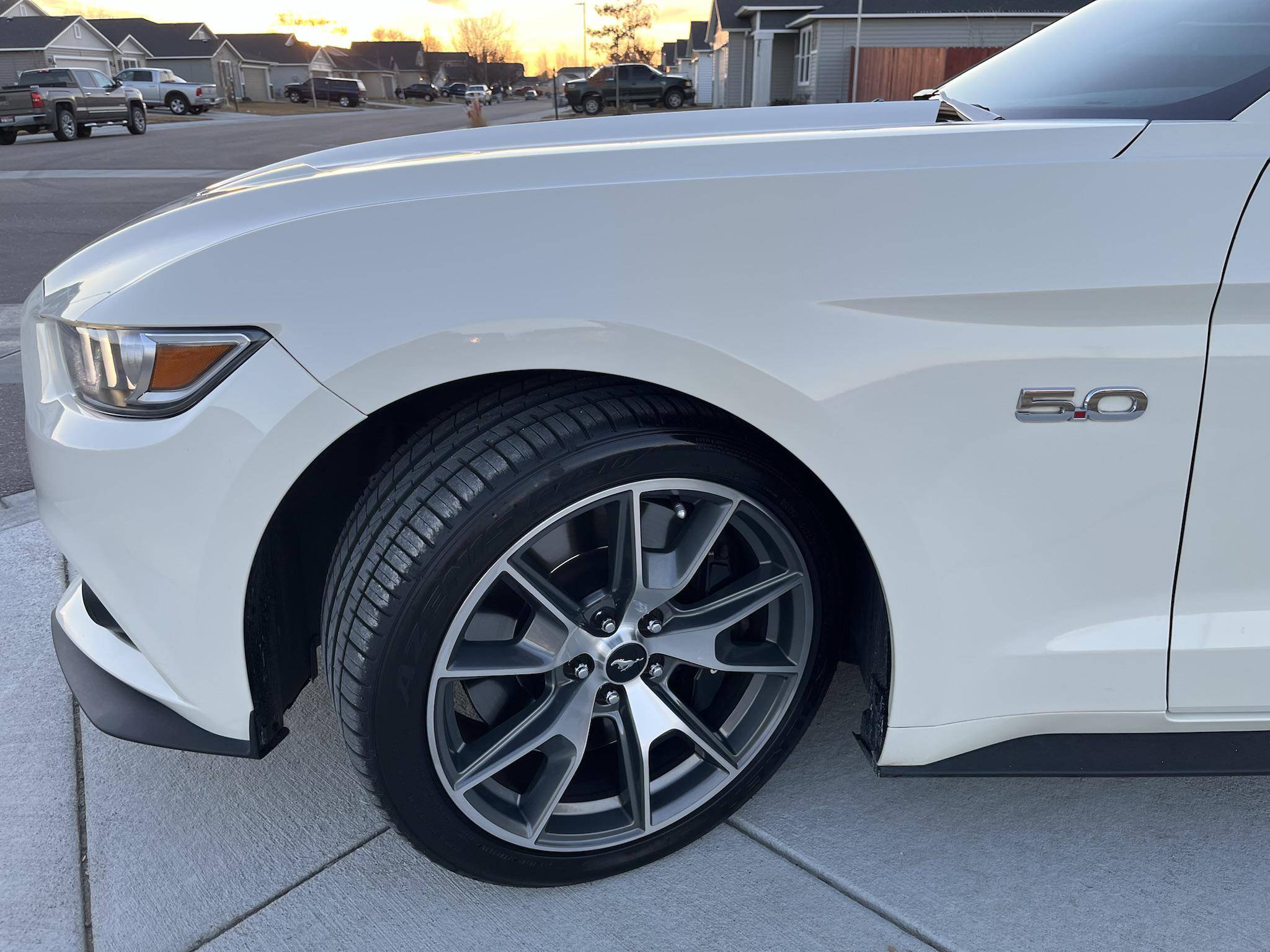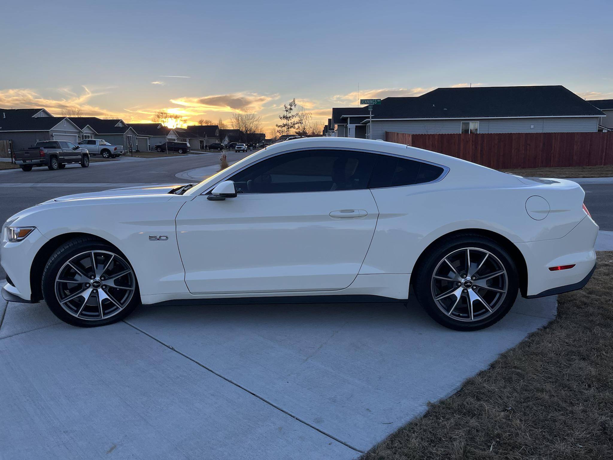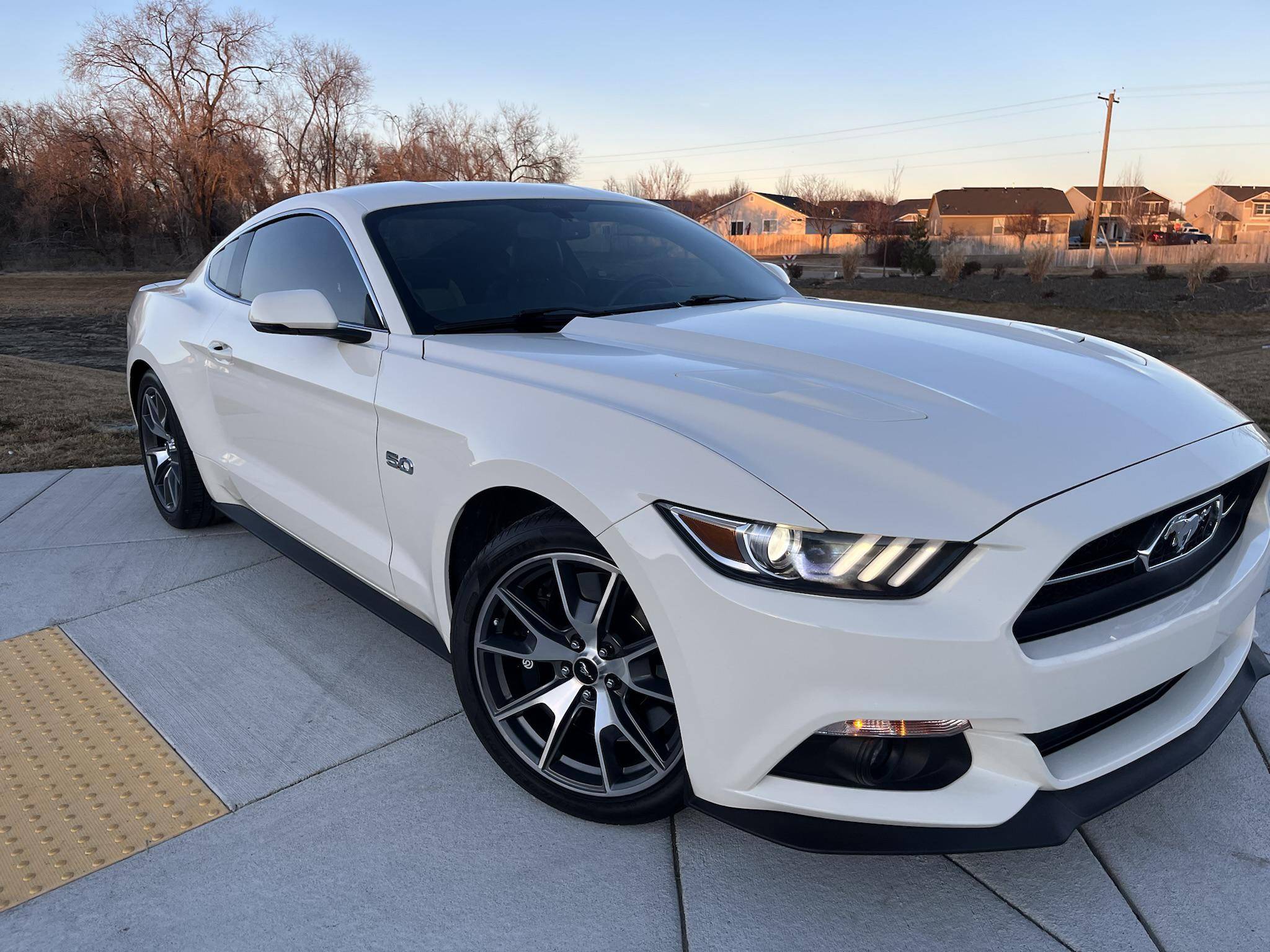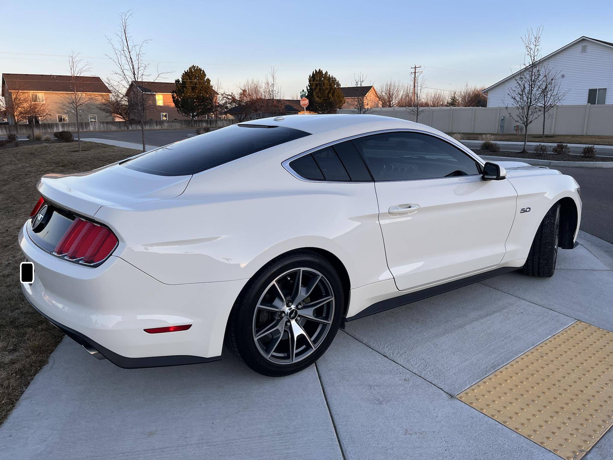 THIS. . . is a 2015 Ford Mustang GT, finished in Wimbledon White with a Cashmere and black interior. This rare 50 Years Edition coupe is equipped with the desirable 6-speed manual transmission, and its odometer displays about 24,800 miles. In addition to the 50 Years Limited Edition package, factory equipment includes the Performance Pack, leather upholstery, heated, ventilated, and power-adjustable front seats, and a Shaker 12-speaker sound system. The only modifications reported by the seller are a Ford Performance exhaust system and a window tint. Called "S550" internally, the sixth-generation Mustang was introduced for 2015 with a wider and lower body than its predecessor. More importantly, the S550 was the first Mustang to feature an independent rear suspension across the whole model range, which significantly improved the handling and dynamics of the iconic model. Production continues in 2022. Ford built 1,964 units of the 50 Years Limited Edition model for 2015 to celebrate the Mustang's 50th birthday. Highly equipped, the commemorative coupe stood out with bright exterior trim, an edition-specific grille, and louvers on the rear windows, among other heritage-laced styling cues inside and out. Ford also added the Performance Pack, which included 6-piston Brembo front brake calipers. Power comes from a 5. 0-liter "Coyote" V8 engine, which produces 435 horsepower and 400 lb-ft of torque. Power is sent to the rear wheels via a 6-speed manual transmission.