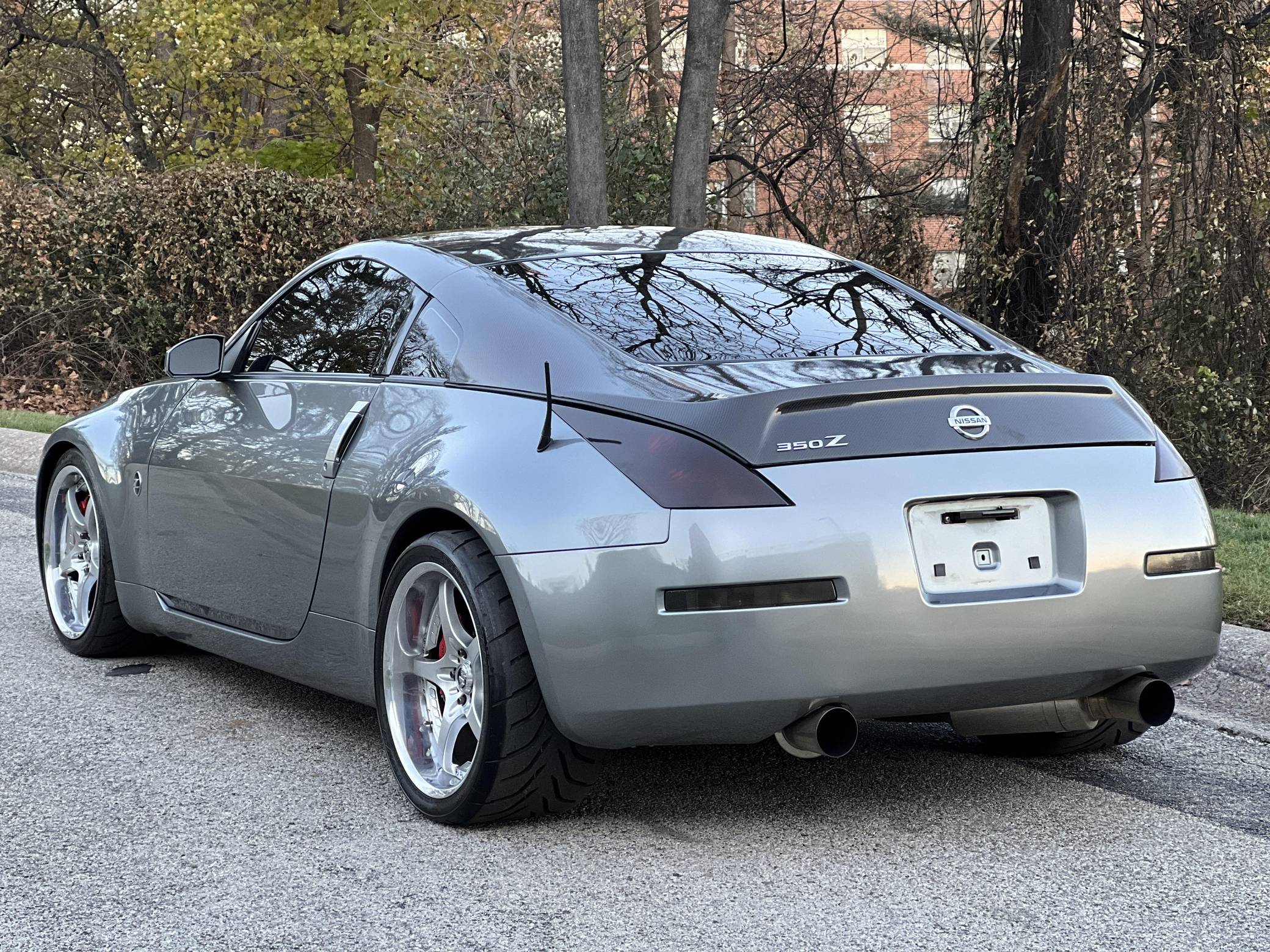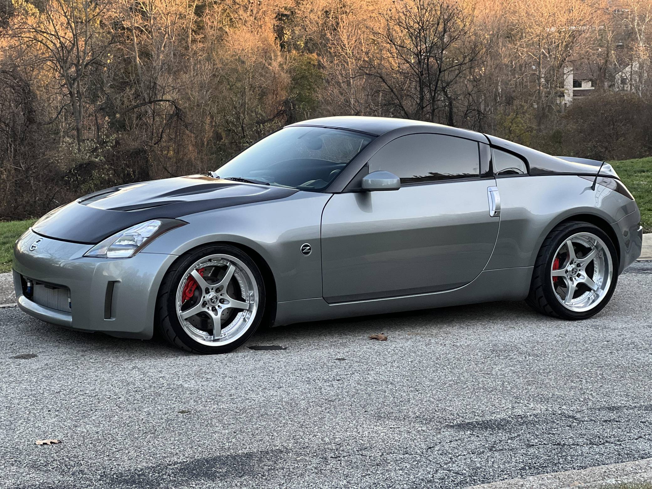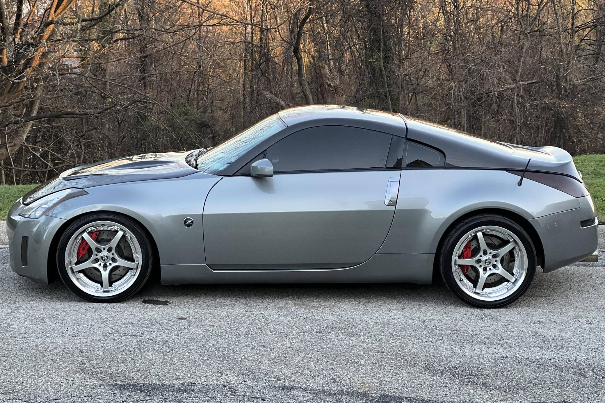 THIS. . . is a 2004 Nissan 350Z Touring Coupe, finished in Silverstone with a black and tan interior. This 350Z is equipped with the desirable 6-speed manual transmission, and its odometer currently displays approximately 15,800 miles. Modifications to this 350Ζ are extensive, and the full list is detailed below. include a Speed Force Racing twin-turbo kit, a Cosworth intake manifold, an APS exhaust, Haltech ECU management, TEIN suspension, AP Racing brakes, 19-inch Volk Racing wheels, a carbon fiber hood, roof, and rear decklid, tinted windows, a NISMO shift knob, a Kenwood head unit, a Rockford Fosgate subwoofer and amplifier, auxiliary gauges, an HKS boost controller, push-button start, and more. Nissan re-launched the Z-car with the “Z33” 350Z in 2003 after a multi-year hiatus following the retirement of the 300ZX. The 350Z offered excellent handling thanks partly to a front-mid-mounted engine and rear-wheel drive. It rode on a platform shared with the contemporary Infiniti G35 and offered the most powerful version of the well-regarded VQ engine in the Nissan lineup. Power comes from a 3. 5-liter "VQ35DE" V6, rated at 287 horsepower and 274 lb-ft of torque in stock form. According to the dyno sheet in the photo gallery, this 350Z is capable of 740 horsepower and 637 lb-ft of torque at the wheels. Output is sent to the rear wheels via a 6-speed manual transmission.