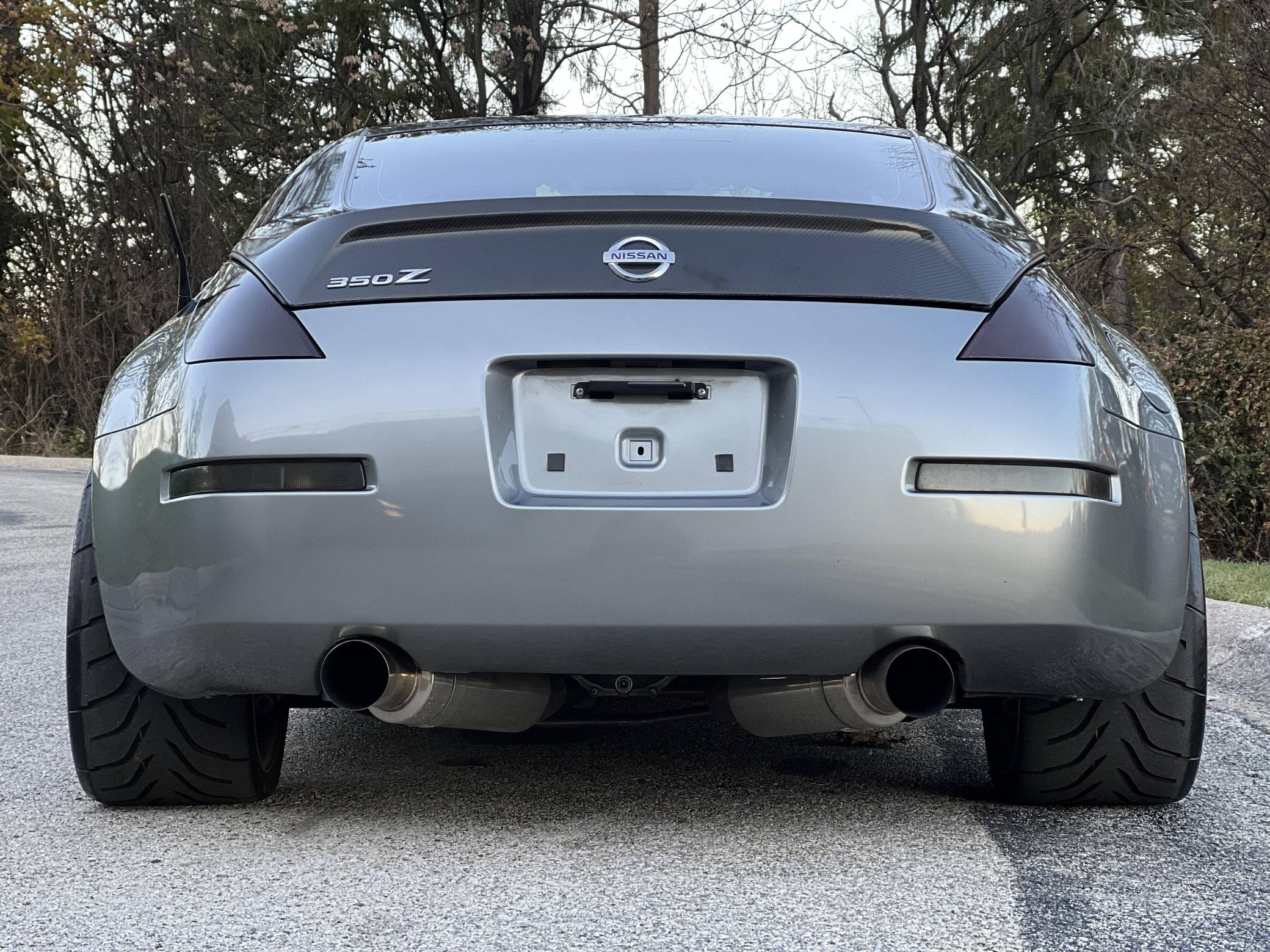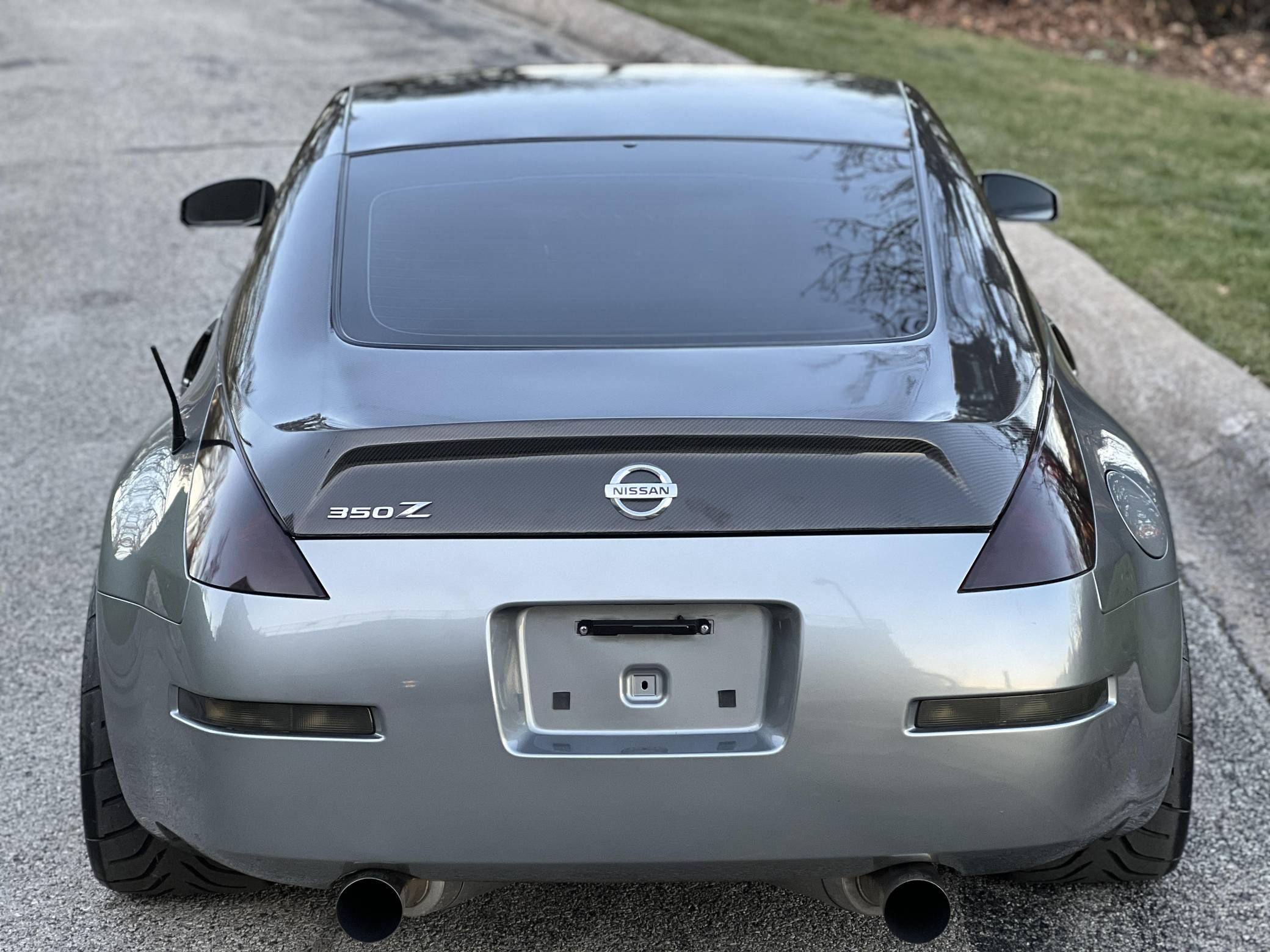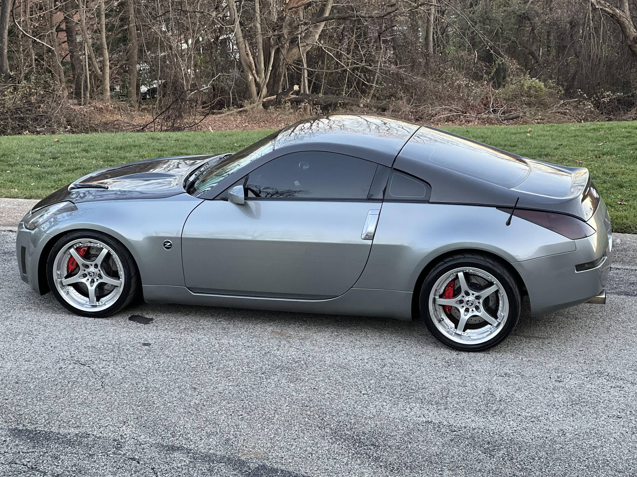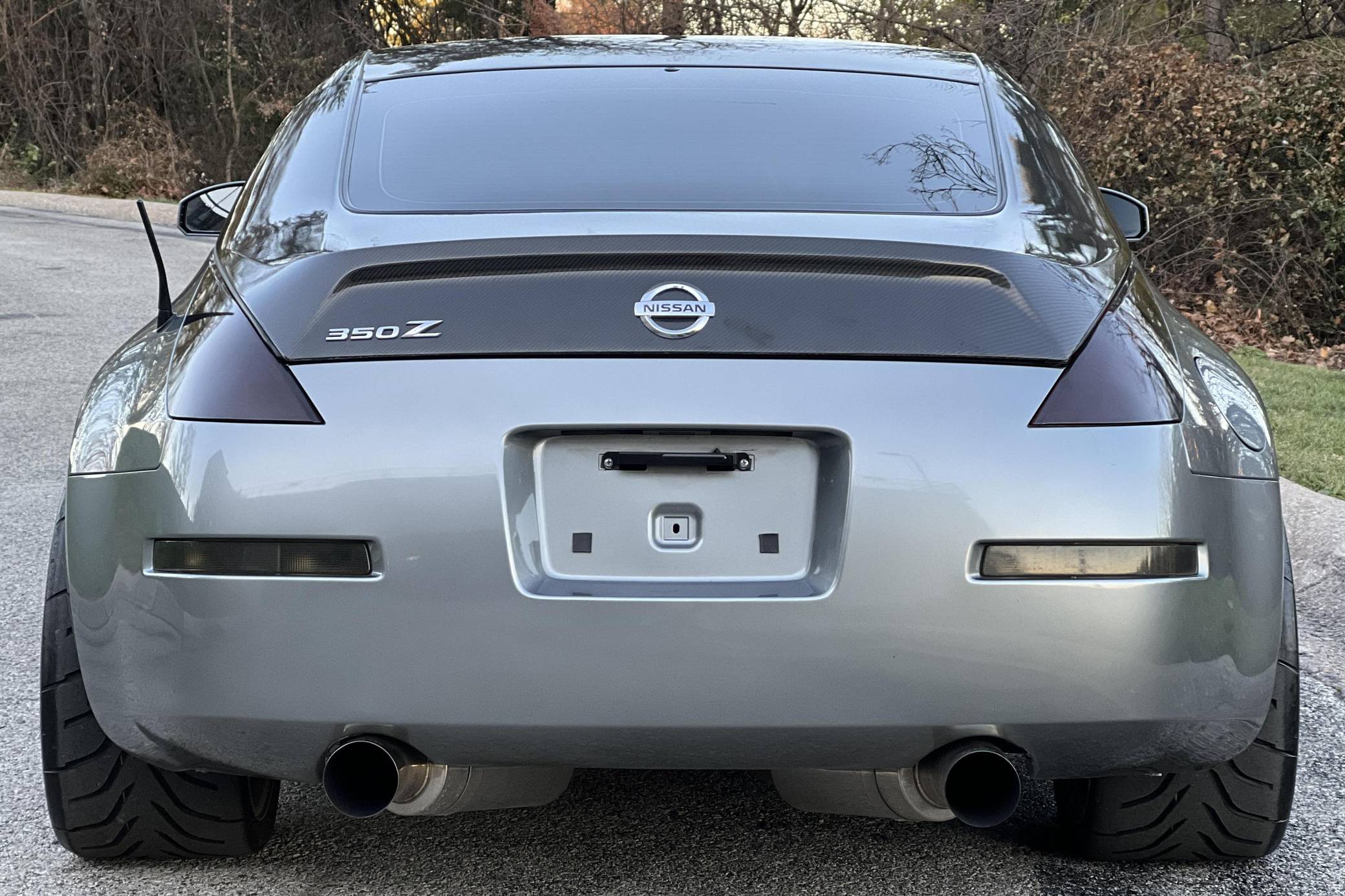 THIS. . . is a 2004 Nissan 350Z Touring Coupe, finished in Silverstone with a black and tan interior. This 350Z is equipped with the desirable 6-speed manual transmission, and its odometer currently displays approximately 15,800 miles. Modifications to this 350Ζ are extensive, and the full list is detailed below. include a Speed Force Racing twin-turbo kit, a Cosworth intake manifold, an APS exhaust, Haltech ECU management, TEIN suspension, AP Racing brakes, 19-inch Volk Racing wheels, a carbon fiber hood, roof, and rear decklid, tinted windows, a NISMO shift knob, a Kenwood head unit, a Rockford Fosgate subwoofer and amplifier, auxiliary gauges, an HKS boost controller, push-button start, and more. Nissan re-launched the Z-car with the “Z33” 350Z in 2003 after a multi-year hiatus following the retirement of the 300ZX. The 350Z offered excellent handling thanks partly to a front-mid-mounted engine and rear-wheel drive. It rode on a platform shared with the contemporary Infiniti G35 and offered the most powerful version of the well-regarded VQ engine in the Nissan lineup. Power comes from a 3. 5-liter "VQ35DE" V6, rated at 287 horsepower and 274 lb-ft of torque in stock form. According to the dyno sheet in the photo gallery, this 350Z is capable of 740 horsepower and 637 lb-ft of torque at the wheels. Output is sent to the rear wheels via a 6-speed manual transmission.