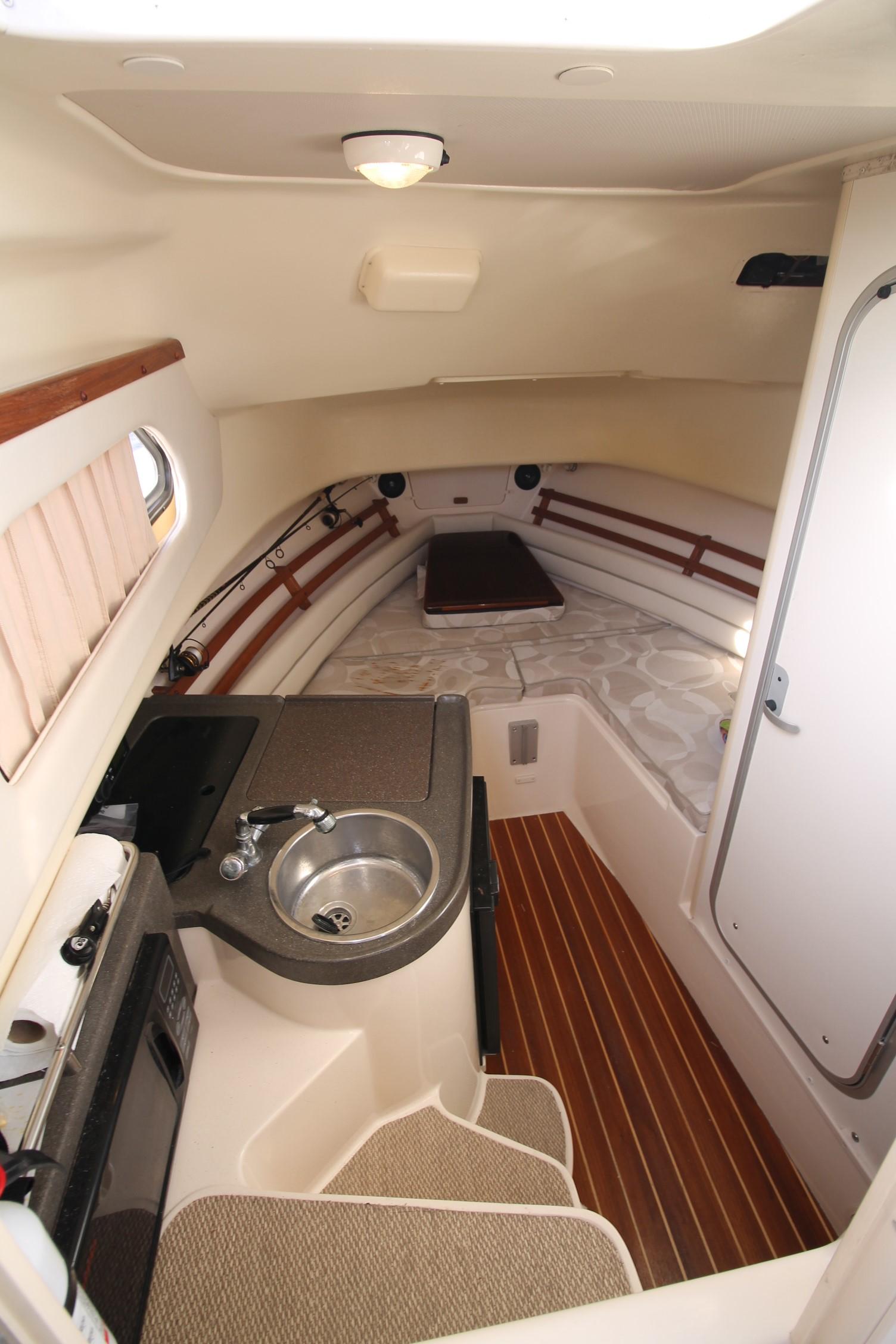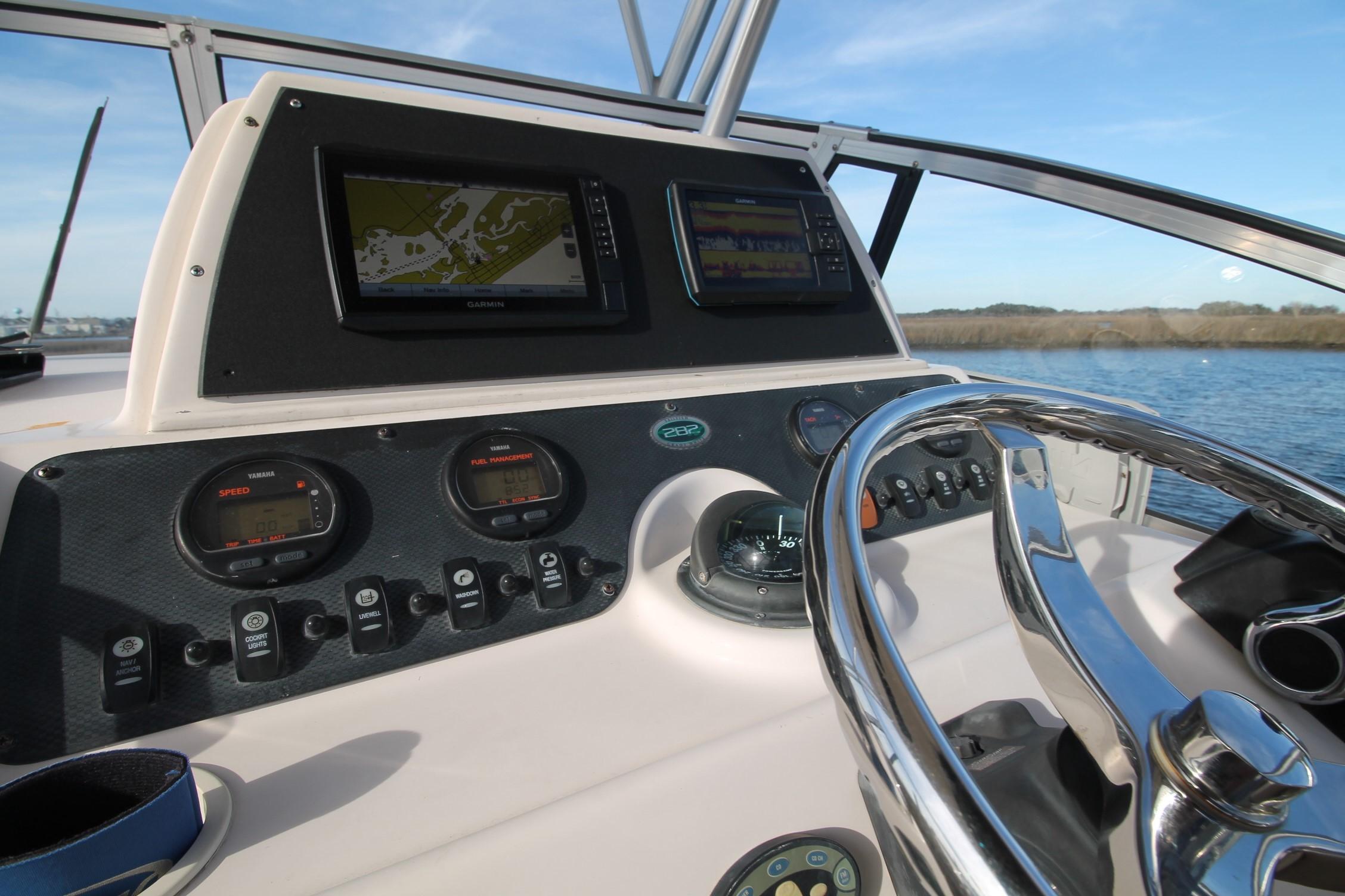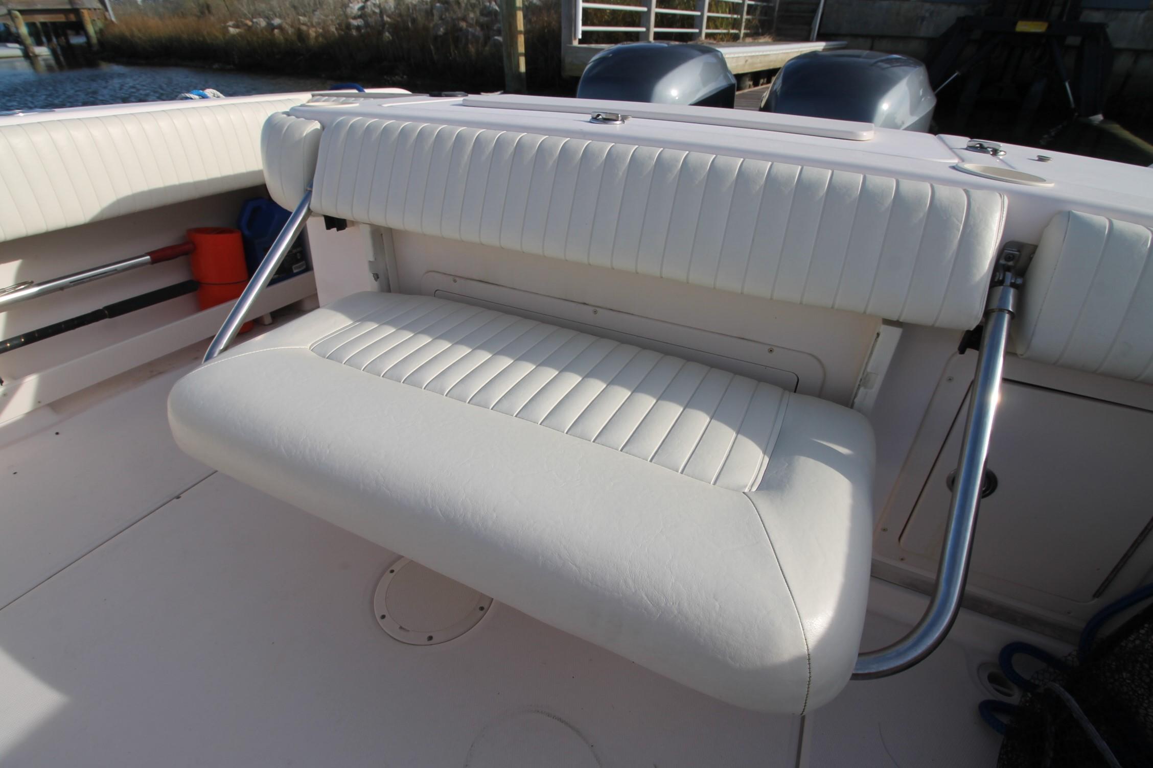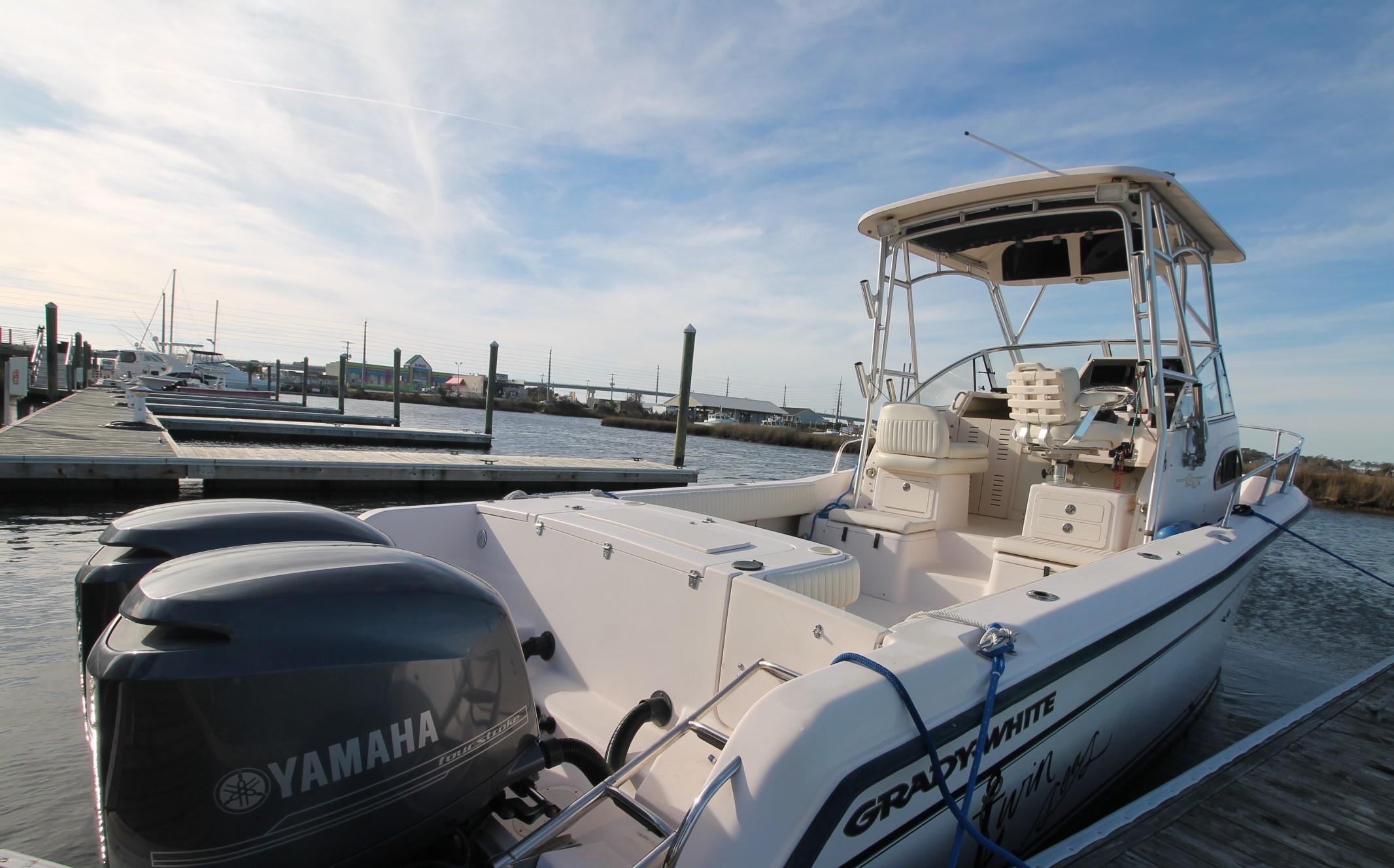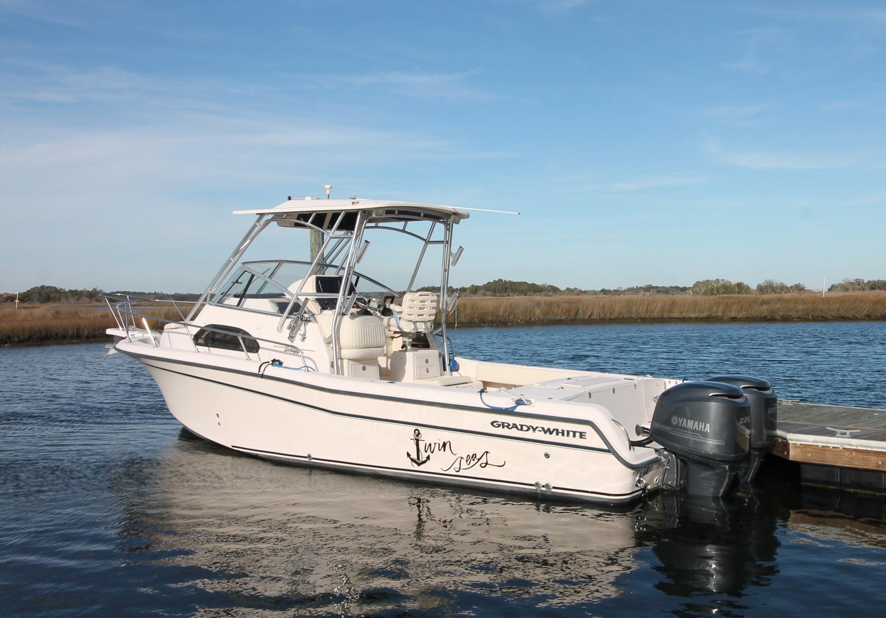This Grady-White 282 Sailfish is in excellent condition. This boat is super clean and it shows that it has been very well taken care of. The original deck upholstery is in very good shape, the boat was kept out of the sun for most of the time. The cabin upholstery is also in excellent shape too. The floor is solid all around. At the bow, there are a couple of scratches from loading and offloading the boat from the trailer. Just recently waxed and engines serviced. This boat is loaded with electronics and is rigged for hardcore fishing or coastal cruising. Garmin GPS, radar, trim tabs, VHF, compass, windlass, outriggers, and marine head. Other Options on the boat include Hard Top and Rod Holders, Companion Beach Seat, Fresh Water, Raw Water, Livewell, Tilt Hyd. Steering, Underwater Lights, Shore Power Package, Microwave, Refrigerator, electric stovetop, and radio. This is a turn-key ready to go boat!