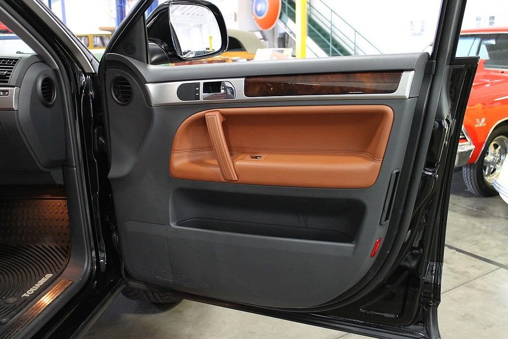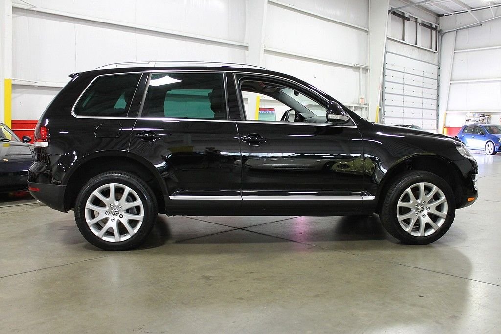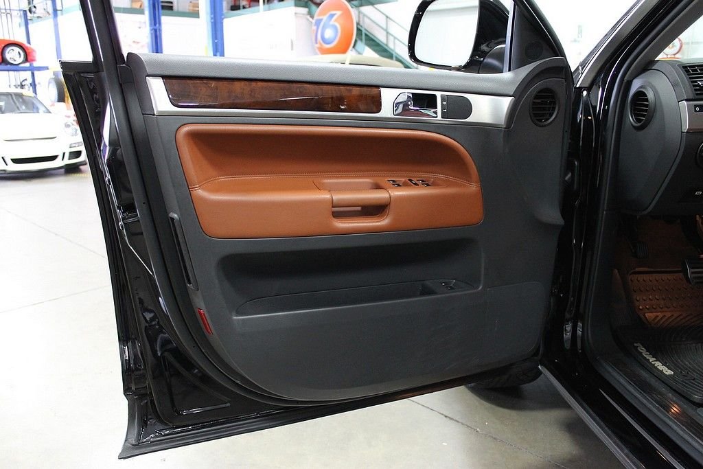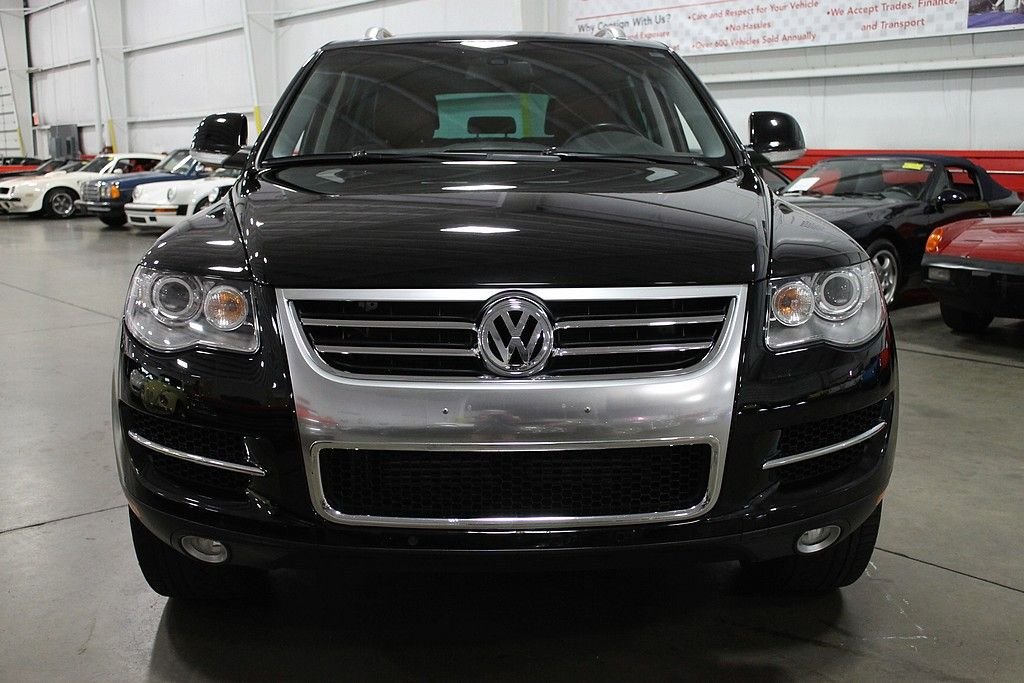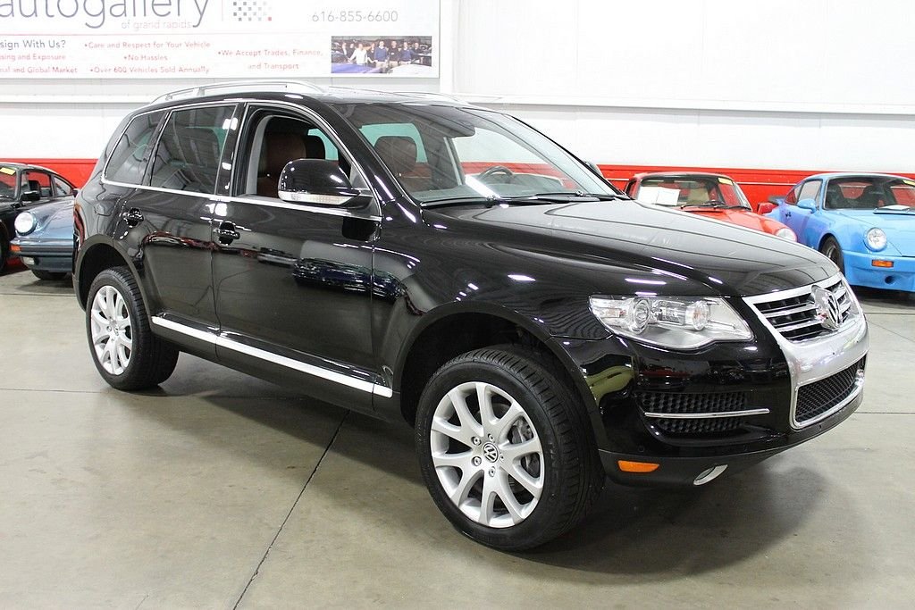 We are pleased to offer this Volkswagen Touareg 2 V8 FSI for consideration. Volkswagen, who is always a leader in quality, produced the Touareg as an all season vehicle that combines luxury with utility. This vehicle does not suffer style wise. The black paint, chrome, and sienna leather makes this vehicle a head turner as well. This Touareg is powered by the 4.2L V8 with a 6-speed automatic. The all-wheel drivetrain combined with four-wheel independent suspension gives the driver power and agility uncharacteristic of a good sized SUV . There are many luxurious options on this vehicle that include: 12-way power heated front seats (with memory), power adjustable lumbar support, 2-screen DVD player in headrests with remote, heated mirrors, external temperature, compass, power moonroof, audio & cruise controls on steering wheel, universal remote transmitter (for garage door, security system, etc), front & rear parking sensors, speed proportional power steering, power lift gate control from front seat, three 12V power outlets, one 115V power outlet in cargo area, alloy & wood trim on interior, dual zone climate control, speed sensitive & rain sensing wipers, front & side mounted airbags, and trailer hitch. This like new vehicle is a great bargain for someone looking for that luxurious, all-season vehicle with the great reliability known from Volkswagen.