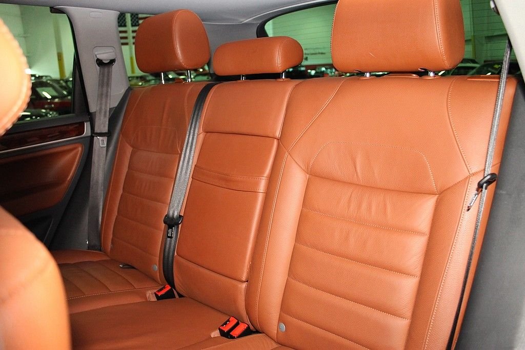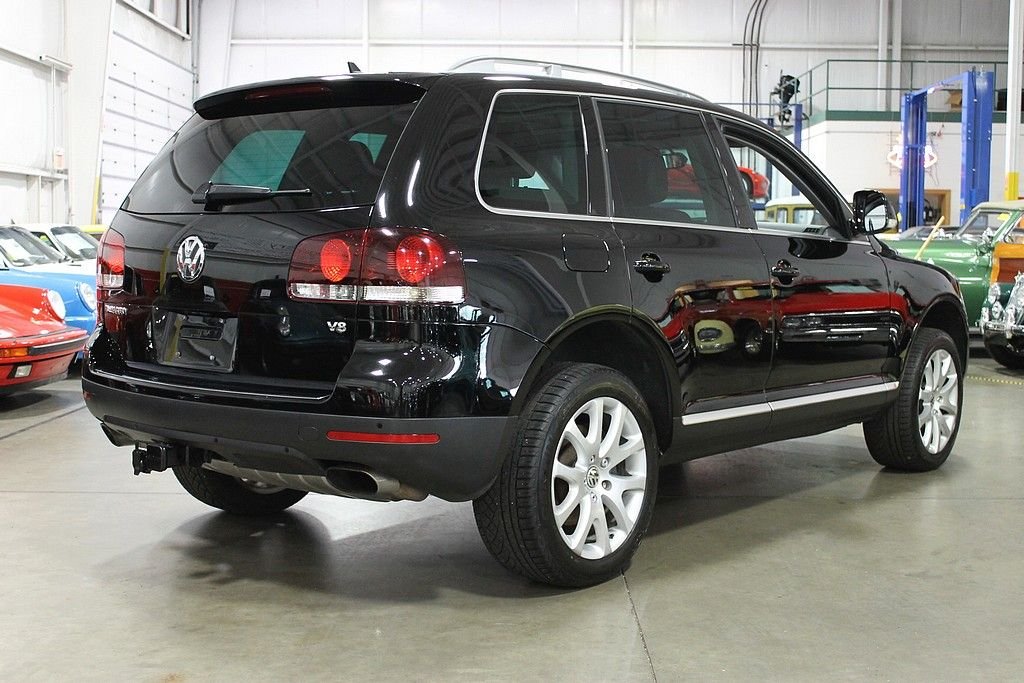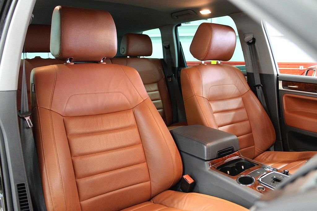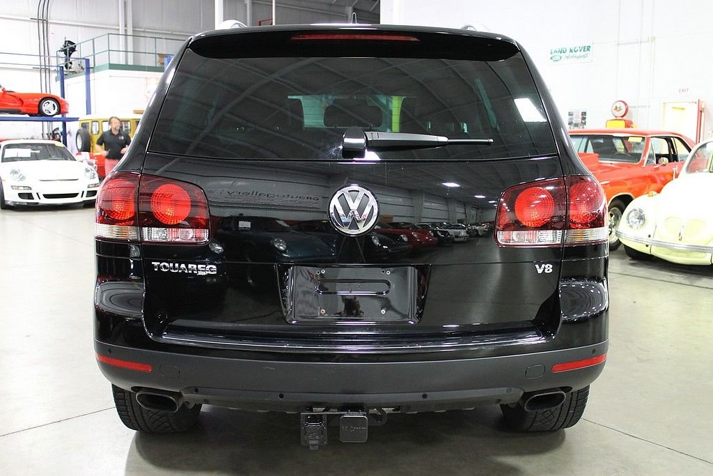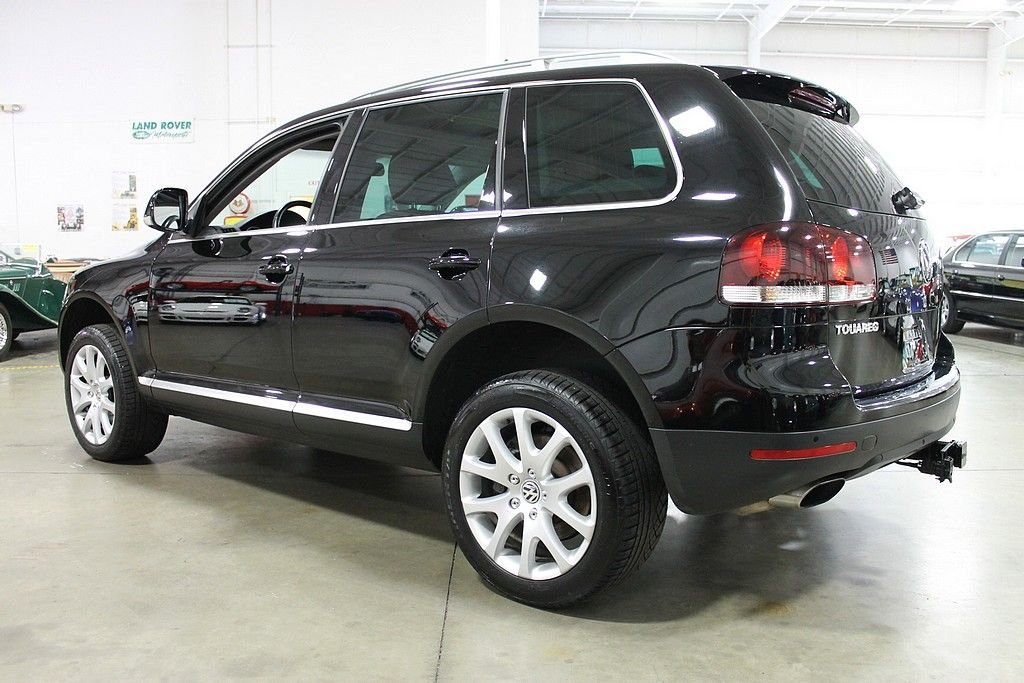 We are pleased to offer this Volkswagen Touareg 2 V8 FSI for consideration. Volkswagen, who is always a leader in quality, produced the Touareg as an all season vehicle that combines luxury with utility. This vehicle does not suffer style wise. The black paint, chrome, and sienna leather makes this vehicle a head turner as well. This Touareg is powered by the 4.2L V8 with a 6-speed automatic. The all-wheel drivetrain combined with four-wheel independent suspension gives the driver power and agility uncharacteristic of a good sized SUV . There are many luxurious options on this vehicle that include: 12-way power heated front seats (with memory), power adjustable lumbar support, 2-screen DVD player in headrests with remote, heated mirrors, external temperature, compass, power moonroof, audio & cruise controls on steering wheel, universal remote transmitter (for garage door, security system, etc), front & rear parking sensors, speed proportional power steering, power lift gate control from front seat, three 12V power outlets, one 115V power outlet in cargo area, alloy & wood trim on interior, dual zone climate control, speed sensitive & rain sensing wipers, front & side mounted airbags, and trailer hitch. This like new vehicle is a great bargain for someone looking for that luxurious, all-season vehicle with the great reliability known from Volkswagen.