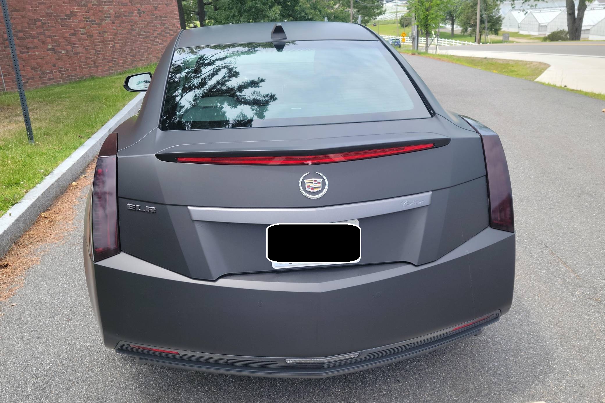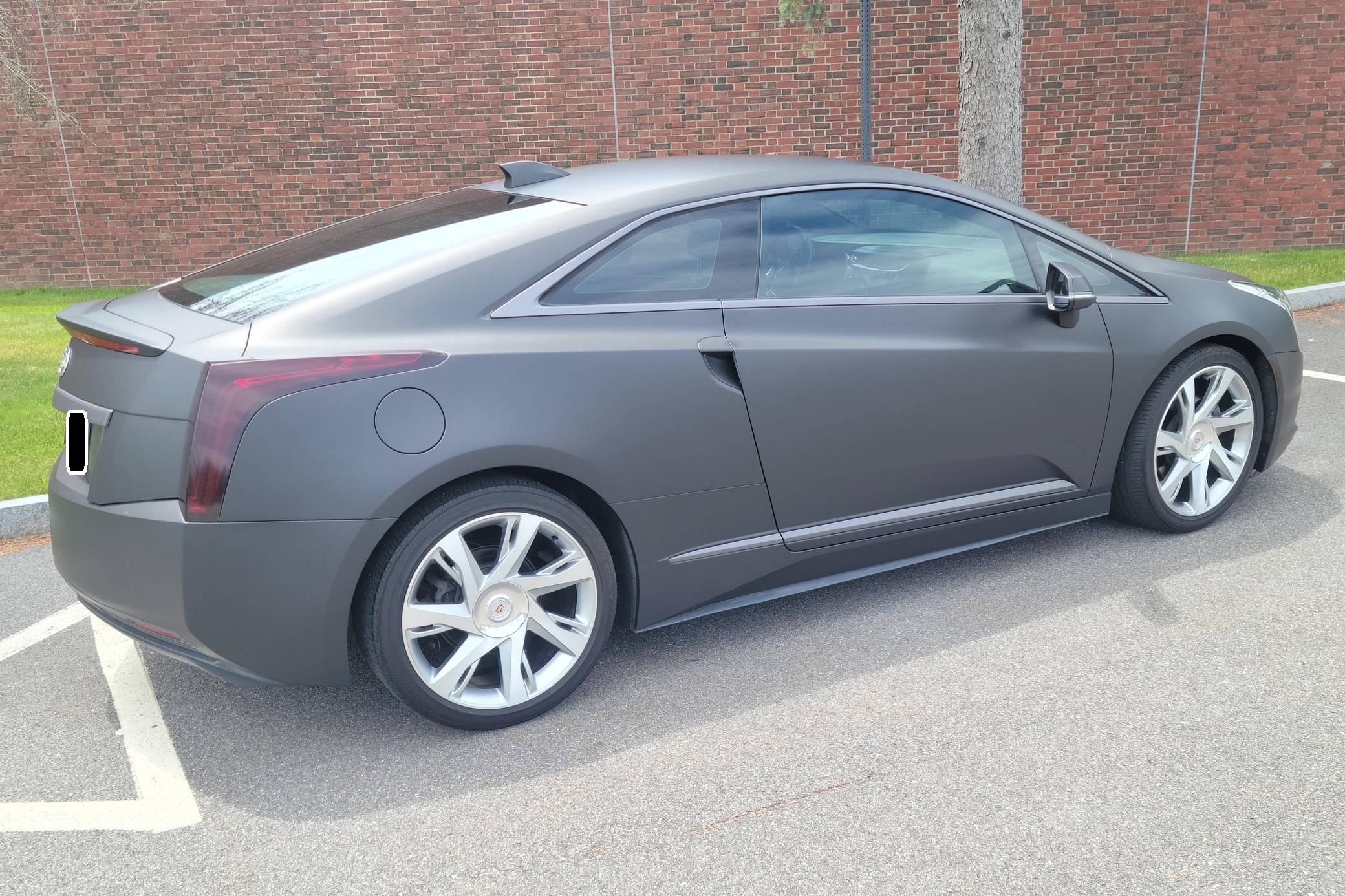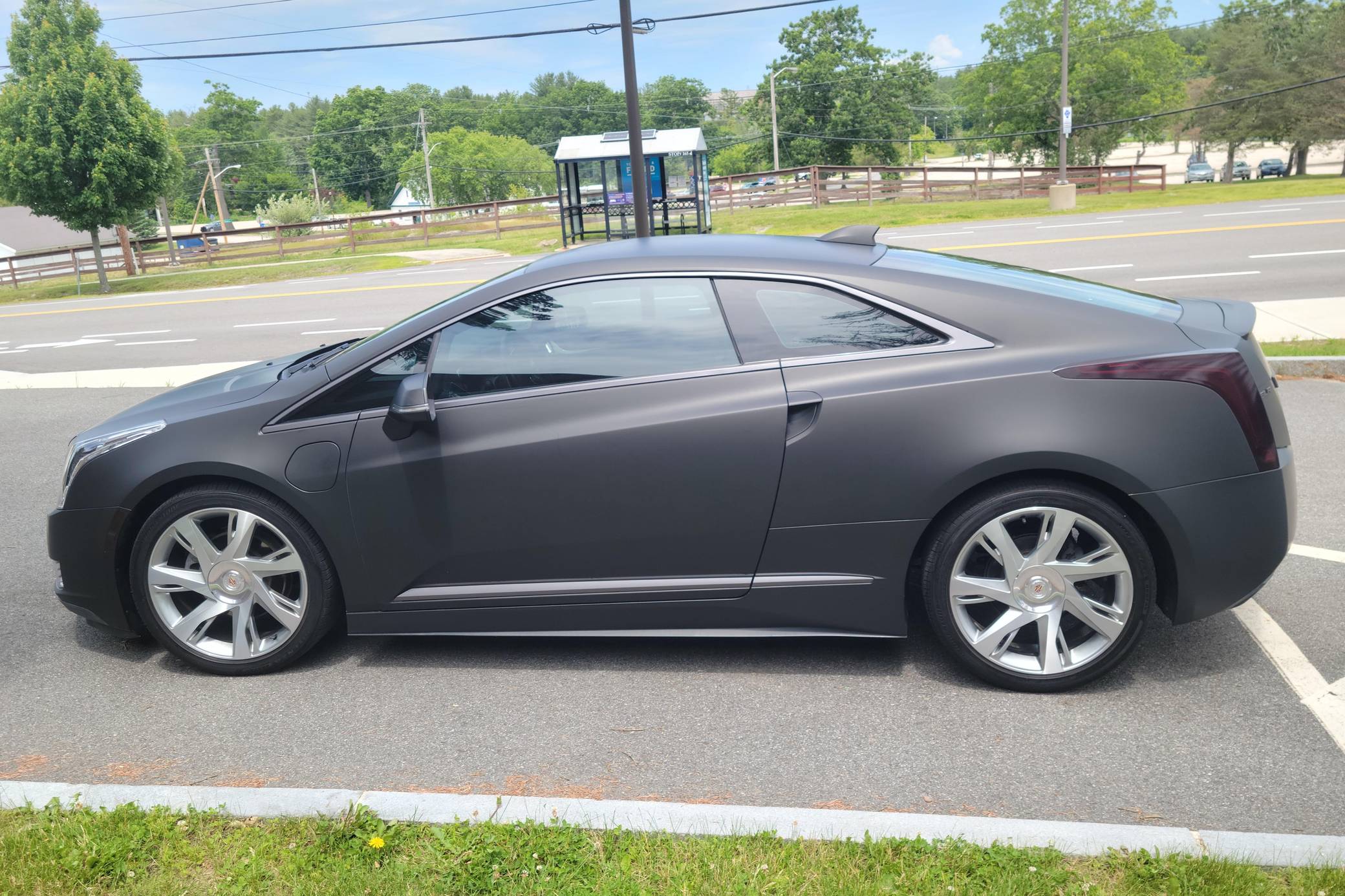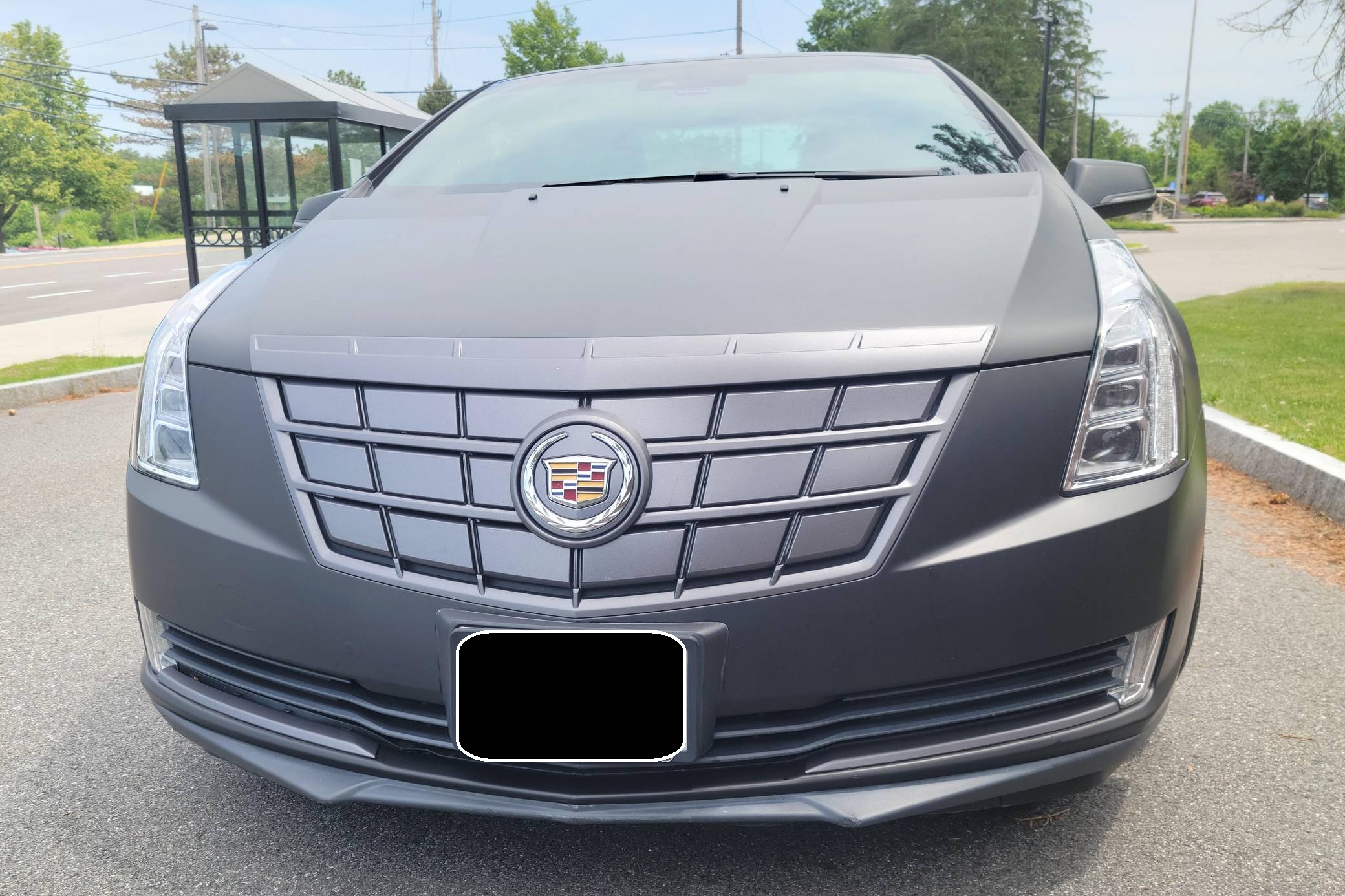 2014 Cadillac ELR, finished in Ashen Gray with a black exterior wrap and a Jet Black interior. This coupe's odometer displays about 53,000 miles. Factory equipment includes the Luxury Package, active aero grille shutters, wood and carbon fiber interior trim, heated and power-adjustable front seats, an 8-inch digital instrument cluster, a heated steering wheel, a 10-speaker Bose sound system, Bluetooth connectivity, and a rear-view camera. In addition to the black exterior wrap, the list of modifications reported by the seller include a black wrap on the exterior trim pieces and tinted side-marker lights. Photos showing this ELR before the wrap was applied are pictured in the gallery. The Cadillac ELR made its debut for 2014. Its exterior design drew inspiration from the Converj concept unveiled in 2009, and the angular sheet metal covered a plug-in hybrid system related to the Chevrolet Volt's. This four-seater coupe was envisioned as a different kind of Cadillac that would allow the brand to reach new buyers. Sales were lower than expected, and the ELR retired after the 2016 model year. Power comes from a gasoline-electric plug-in hybrid drivetrain, which consists of a 1. 4-liter 4-cylinder engine, an electric motor, and a 16. 5-kilowatt-hour lithium-ion battery pack. The system sends 217 horsepower and 295 lb-ft of torque to the front wheels via a single-speed transmission.