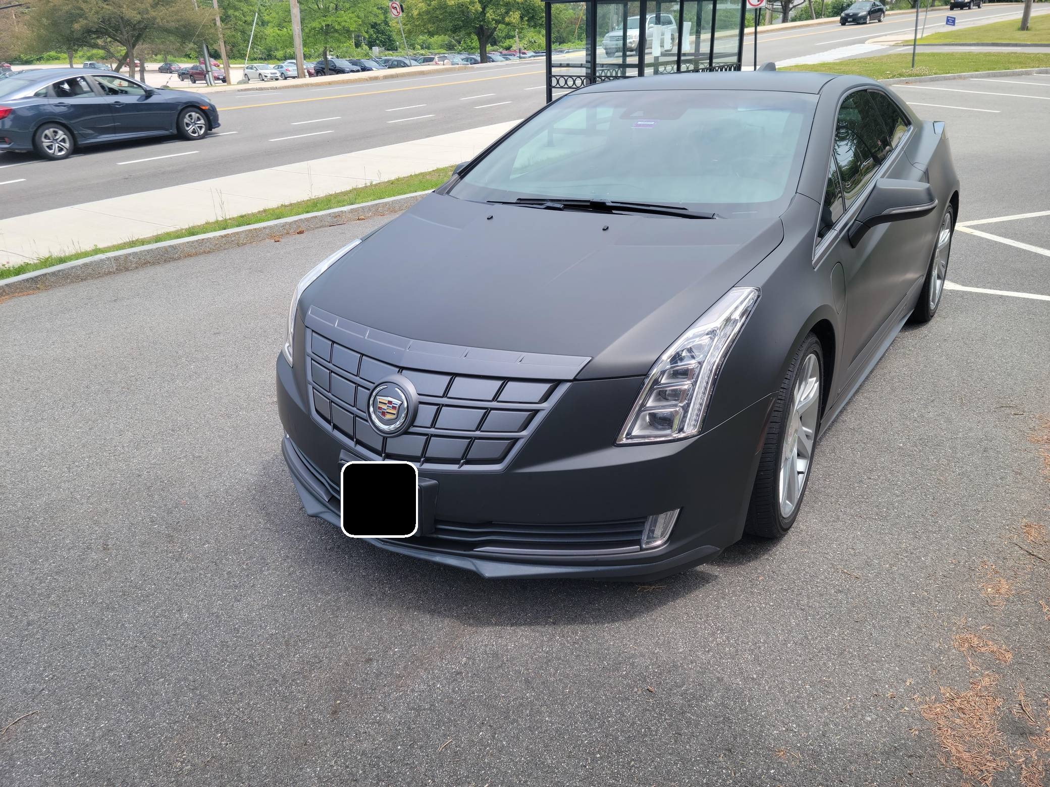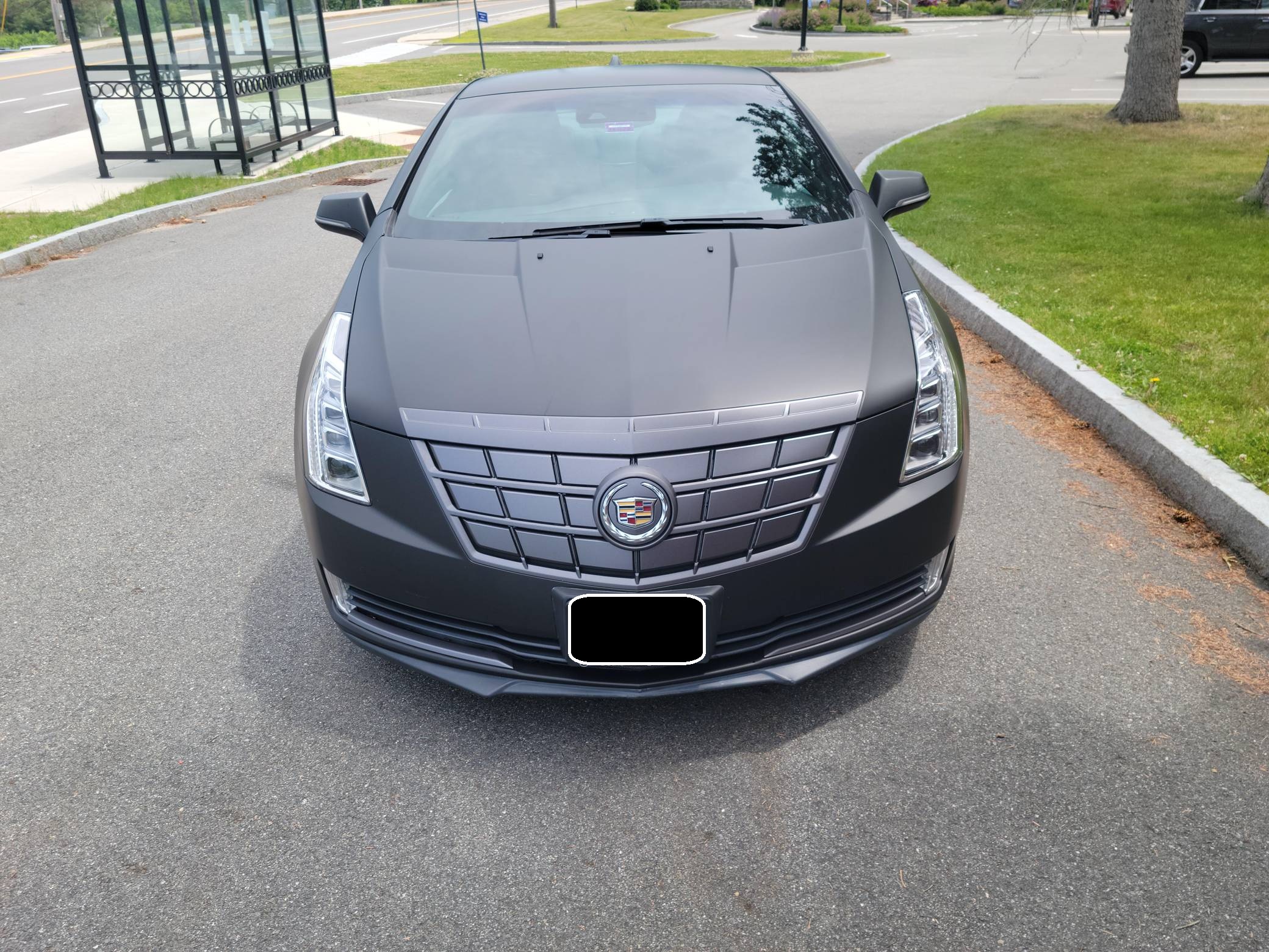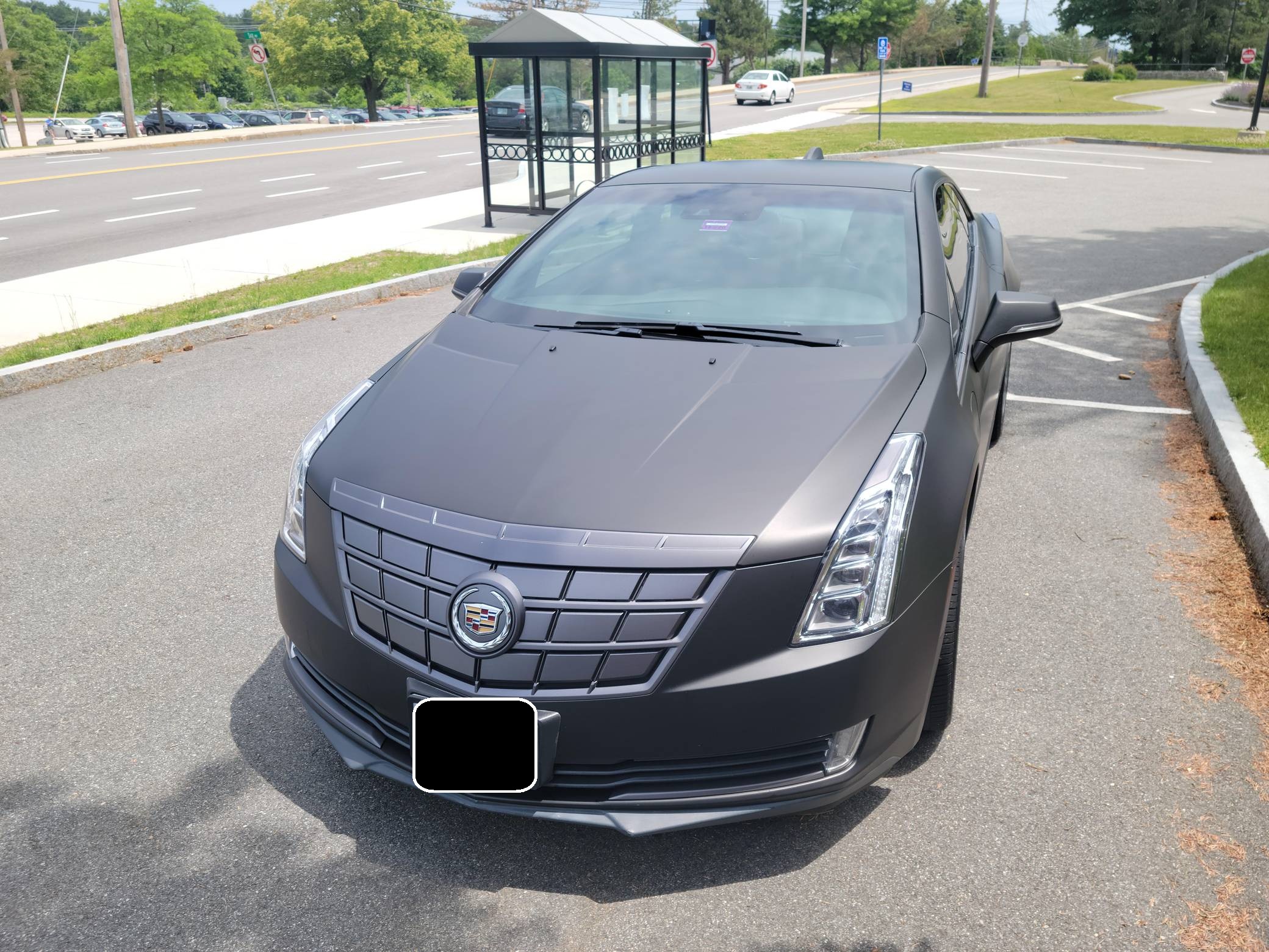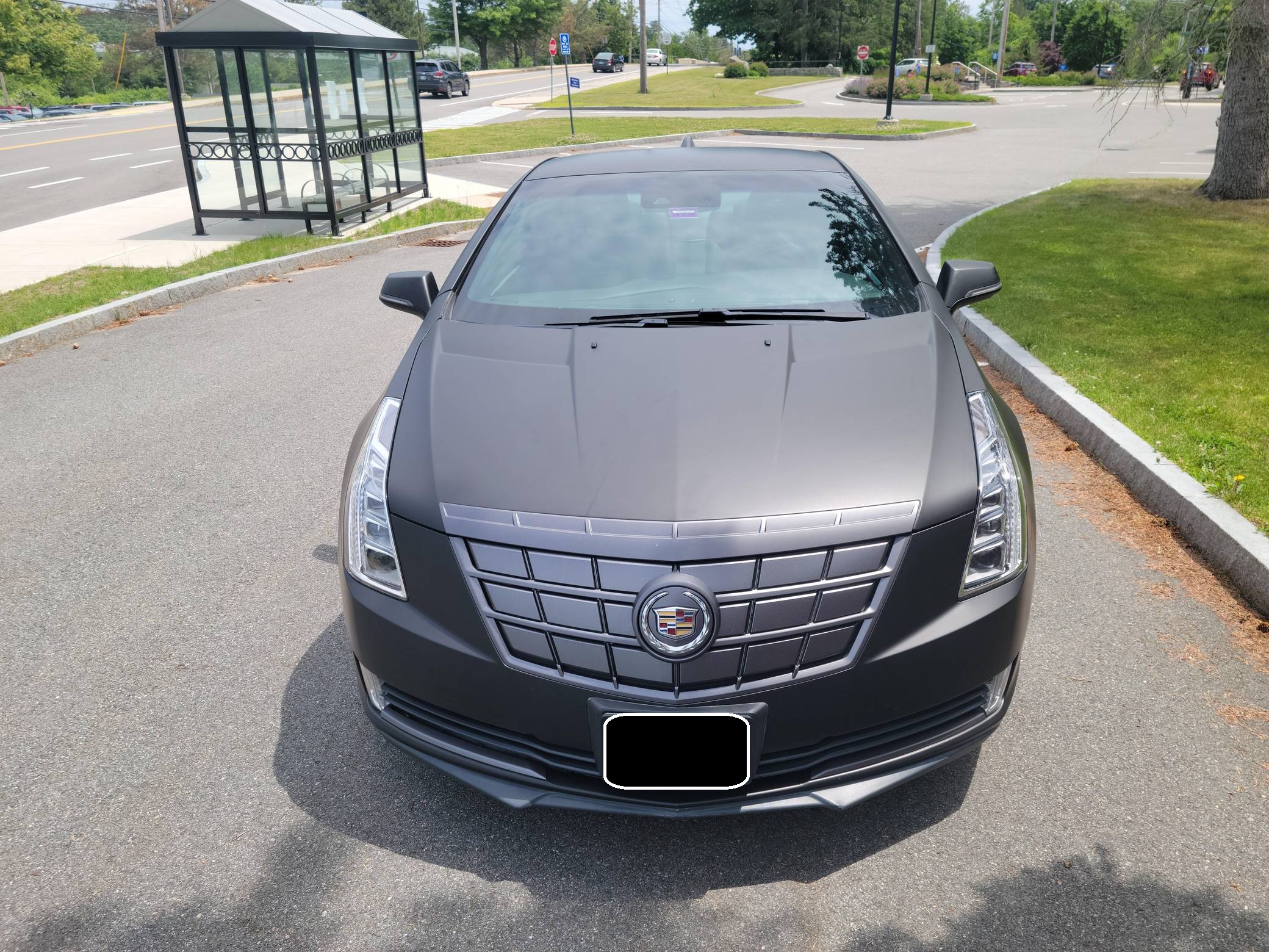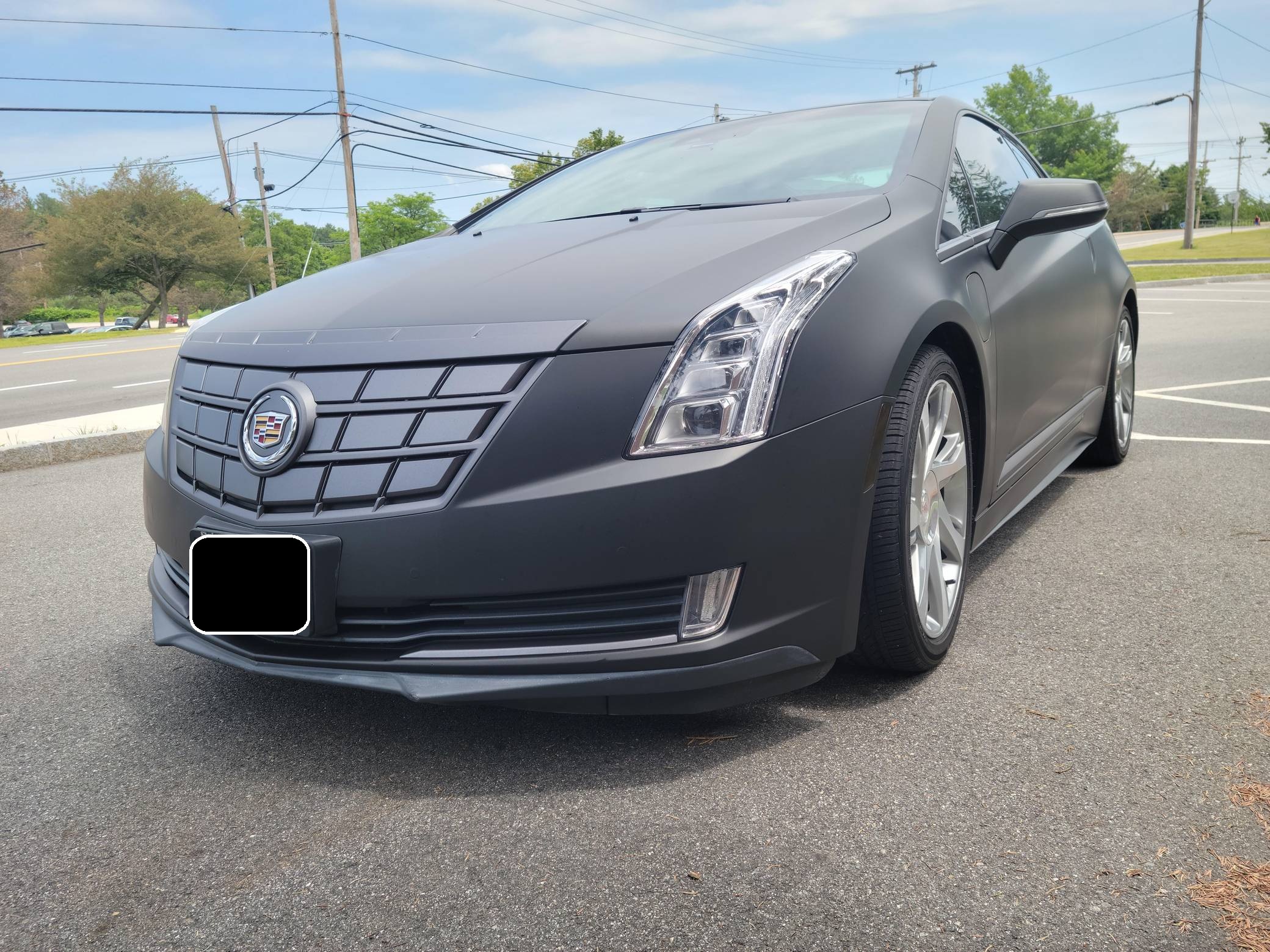 2014 Cadillac ELR, finished in Ashen Gray with a black exterior wrap and a Jet Black interior. This coupe's odometer displays about 53,000 miles. Factory equipment includes the Luxury Package, active aero grille shutters, wood and carbon fiber interior trim, heated and power-adjustable front seats, an 8-inch digital instrument cluster, a heated steering wheel, a 10-speaker Bose sound system, Bluetooth connectivity, and a rear-view camera. In addition to the black exterior wrap, the list of modifications reported by the seller include a black wrap on the exterior trim pieces and tinted side-marker lights. Photos showing this ELR before the wrap was applied are pictured in the gallery. The Cadillac ELR made its debut for 2014. Its exterior design drew inspiration from the Converj concept unveiled in 2009, and the angular sheet metal covered a plug-in hybrid system related to the Chevrolet Volt's. This four-seater coupe was envisioned as a different kind of Cadillac that would allow the brand to reach new buyers. Sales were lower than expected, and the ELR retired after the 2016 model year. Power comes from a gasoline-electric plug-in hybrid drivetrain, which consists of a 1. 4-liter 4-cylinder engine, an electric motor, and a 16. 5-kilowatt-hour lithium-ion battery pack. The system sends 217 horsepower and 295 lb-ft of torque to the front wheels via a single-speed transmission.
