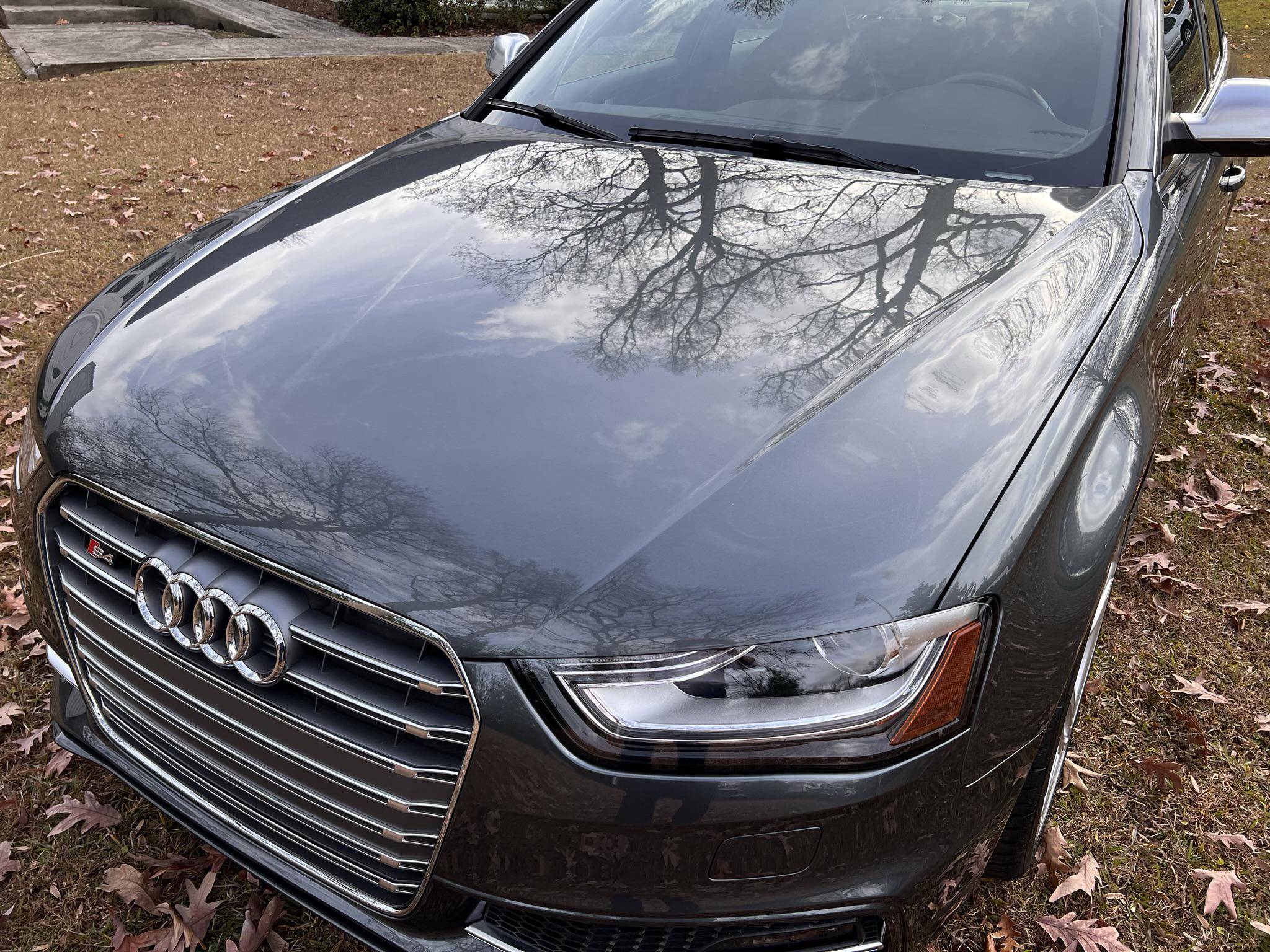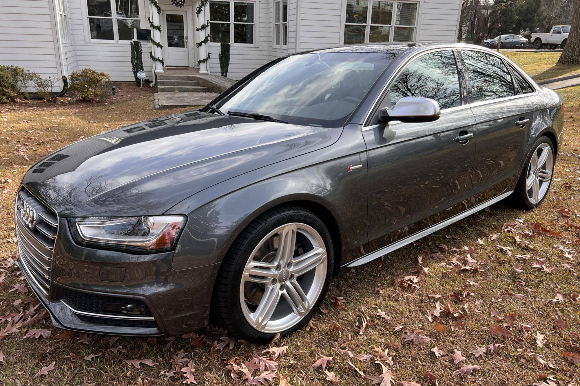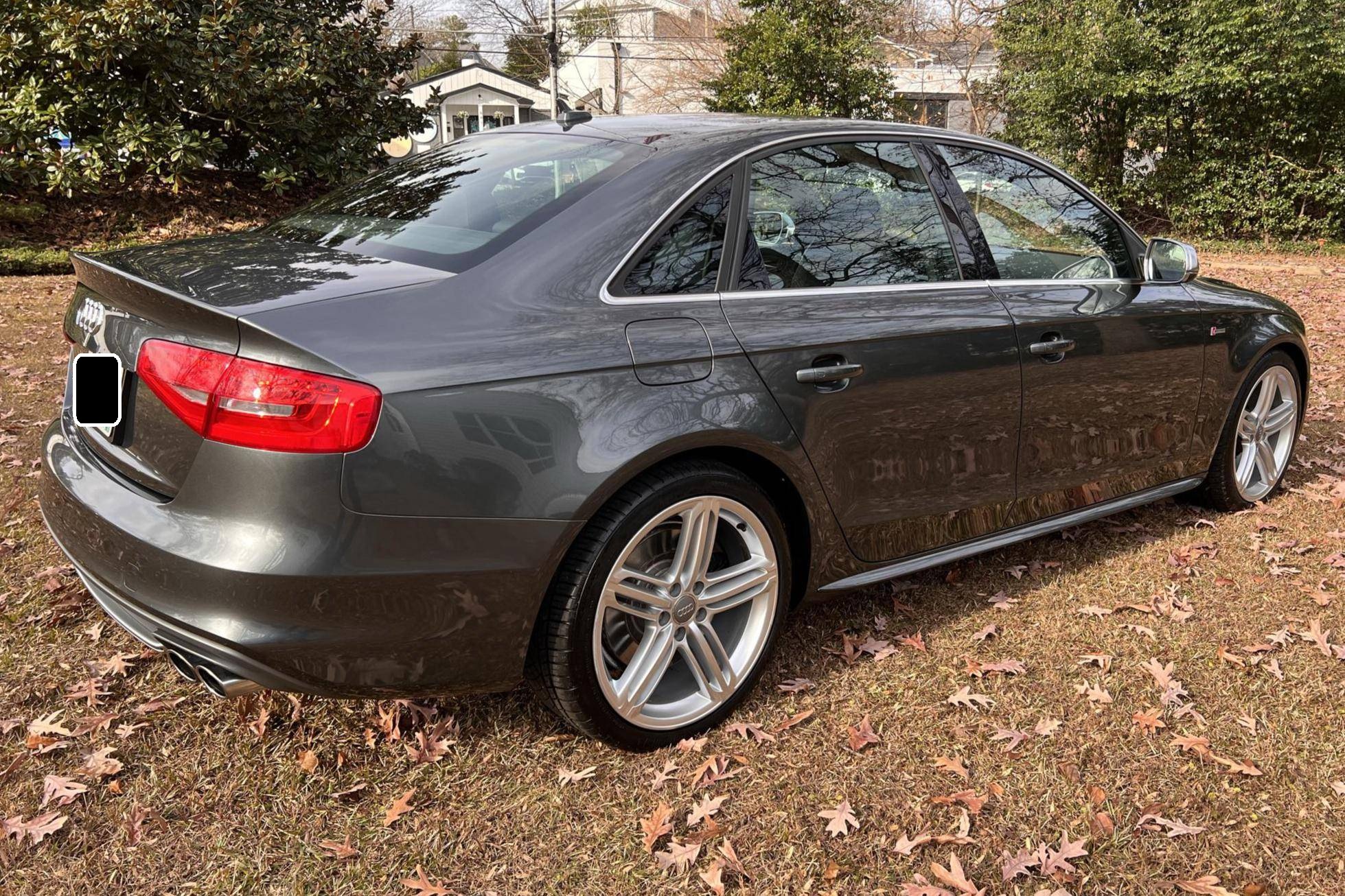 2015 Audi S4, finished in Daytona Gray Pearl Metallic with a black interior. This S4 is equipped with a 6-speed manual transmission. A full list is detailed below, some highlights include Quattro all-wheel-drive with the sports differential, 19-inch 5-spoke wheels, 12-way power-adjustable 'S' front sport seats, a power sunroof, and tri-zone automatic climate control. The seller reports no modifications. Service invoices in the photo gallery show that this S4 received a new in-tank fuel pump assembly in September 2021 at 31,937 miles. Called "B8" internally, the 4th-generation Audi A4 made its debut for the 2009 model year, and the quicker S4 arrived for 2010 with a supercharged engine and a firmer suspension system. Audi gave both models a mid-cycle update for 2013 that brought a sharper-looking exterior design, among other changes. Production ended in 2016. Power comes from a "TFSI" 3. 0-liter supercharged V6, rated at 333 horsepower and 325 lb-ft of torque from the factory. Output is directed to all four wheels through a 6-speed manual transmission and Audi's permanent Quattro all-wheel-drive system.