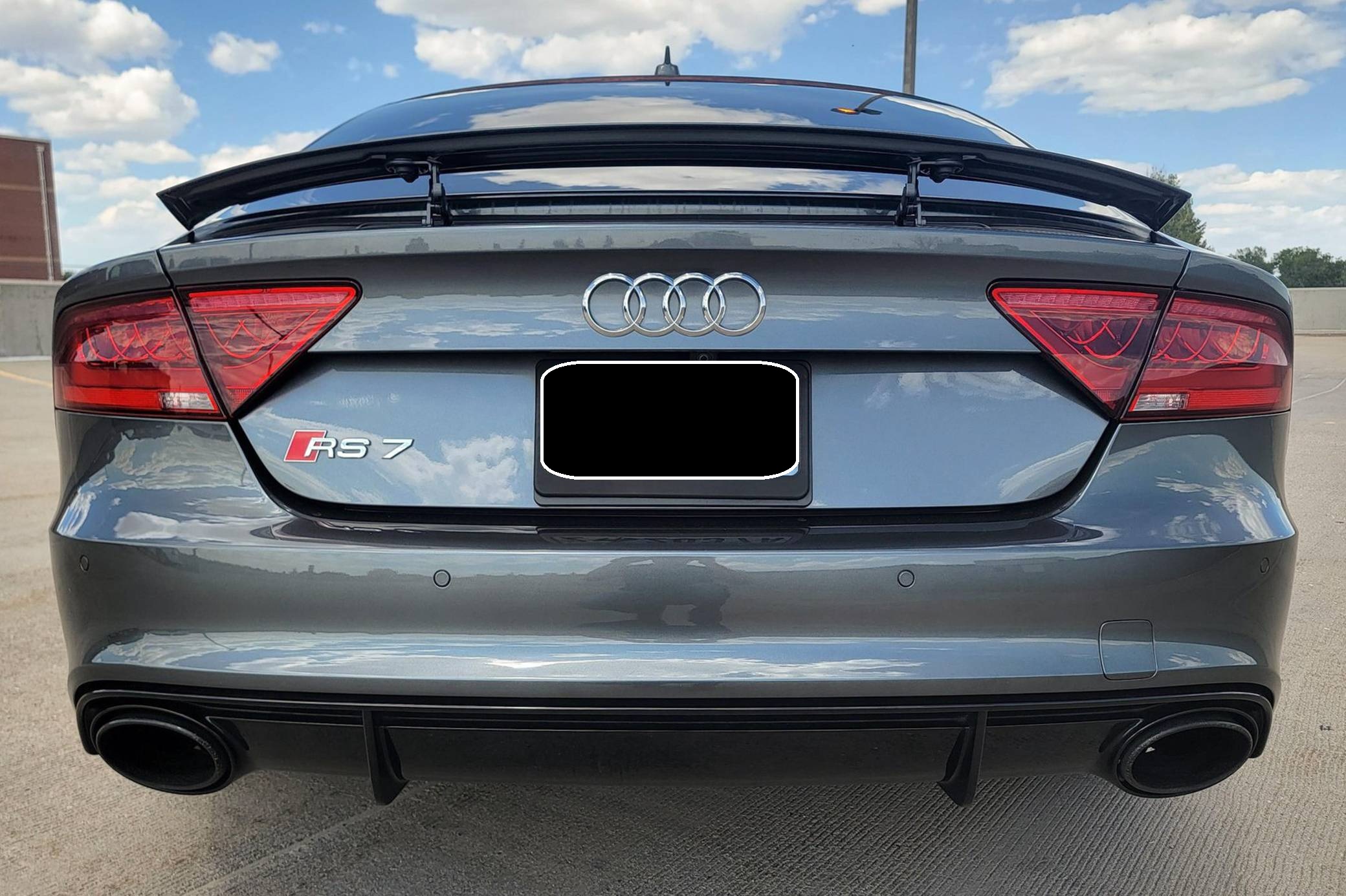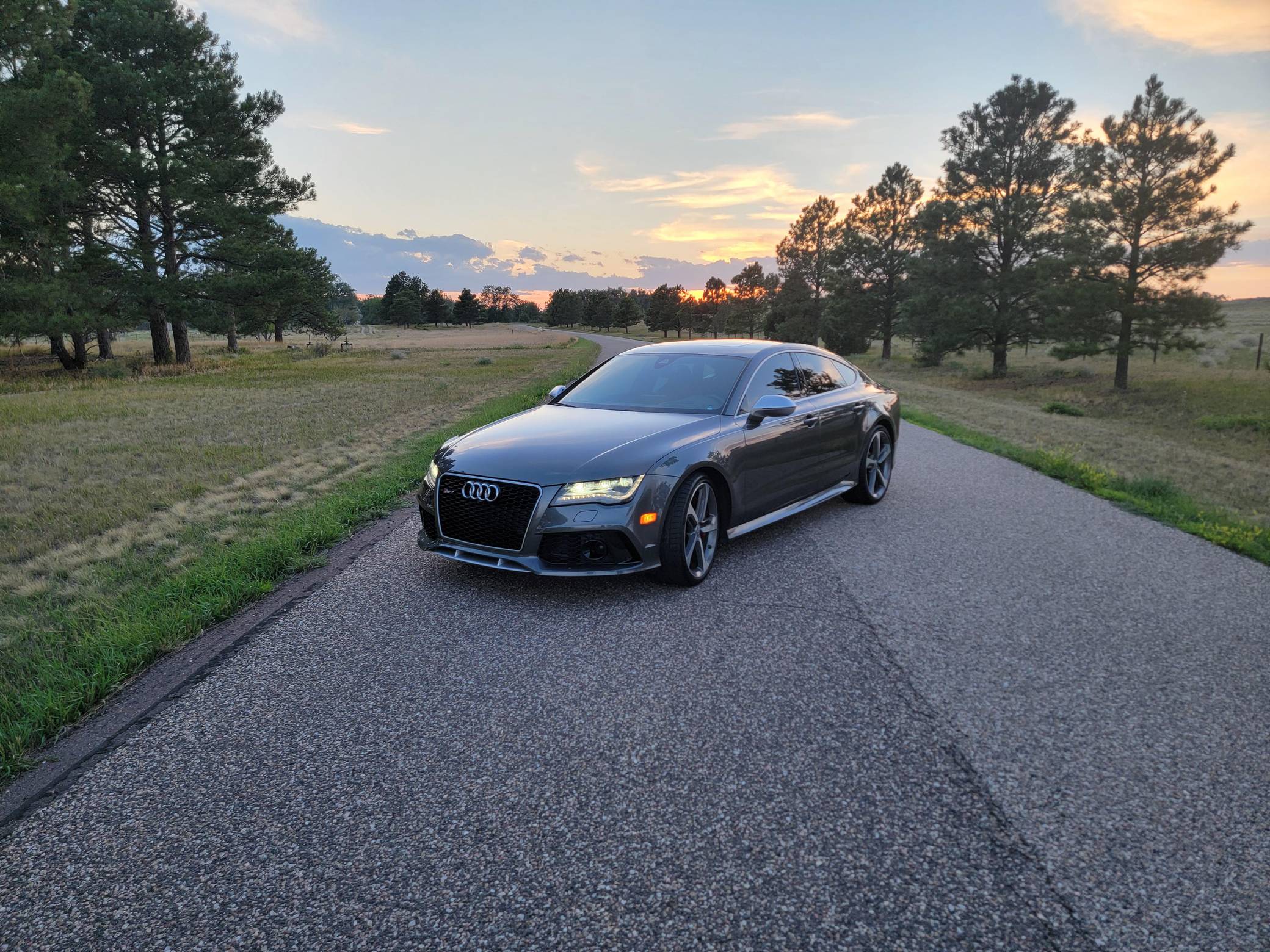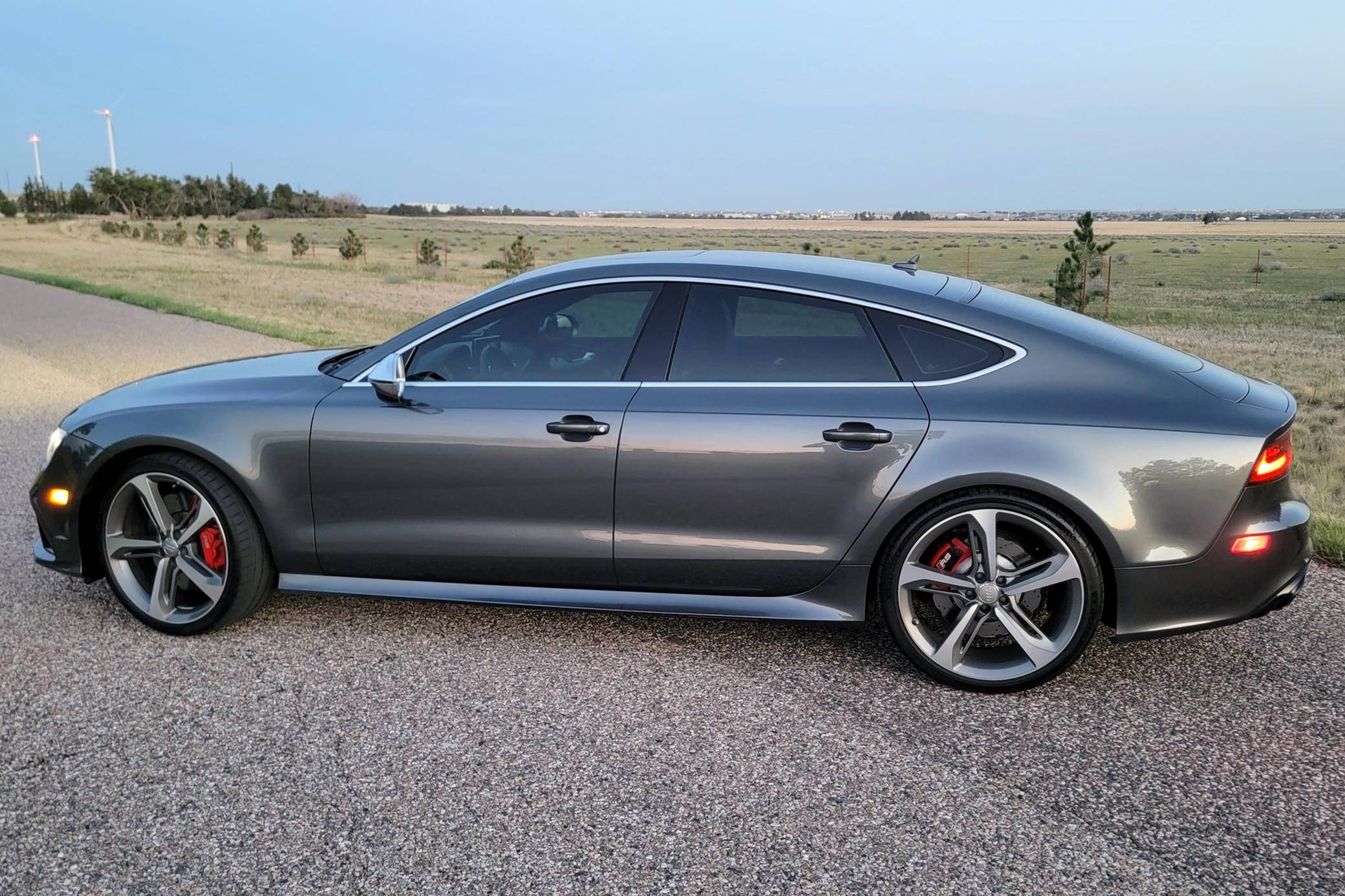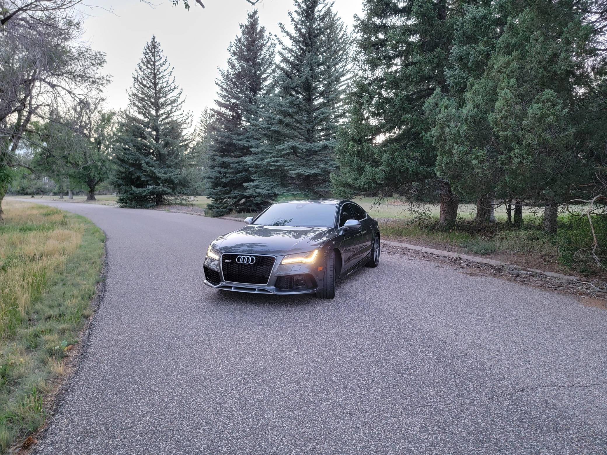 THIS… is a 2014 Audi RS7, finished in Daytona Gray Pearl Effect with a black interior. Factory equipment includes the RS7 Dynamic, Driver Assistance, and Innovation Packages, 21-inch 5-spoke Blade Design wheels, leather upholstery, carbon fiber interior trim, power-adjustable front seats, a Bang & Olufsen advanced sound system, and an Audi MMI Navigation Plus system with MMI Touch. Modifications are limited to tinted windows. Audi introduced the "Type 4G8" A7 in 2010, and the range-topping RS7 variant arrived in 2013. In addition to power upgrades, Audi also added a myriad of high-performance equipment such as 15-inch front brake rotors with 6-piston calipers, Quattro all-wheel-drive with torque vectoring, and a locking center differential, among other RS-specific features. Power comes from a "TFSI" 4. 0-liter twin-turbocharged V8, rated at 560 horsepower and 516 lb-ft of torque. Output is sent to all four wheels via an 8-speed automatic transmission and Audi's Quattro permanent all-wheel-drive system.