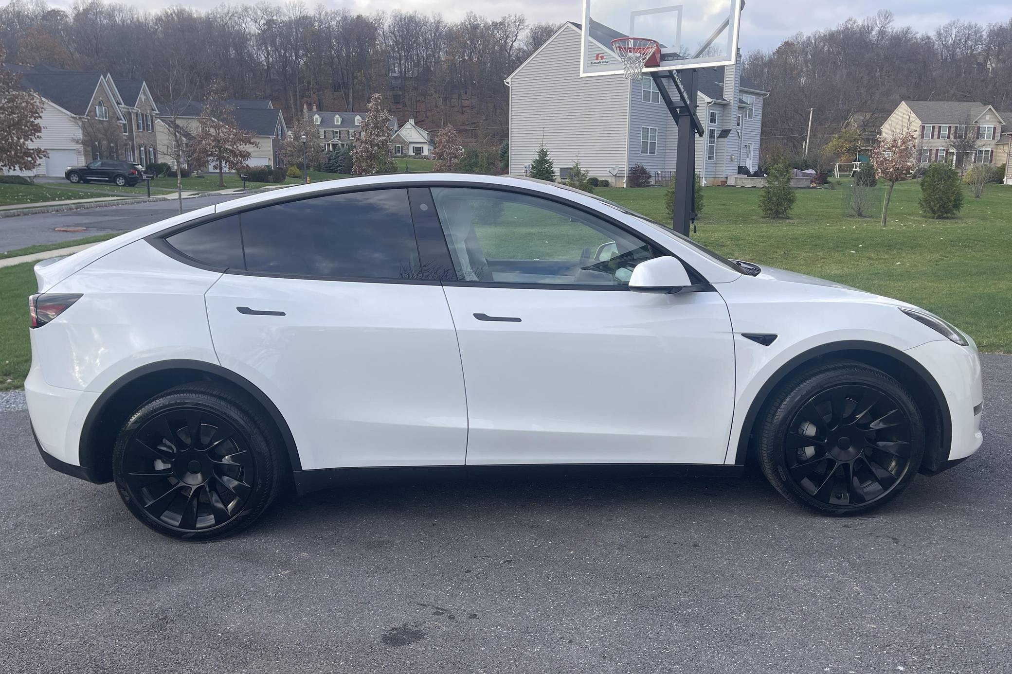 THIS. . . is a 2022 Tesla Model Y Long Range AWD, finished in Pearl White Multi-Coat with a black and white interior. Factory equipment includes the Enhanced Autopilot, 20-inch "Induction" wheels, full LED lighting, glass roof panels, a power-operated liftgate, premium 5-seat interior configuration, power-adjustable front seats, heated front and rear seats, heated steering wheel, automatic climate control, 15-inch capacitive touchscreen, WiFi and mobile network connectivity, and a navigation system, among others listed below. The seller reports no modifications. Introduced in 2020, the Model Y was Tesla's second crossover offering. Although it's the smaller sibling of the Model X, it's actually based on the Model 3 sedan's platform and features a similar drivetrain and equipment. At launch, the Model Y was marketed as a premium EV with a usable range and respectable performance, all at a reasonably attainable price. Power comes from a pair of electric motors, which draw electricity from a 80-kilowatt-hour lithium-ion battery pack to zap the four wheels with 384 horsepower and 376 lb-ft of torque, according to third-party estimates. The Model Y Long Range AWD variant has an estimated driving range of 318 miles when equipped with 20-inch wheels.