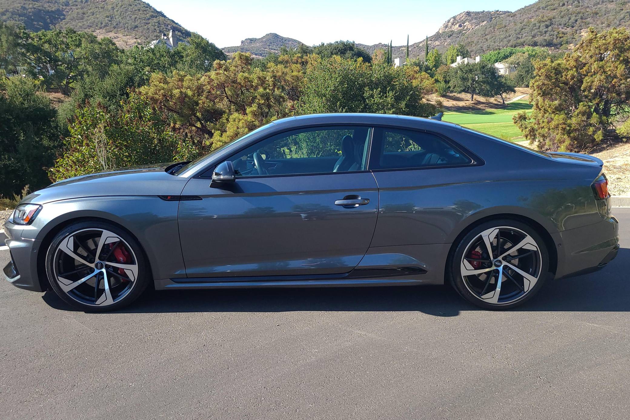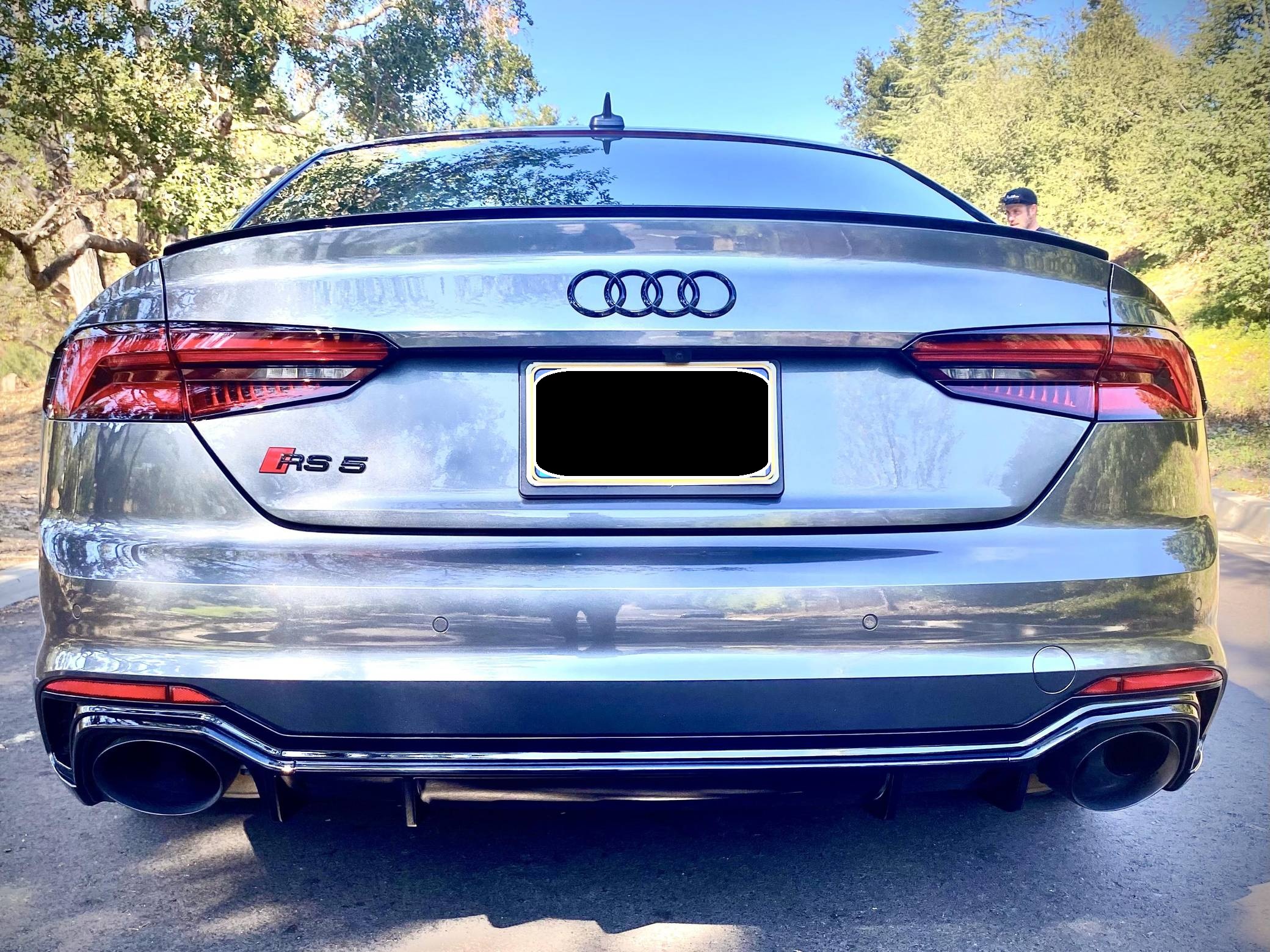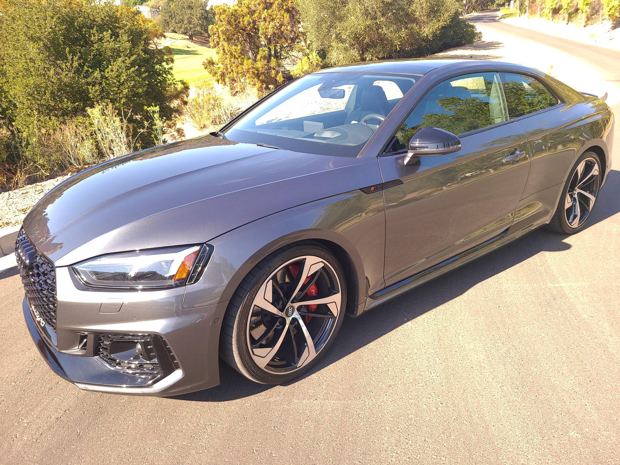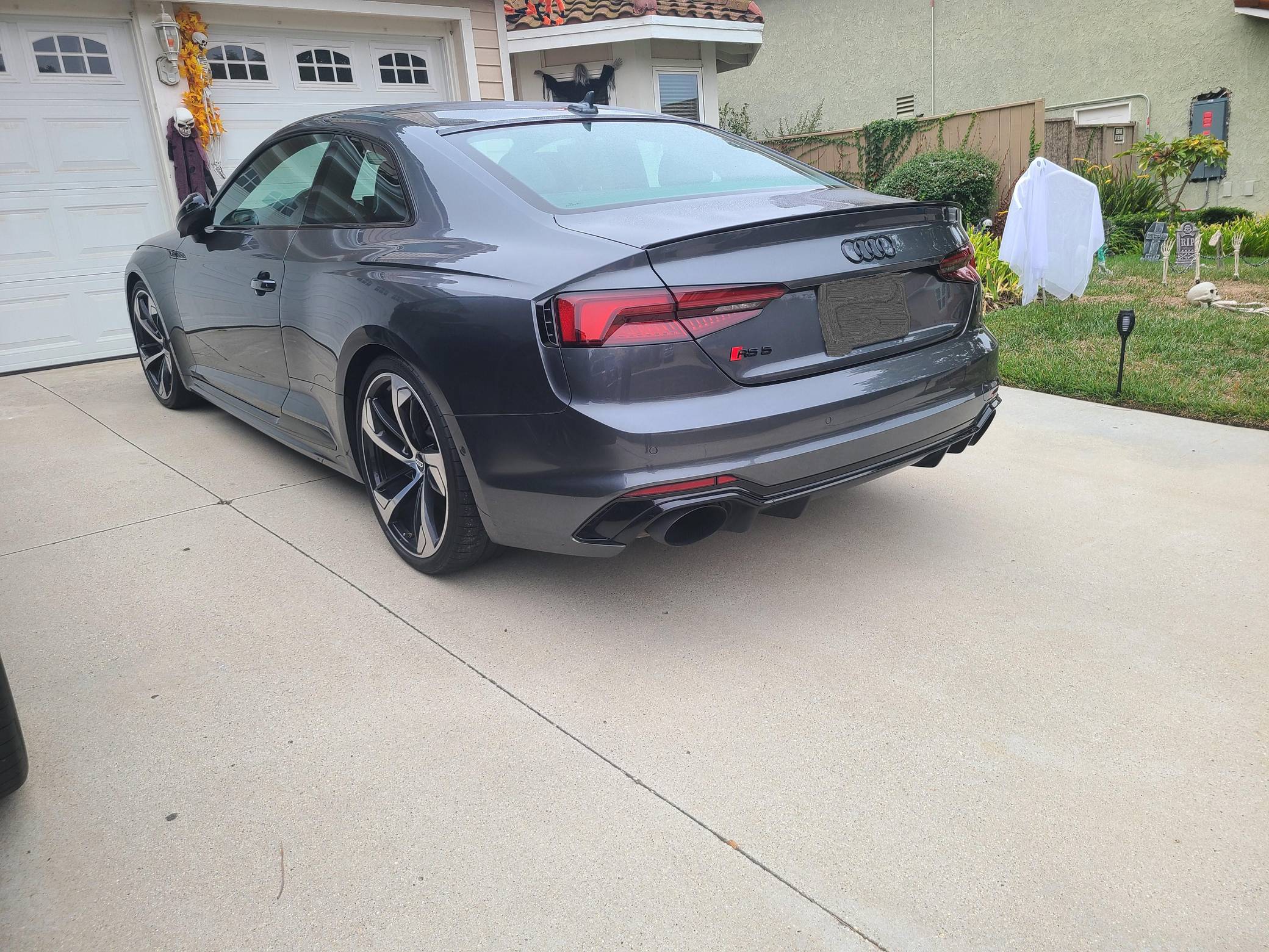 THIS… is a 2019 Audi RS5 Coupe, finished in Daytona Gray Pearl Effect with a black interior. The odometer on this RS5 currently displays approximately 19,500 miles. Factory equipment includes the RS Driver Assistance, Dynamic, Black Optic, and Fine Nappa Leather packages, dynamic steering, a power sunroof, three-zone automatic climate control, Audi virtual cockpit, a navigation system, and a Bang & Olufsen sound system. Modifications reported by the seller include an ARMYTRIX ceramic coated sport cat-pipe with 200 CPSI catalytic converters and a stainless steel Valvetronic cat-back exhaust system, an AWE AirGate carbon fiber intake, an aftermarket tune, and black paint on the exterior badges. Audi released the second-generation RS5 for 2018 as the ultimate evolution of the A5. Offered as a coupe and as a fastback called Sportback, it swapped its predecessor's V8 for a twin-turbocharged V6 but it gained torque in the trade. Huge brakes and a model-specific suspension system helped drivers make the most of the drivetrain, while a more muscular-looking exterior design allowed the RS5 to easily stand out from the S5. It remains available as Audi of America's answer to the BMW M4. Power comes from a twin-turbocharged 2. 9-liter V6, rated at 444 horsepower and 443 lb-ft of torque in stock form. Due to the modifications performed to this RS5, it may produce more power, but a dyno sheet was not provided to confirm. Output is sent to all four wheels via an 8-speed automatic transmission and Audi's permanent Quattro all-wheel drive system.