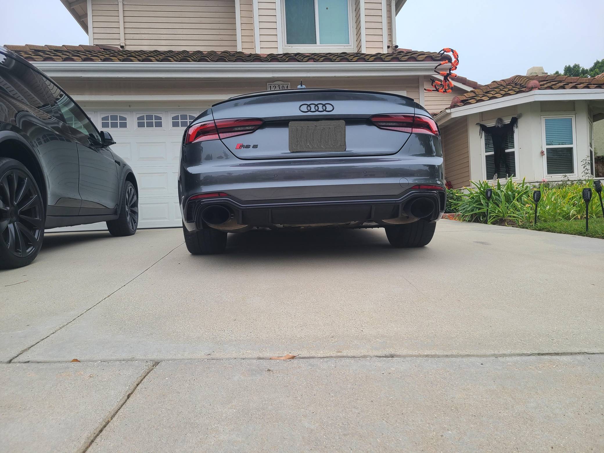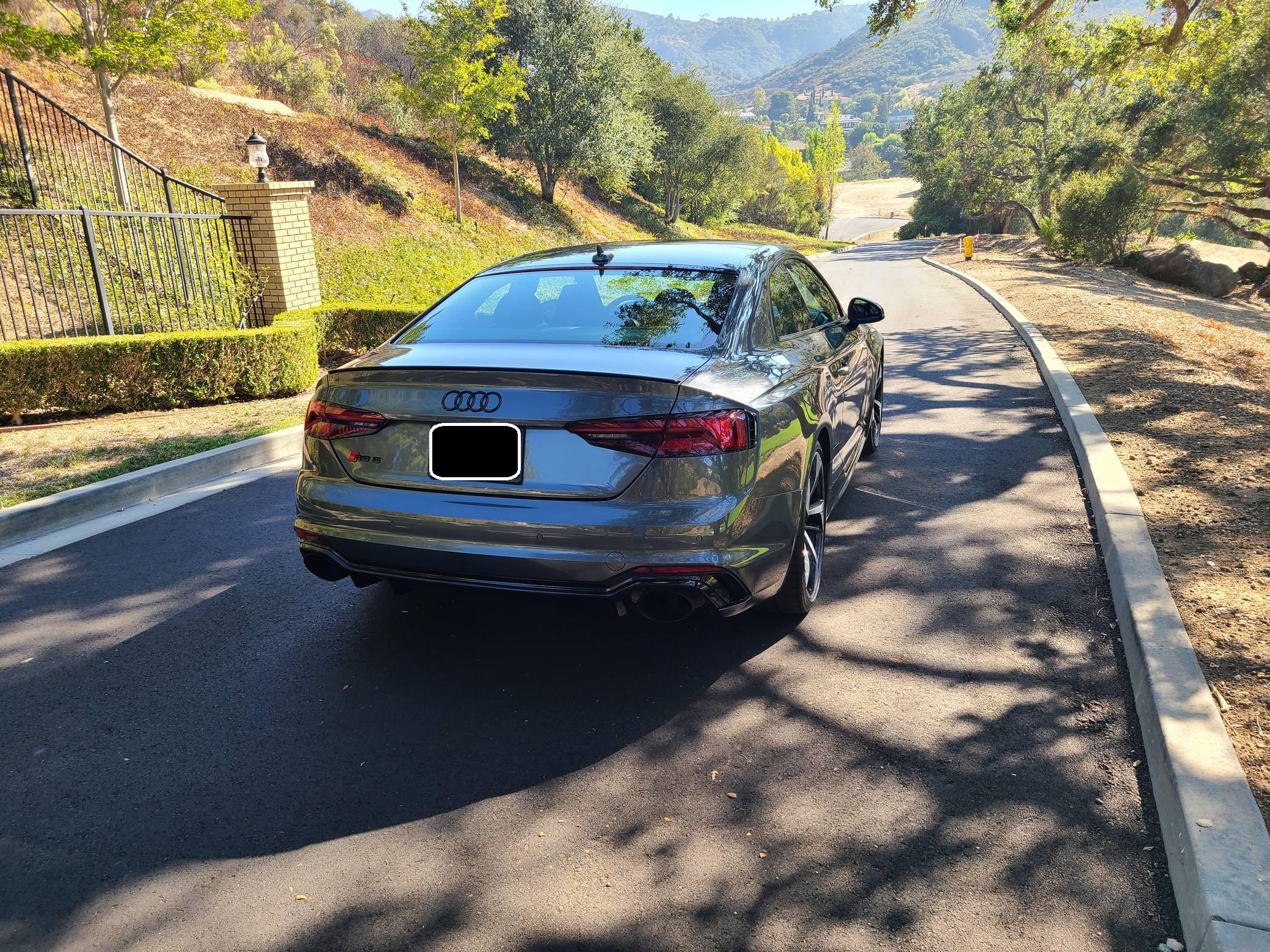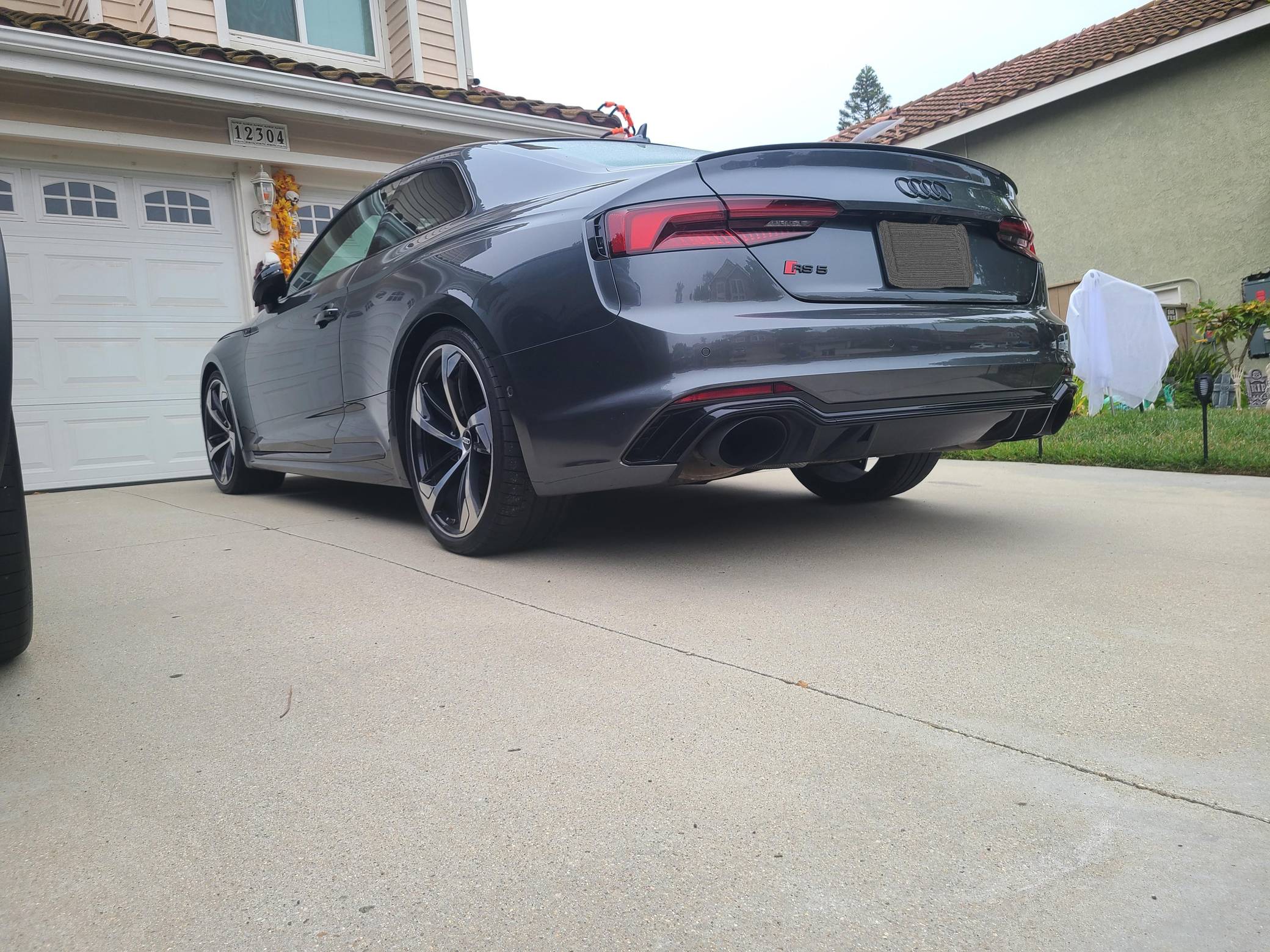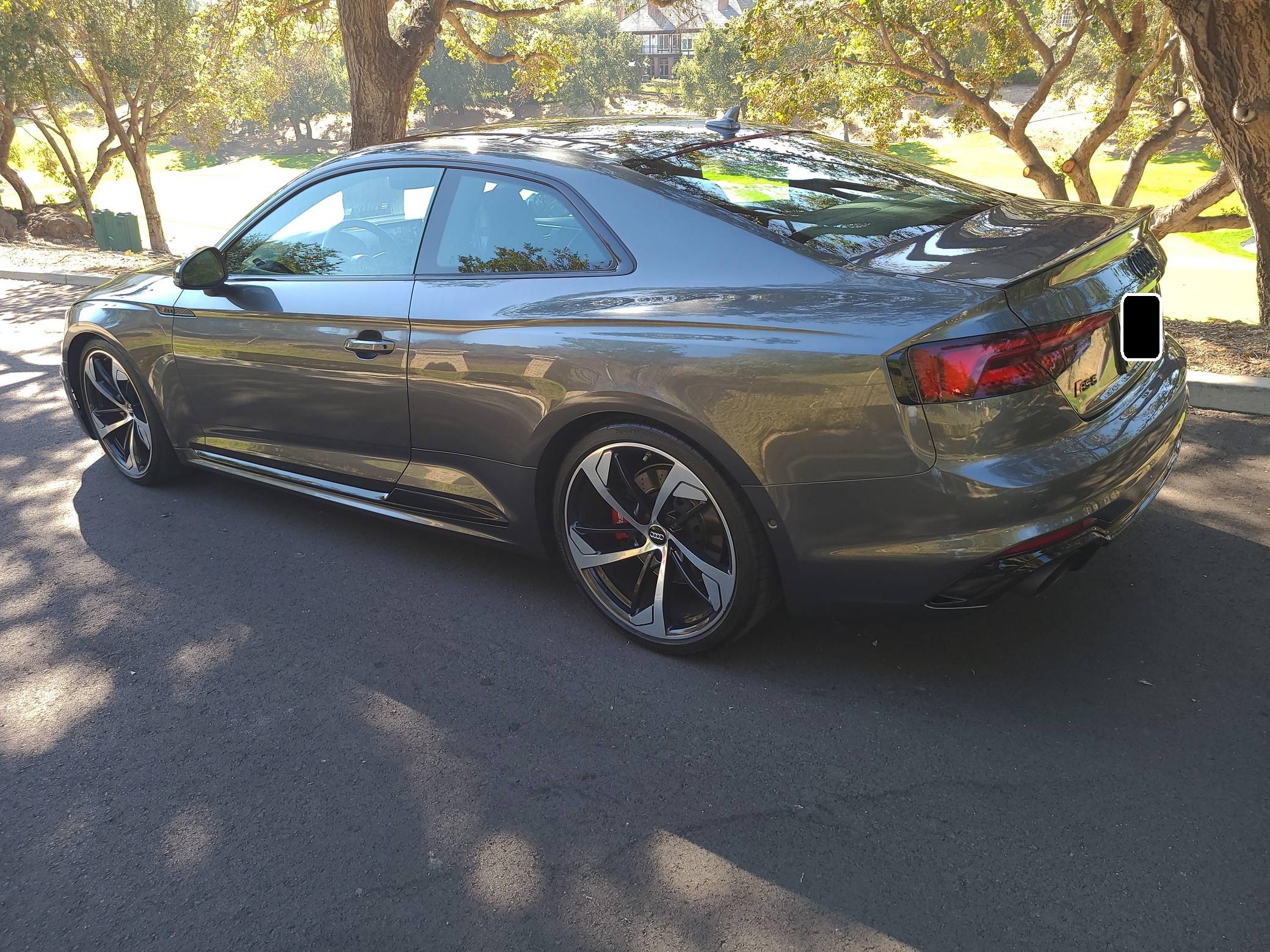 THIS… is a 2019 Audi RS5 Coupe, finished in Daytona Gray Pearl Effect with a black interior. The odometer on this RS5 currently displays approximately 19,500 miles. Factory equipment includes the RS Driver Assistance, Dynamic, Black Optic, and Fine Nappa Leather packages, dynamic steering, a power sunroof, three-zone automatic climate control, Audi virtual cockpit, a navigation system, and a Bang & Olufsen sound system. Modifications reported by the seller include an ARMYTRIX ceramic coated sport cat-pipe with 200 CPSI catalytic converters and a stainless steel Valvetronic cat-back exhaust system, an AWE AirGate carbon fiber intake, an aftermarket tune, and black paint on the exterior badges. Audi released the second-generation RS5 for 2018 as the ultimate evolution of the A5. Offered as a coupe and as a fastback called Sportback, it swapped its predecessor's V8 for a twin-turbocharged V6 but it gained torque in the trade. Huge brakes and a model-specific suspension system helped drivers make the most of the drivetrain, while a more muscular-looking exterior design allowed the RS5 to easily stand out from the S5. It remains available as Audi of America's answer to the BMW M4. Power comes from a twin-turbocharged 2. 9-liter V6, rated at 444 horsepower and 443 lb-ft of torque in stock form. Due to the modifications performed to this RS5, it may produce more power, but a dyno sheet was not provided to confirm. Output is sent to all four wheels via an 8-speed automatic transmission and Audi's permanent Quattro all-wheel drive system.