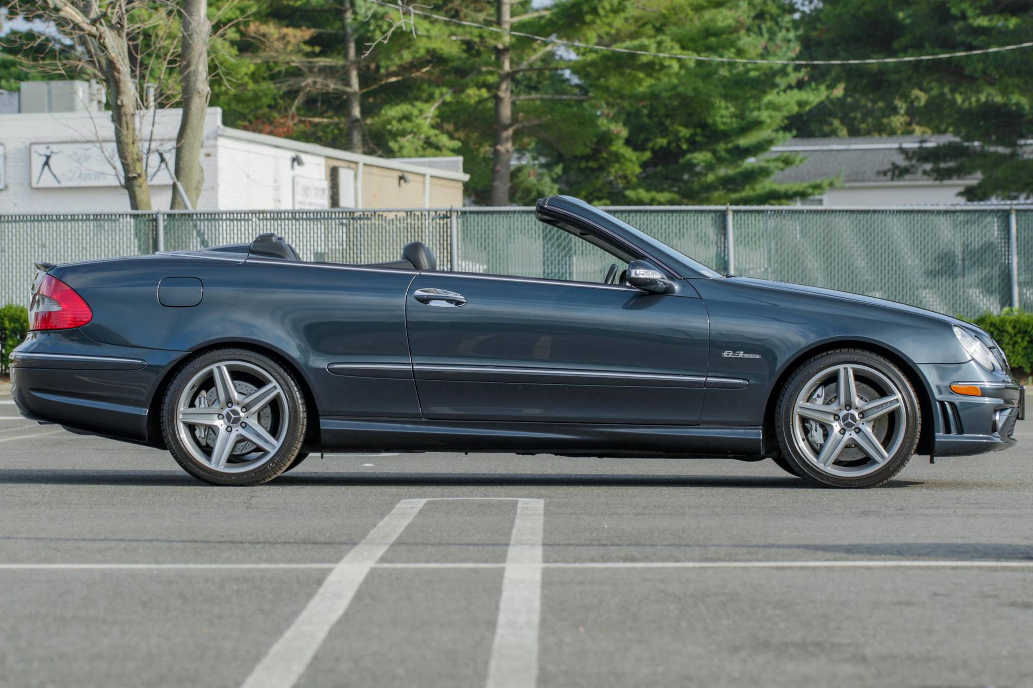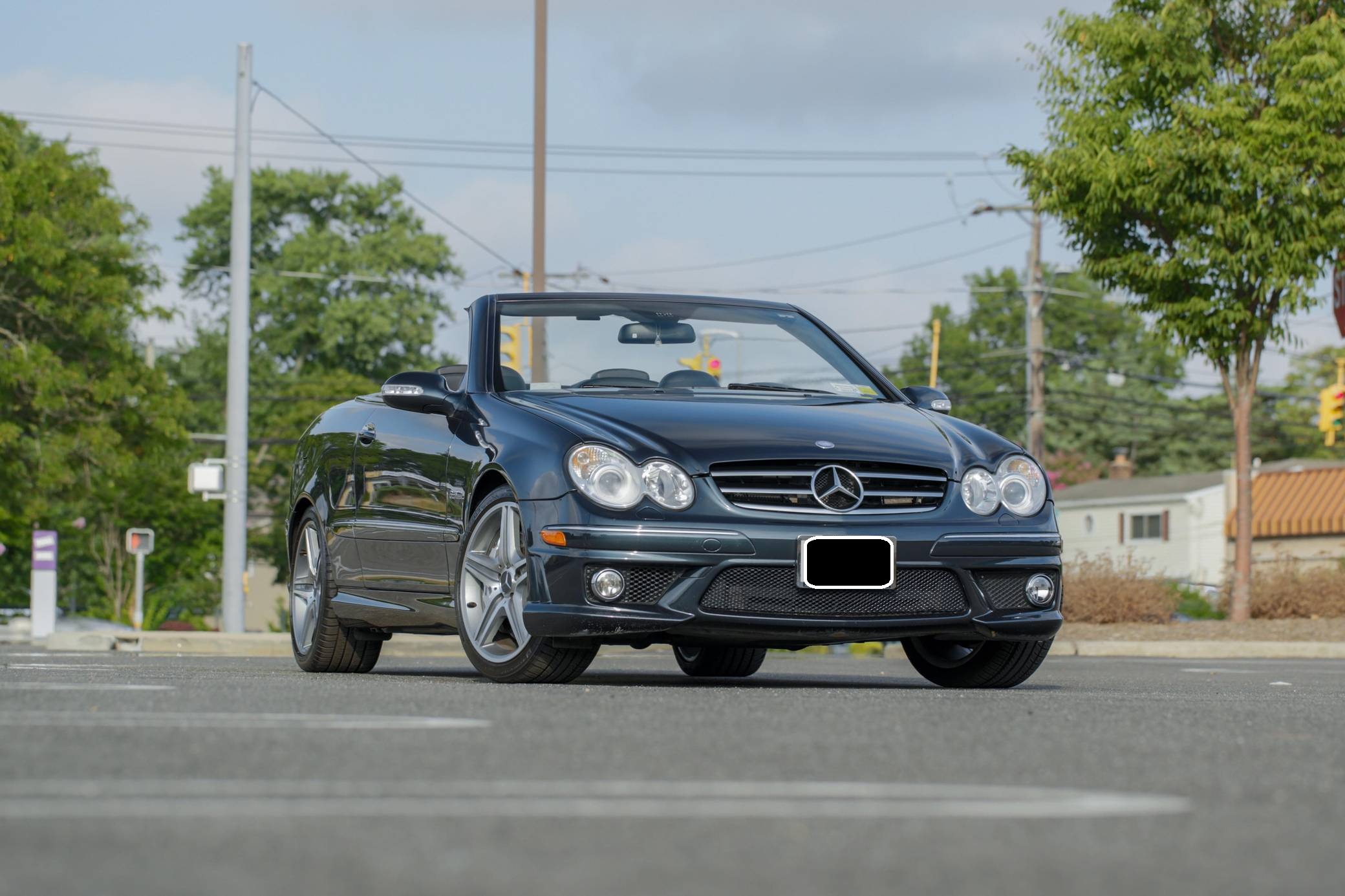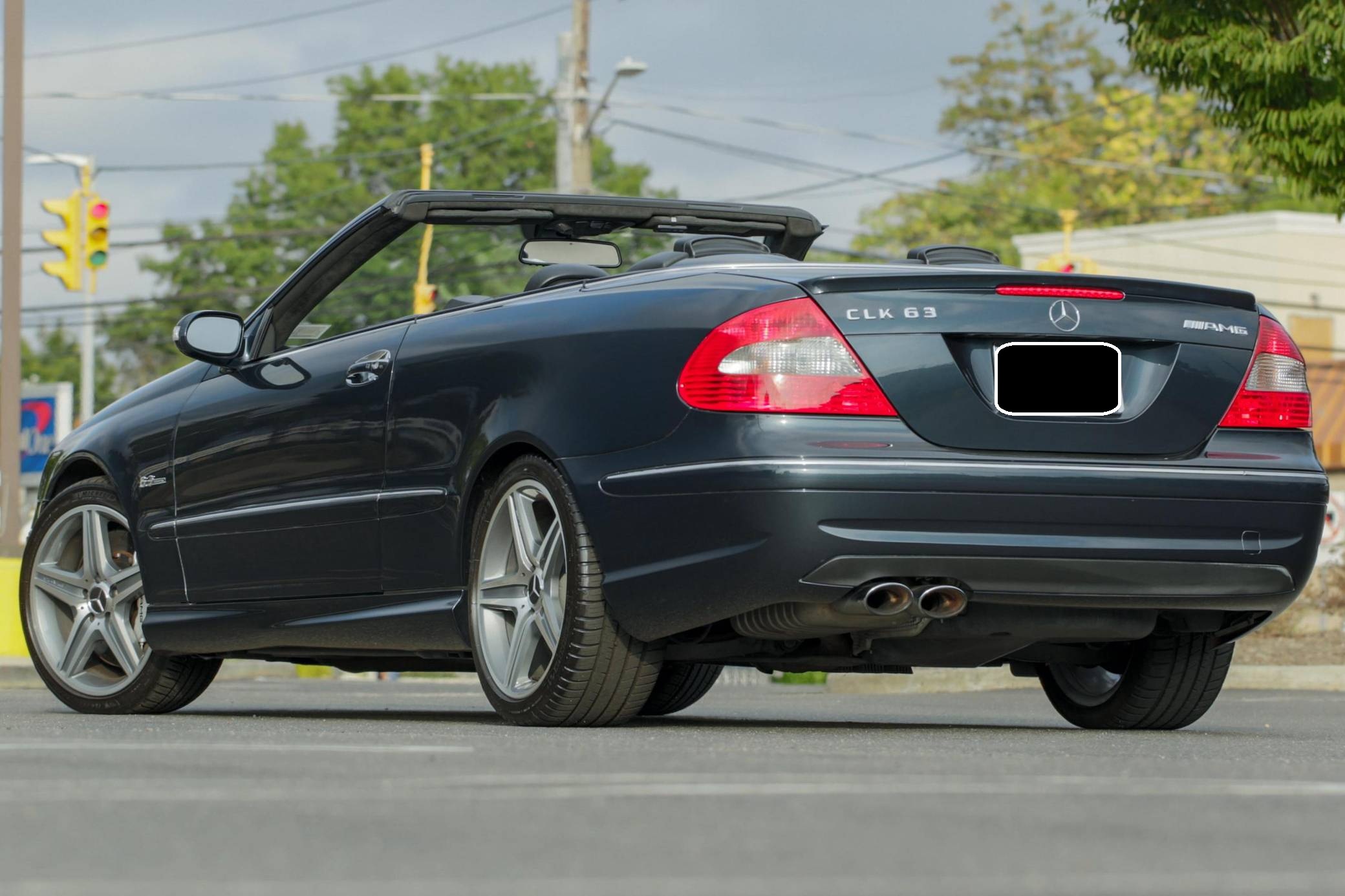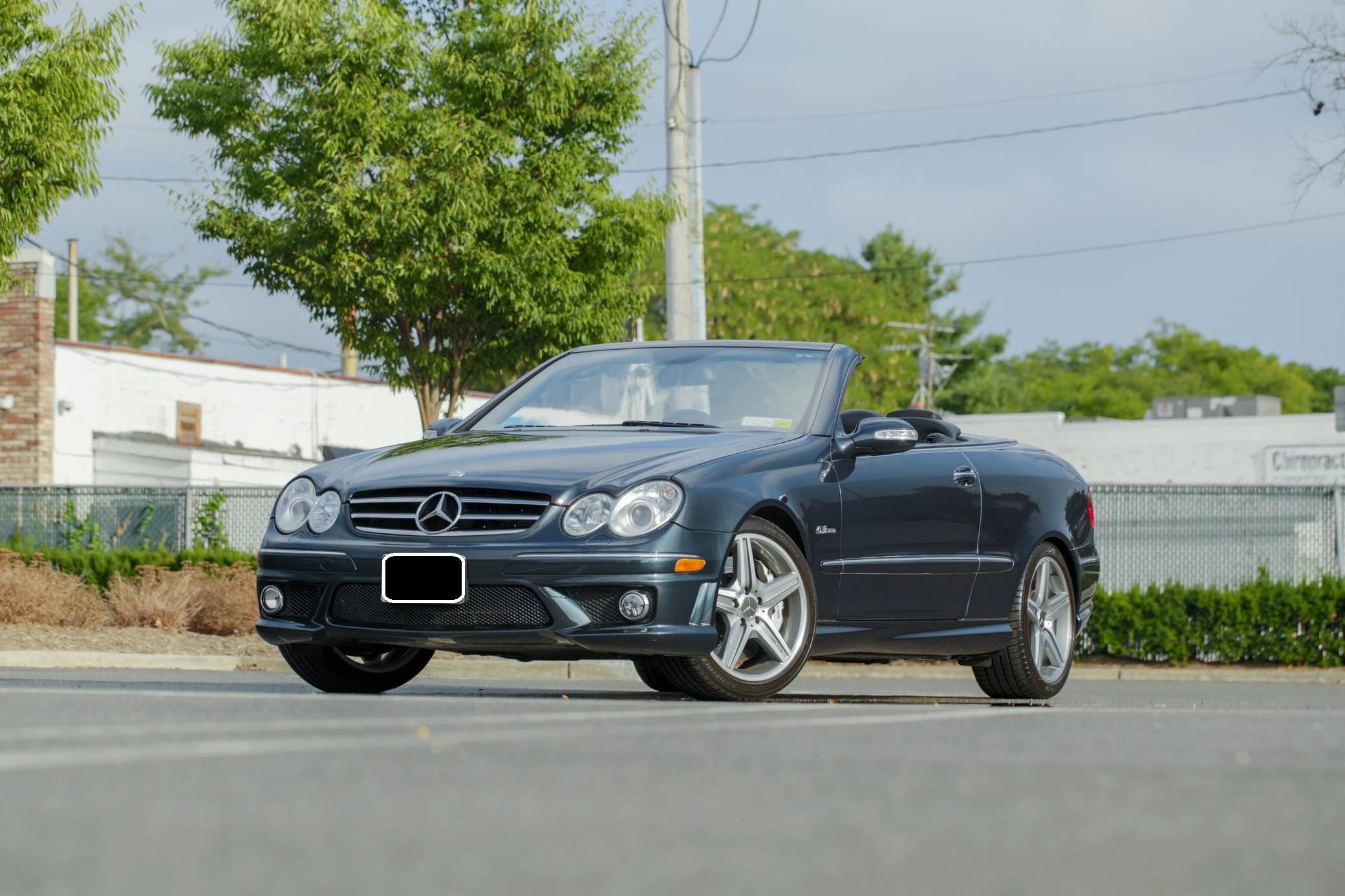 2007 Mercedes-Benz CLK63 AMG Cabriolet, finished in Black Opal Metallic with a black soft top and a black interior. This Mercedes-Benzs odometer currently displays about 47,600 miles. Factory equipment includes 18-inch AMG wheels, a power-operated soft top, leather upholstery, wood interior trim, a multi-contour driver's seat, heated and power-adjustable front seats, and a 10-speaker Harman Kardon surround sound system. This CLK63's build sheet is shown in the gallery, and the factory wind deflector is included in the sale. A resonator delete is the sole modification reported by the seller. Service documentation provided in the gallery indicates that this Mercedes received a new convertible top in June 2022. Mercedes-Benz introduced the second-generation CLK for the 2003 model year. It was based on the W203-generation C-Class, but its exterior styling brought it in line with the bigger and more expensive E-Class. AMG's fire-breathing CLK63 model arrived for 2007 to replace the CLK55, and CLK sales ended after the 2009 model year. Its spot in the range was filled by the two-door versions of the E-Class. 243 units of the CLK63 Cabriolet were imported to the United States, according to production figures cited by enthusiast forum MB World. 143 of those were sold during the 2007 model year. Power comes from a 6. 2-liter V8, rated at 475 horsepower and 465 lb-ft of torque. Called "M156" internally, it spins the rear wheels via a 7-speed automatic transmission.