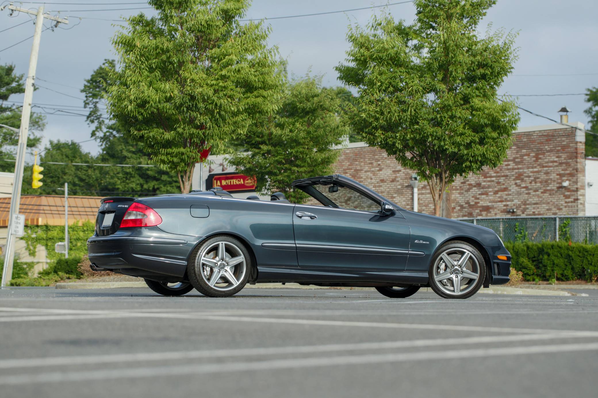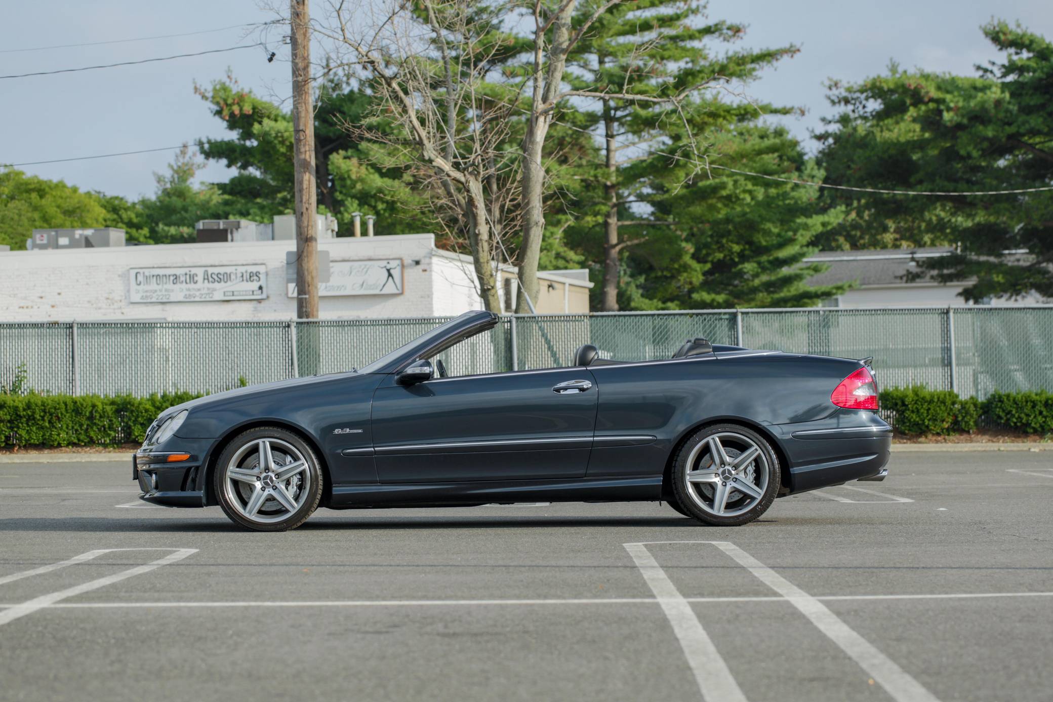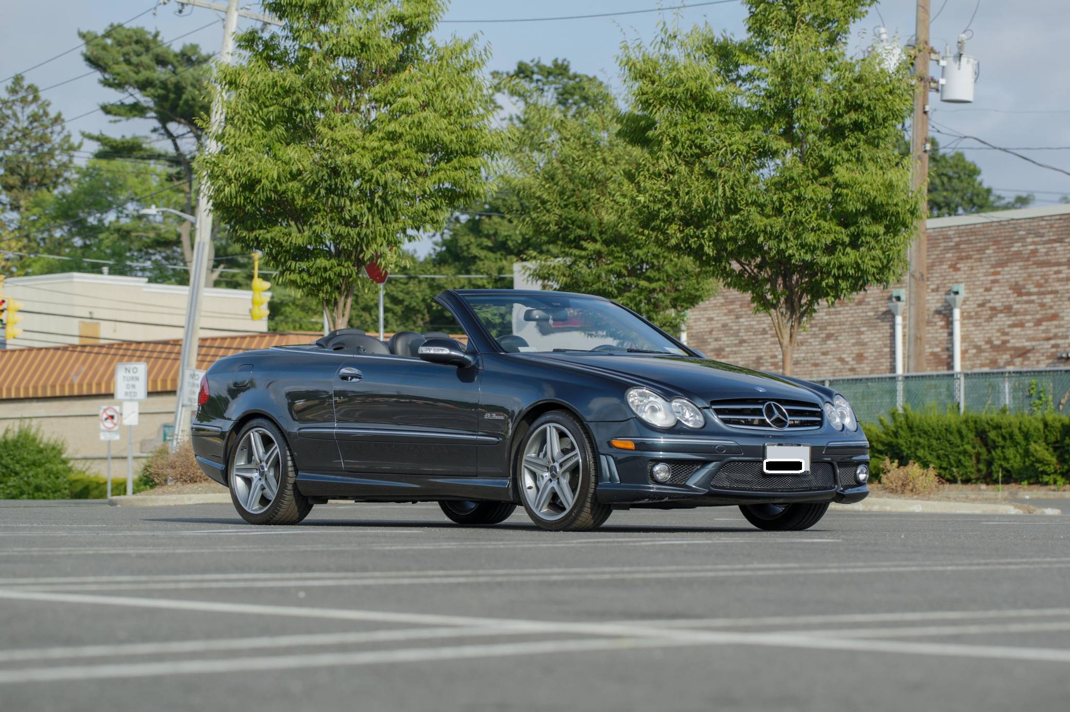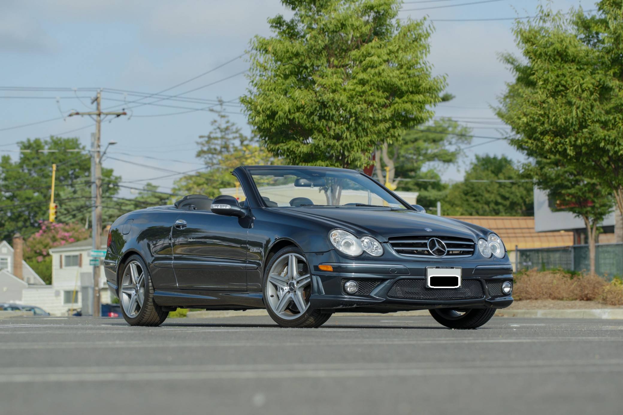 2007 Mercedes-Benz CLK63 AMG Cabriolet, finished in Black Opal Metallic with a black soft top and a black interior. This Mercedes-Benzs odometer currently displays about 47,600 miles. Factory equipment includes 18-inch AMG wheels, a power-operated soft top, leather upholstery, wood interior trim, a multi-contour driver's seat, heated and power-adjustable front seats, and a 10-speaker Harman Kardon surround sound system. This CLK63's build sheet is shown in the gallery, and the factory wind deflector is included in the sale. A resonator delete is the sole modification reported by the seller. Service documentation provided in the gallery indicates that this Mercedes received a new convertible top in June 2022. Mercedes-Benz introduced the second-generation CLK for the 2003 model year. It was based on the W203-generation C-Class, but its exterior styling brought it in line with the bigger and more expensive E-Class. AMG's fire-breathing CLK63 model arrived for 2007 to replace the CLK55, and CLK sales ended after the 2009 model year. Its spot in the range was filled by the two-door versions of the E-Class. 243 units of the CLK63 Cabriolet were imported to the United States, according to production figures cited by enthusiast forum MB World. 143 of those were sold during the 2007 model year. Power comes from a 6. 2-liter V8, rated at 475 horsepower and 465 lb-ft of torque. Called "M156" internally, it spins the rear wheels via a 7-speed automatic transmission.