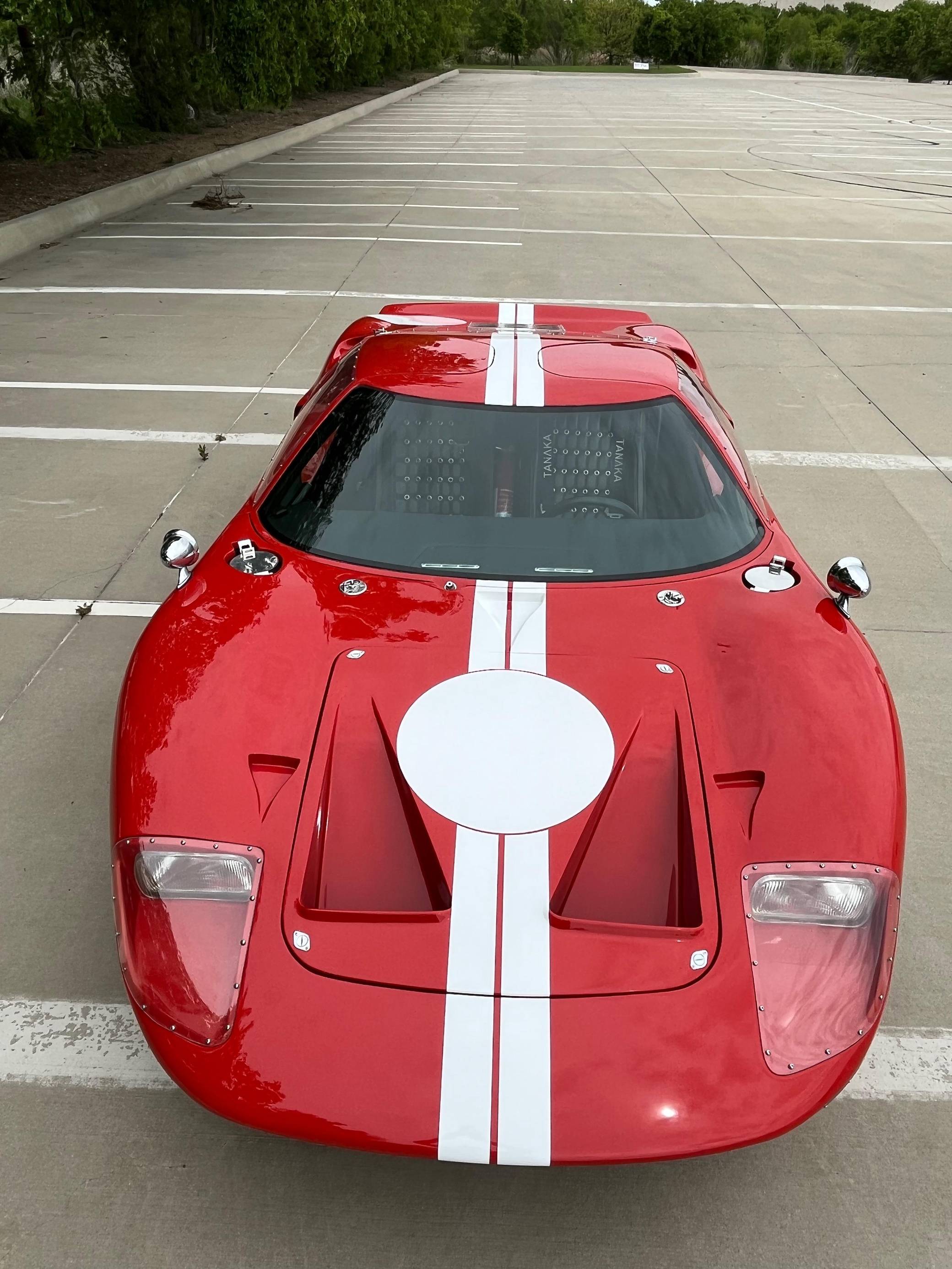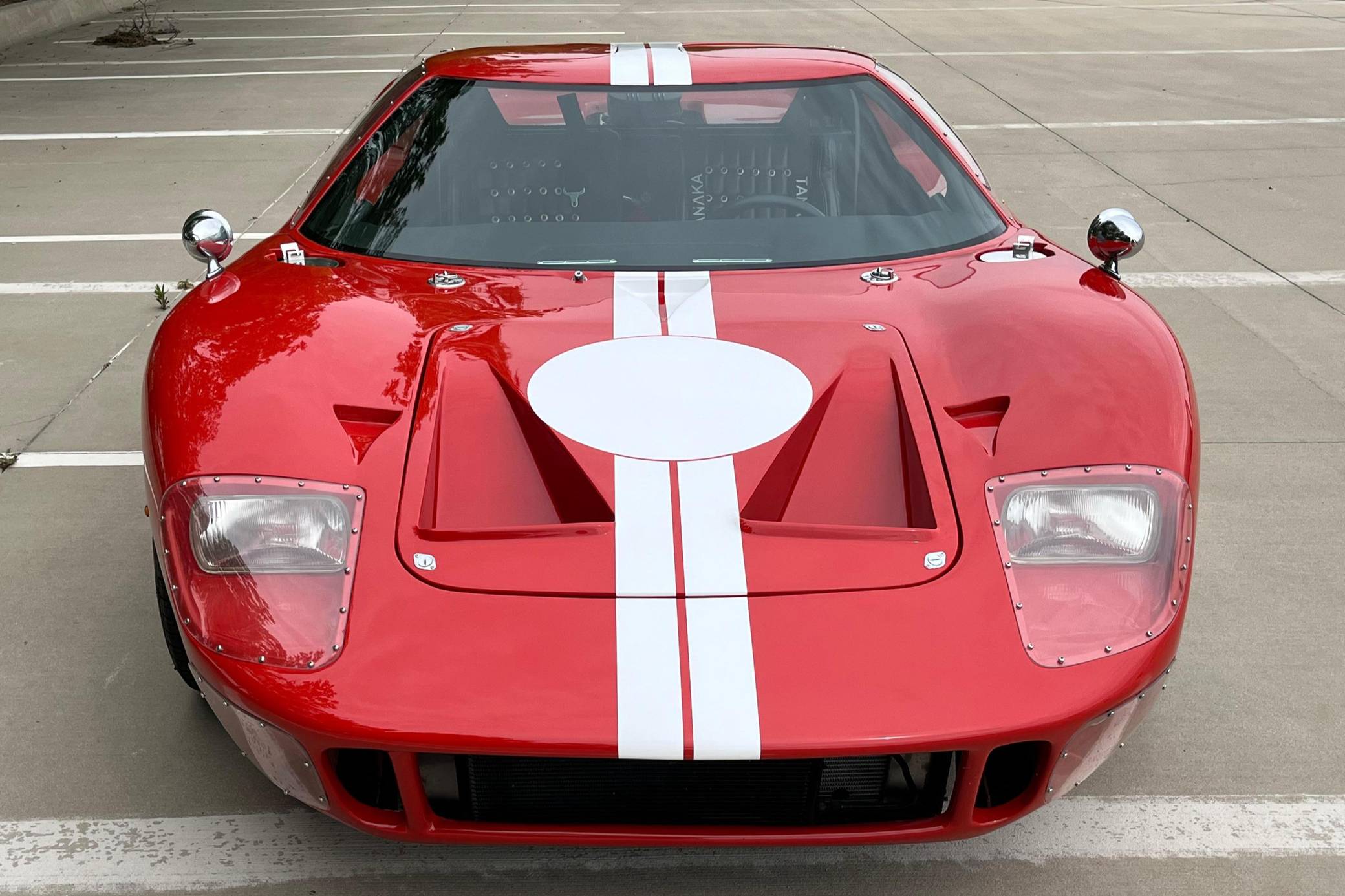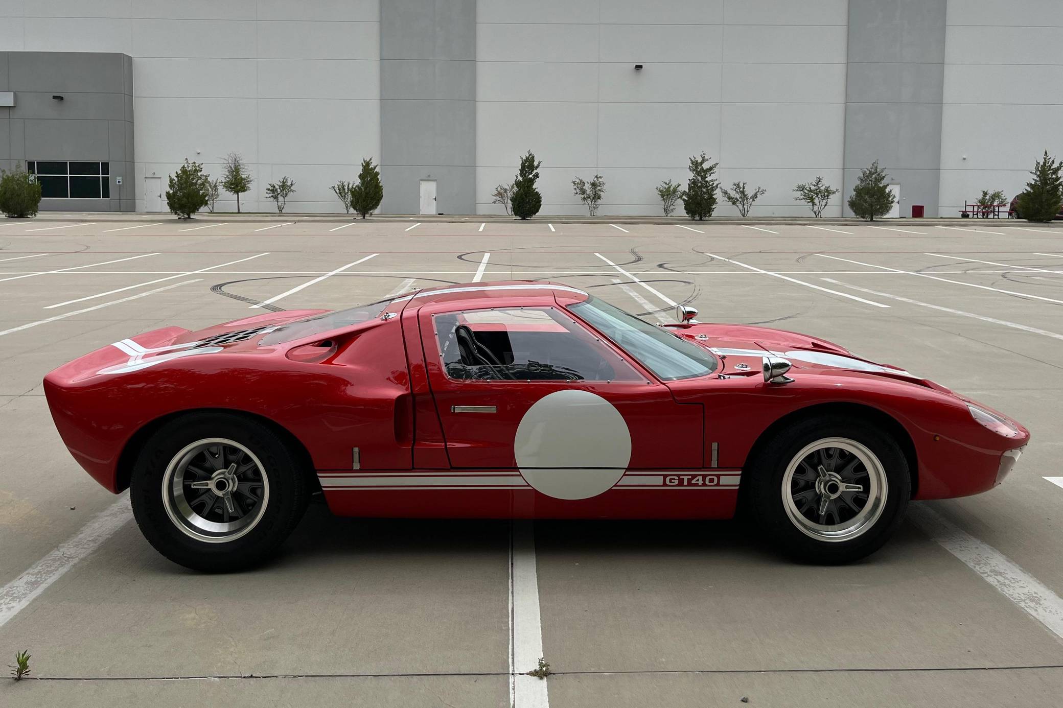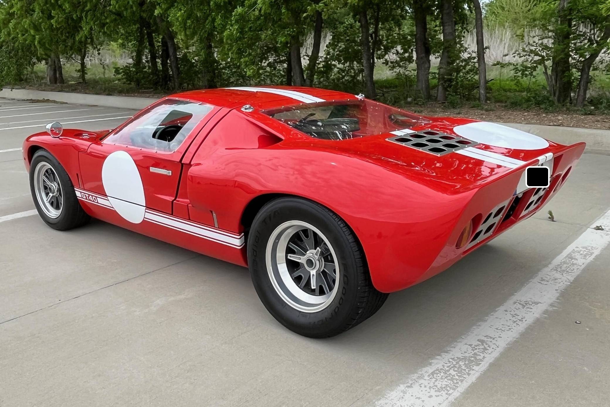 2016 Race Car Replicas GT40 MKI, finished in red with a black interior. Factory equipment includes 15-inch wheels, Wilwood Engineering disc brakes, dual fuel cells, sport seats, a quick-release steering wheel, and air conditioning. The only modification reported by the seller is a set of 3M vinyl stripes. Founded in 2003, Race Car Replicas specializes in building replicas of classic race cars, though it manufactures parts and works on custom projects as well. In addition to the RCR40, which is offered in MKI and MKII configurations, it also offers enthusiasts replicas of the Porsche 917 and Lola T70. Power comes from a 5. 0-liter (302 cubic-inch) ATK High Performance Engines V8, rated at 375 horsepower and 390 lb-ft of torque according to a dyno sheet pictured in the gallery. Carbureted, it spins the rear wheels via a Porsche-sourced "G50" 5-speed manual transaxle.