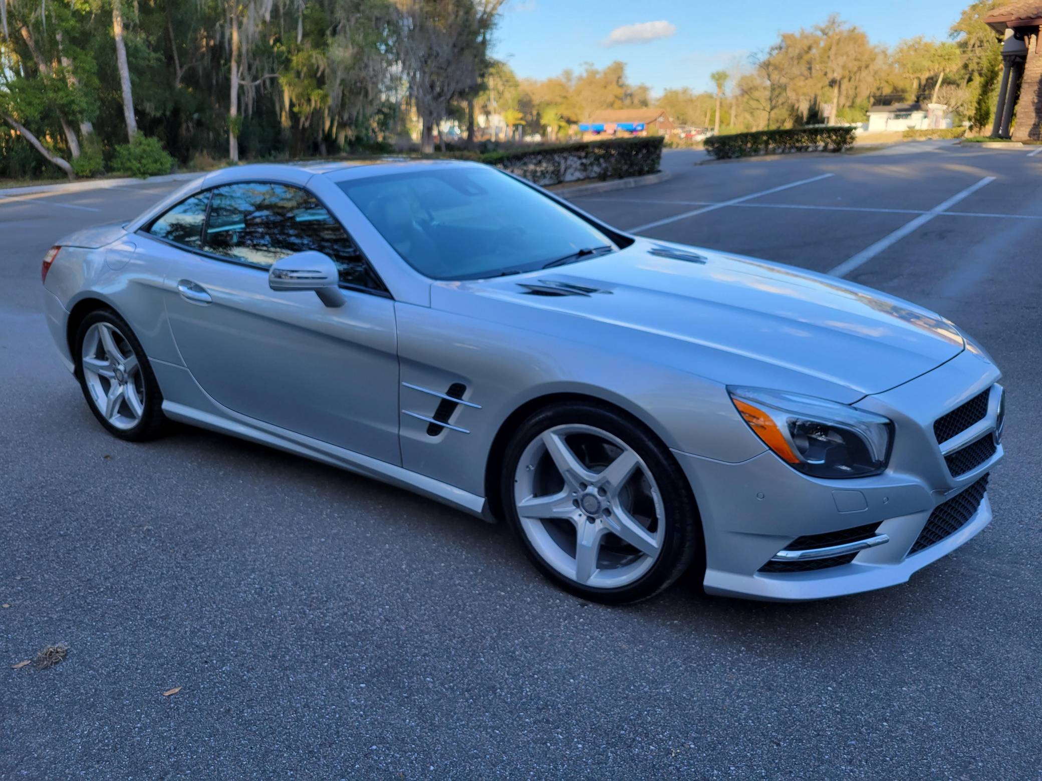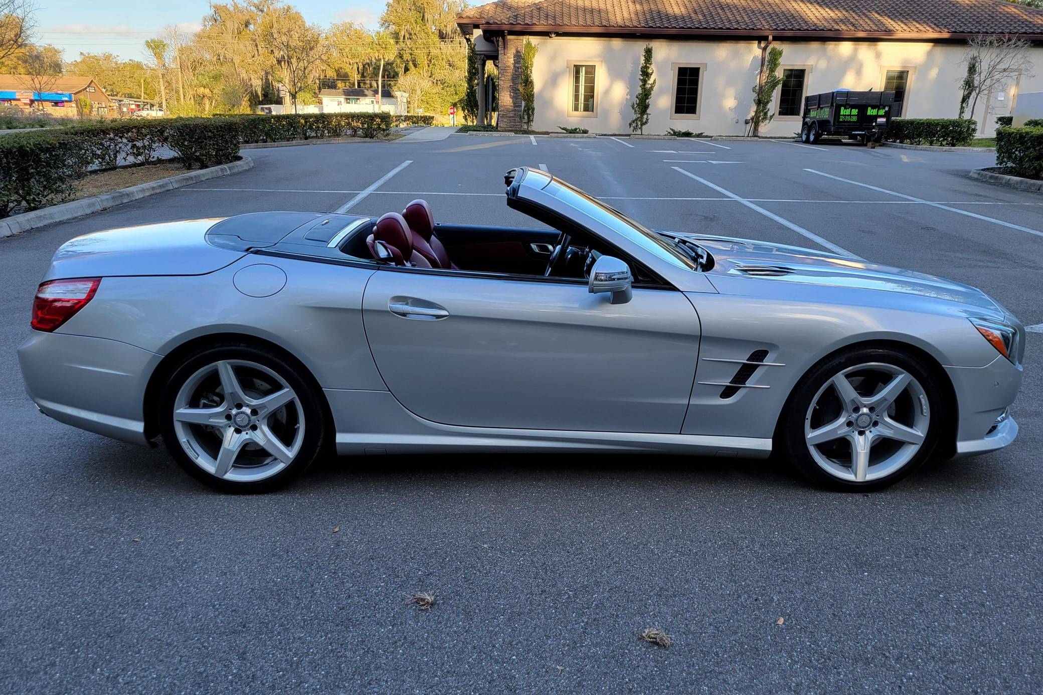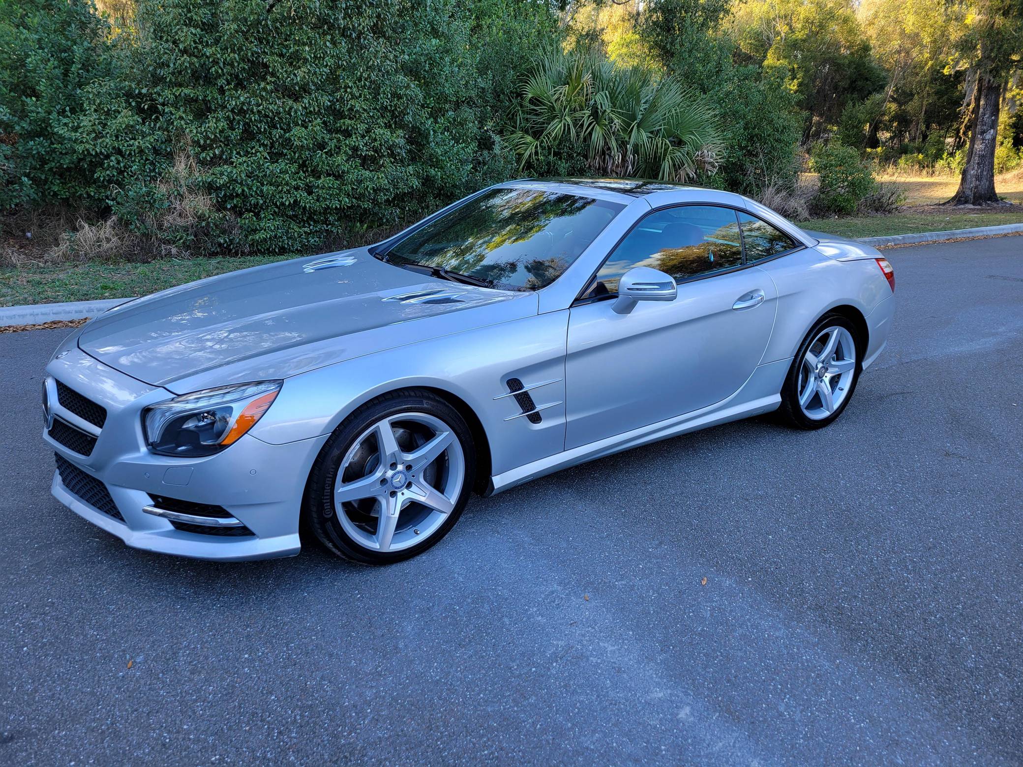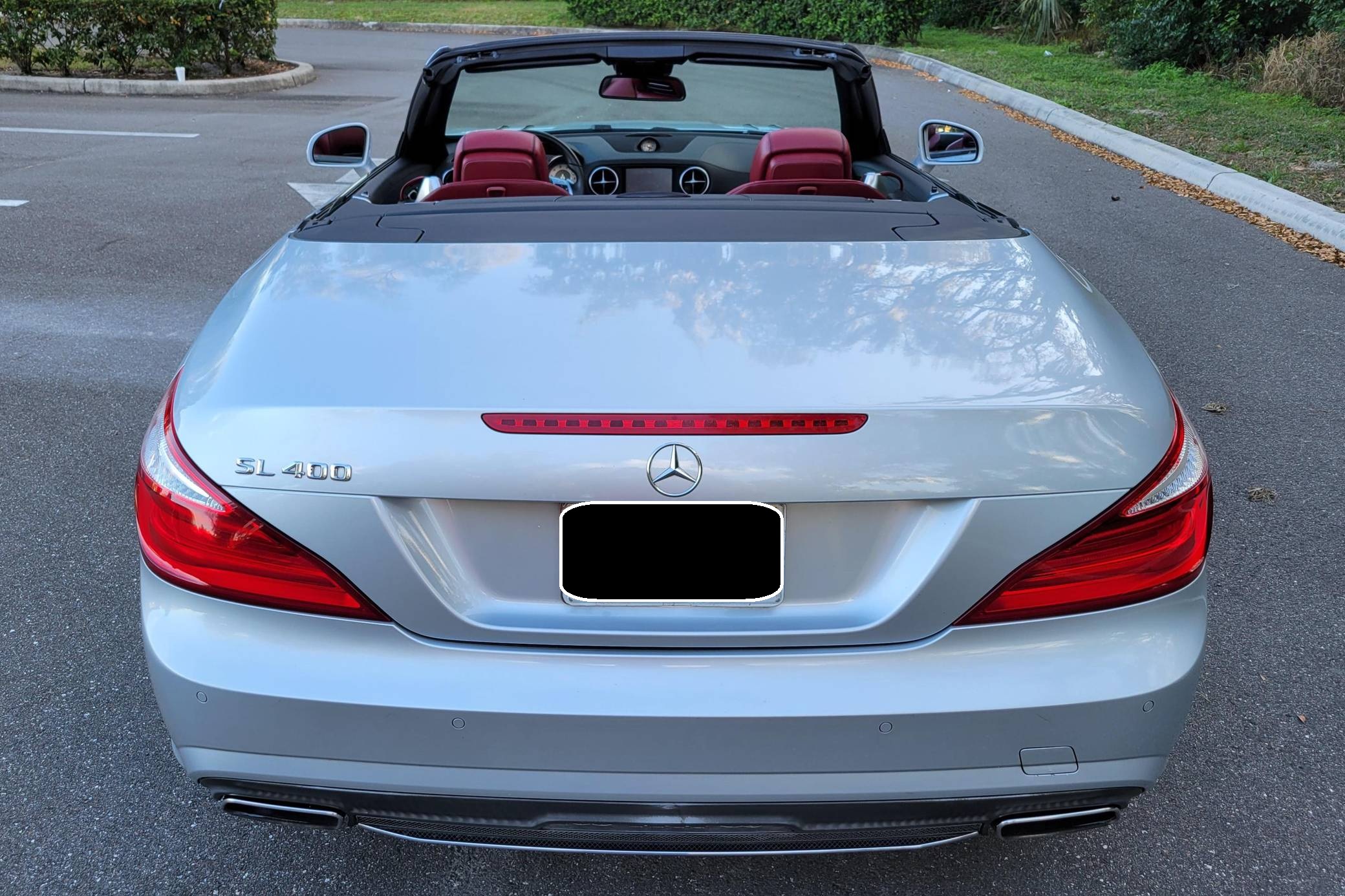 2016 Mercedes-Benz SL400, finished in Iridium Silver Metallic with a red interior. Factory equipment on this SL includes the Sport Wheel, Premium, and Driver Assistance packages, which add features such as 19-inch AMG wheels, the Airscarf neck-level heating system, Distronic Plus, and more as detailed below. The seller reports no modifications. Mercedes-Benz introduced the "R231"-generation SL for the 2013 model year with revised styling and weight savings of 300 pounds versus the previous generation, due to an all-aluminum body. A retractable hardtop was standard, and advanced safety features were offered along with several powertrain options including a twin-turbocharged V6, two twin-turbocharged V8s, and a twin-turbocharged V12 available in the SL65 AMG. Power comes from a 3. 0-liter twin-turbocharged V6, rated at 329 horsepower and 354 lb-ft of torque. Output is sent to the rear wheels via a 7-speed automatic transmission.