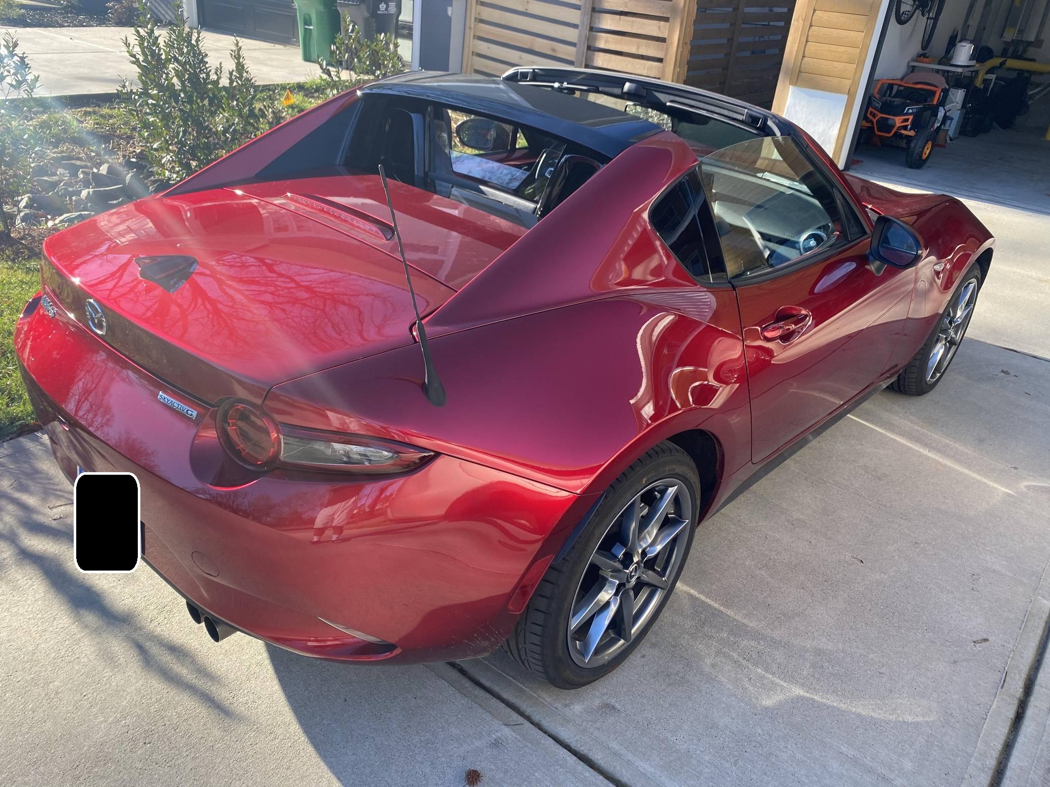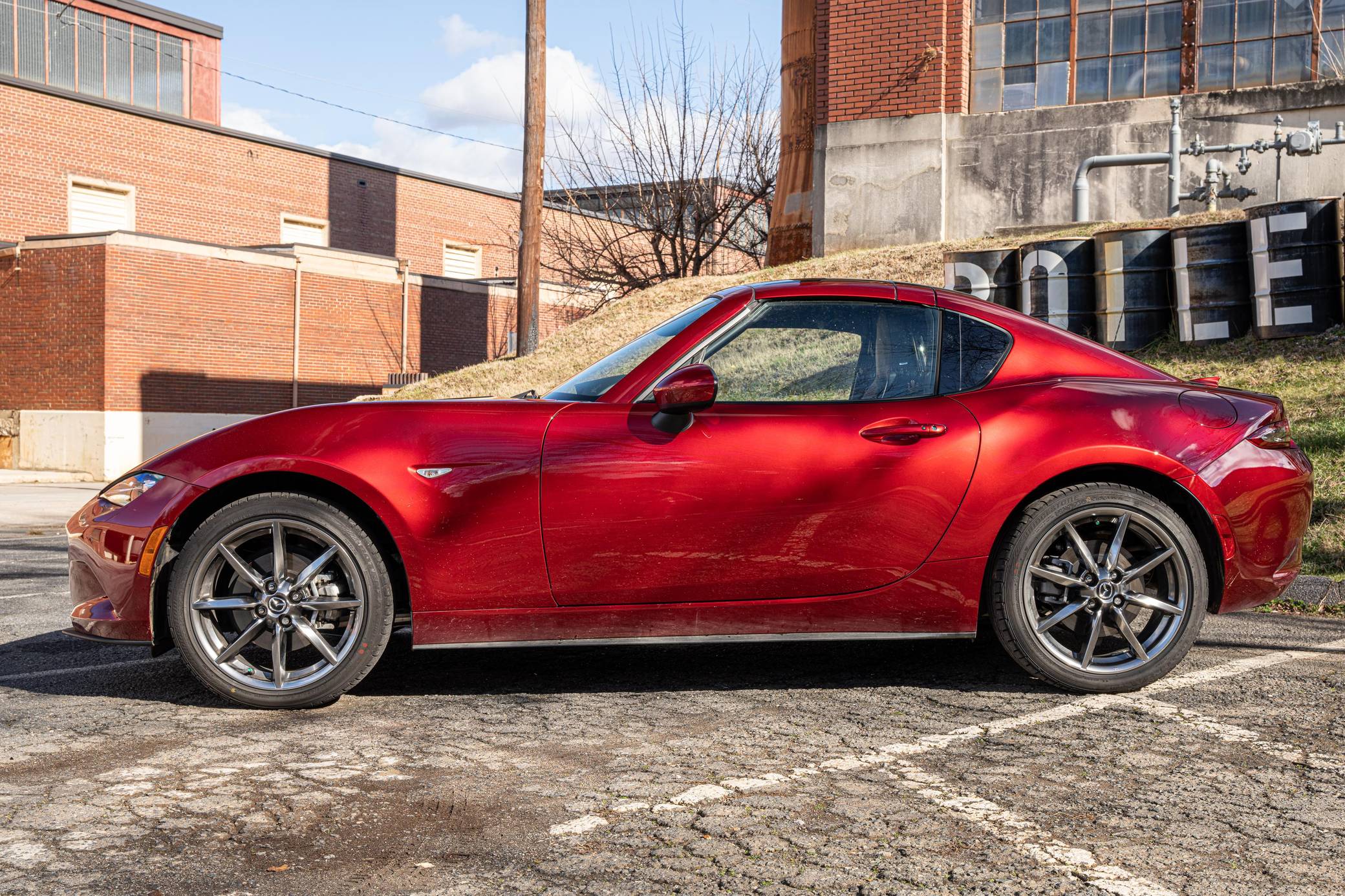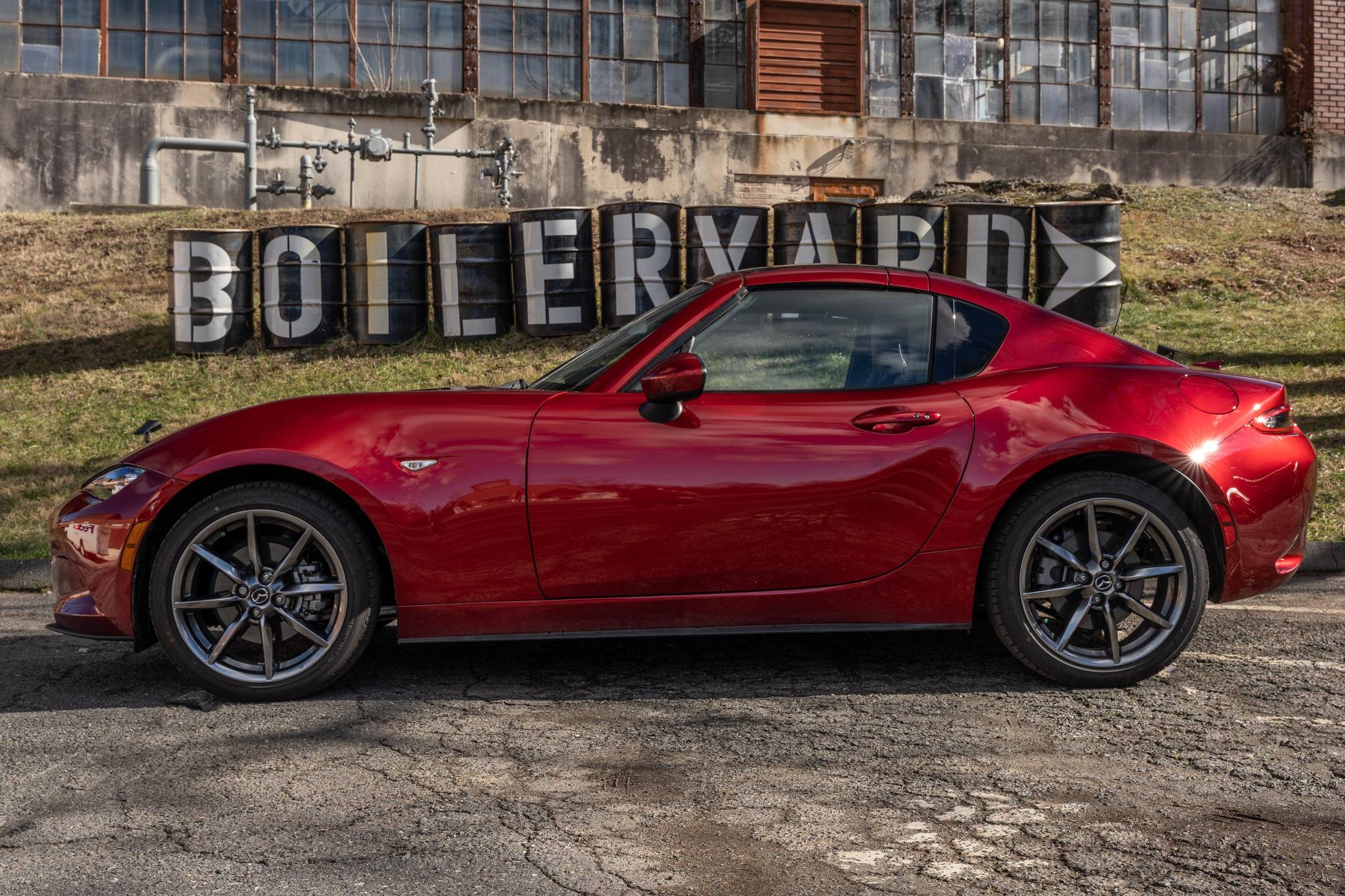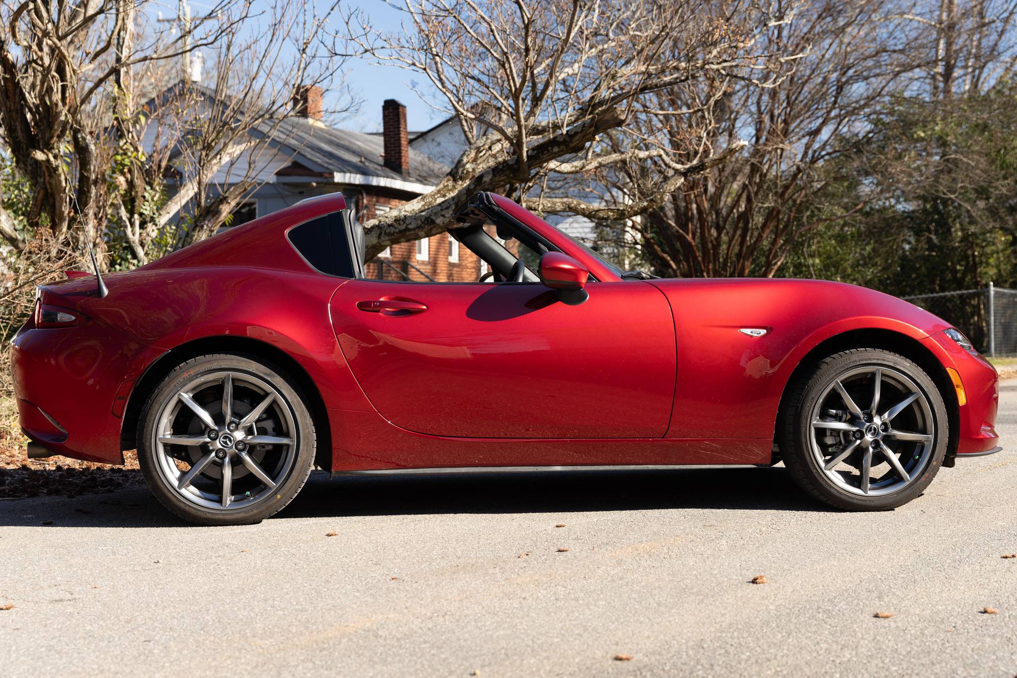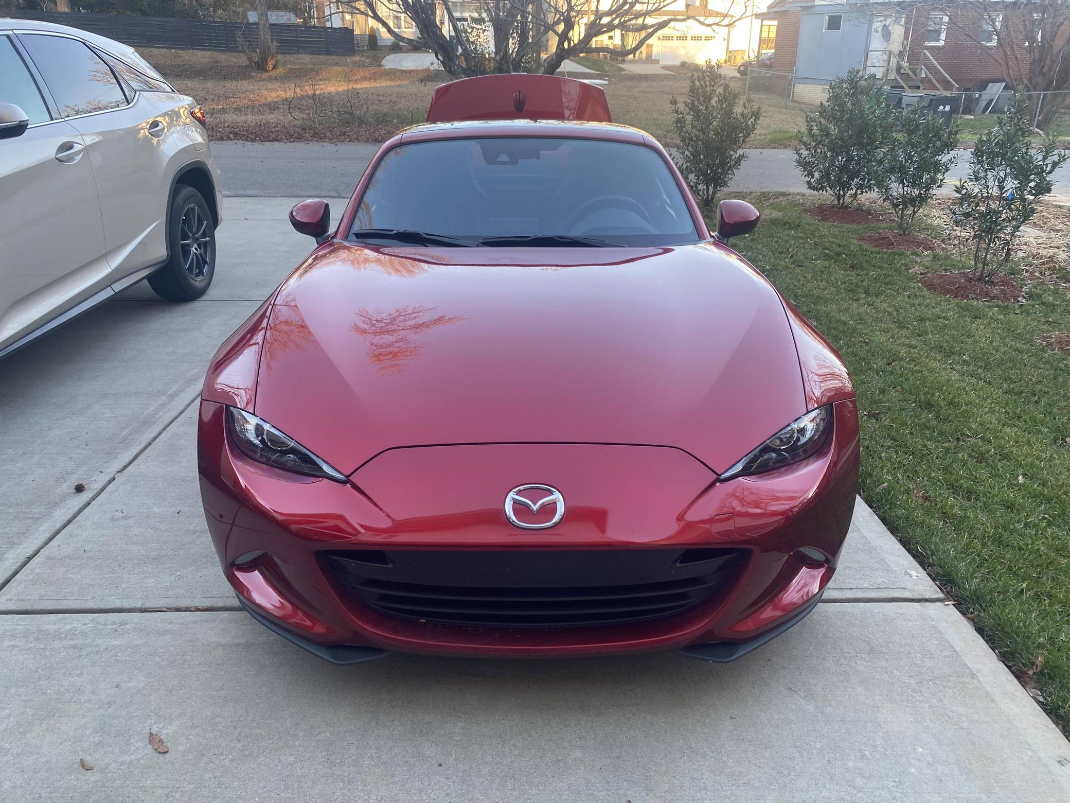 THIS. . . is a 2021 Mazda MX-5 Miata RF Grand Touring, finished in Soul Red Crystal Metallic with a black interior. This MX-5 is equipped with the desirable 6-speed manual transmission and the odometer indicates approximately 4,800 miles. Factory equipment includes 17-inch alloy wheels, a limited-slip differential, sport-tuned suspension with Bilstein shocks, an aluminum hood and trunk lid, a front strut brace, a power retractable hardtop, heated sport seats, a Bose 9-speaker audio system, a navigation system, blind spot monitoring and cross-traffic alert, and a rear-view camera. No modifications have been reported by the seller. The "ND" Miata debuted for the 2016 model year, and it strikes a balance as a modern, nicely-appointed roadster that still maintains the intended nature of a Miata as a fun, uncomplicated, lightweight sports car at an accessible price. The "ND2" model debuted for the 2019 model year and included revisions to the engine with more power and a higher redline, a telescoping steering column, revised seat controls, a new cupholder, a rear-view camera, and a redesigned door handle mechanism. Power comes from a 2. 0-liter inline-4, which produces 181 horsepower and 151 lb-ft of torque. Output is sent to the rear wheels via a 6-speed manual transmission.