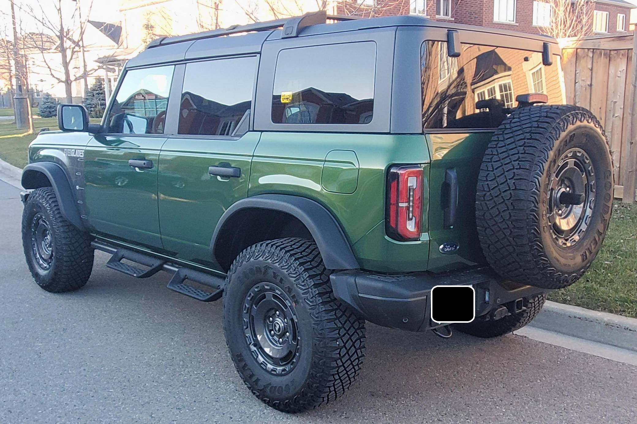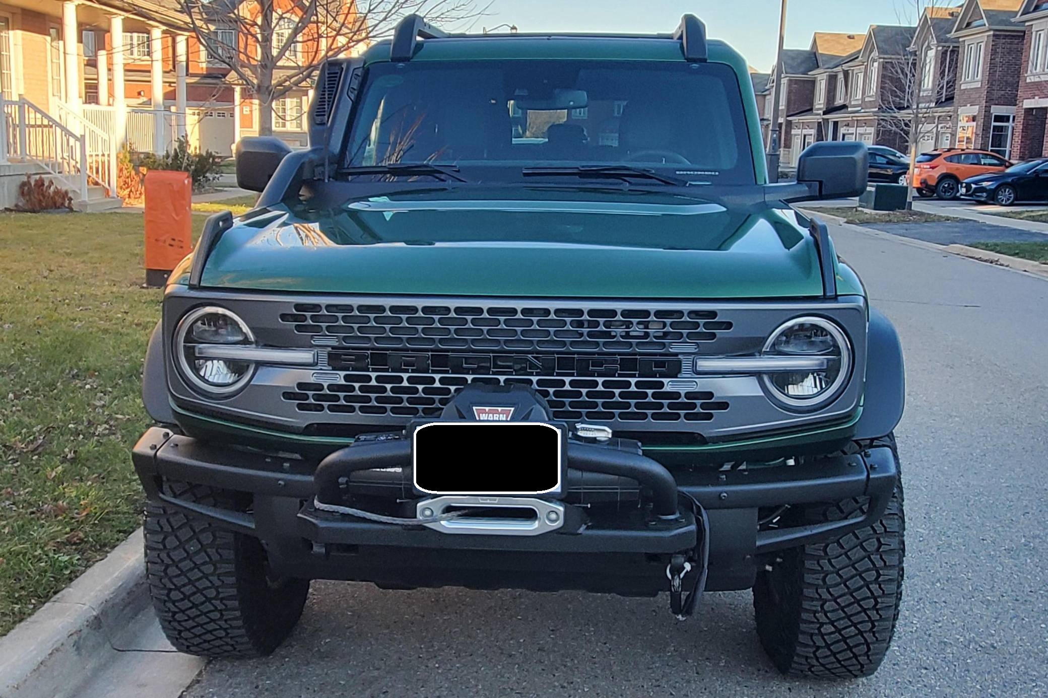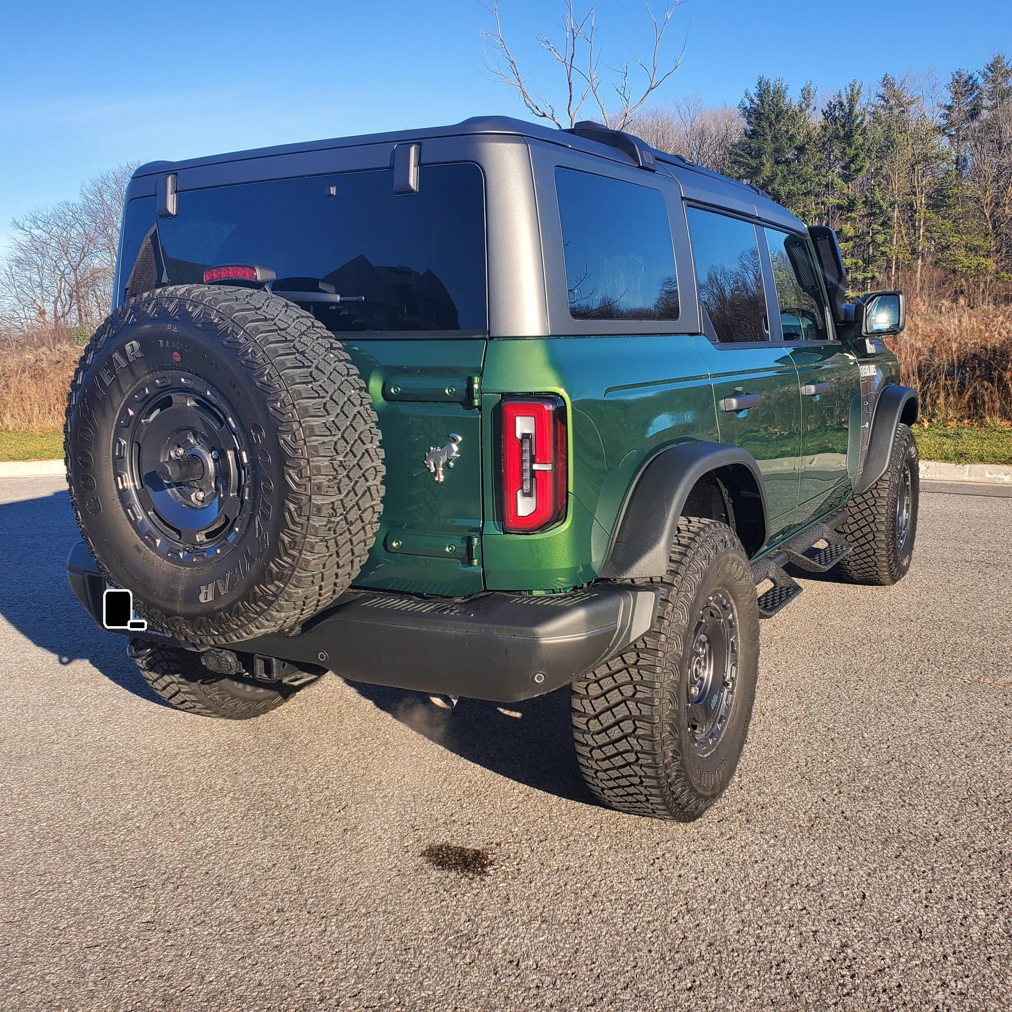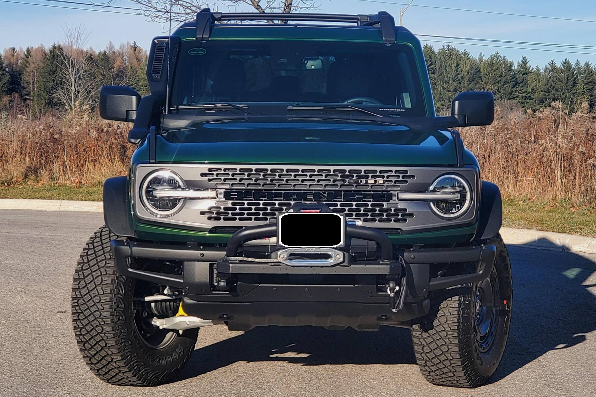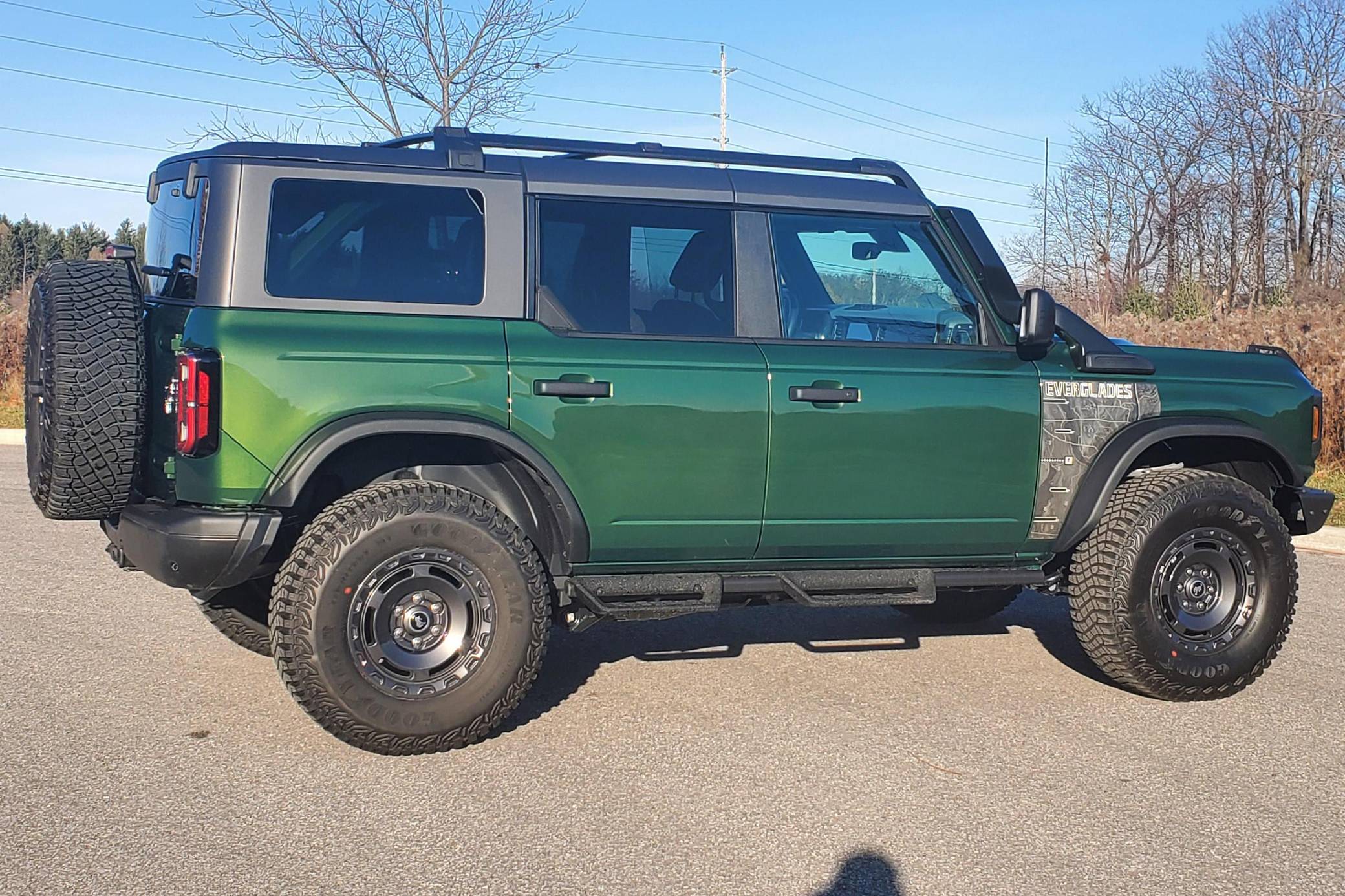 THIS. . . is a 2022 Ford Bronco Everglades, finished in Eruption Green Metallic with a black hardtop and an Onyx interior. It's equipped with a metric instrument cluster that currently displays approximately 80 kilometers or about 50 miles. O. A. T. modes, and more as detailed below. The seller reports no modifications. The sixth-generation Bronco was introduced for 2021, ending a long hiatus and nearly a decade of speculation about its return. Retro styling, body-on-frame construction, and a suite of off-road equipment help ensure this truck lives up to the Bronco name. It's not all old-school, however: available modern features like an available 12-inch touchscreen and a wireless phone charger bring it into the 21st century. Power comes from a 2. 3-liter turbocharged "Ecoboost" inline-four engine, rated at 300 horsepower and 325 lb-ft of torque when using premium fuel, according to Ford. Output is sent to the rear or all four wheels via a 10-speed automatic transmission and a 2-speed transfer case.