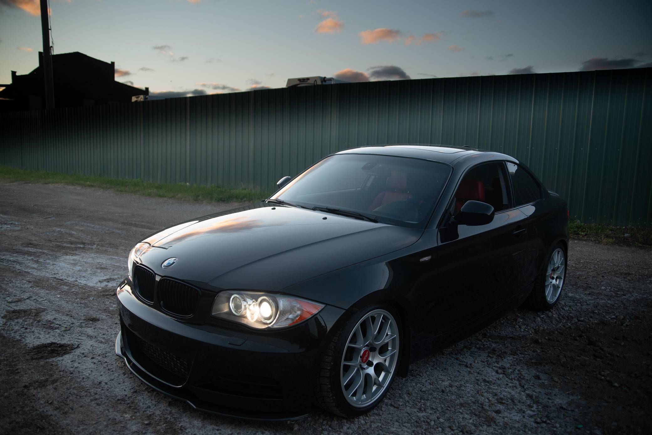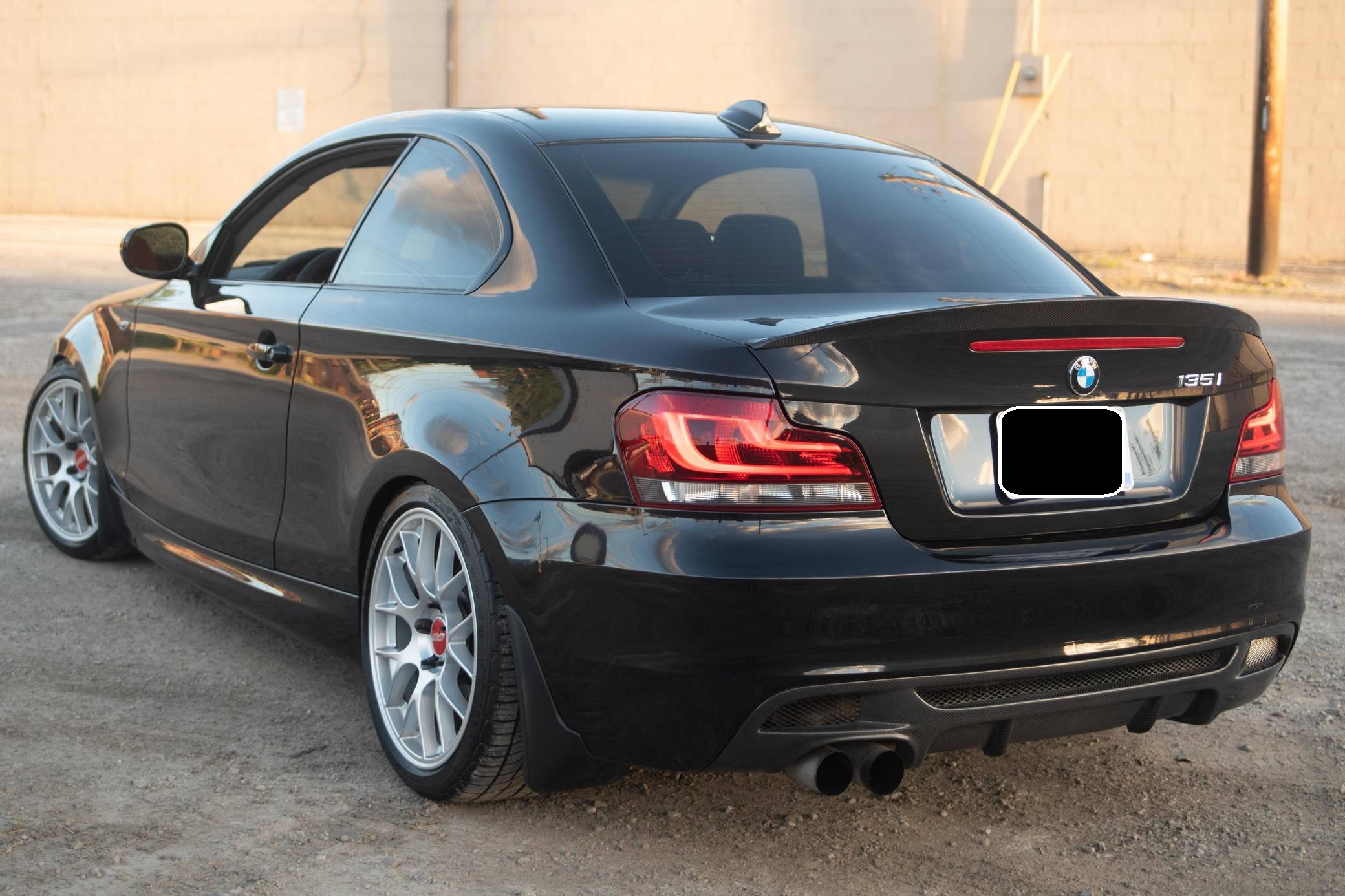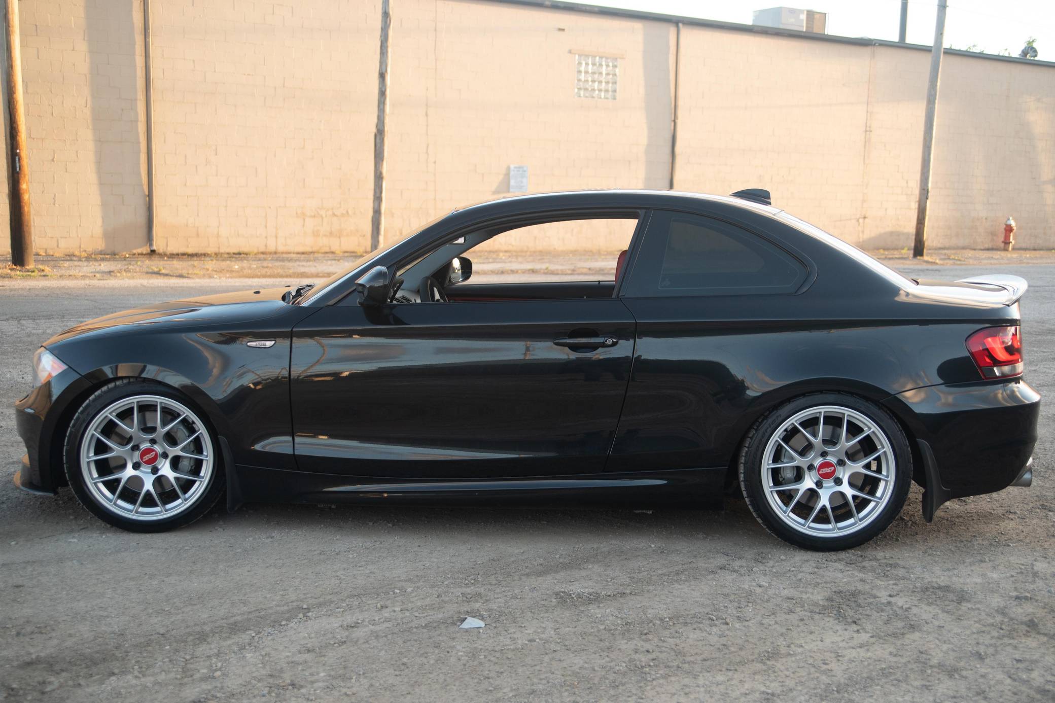 2011 BMW 135i Coupe, finished in Black Sapphire Metallic with a Coral Red interior. Numerous modifications are reported by the seller and include 18-inch APEX EC-7 wheels, Koni Sport struts and shocks with Eibach springs, M3 front control arms, a Dinan turbocharger, an M Performance exhaust system, a VR Speed Factory 7-inch intercooler, carbon fiber exterior accents, "Blackline" tail lights, and more as described below. Marketed as a modern take on the vaunted 2002, the 1 Series "E82" coupe was introduced for the 2008 model year. It arrived as a rear-wheel-drive four-seater that was smaller, lighter, and more affordable than the 3 Series coupe. Available models included the entry-level 128i and the more powerful 135i, both of which are sought after for their nimble handling characteristics. With a potent turbocharged inline-6, the petite 135i quickly became a popular platform to modify. Power comes from an "N55" turbocharged 3. 0-liter DOHC inline-6, rated 300 horsepower and 300 lb-ft of torque. The modifications likely increase those figures, but a dyno sheet is not provided to confirm. Output is sent to the rear wheels through a 7-speed dual-clutch transmission.