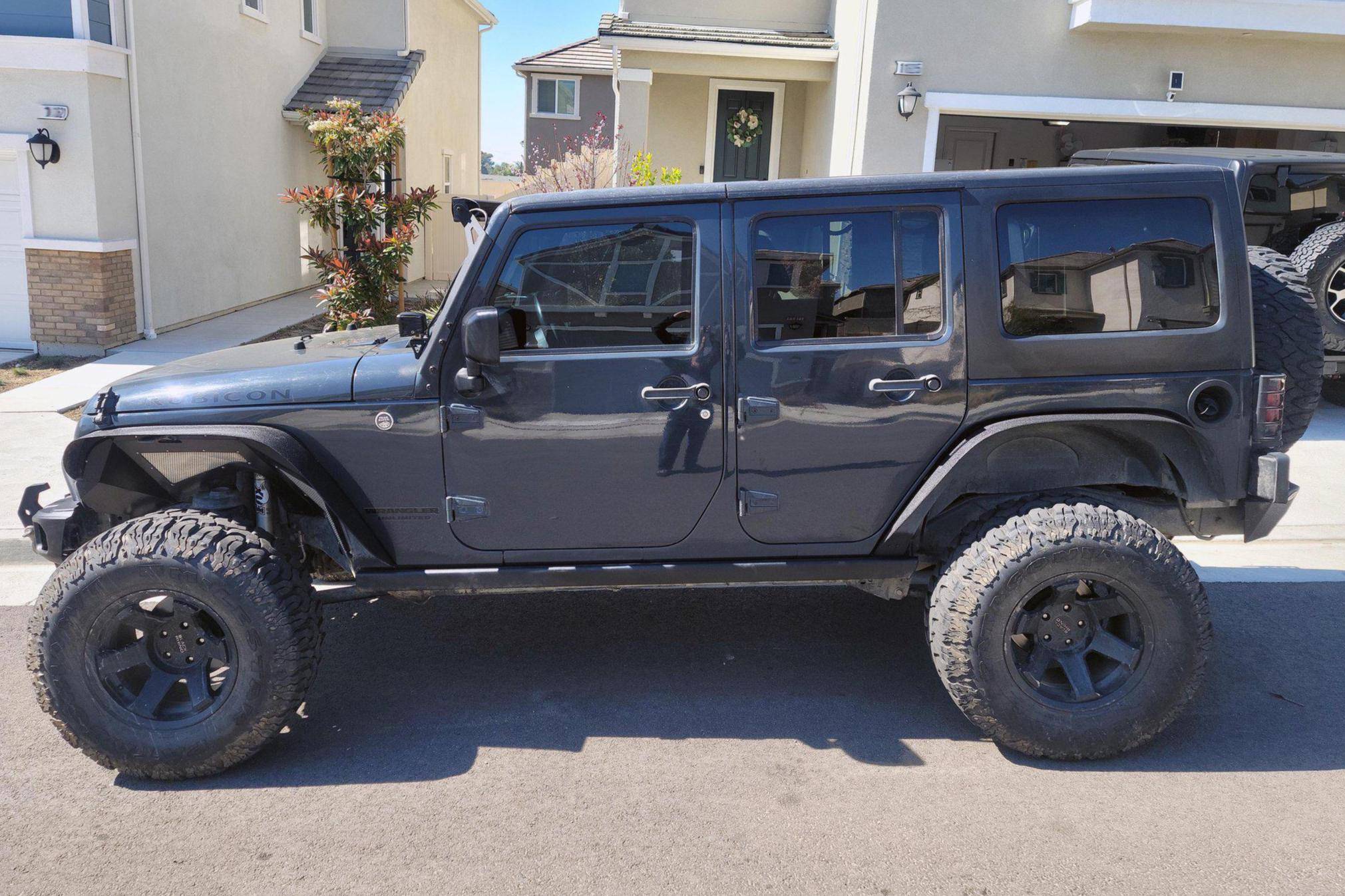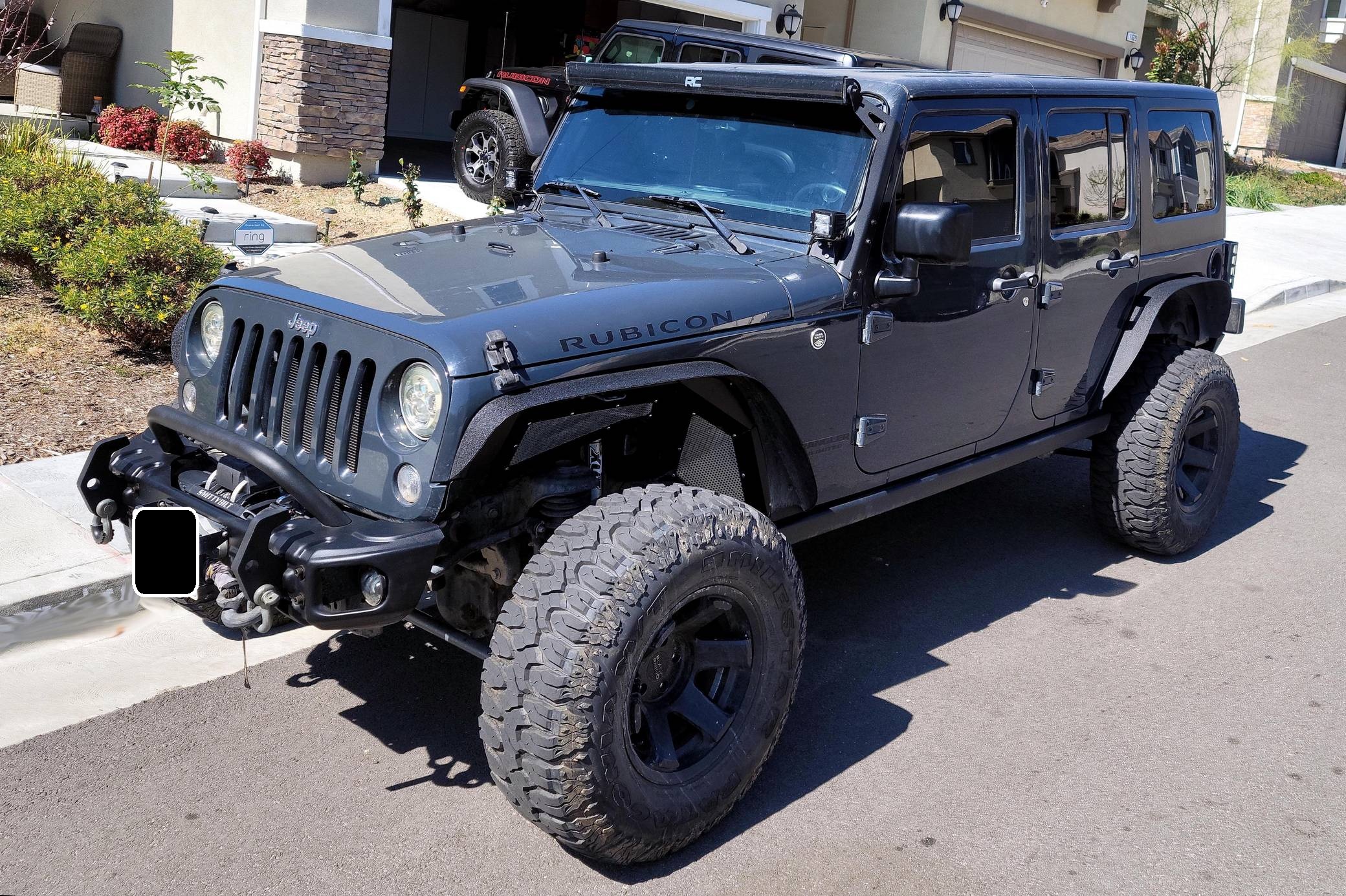 THIS. . . is a 2016 Jeep Wrangler Unlimited Rubicon 4x4, finished in Rhino Clear Coat with a black interior. 5-inch center touchscreen display, Rock-Trac part-time four-wheel-drive, transfer case and fuel tank skid plates, a Freedom Top 3-piece removable hardtop, an electronically disconnecting front sway bar, and more as detailed below. The seller has modified this Jeep extensively to perform better off-road, a full list of modifications is included below. Some highlights include a JKS 3. 5-inch suspension lift, Fox performance 2. 0 shocks, a Superchips Flashcal F5 tuner, a Rugged Ridge stubby front bumper, G2 re-gear for the front and rear Dana 44 axles, and more. Service documentation included in the photo gallery shows that in September 2021 this Wrangler received a number of services and modifications installed. These include a new set of ignition coils, Black Rhino 17-inch wheels with Milestar Patagonia tires, a Synergy steering stabilizer, a new idler pulley, a new serpentine belt, a Fox track bar relocation kit, and a lift kit. The "JK"-generation Wrangler was introduced for the 2007 model year, and a 2011 update brought a newly redesigned dash — but it wasn't until 2012 with the introduction of the 3. 6-liter V6 that the model received ample power. The four-door Unlimited version provides relatively spacious seating for five while retaining the model's rugged off-road capabilities. Production of the JK Wrangler was ended in April 2018. Power comes from a 3. 6-liter "Pentastar" V6, rated at 285 horsepower and 260 lb-ft of torque. It spins the rear or all four wheels via a 6-speed manual transmission and a 2-speed transfer case.