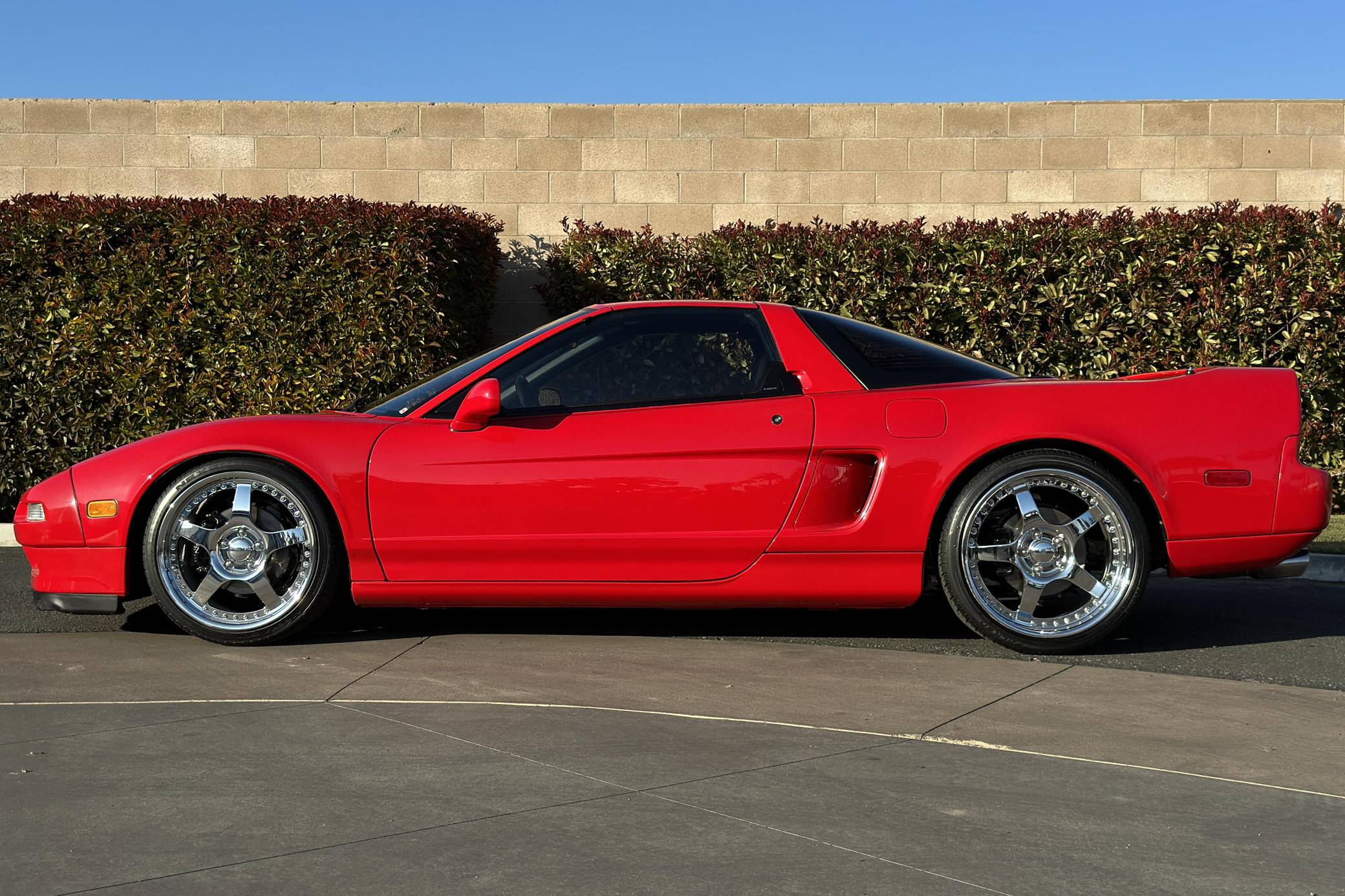 THIS. . . is a 1996 Acura NSX-T, finished in Formula Red with a black interior. This NSX-T features the desirable 5-speed manual transmission. Factory equipment includes pop-up headlights, a removeable roof panel, leather upholstery, power-adjustable sport seats, automatic climate control, a Bose sound system, and cruise control. Modifications reported by the seller are limited to aftermarket 18-inch front and 19-inch rear wheels, tinted windows, and an aftermarket axle-back exhaust system. Sold as a Honda in global markets, the first-generation Acura NSX made its debut for 1991 as a user-friendly supercar with Ferrari-like performance and Japanese reliability. Aluminum construction kept weight in check, and the NSX stood out as the first production car equipped with titanium connecting rods. Production of the original NSX ended in 2005. Power comes from a 3. 0-liter V6, rated at 270 horsepower and 210 lb-ft of torque. Mid-mounted, it spins the rear wheels via a 5-speed manual transmission.