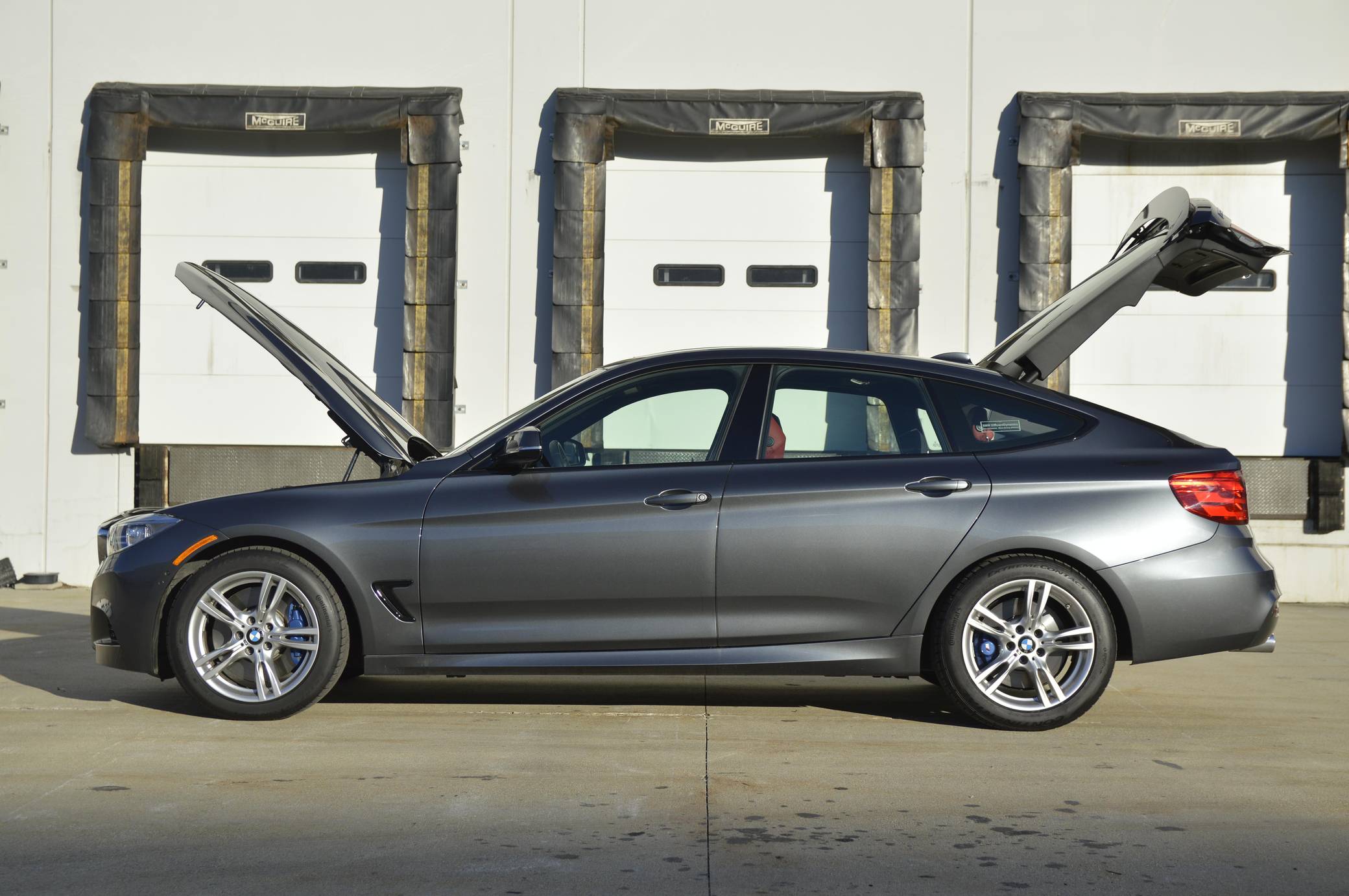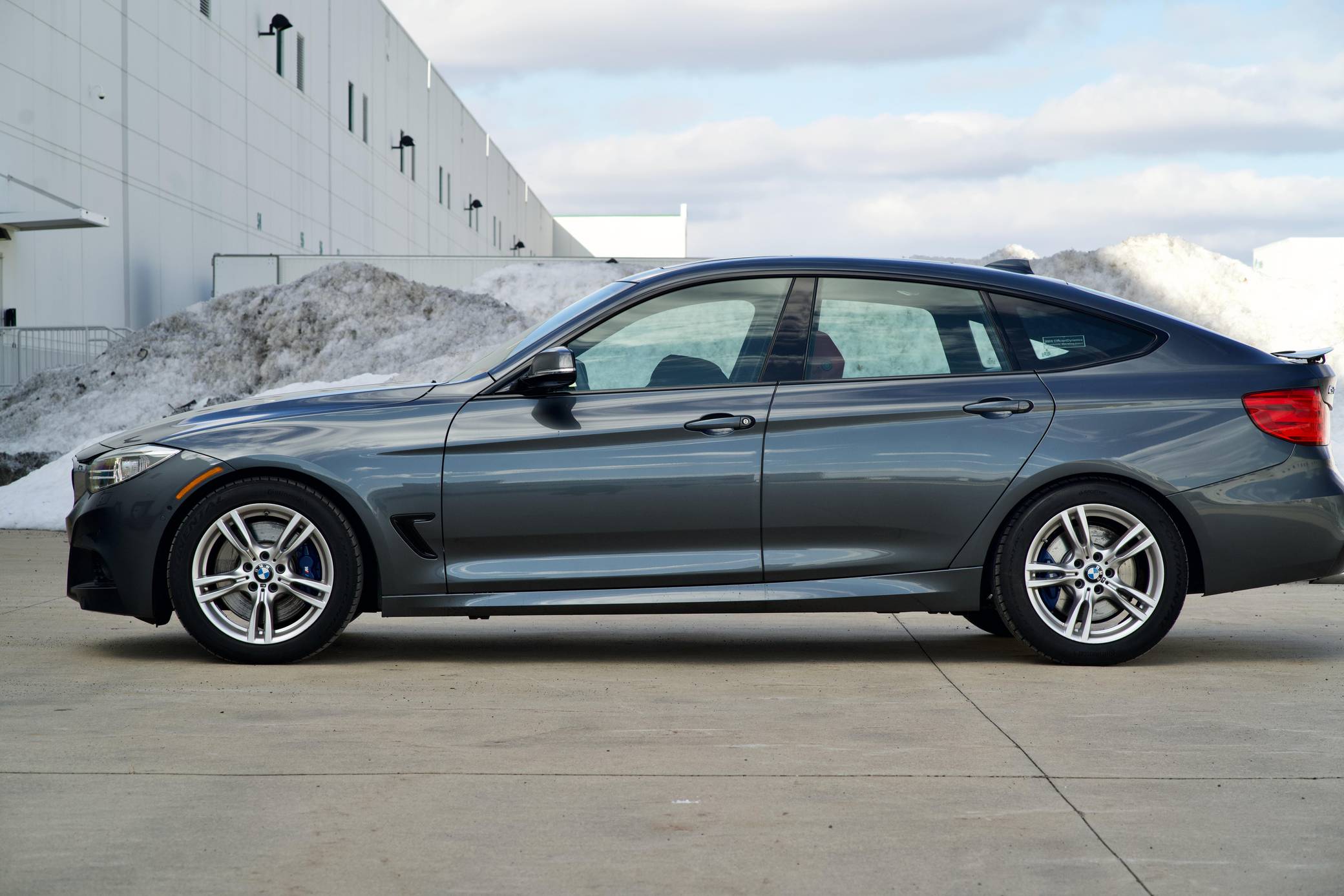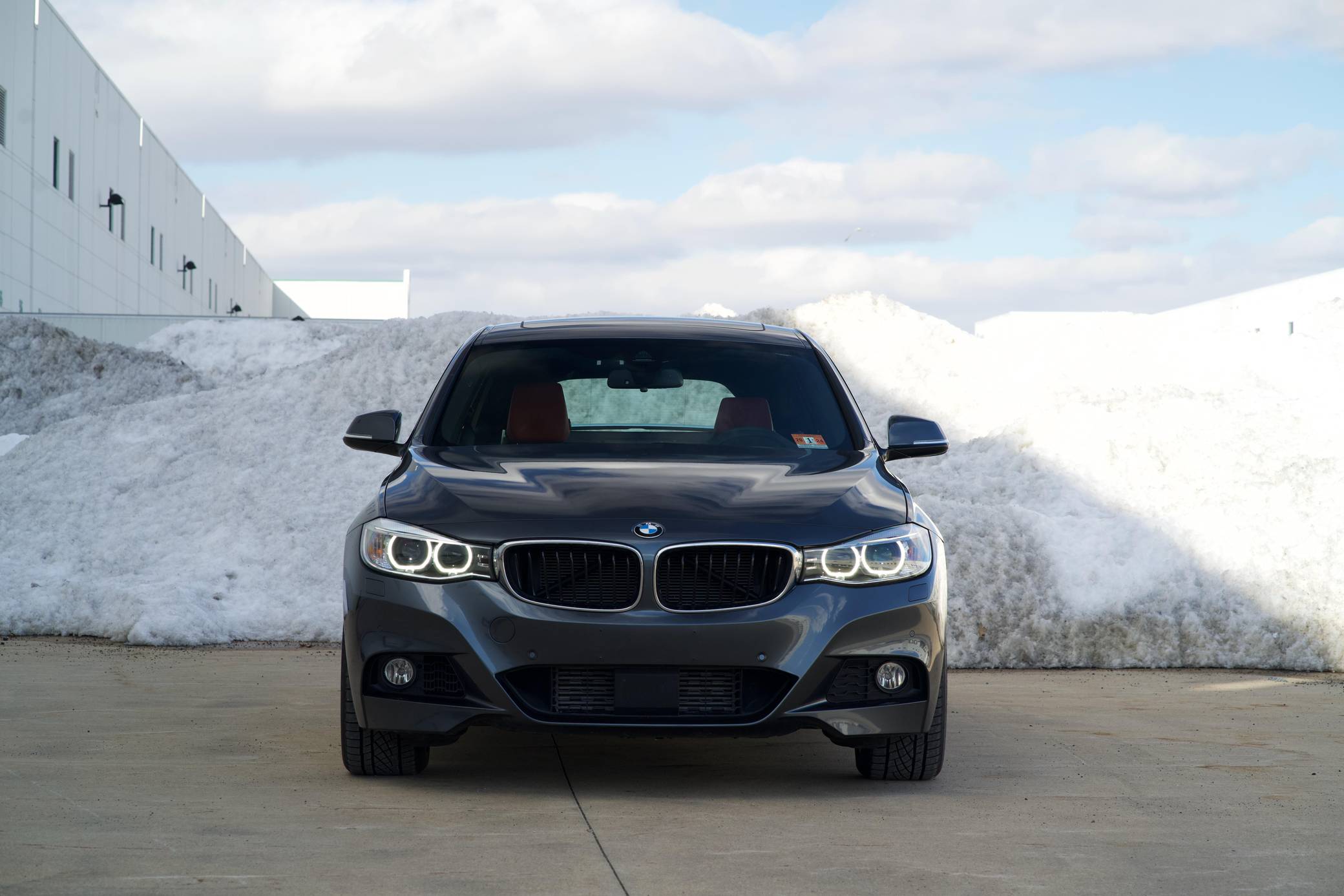 2014 BMW 335i xDrive Gran Turismo, finished in Mineral Grey Metallic with a Coral Red interior. The odometer displays approximately 4,000 miles. Equipped with the M Sport, Cold Weather, Driver Assistance, Driver Assistance Plus, Dynamic Handling, Premium, and Technology Packages, among other features listed below. The sole modification reported by the seller is paint protection film to the front end. Introduced in 2013, the "F34" Gran Turismo model is a four-door five-passenger hatchback based on the "F30" platform of 3-Series sedans, and it specifically shares the long-wheelbase chassis from the "F35" sedan model. The GT model features the cargo area of a small wagon and the all-weather capability of a crossover SUV while offering all the amenities expected in a 3-Series sedan. Power comes from an "N55" 3. 0-liter turbocharged inline-6, which produces 300 horsepower and 300 lb-ft of torque. The engine spins all four wheels via an 8-speed automatic transmission and xDrive all-wheel-drive system.