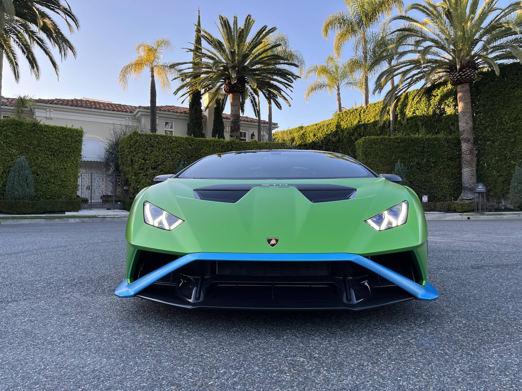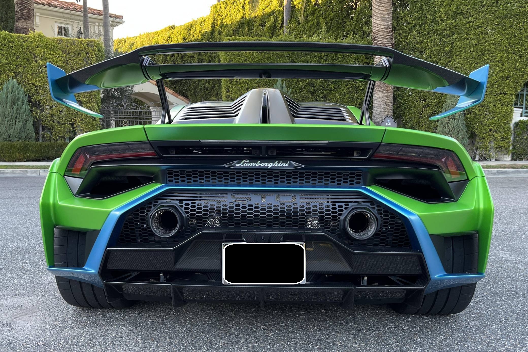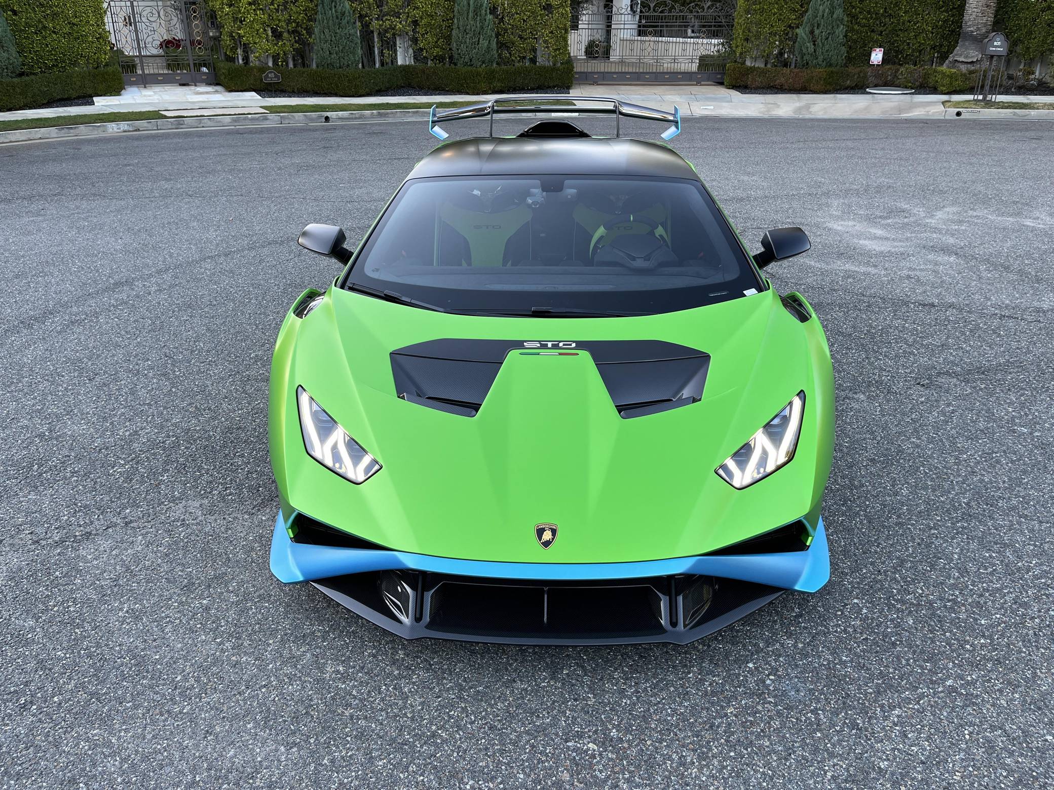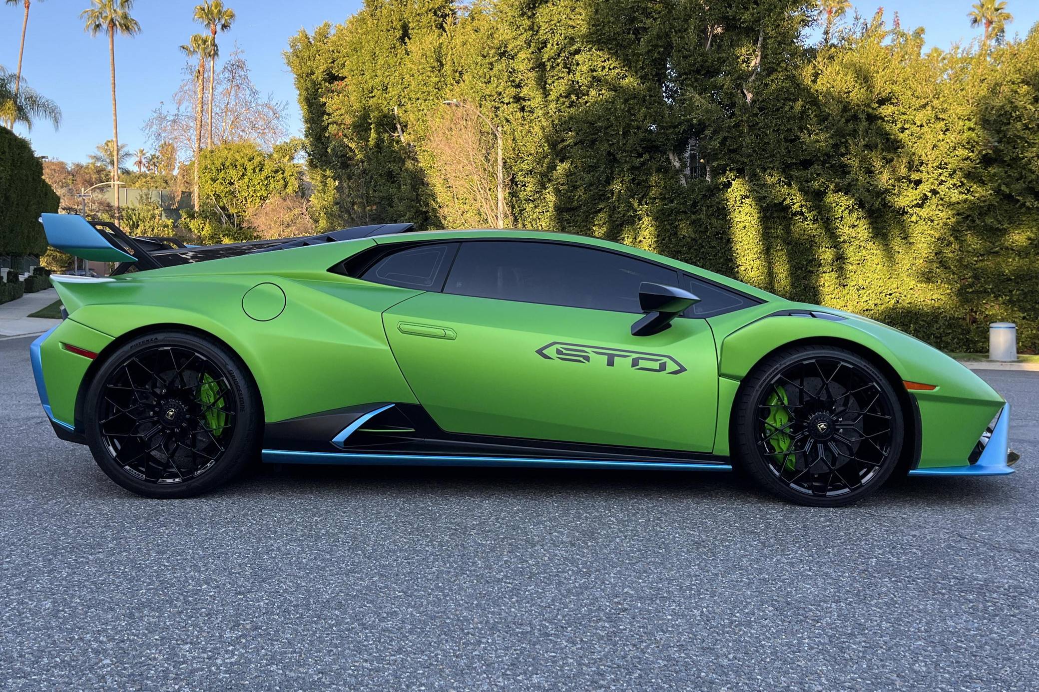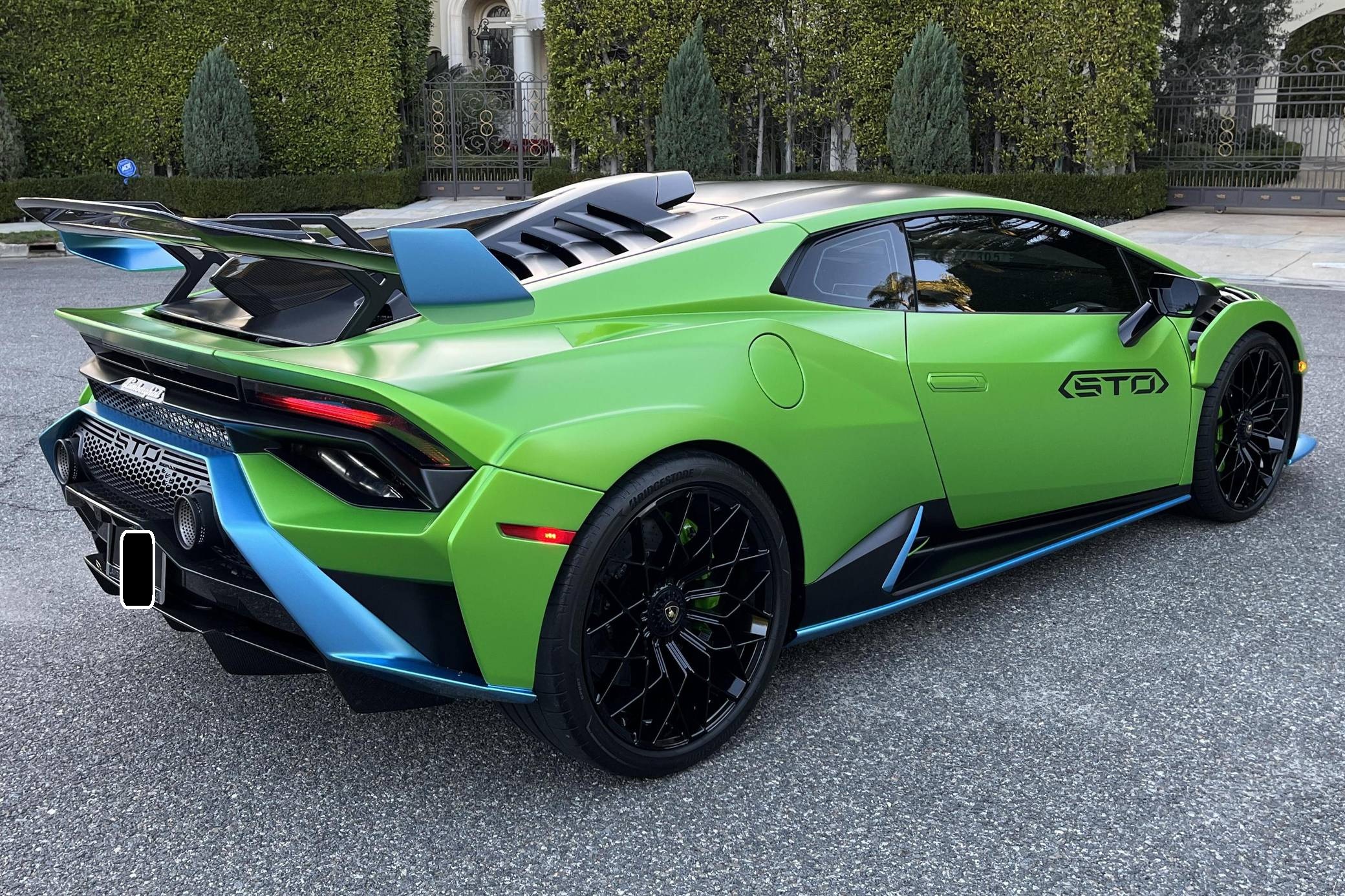 THIS… is a 2022 Lamborghini Huracan STO, finished in Verde Selvans with Blue Nila details, and a Nero Cosmus/Verde Fauns interior. The odometer currently displays approximately 352 miles. Modifications reported by the seller are limited to a full-body matte paint-protection film and tinted windows. To say that the Huracan STO - which stands for Super Trofeo Omologata - is the most outrageous road-going version of the baby Lambo would be an understatement; think of it more like a toned-down street-legal version of the Super Trofeo race car and less like a faster Huracan with an unapologetically large wing and you’d be closer to the truth. The carbon fiber bodywork, sans the doors and the roof, together with the incredible aero package is exclusive to the STO, while the screaming V10 has just the rear wheels to torture, making this Huracan a proper event. Lamborghini released the Huracan for 2015 to replace the Gallardo at the bottom of its range, though "entry-level" was a highly relative term. Offered as a coupe and as a roadster, the model launched with all-wheel drive and a naturally-aspirated V10 engine mounted directly behind the passenger compartment. Rear-wheel drive became available for 2016, and Lamborghini still sells the Huracan new in 2023. Power comes from a 5. 2-liter V10, rated at 631 horsepower and 417 lb-ft of torque. Output is sent to the rear wheels via a 7-speed dual-clutch automatic transmission.