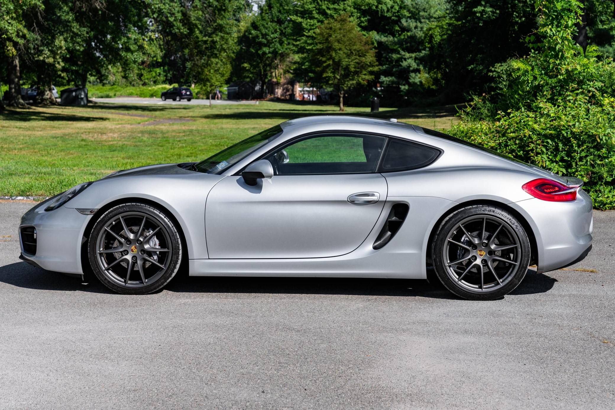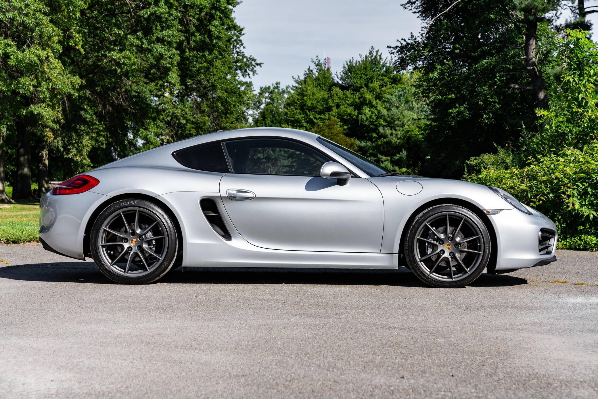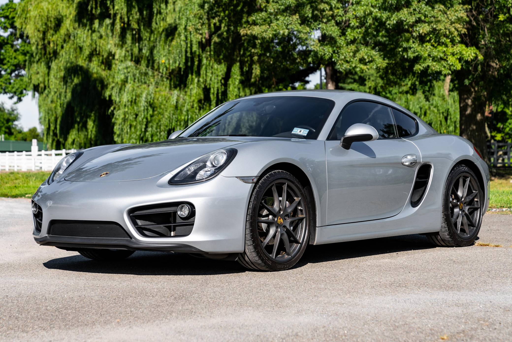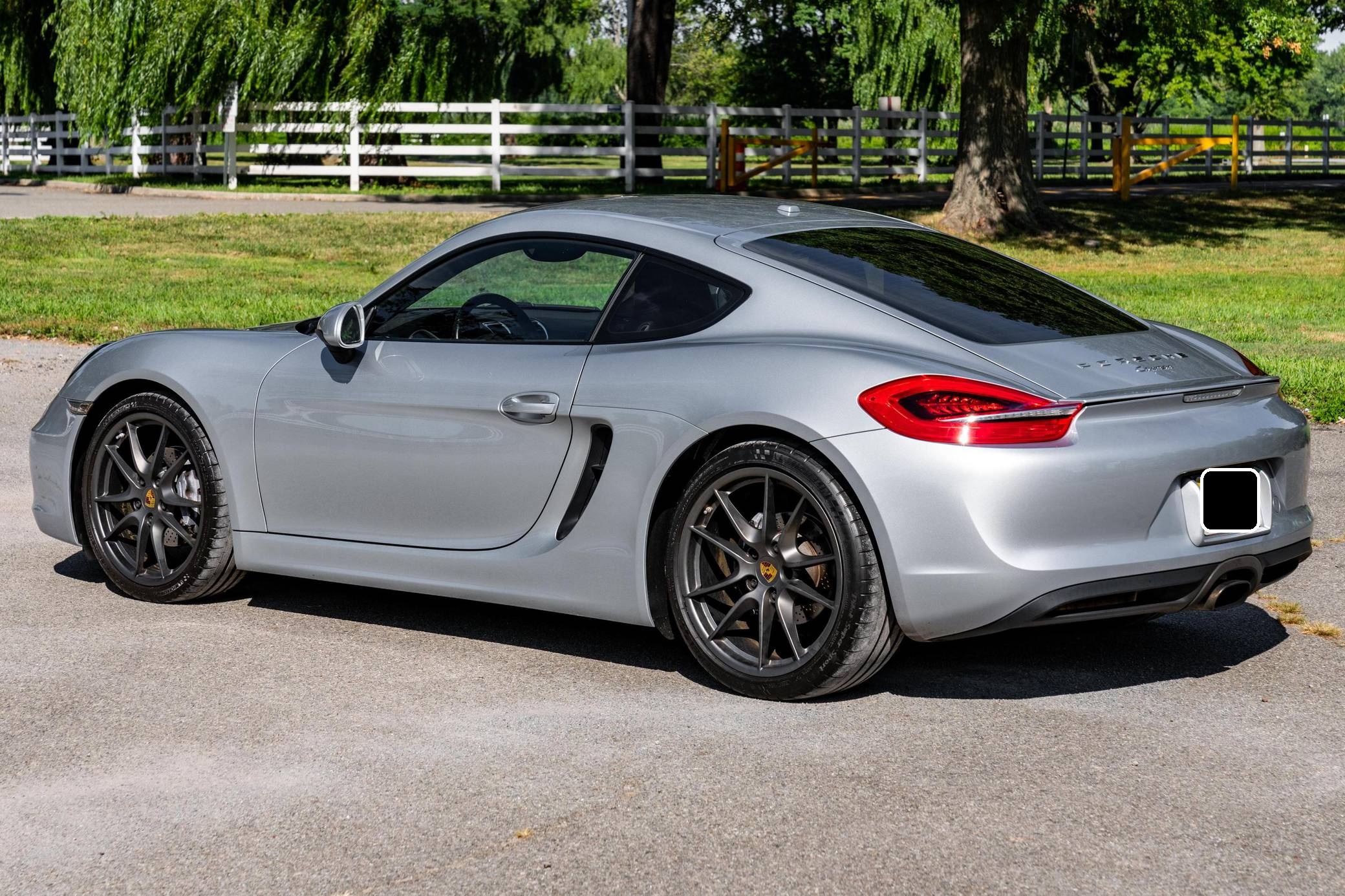 2015 Porsche Cayman, finished in Rhodium Silver Metallic with a black interior. This Cayman features the desirable 6-speed manual transmission. According to the build sheet provided in the gallery, factory equipment includes the Convenience Package, the Infotainment Package with Bose surround sound system, fog lights, an automatic rear spoiler, and cruise control. The only modifications reported by the seller are 20-inch Carrera S wheels and tinted windows. Produced from 2012 to 2016, the second-generation "981" Cayman was the coupe alternative to the third-generation Boxster. The 981 was lauded as one of the best-handling sports cars available in its day, largely due to its mid-engine configuration. It was more rigid and lighter than the outgoing 987 Cayman, and it featured a new body, redesigned interior, a wider front track, and a longer wheelbase. Power comes from a 2. 7-liter flat-6 engine, rated at 275 horsepower and 213 lb-ft of torque. Output is sent to the rear wheels via a 6-speed manual transmission.