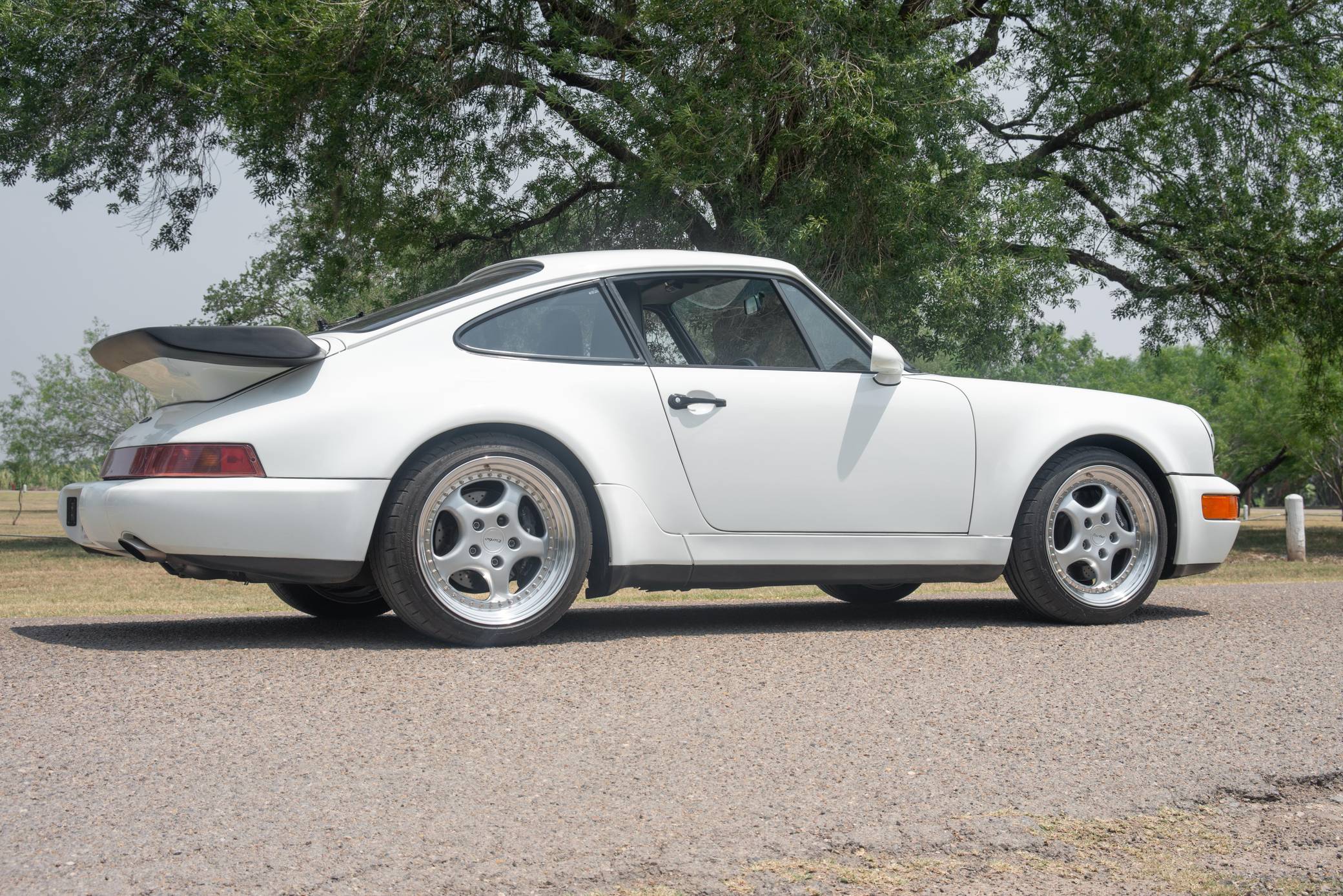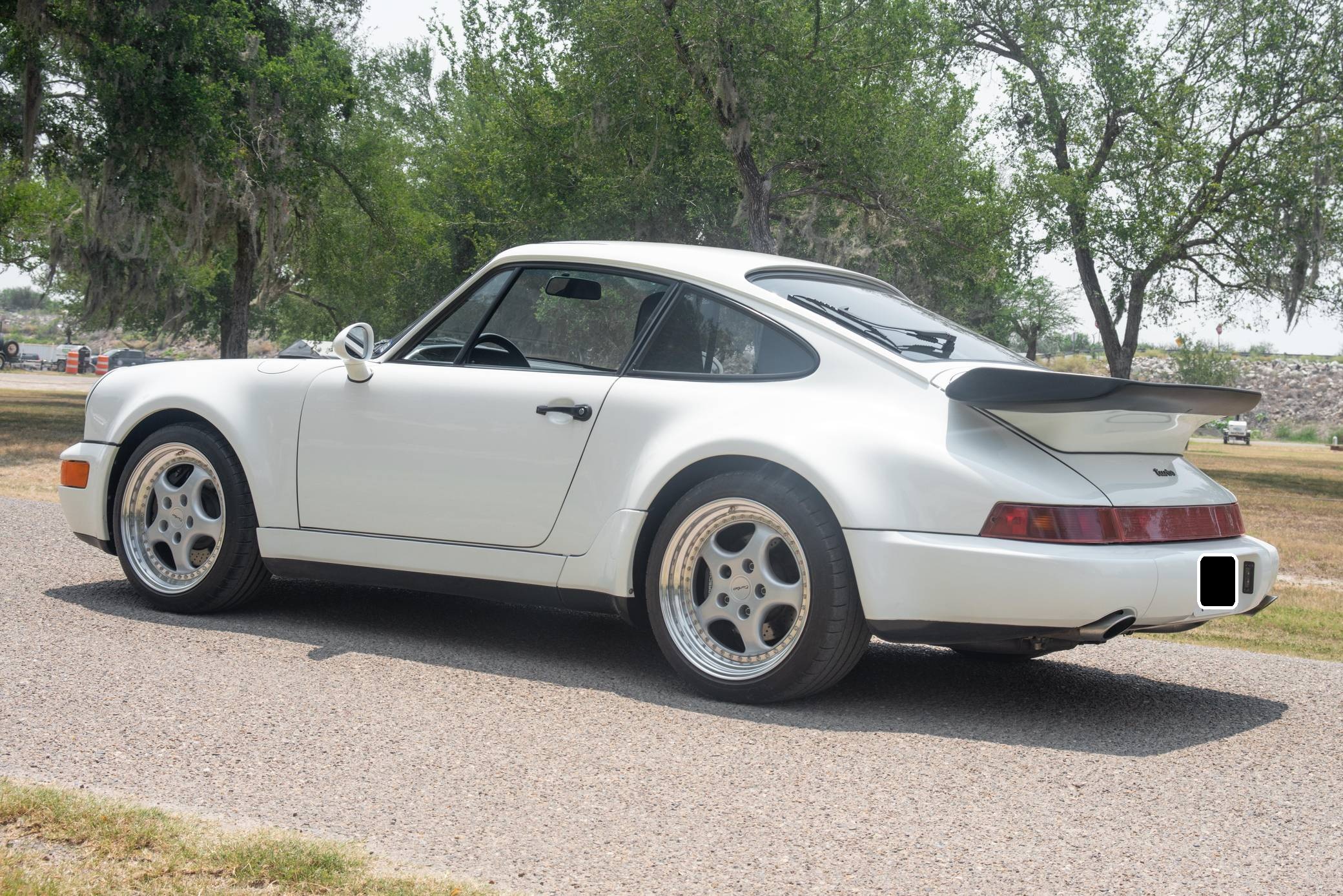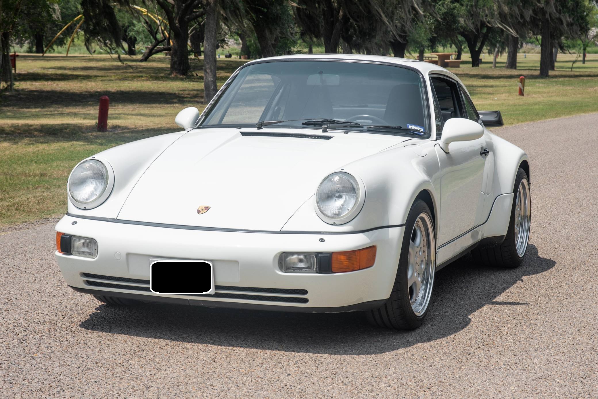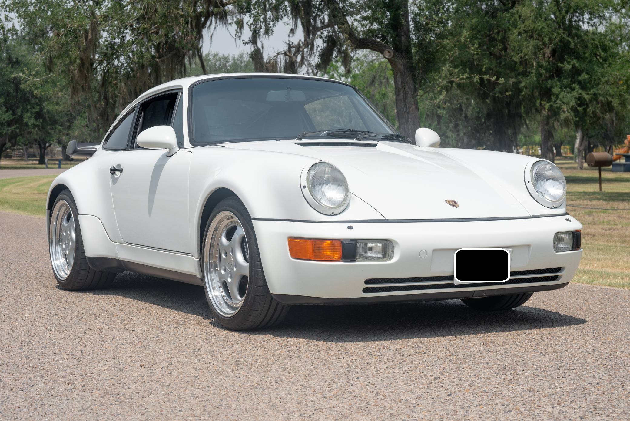 THIS. . . is a 1991 Porsche 911 Turbo, finished in Grand Prix White with a black interior. A build sheet is pictured in the gallery, and notable equipment includes a limited-slip differential, fog lights, a rear wiper, several leather-upholstered parts in the cabin, and power-adjustable door mirrors. Modifications reported by the seller include 18-inch wheels, power-adjustable front seats, and an Alpine CD player. More details about the aftermarket parts installed on this car are provided below. The 964-generation 911 was launched for 1989 and was offered as a coupe, a targa, and a convertible. Compared to the previous generation, the 964 received major design updates, more powerful engines across the board, and a redesigned rear suspension system; it was also the first 911 offered with a power-retractable spoiler, though not all variants received it. Power steering and ABS were made standard as well. Production of the 964 ended in 1993 with the introduction of the 993, Porsche's final air-cooled 911. Power comes from a 3. 3-liter turbocharged flat-6, rated at 315 horsepower and 332 lb-ft of torque. It spins the rear wheels via a 5-speed manual transmission.