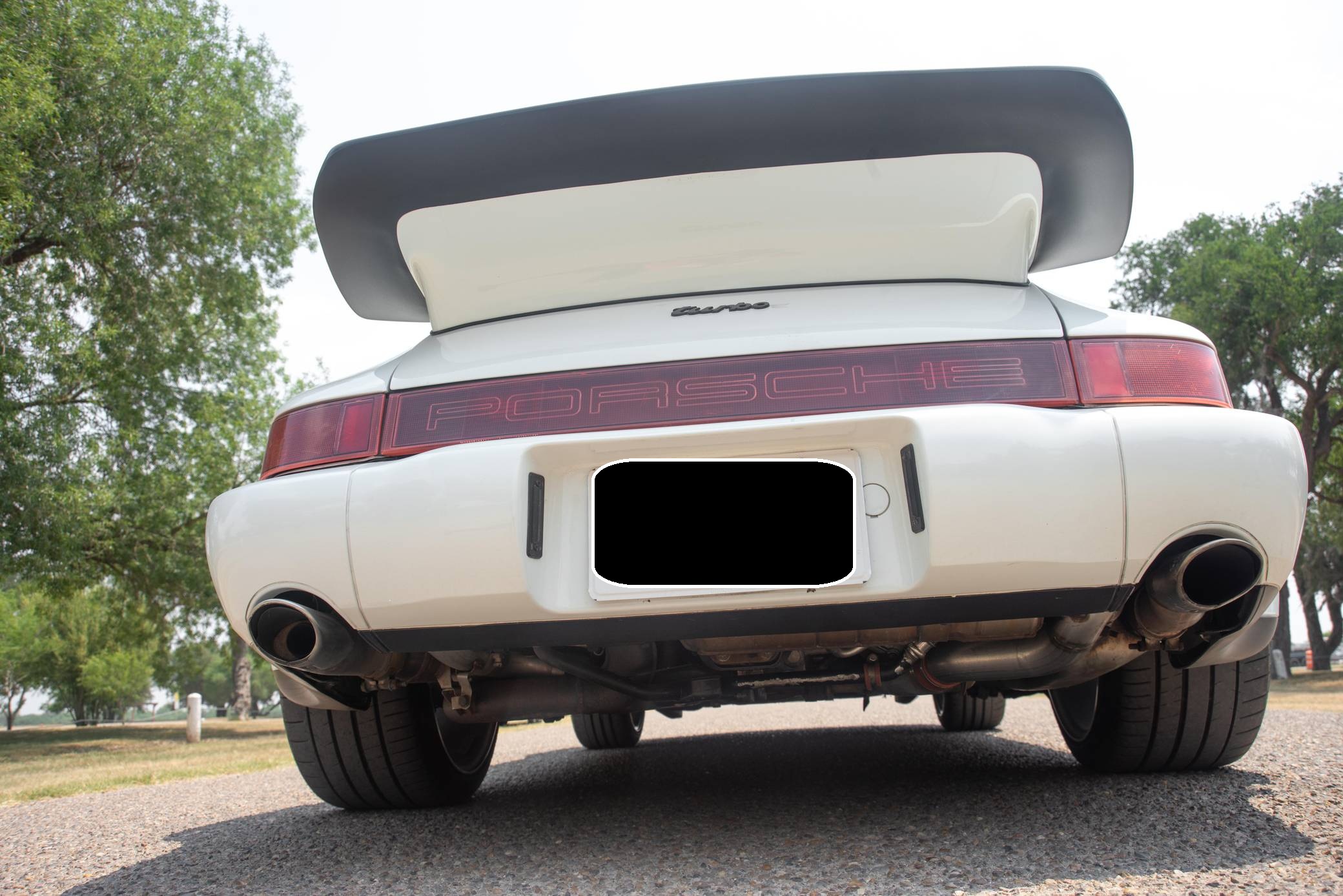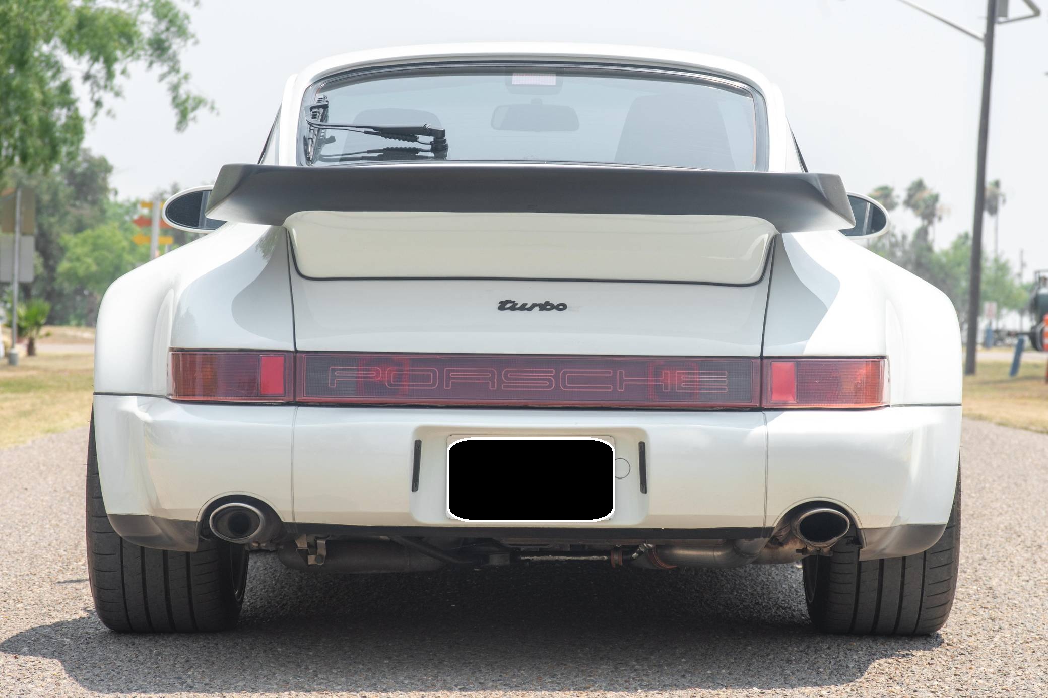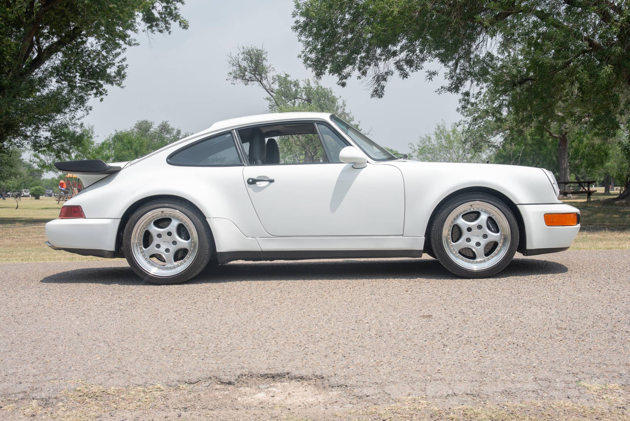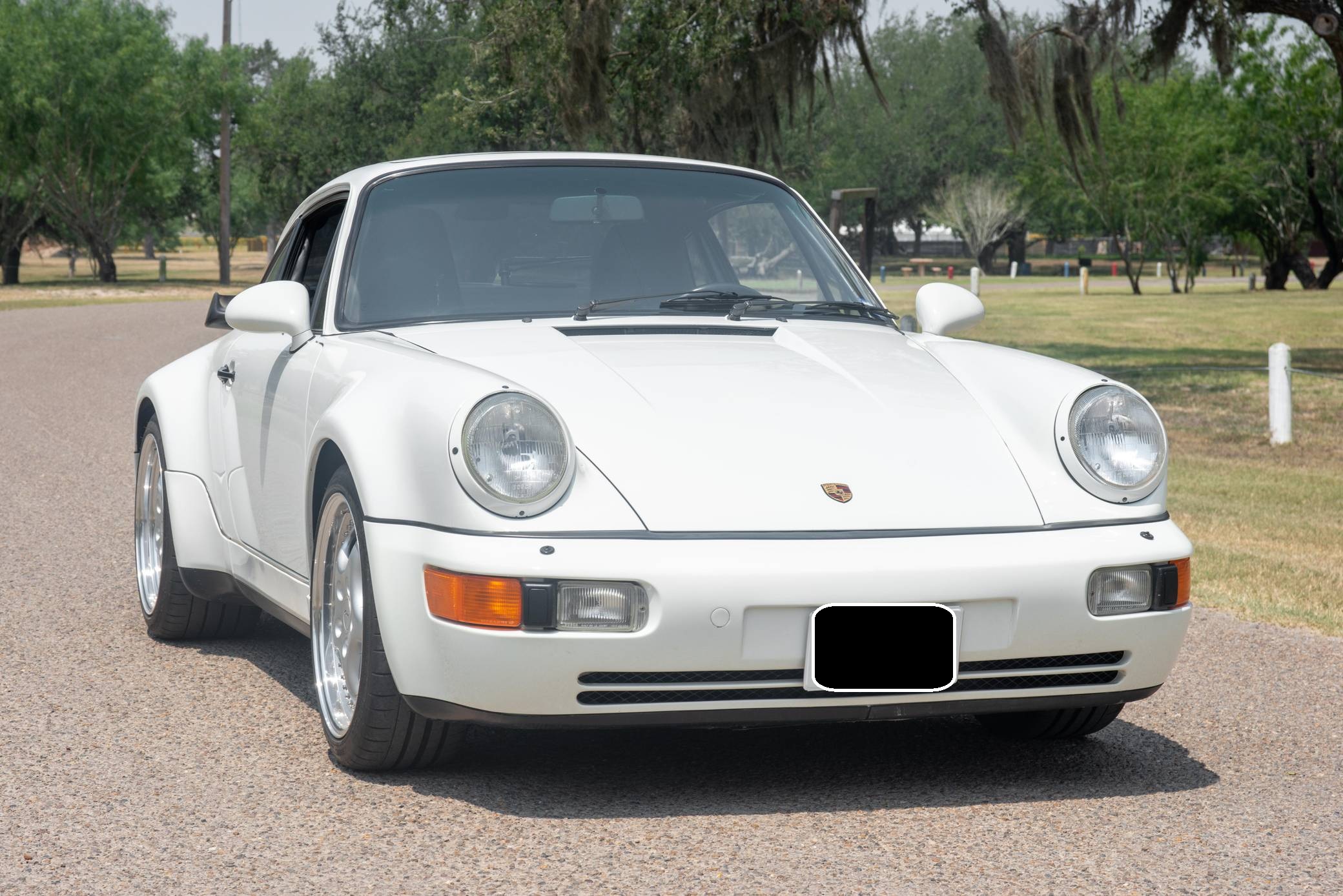 THIS. . . is a 1991 Porsche 911 Turbo, finished in Grand Prix White with a black interior. A build sheet is pictured in the gallery, and notable equipment includes a limited-slip differential, fog lights, a rear wiper, several leather-upholstered parts in the cabin, and power-adjustable door mirrors. Modifications reported by the seller include 18-inch wheels, power-adjustable front seats, and an Alpine CD player. More details about the aftermarket parts installed on this car are provided below. The 964-generation 911 was launched for 1989 and was offered as a coupe, a targa, and a convertible. Compared to the previous generation, the 964 received major design updates, more powerful engines across the board, and a redesigned rear suspension system; it was also the first 911 offered with a power-retractable spoiler, though not all variants received it. Power steering and ABS were made standard as well. Production of the 964 ended in 1993 with the introduction of the 993, Porsche's final air-cooled 911. Power comes from a 3. 3-liter turbocharged flat-6, rated at 315 horsepower and 332 lb-ft of torque. It spins the rear wheels via a 5-speed manual transmission.