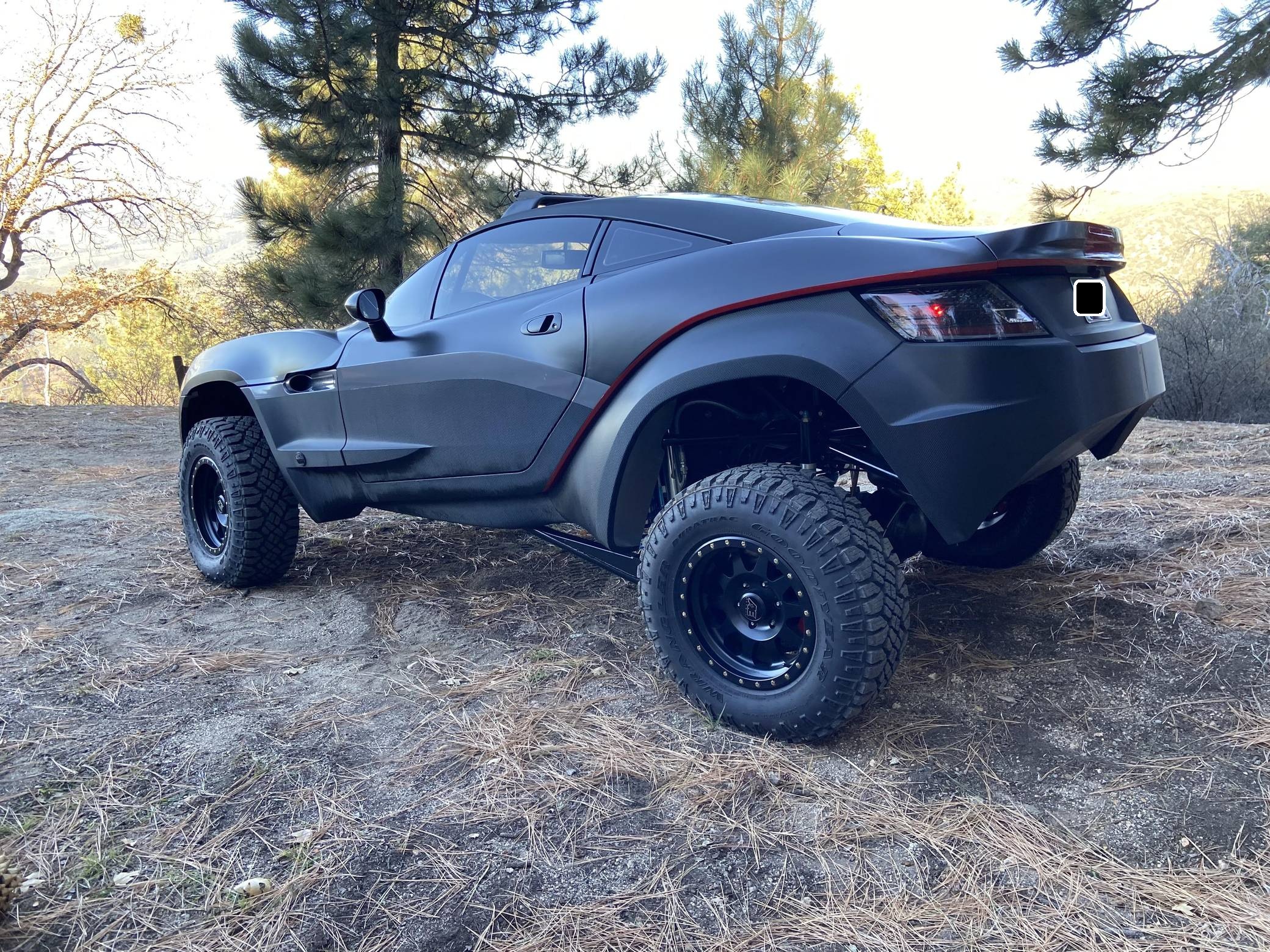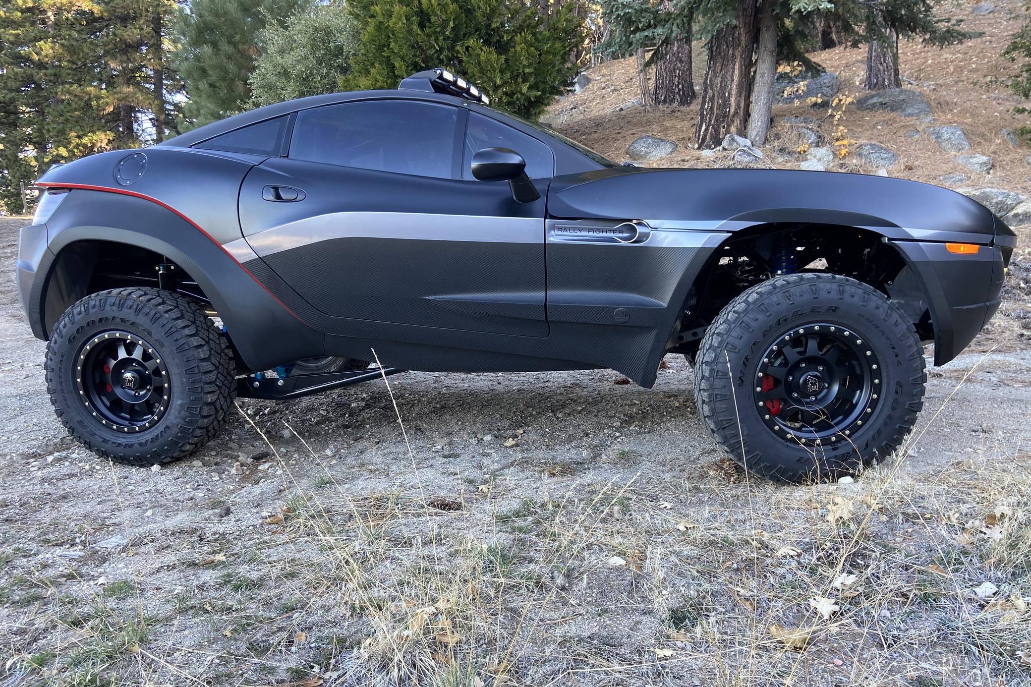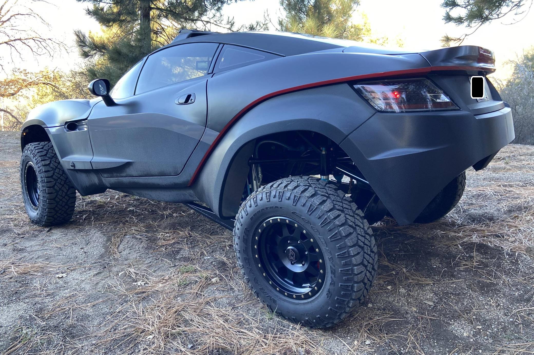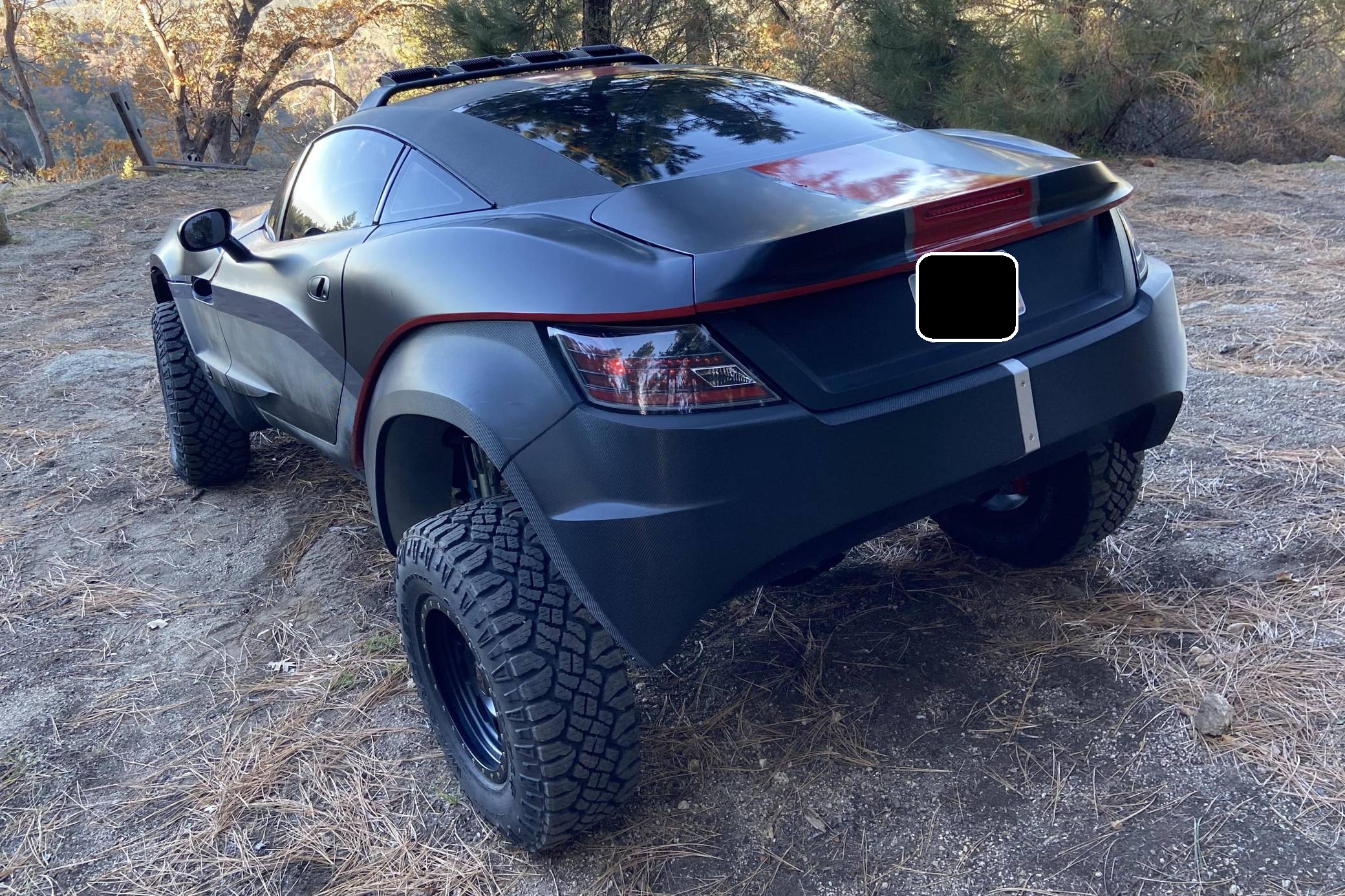 THIS. . . is a 2015 Local Motors Rally Fighter, finished in exposed fiberglass with a black and red exterior wrap and a black and red interior. Doug DeMuro recently reviewed this Rally Fighter and his video is embedded below. This coupe's odometer displays about 600 miles. Factory equipment includes King Shock Technology triple-bypass shocks, a Baer Brakes braking system, fiberglass body panels, front sport seats, leather upholstery on the dashboard and door panels, sound-proofing material in the cabin, air conditioning, and cruise control. The seller reports no modifications. Local Motors was founded in 2007 to create crowd-sourced low-volume cars. It's best known for the Rally Fighter, a lifted V8-powered coupe designed to speed across the desert. The company took an unusual approach to production: it invited Rally Fighter buyers to help customize and build their car in so-called microfactories scattered across the United States. Local Motors closed in early 2022, reportedly due to a lack of funding, after trying to bring an autonomous electric shuttle named Olli to production. Power comes from a 6. 2-liter "LS3 E-Rod" V8, rated at about 430 horsepower and 425 lb-ft of torque. Sourced from the General Motors catalog of crate engines, it spins the rear wheels via a 6-speed "6L90" automatic transmission.