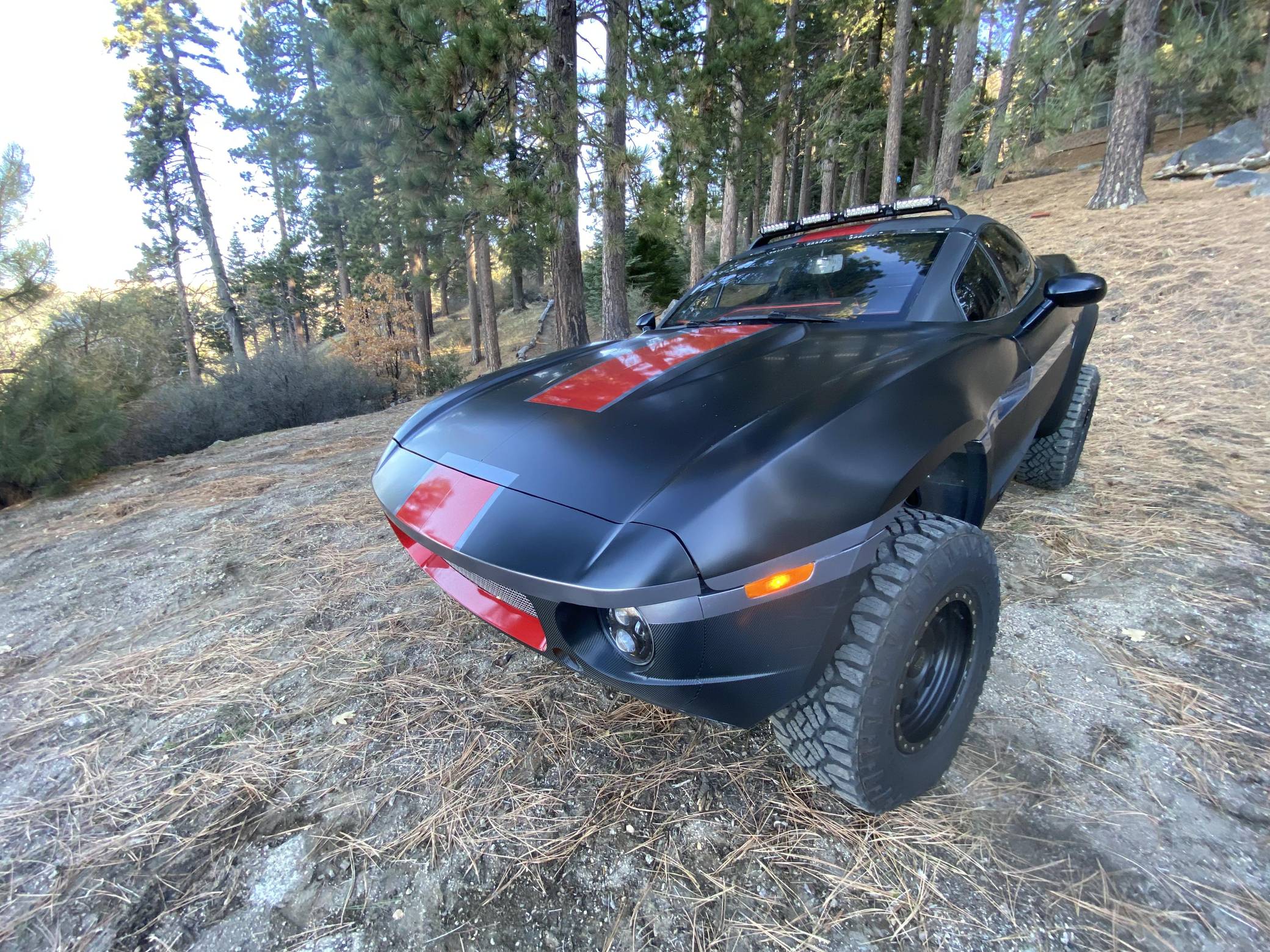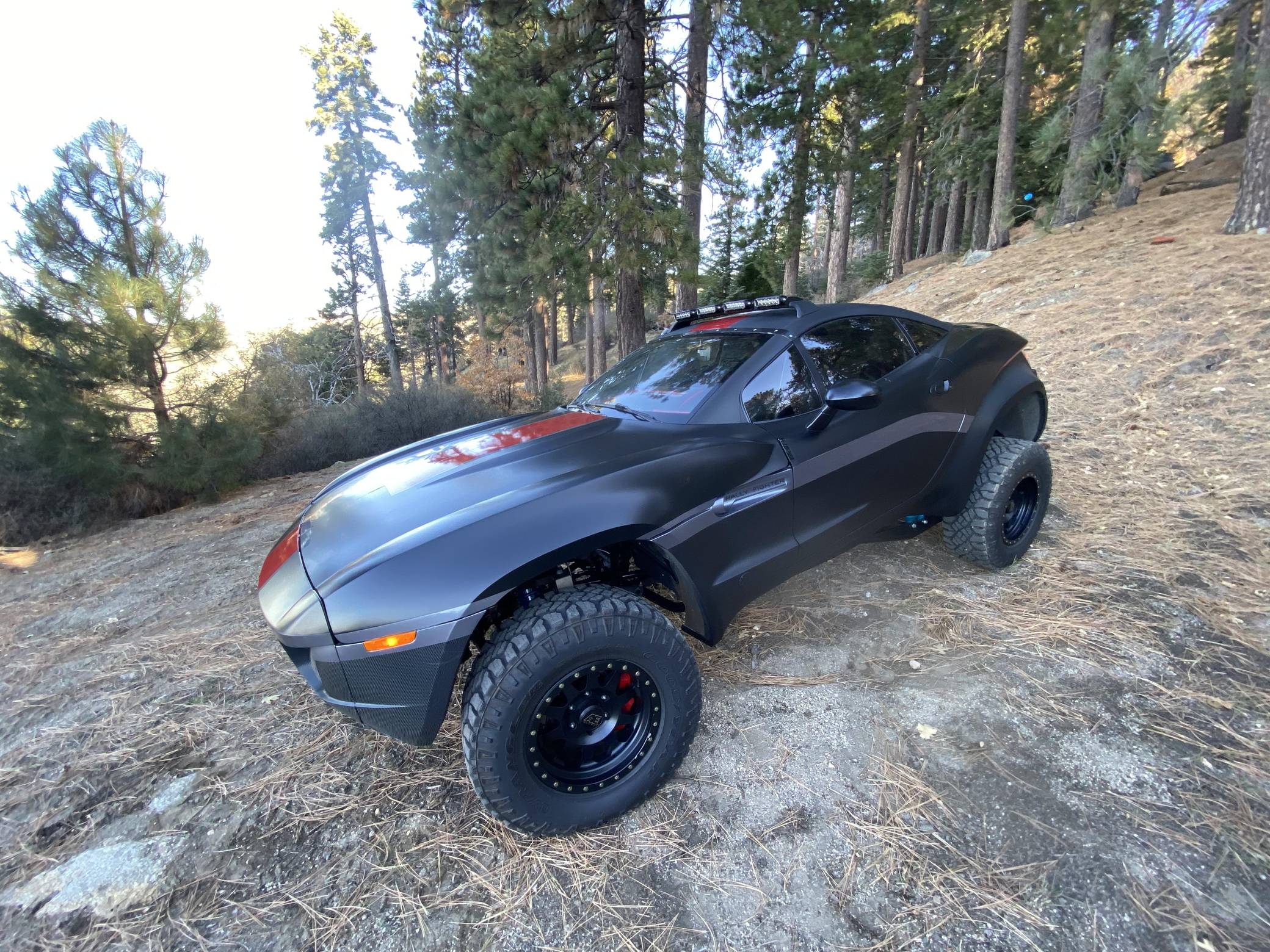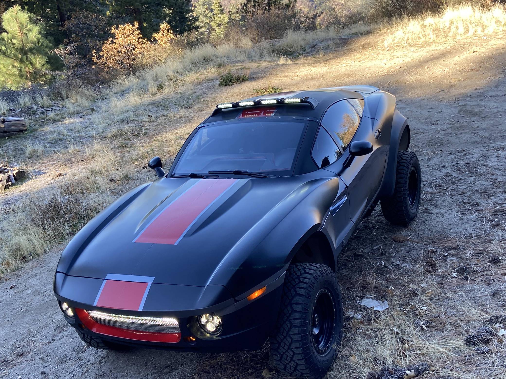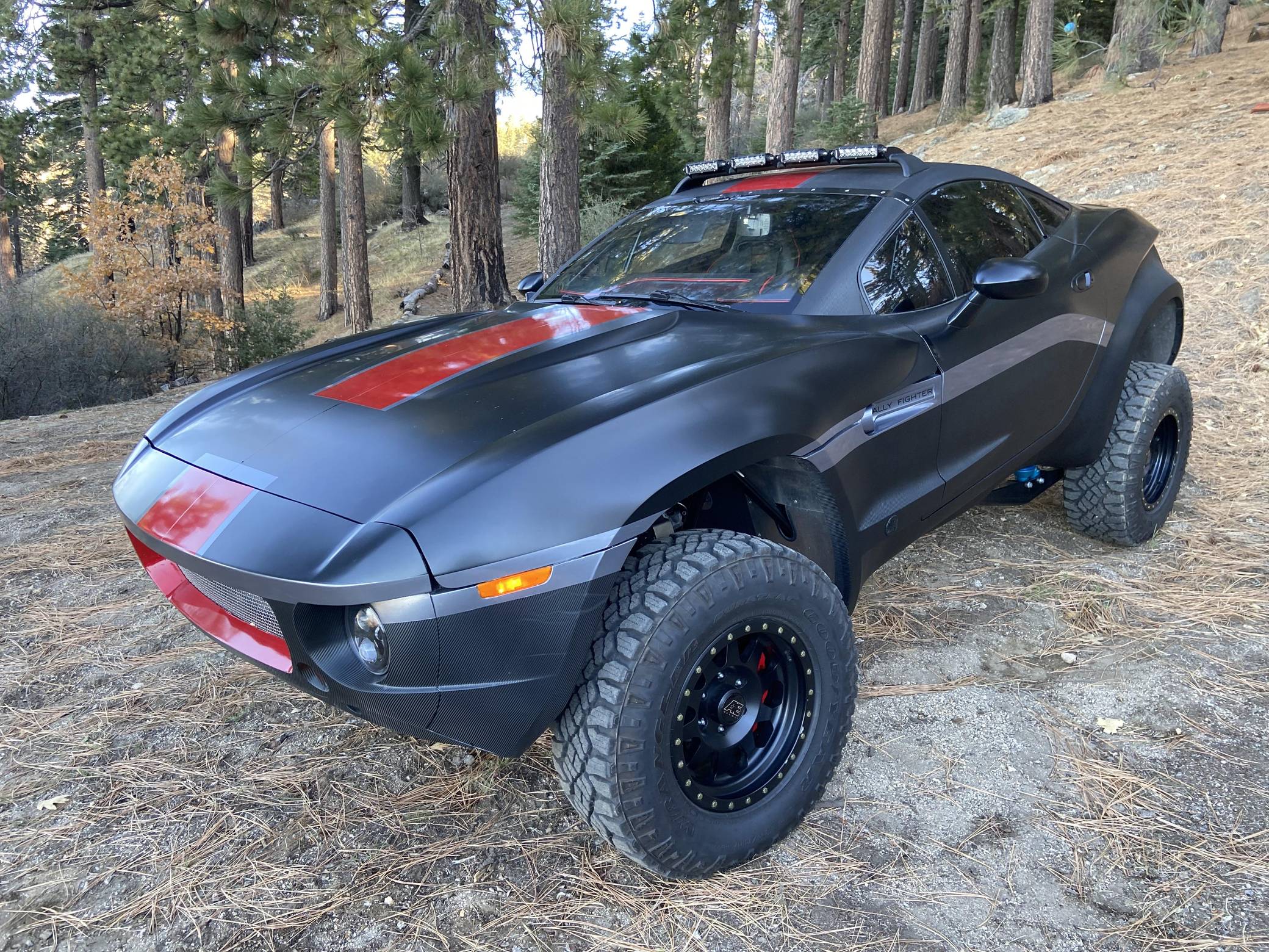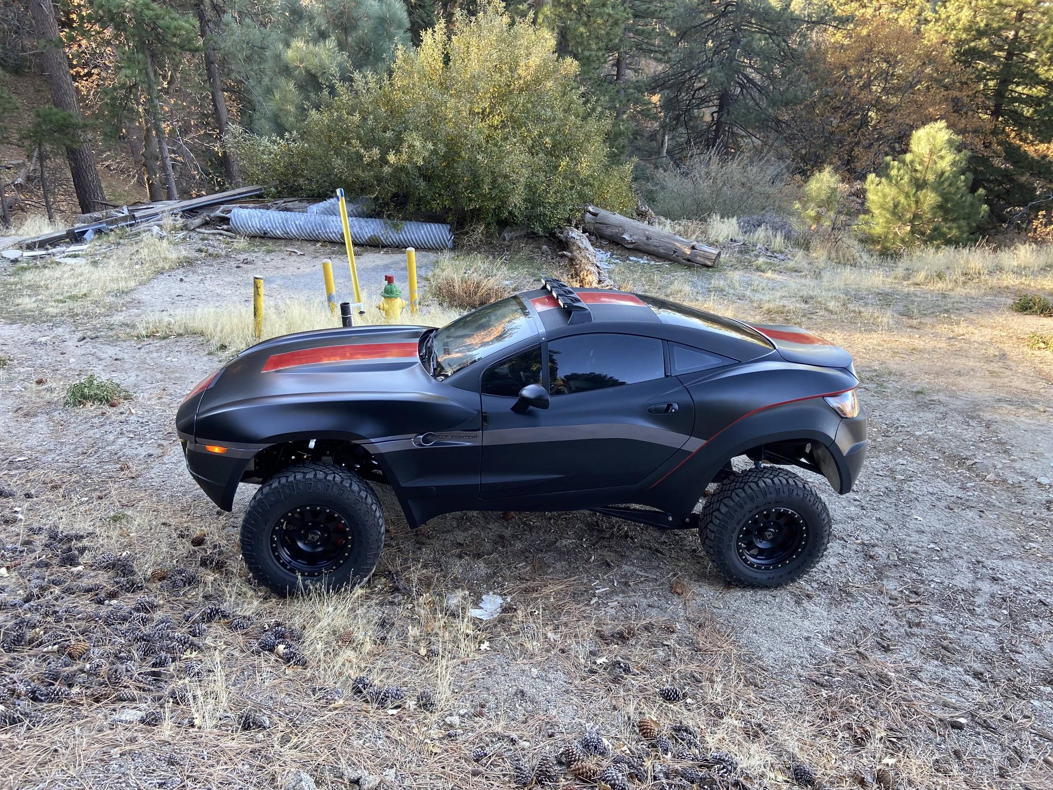 THIS. . . is a 2015 Local Motors Rally Fighter, finished in exposed fiberglass with a black and red exterior wrap and a black and red interior. Doug DeMuro recently reviewed this Rally Fighter and his video is embedded below. This coupe's odometer displays about 600 miles. Factory equipment includes King Shock Technology triple-bypass shocks, a Baer Brakes braking system, fiberglass body panels, front sport seats, leather upholstery on the dashboard and door panels, sound-proofing material in the cabin, air conditioning, and cruise control. The seller reports no modifications. Local Motors was founded in 2007 to create crowd-sourced low-volume cars. It's best known for the Rally Fighter, a lifted V8-powered coupe designed to speed across the desert. The company took an unusual approach to production: it invited Rally Fighter buyers to help customize and build their car in so-called microfactories scattered across the United States. Local Motors closed in early 2022, reportedly due to a lack of funding, after trying to bring an autonomous electric shuttle named Olli to production. Power comes from a 6. 2-liter "LS3 E-Rod" V8, rated at about 430 horsepower and 425 lb-ft of torque. Sourced from the General Motors catalog of crate engines, it spins the rear wheels via a 6-speed "6L90" automatic transmission.