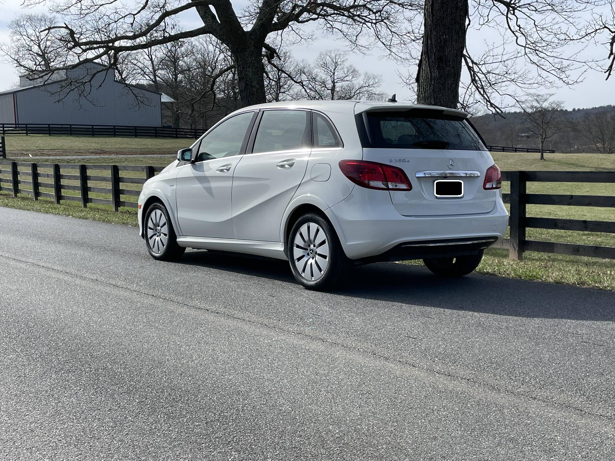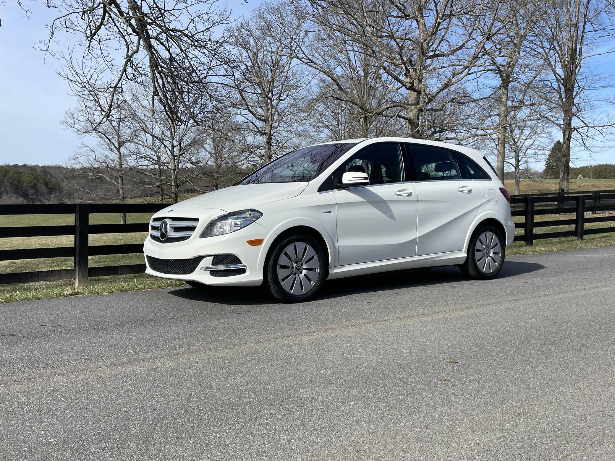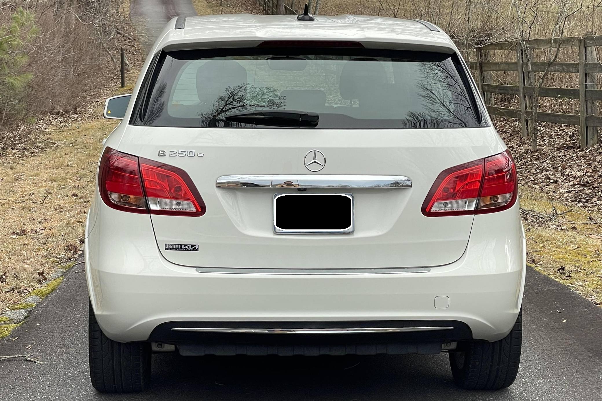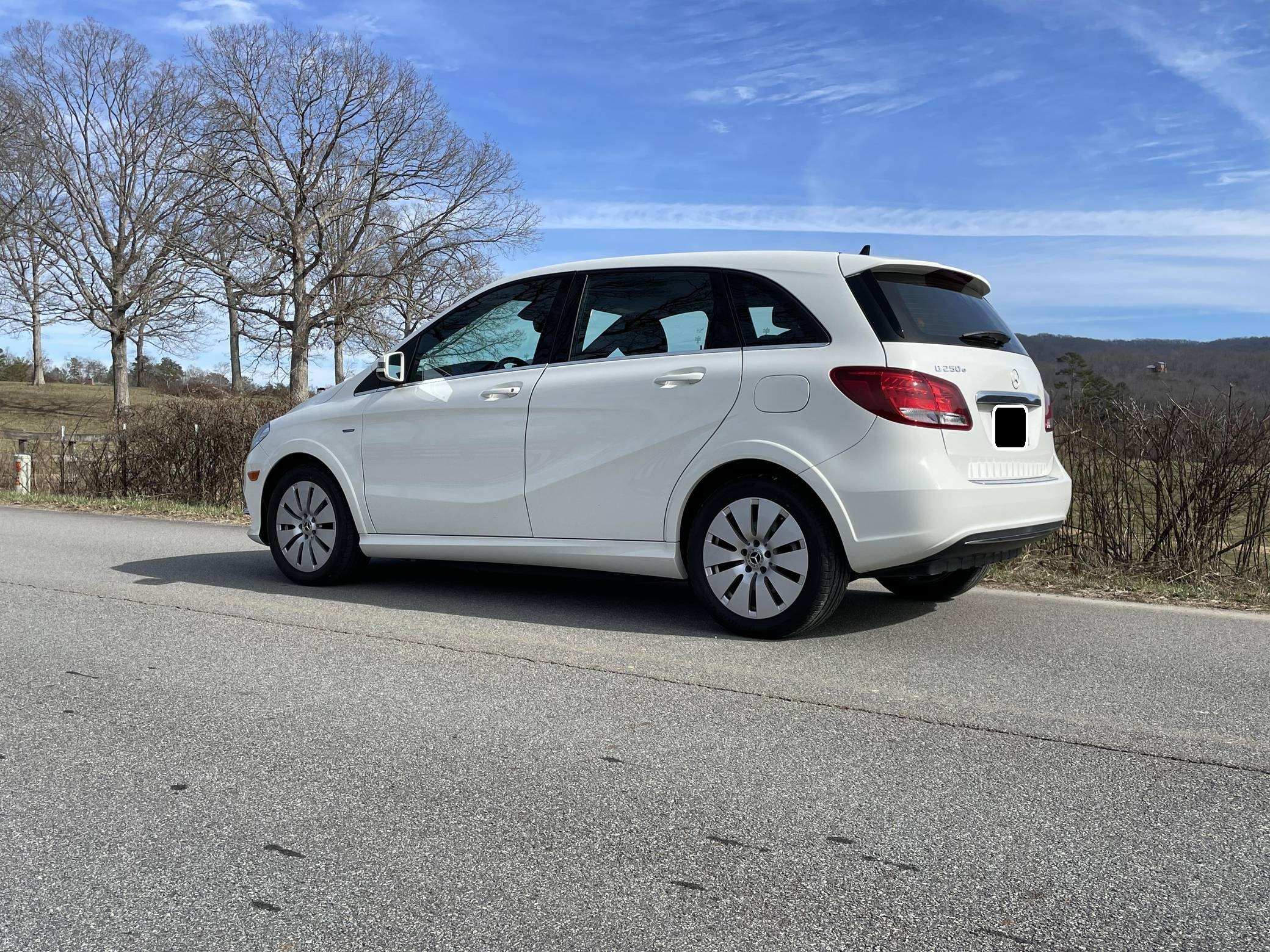 THIS. . . is a 2017 Mercedes-Benz B250e, finished in Calcite White with a black interior. The odometer currently displays approximately 21,100 miles. According to the build sheet provided in the gallery, factory equipment includes the Range Plus Package, 17-inch wheels, imitation leather upholstery, power-adjustable front seats with memory, dual-zone automatic climate control, a CD player, a rearview camera, and blind-spot monitoring. The seller reports no modifications. It was Mercedes-Benz's first volume-production electric car, and it used an electric powertrain co-developed with Tesla. The B250e offered great practicality, good performance, and the comfort of a Mercedes-Benz. Production for the U. S. market was canceled after the 2017 model year. Power comes from a single electric motor that draws electricity from a 28-kilowatt-hour lithium-ion battery to zap the front wheels with 177 horsepower and 251 lb-ft of torque. The EPA gave the B250e a maximum driving range of 87 miles in 2017.
