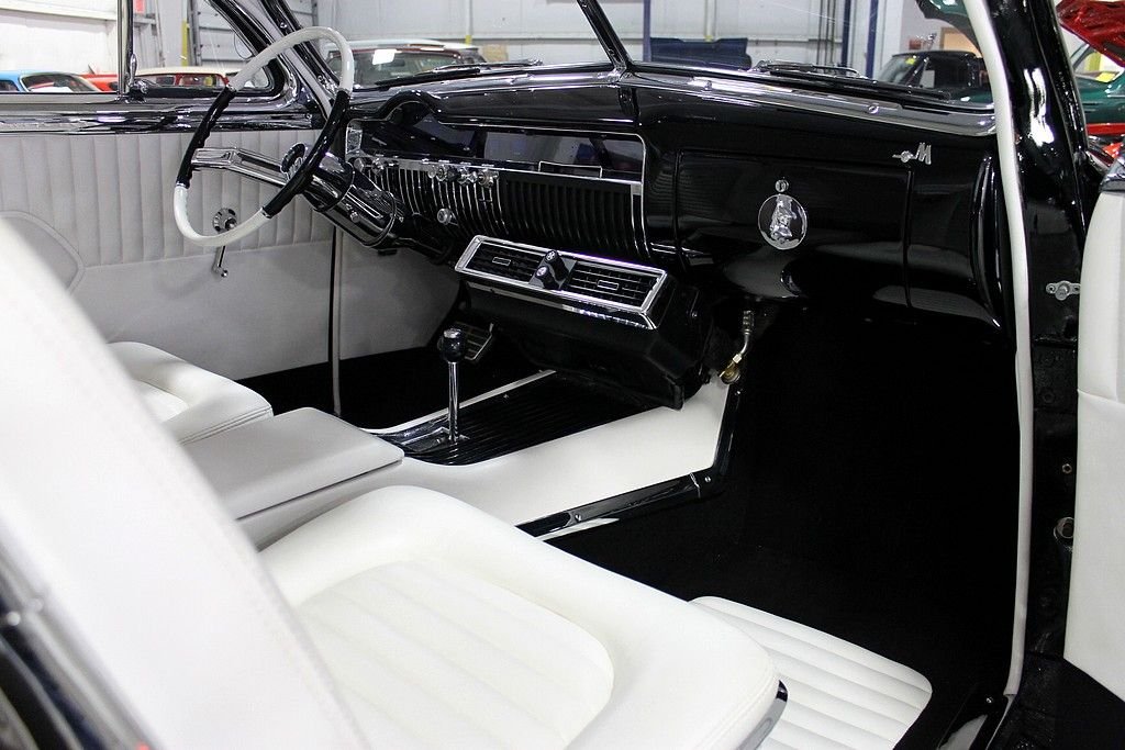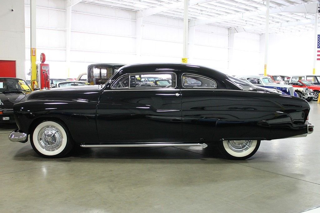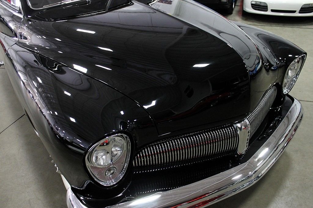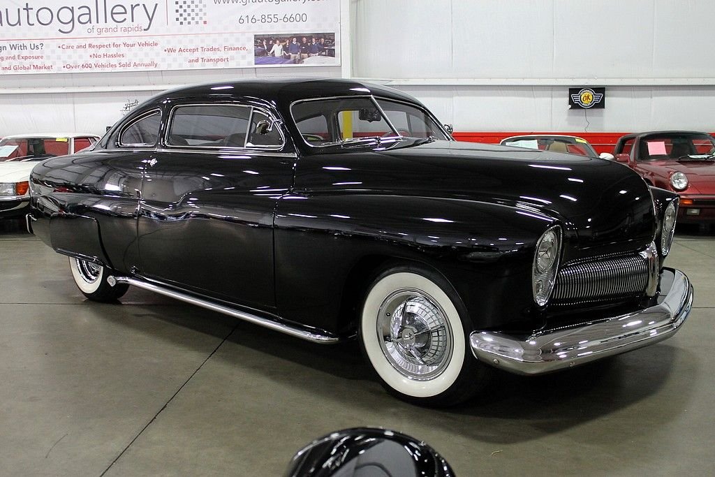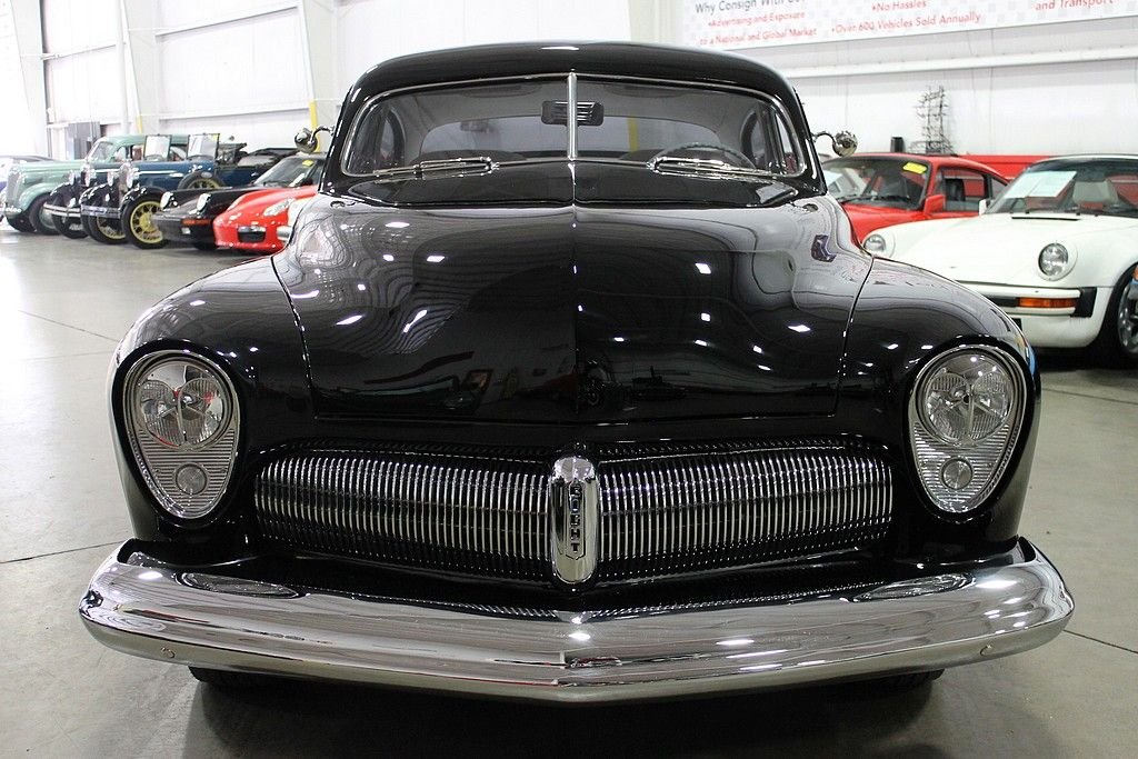 Some restomods are pieced together for speed, some are pieced together for style, and then a very rare few have it all. What we're trying to say is that this sled is not just a head turner for car shows. It is a masterfully constructed machine with no expense spared. It started with an original all steel '51 Mercury body with a 2.5” chop to go along with '49 Mercury fenders & hood. Trim modifications include a '57 Buick grille, '53 Buick headlights, '56 Packard taillights, and custom smoothed chrome bumpers. Then for the fun stuff its powered by a rebuilt 390 V8 paired with a C6 automatic transmission with braded steel lines and a 24” finned cooler channels power to the Ford 9” rear end with 3:50 gears. Other features include a Demon 625 carburetor, chrome alternator, polished Sanded air condition compressor, five-core aluminum radiator by Griffin, Ridetech 4-corner adjustable live coilovers (you can raise and lower the car from the driver's seat), whitewall tires, steel wheels with Dodge Lancer hubcaps, Dakota digital gauges, and a '61 Cadillac steering wheel. This car has tons of curb appeal, but the interior in chalk white naugahyde may be even more eye catching. This car is an absolute stunner with tons of performance. This is one of the best street rods out there and you would have a tough time building this for double the price. Very low miles since the build has this car sitting with just over 4,000 on the odometer.