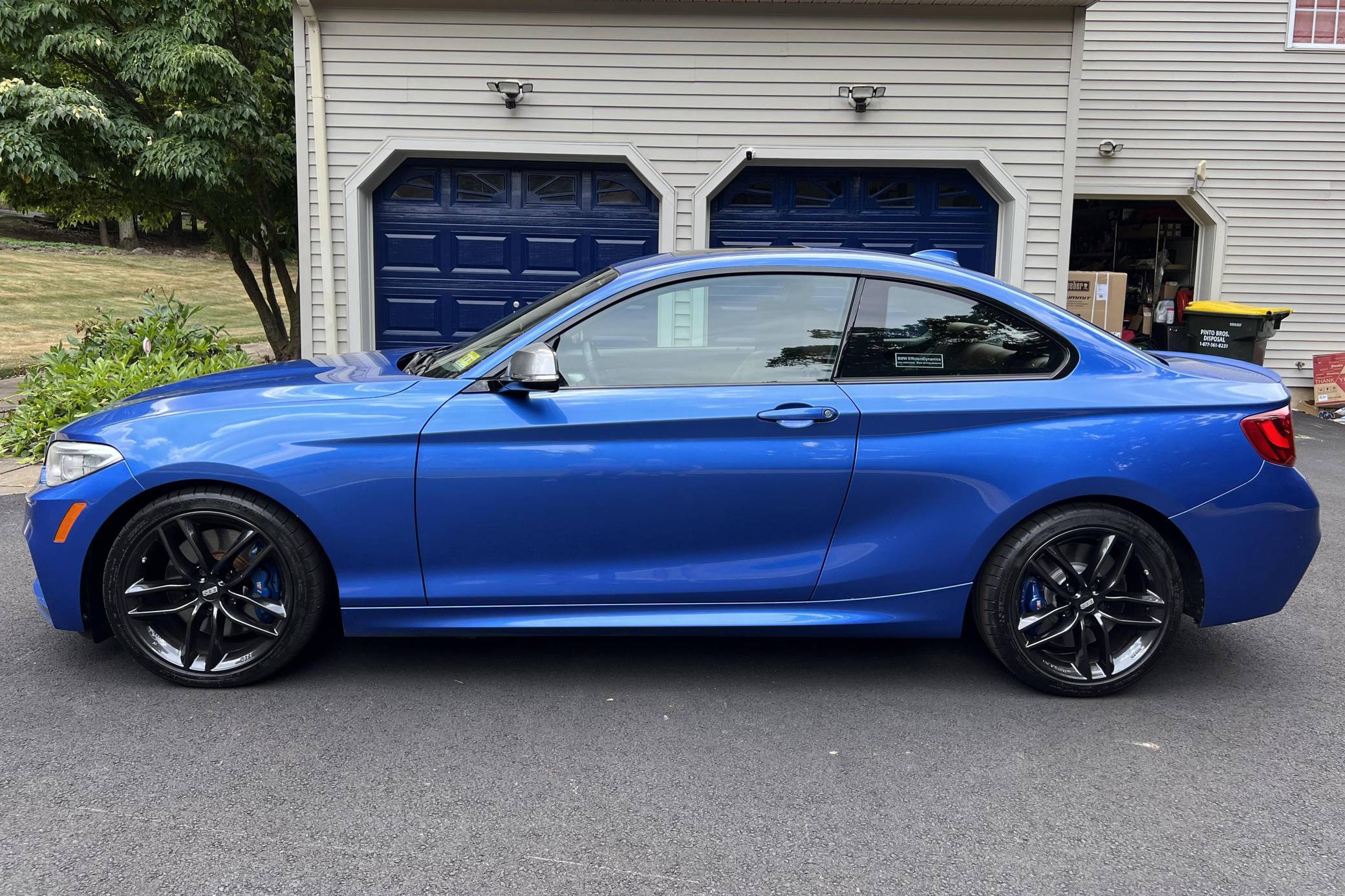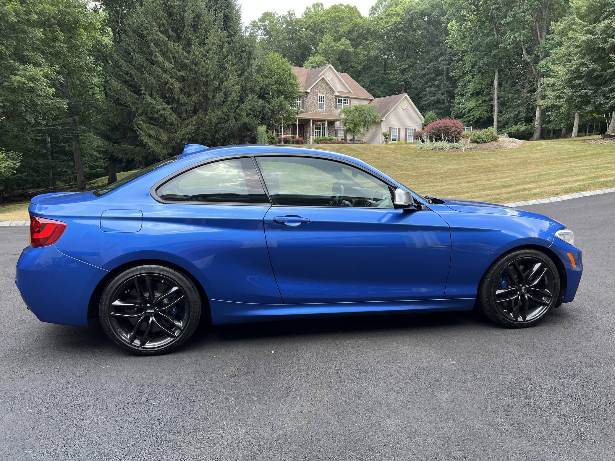 2014 BMW M235i, finished in Estoril Blue Metallic with a Terra interior. This M235i features the desirable 6-speed manual transmission. According to the build sheet provided in the gallery, factory equipment includes Premium, Technology, and Cold Weather packages, a power sunroof, Dakota leather upholstery, Park Distance Control (PDC), and a Harman/Kardon sound system. The only modifications reported by the seller are 18-inch BBS SX wheels and the deletion of the rear "M235i" badge. BMW released the F22 2 Series for the 2014 model year as a replacement for the two-door variants of the 1 Series. At launch, the range consisted of the 228i, which received a 4-cylinder engine, and the sportier M235i, which was powered by a straight-6. Both picked up where their esteemed predecessors left off by offering enthusiasts balanced handling, strong performance, and the luxurious interior BMW is known for. Power comes from an "N55" 3. 0-liter turbocharged inline-6, rated at 320 horsepower and 330 lb-ft of torque. Output is sent to the rear wheels via a 6-speed manual transmission.