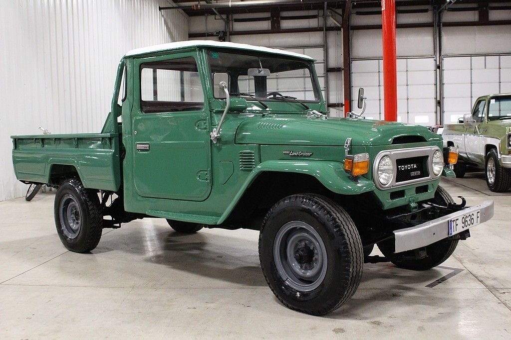 The Land Cruiser market is no secret to the general public these days. These very capable and iconic vehicles have taken off in collector car segments, hobbyist and thrill seekers. With the ability to be daily drivers or just that awesome toy in the 3rd stall of the garage, these are the ones to have and show off to your friends. The market is strong and will continue to appreciate as time carries on and fewer and fewer of these are available to the public. Collectors are snatching these vehicles up quickly and driving the price higher with each auction day that passes. This is a wonderful opportunity to get into one of these at a market value price without the extra hype. The example here is a HJ45. It has a longer wheel base than the FJ 40, and it has a Diesel engine instead of the standard 2F. This truck just finished her voyage from the Canary Islands in Spain and was repainted just before it was brought here. Before it was painted it received a brand new bed. The vin number can be seen on the frame rail on the passenger side in front of the front tire. This truck drives and shows well. Do not miss this opportunity to own such a unique classic.