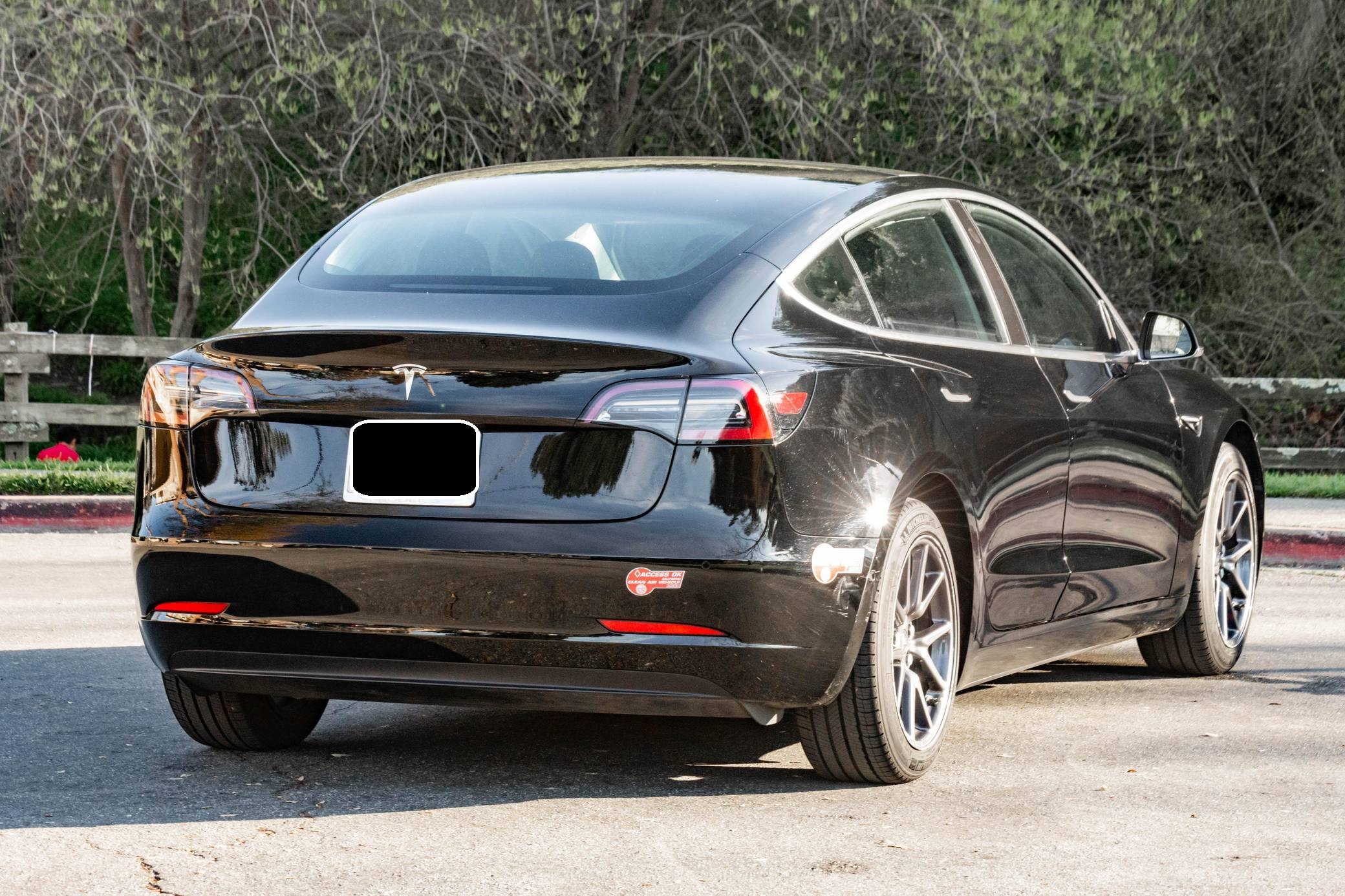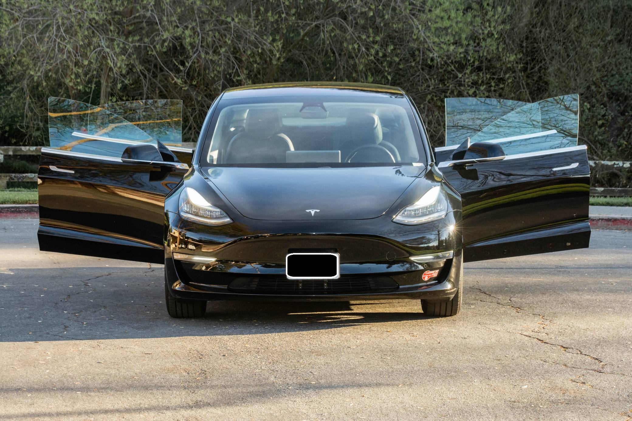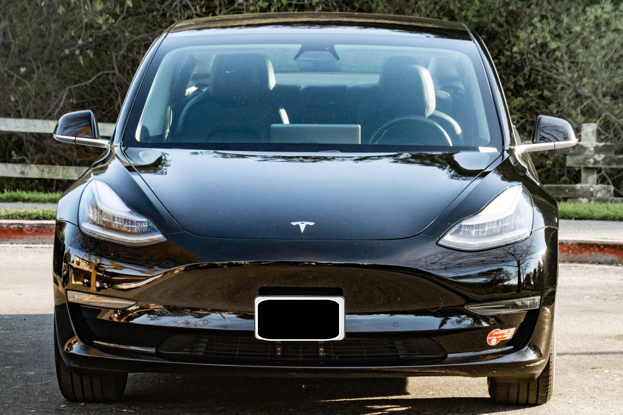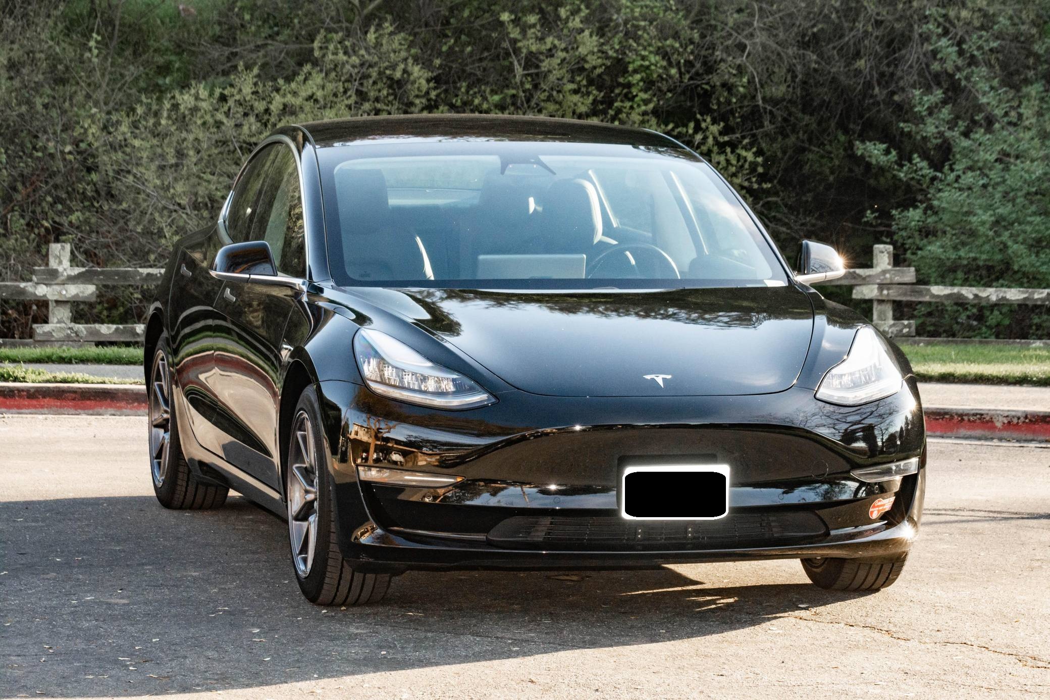 2018 Tesla Model 3 Long Range, finished in Solid Black with a black interior. It's equipped with 18-inch wheels, a Premium interior, power-adjustable front seats, a 15-inch touchscreen, and Autopilot technology, among other features. SunTek clear paint protection film on the front end and an Ottosteer magnetic front license plate bracket are the only modifications reported by the seller. At launch, the Model 3 was presented as a premium EV with a usable driving range and respectable performance, all at a reasonably attainable price. It was Tesla's entry-level car. It's still available today, and it has gone through several evolutions (including many software updates) since its introduction. Power comes from an electric motor, rated at 271 horsepower and 307 lb-ft of torque according to third-party estimates. Connected to a 75-kWh lithium-ion battery pack, it zaps the rear wheels into motion. When new, the Long Range version had an EPA-estimated driving range of up to 310 miles.
