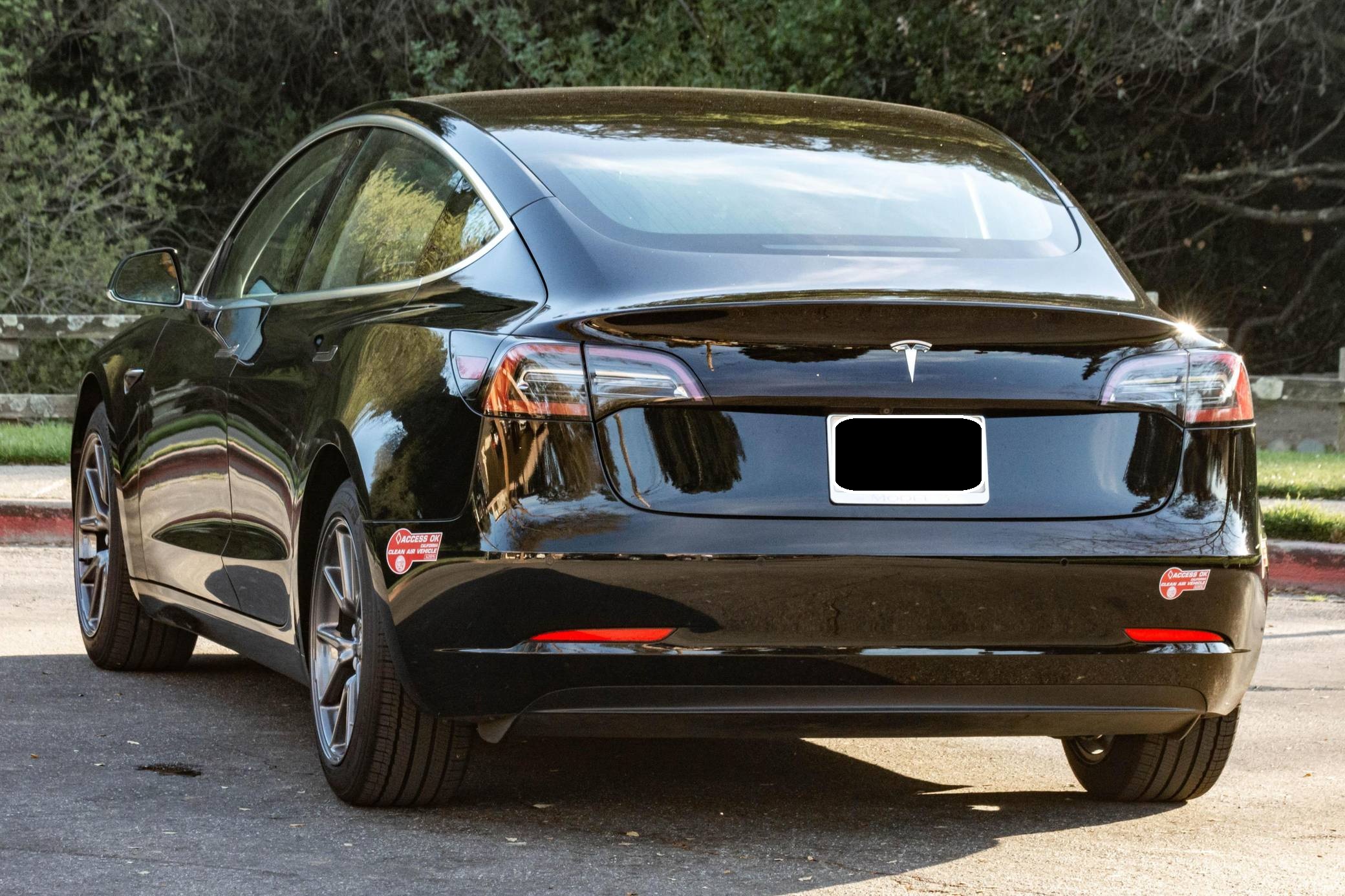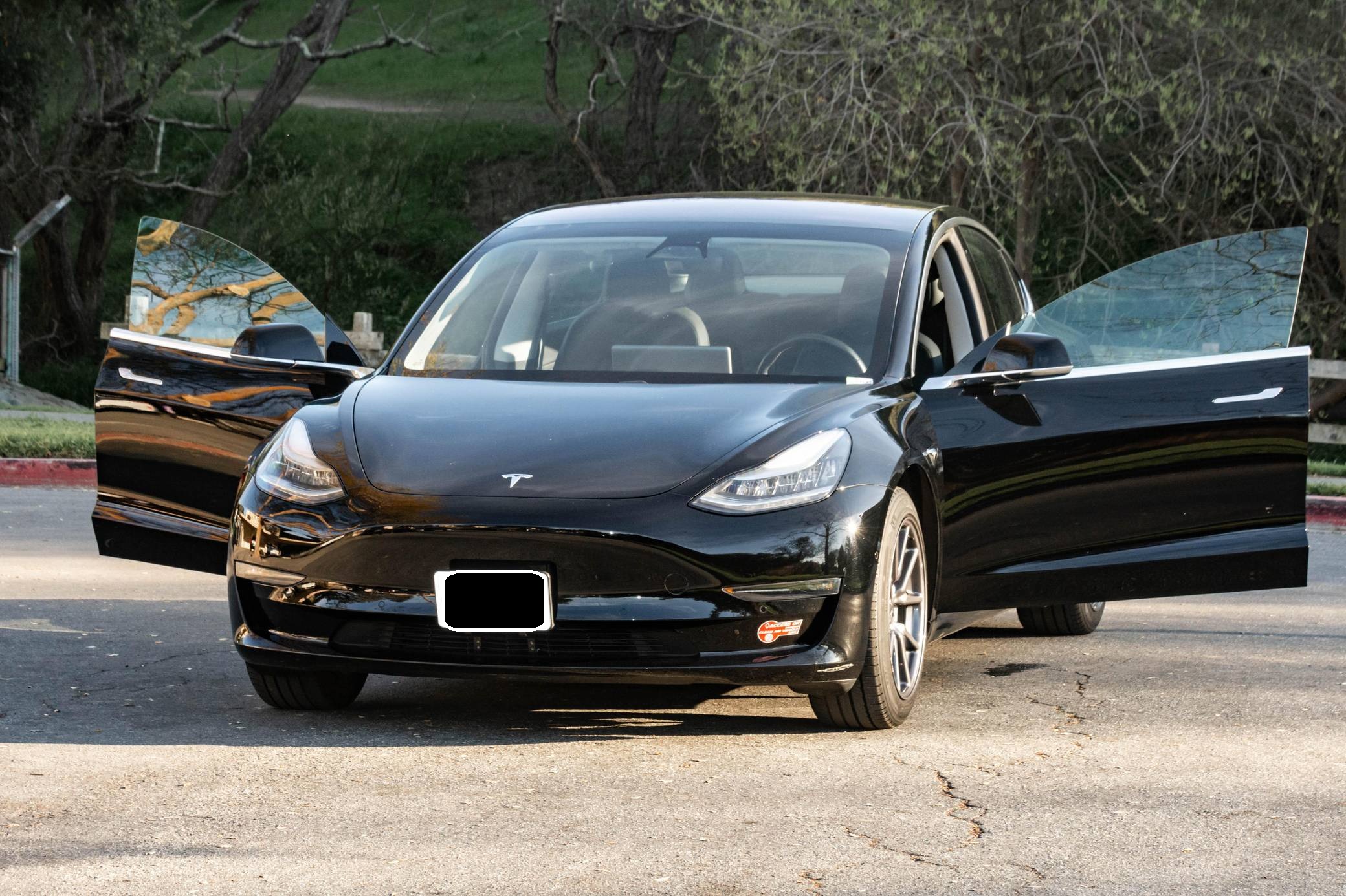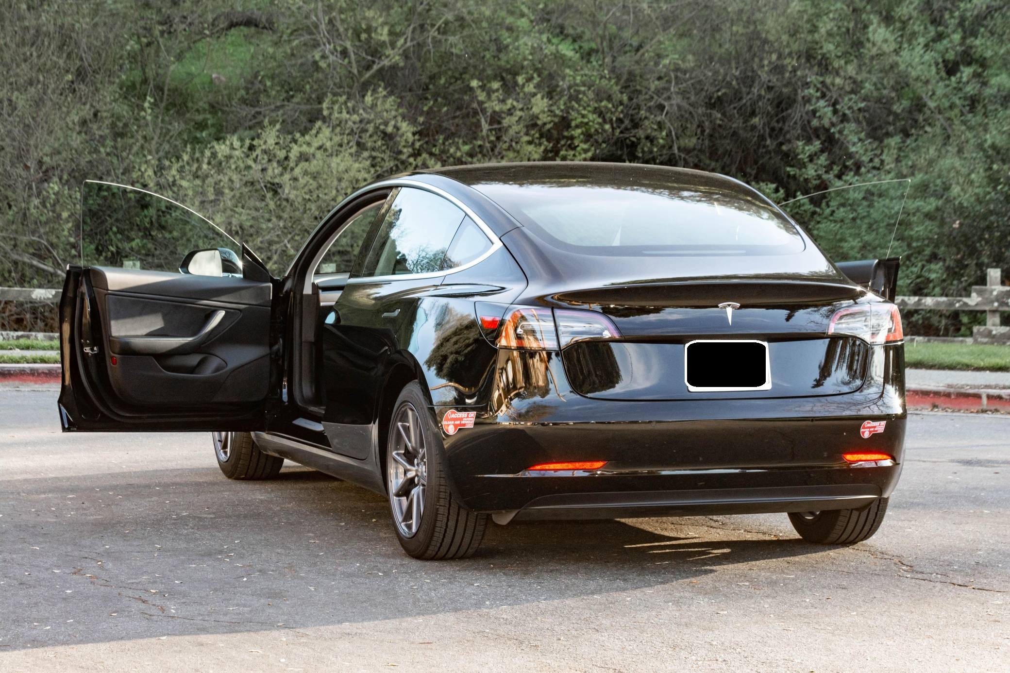 2018 Tesla Model 3 Long Range, finished in Solid Black with a black interior. It's equipped with 18-inch wheels, a Premium interior, power-adjustable front seats, a 15-inch touchscreen, and Autopilot technology, among other features. SunTek clear paint protection film on the front end and an Ottosteer magnetic front license plate bracket are the only modifications reported by the seller. At launch, the Model 3 was presented as a premium EV with a usable driving range and respectable performance, all at a reasonably attainable price. It was Tesla's entry-level car. It's still available today, and it has gone through several evolutions (including many software updates) since its introduction. Power comes from an electric motor, rated at 271 horsepower and 307 lb-ft of torque according to third-party estimates. Connected to a 75-kWh lithium-ion battery pack, it zaps the rear wheels into motion. When new, the Long Range version had an EPA-estimated driving range of up to 310 miles.